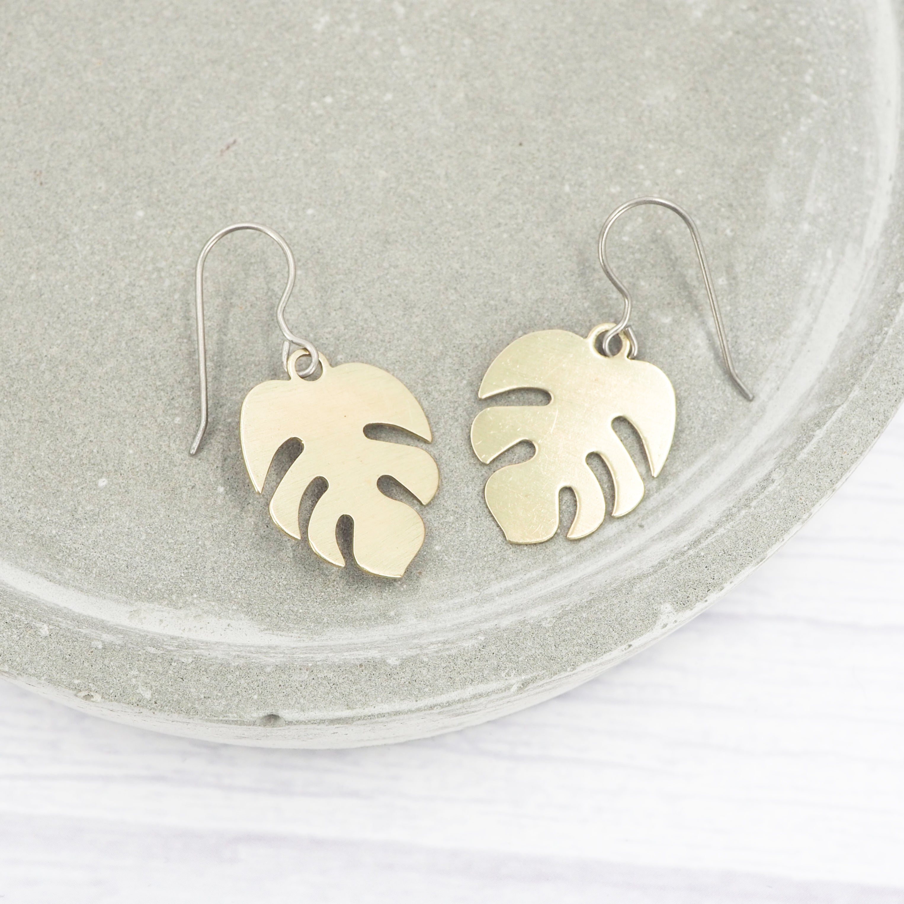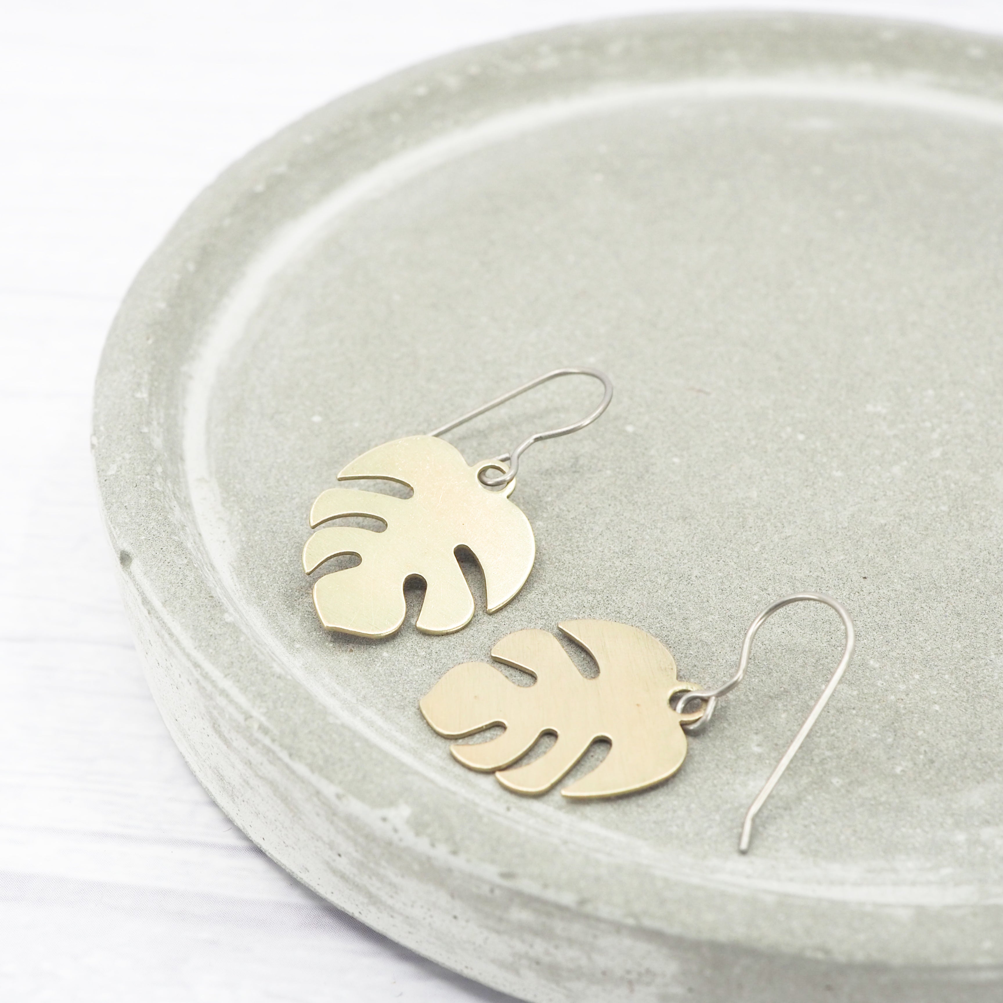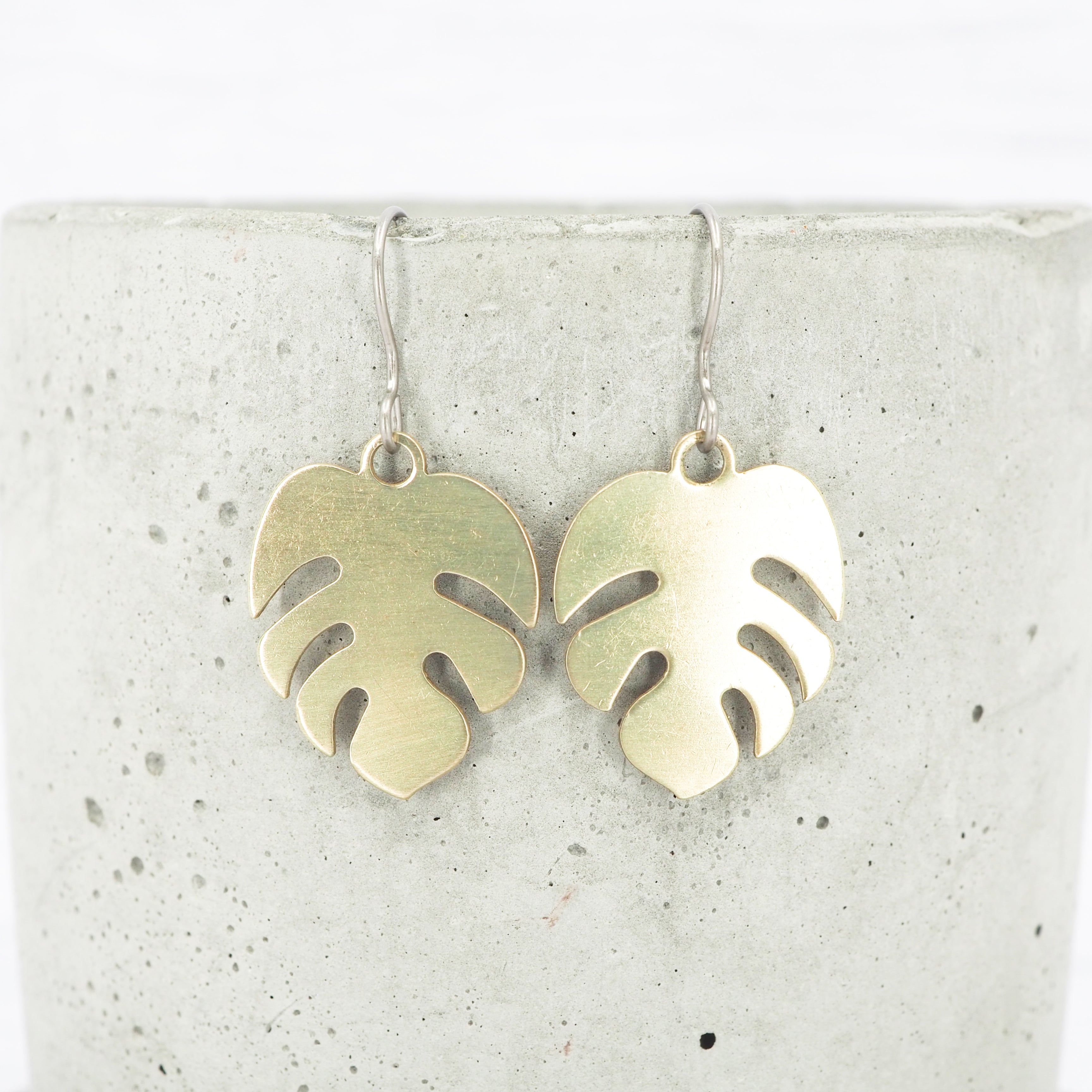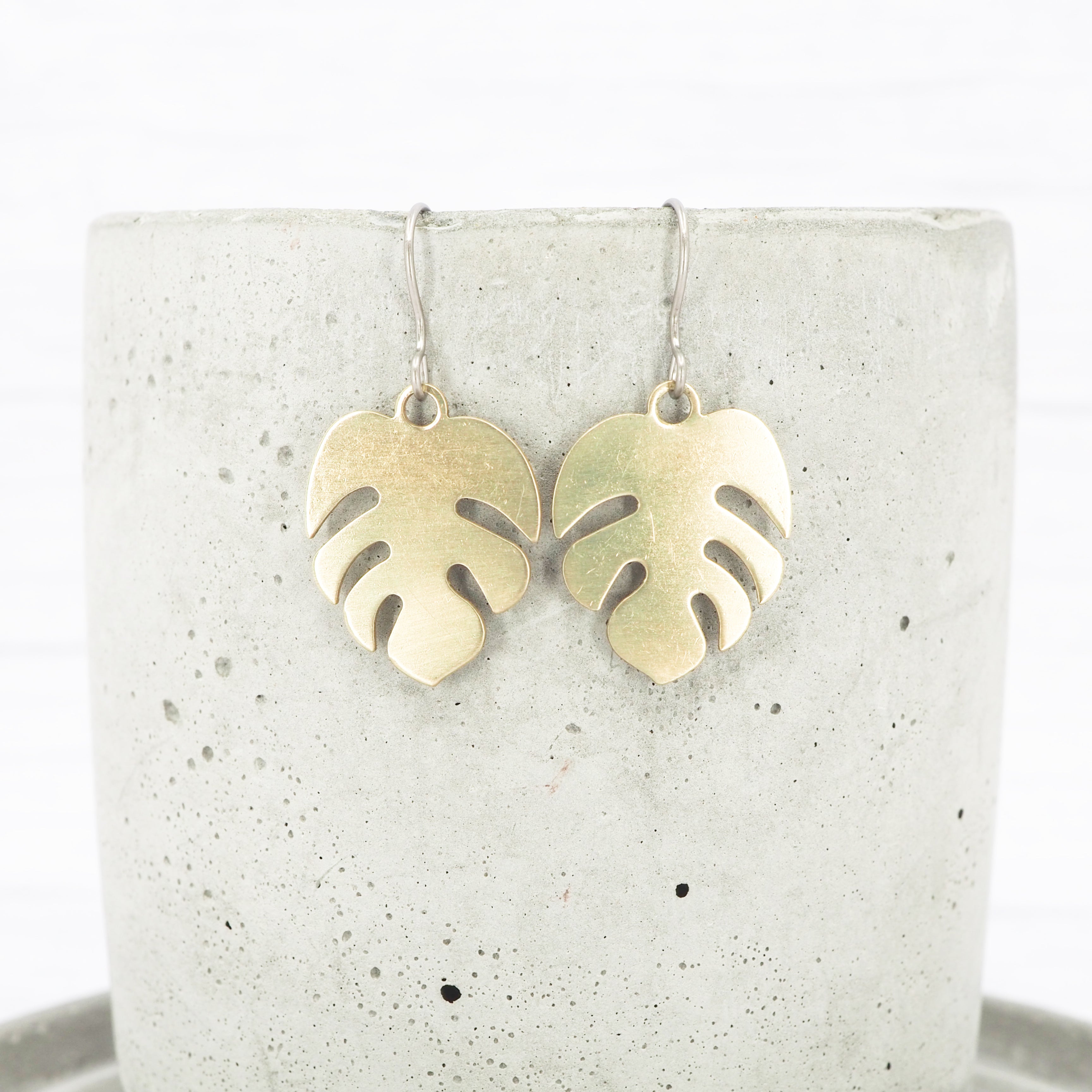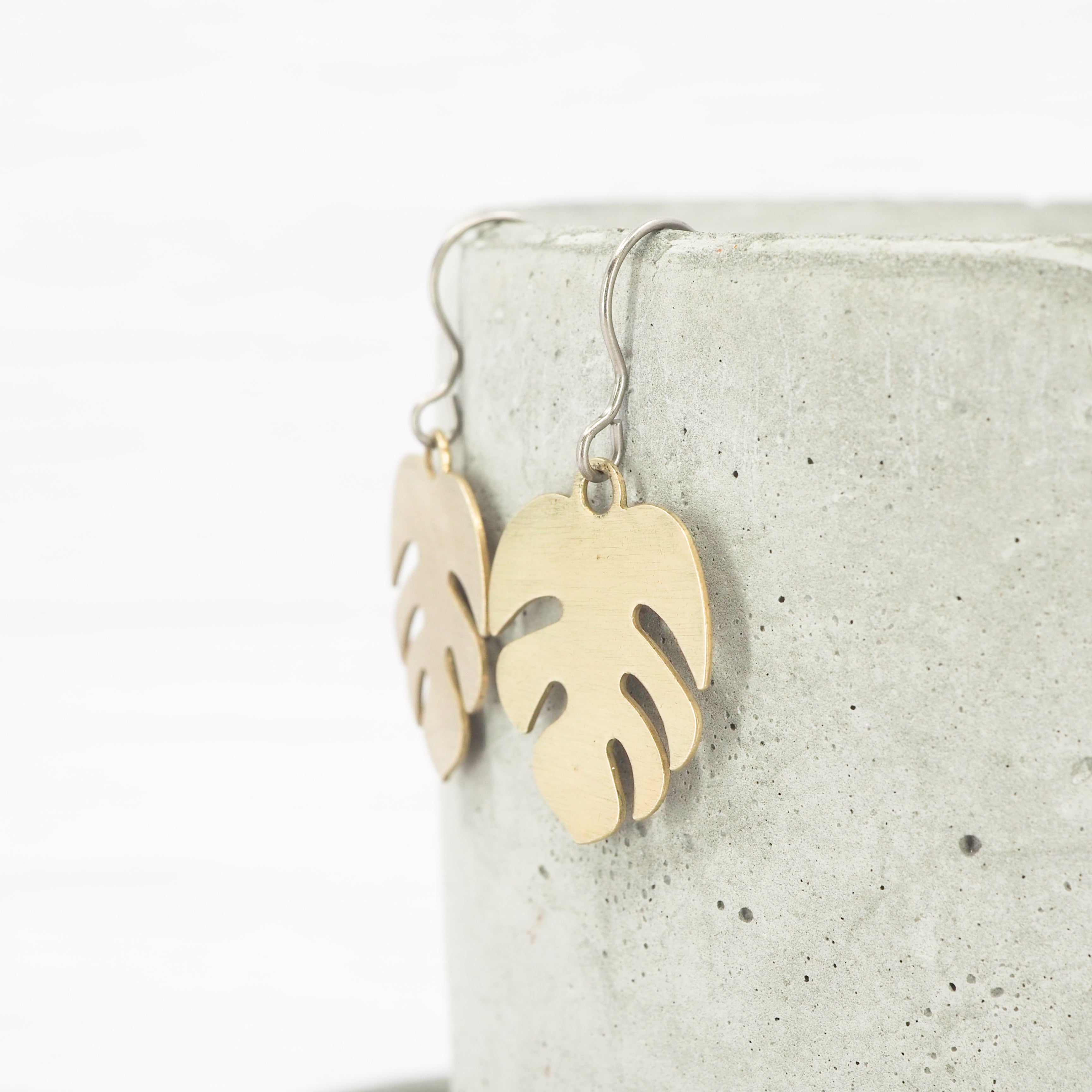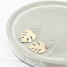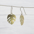 Small brass monstera leaf dangle earrings