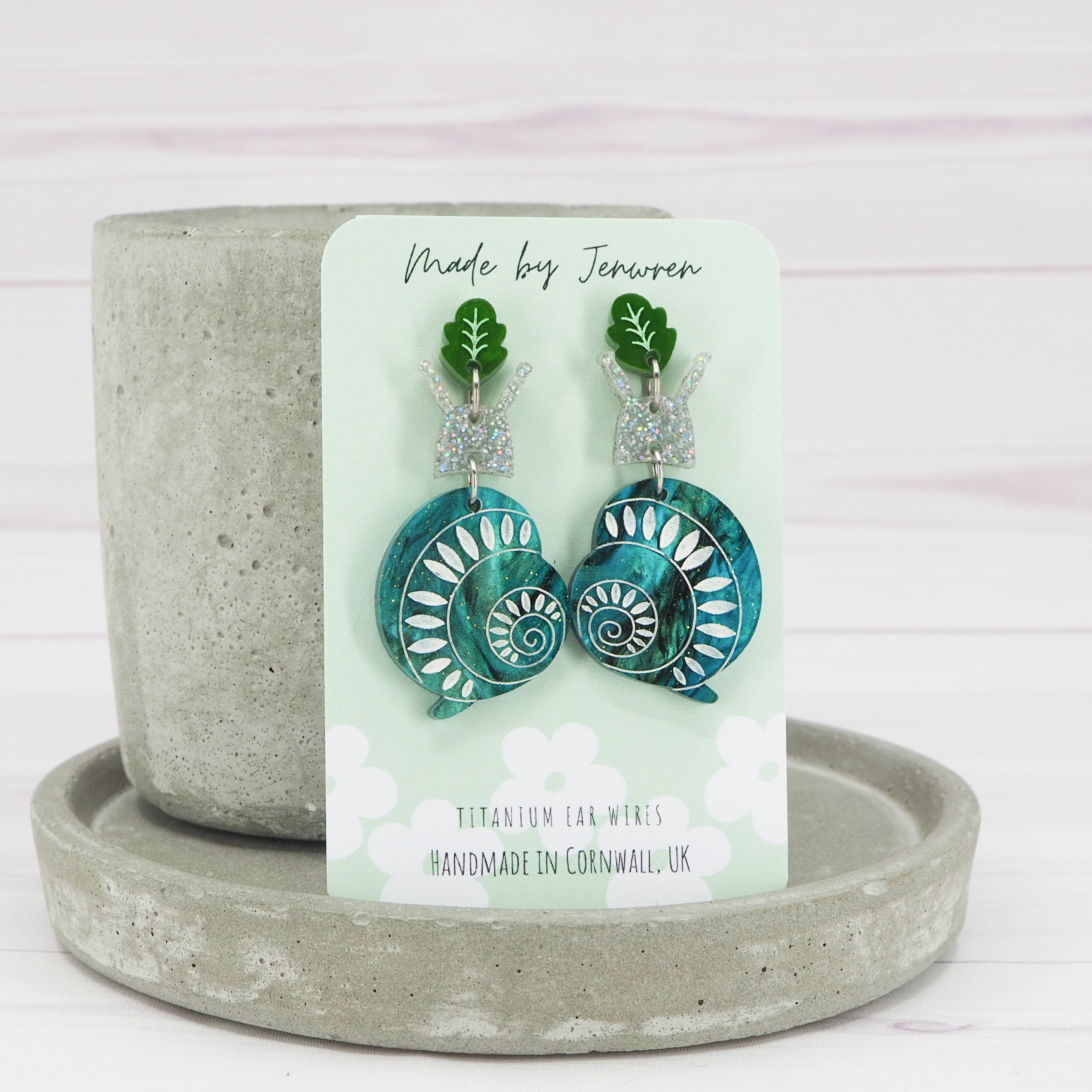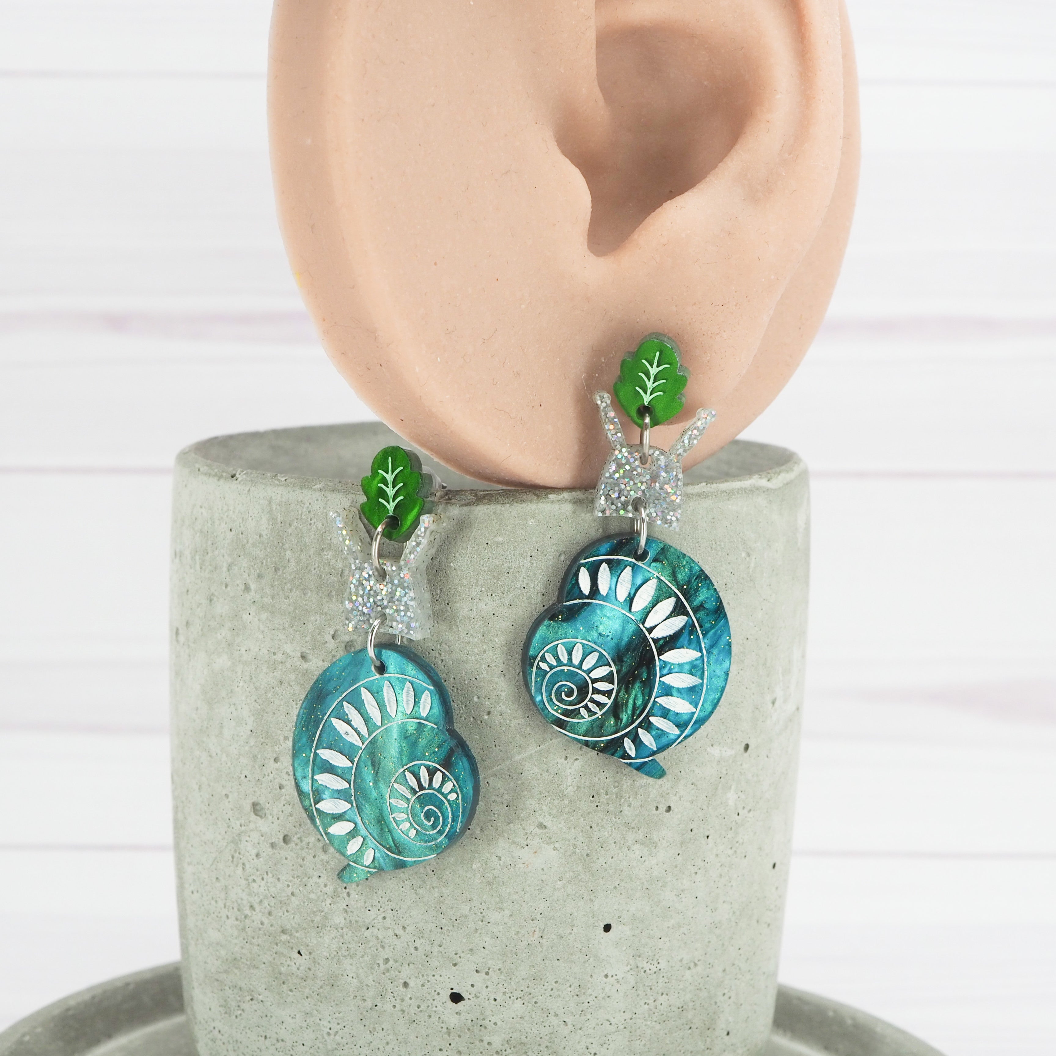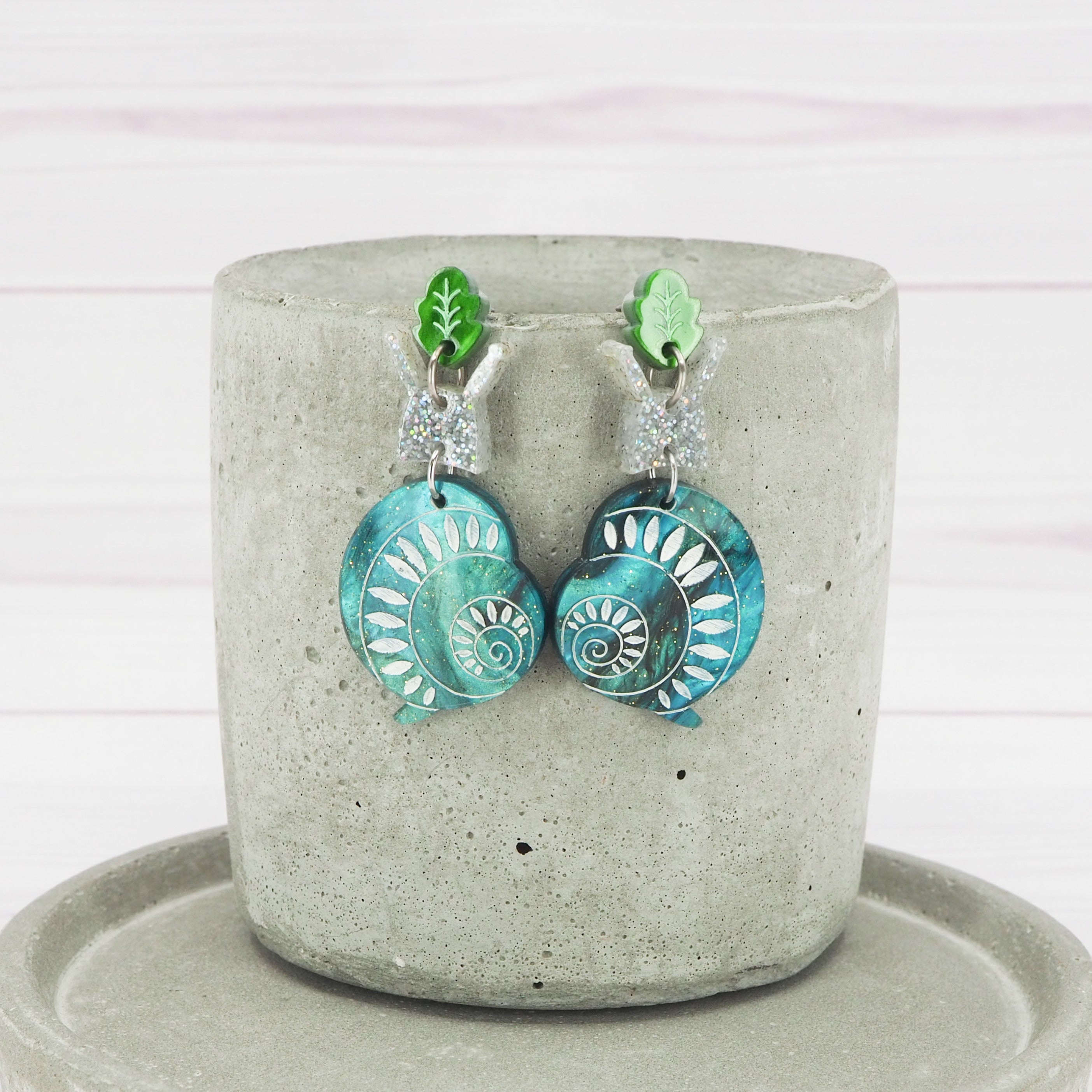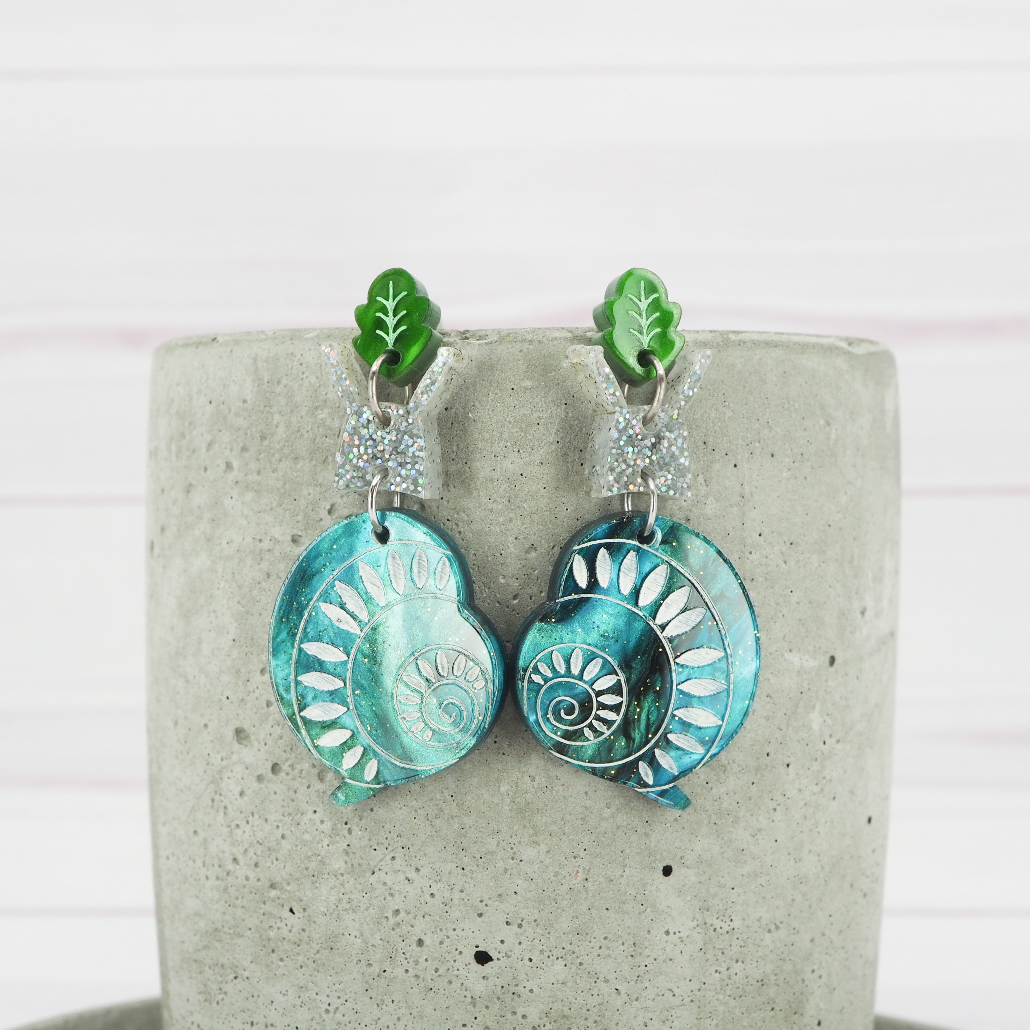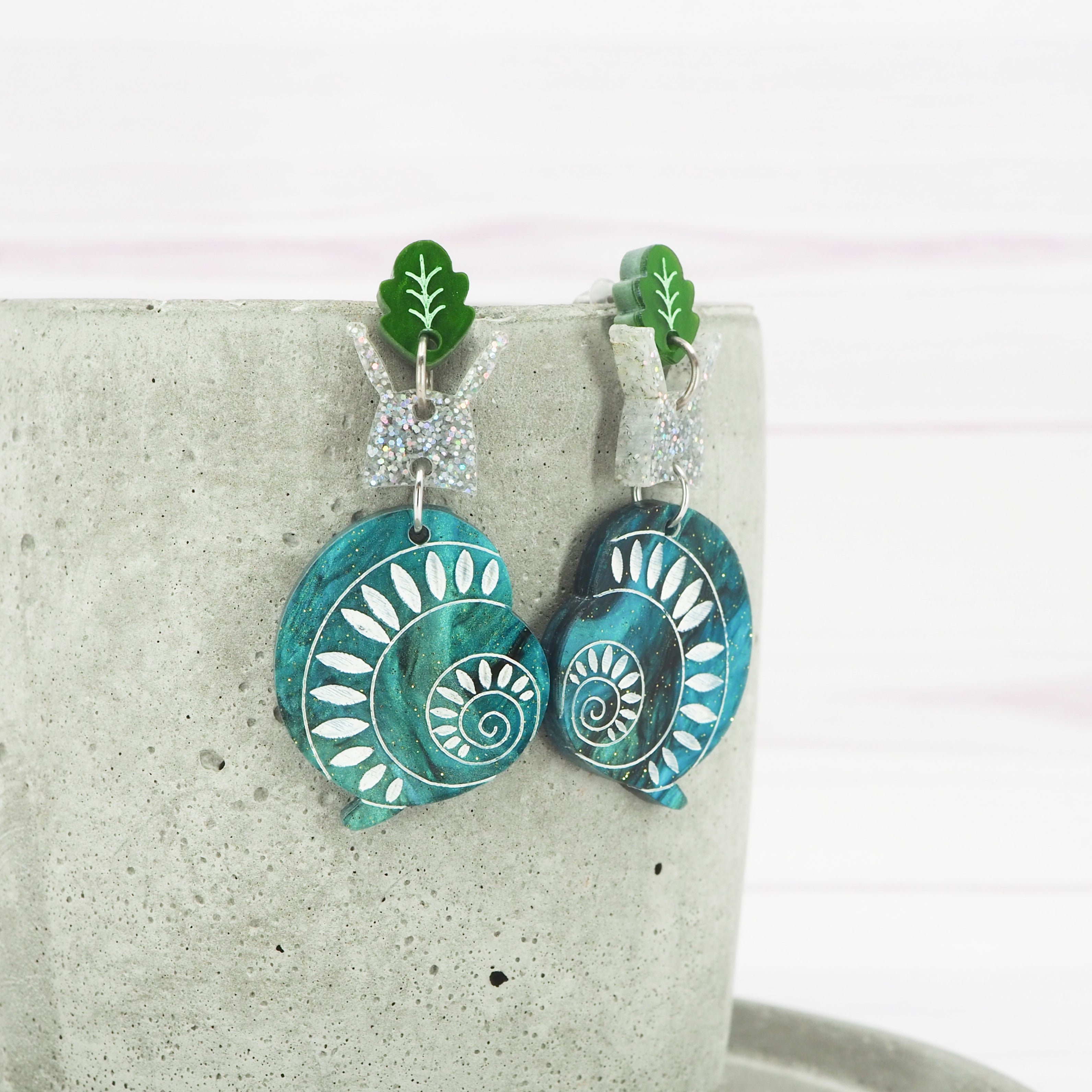 Acrylic snail dangle earrings
