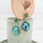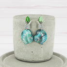 The earrings have a total drop length of 1.9" (4.8cm) from the top of the leaves to the bottom of the shells.