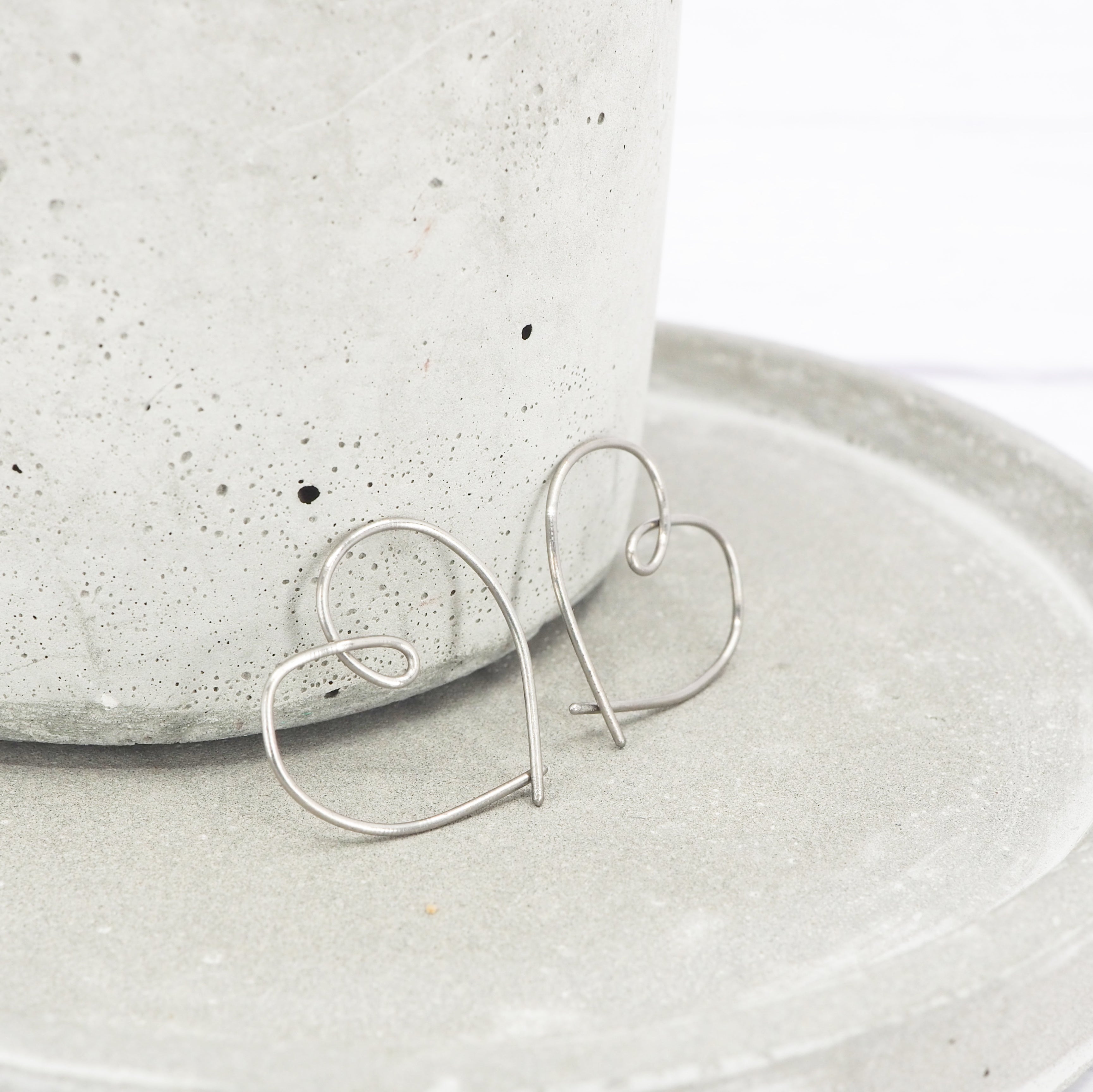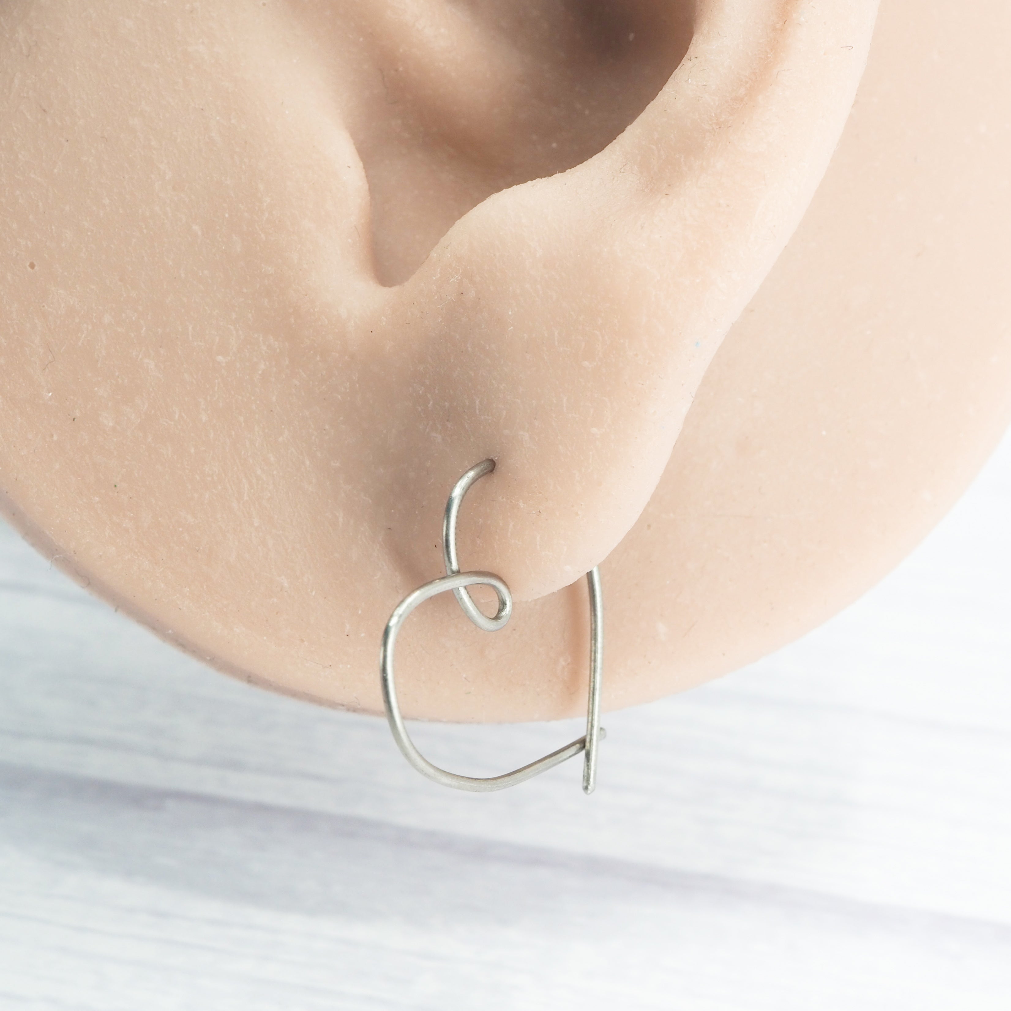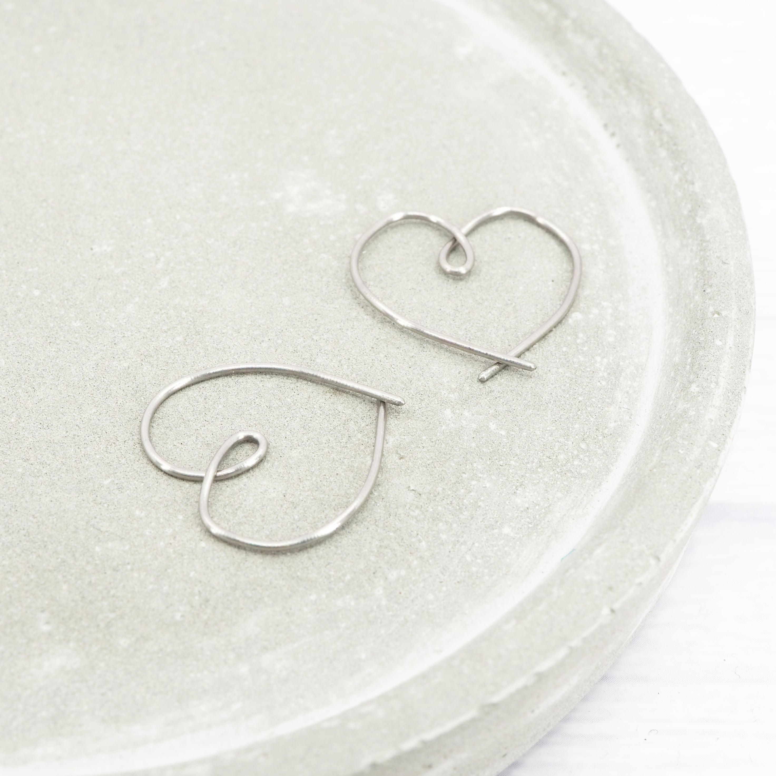 Heart hoop polished titanium earrings. 0.8mm hypoallergenic titanium wire.