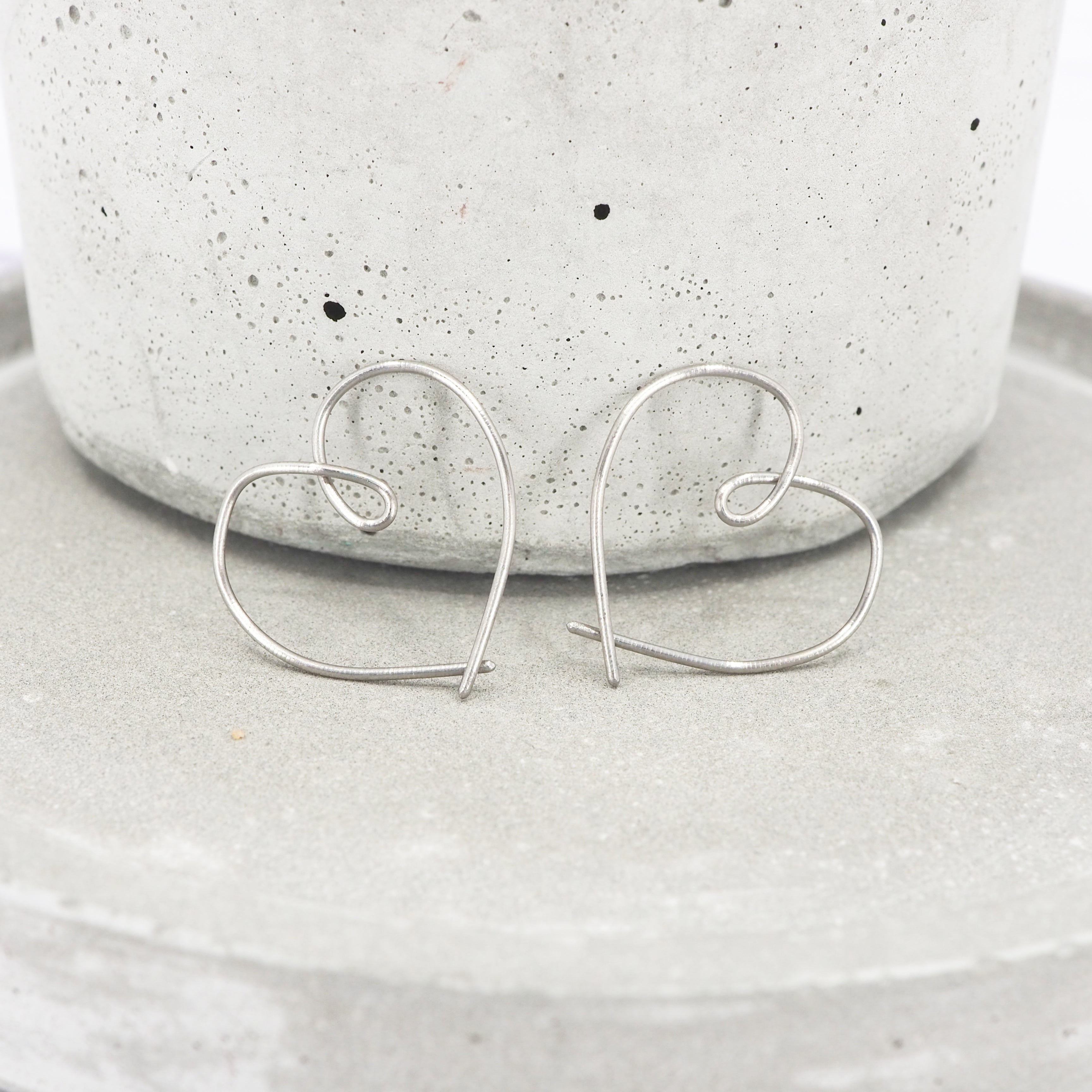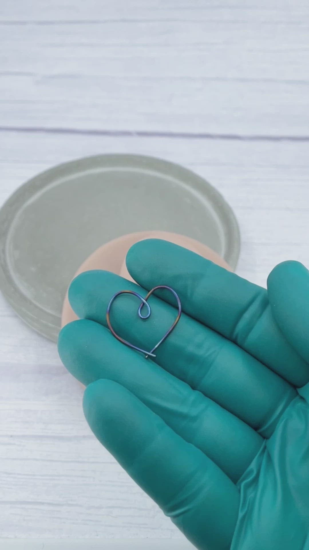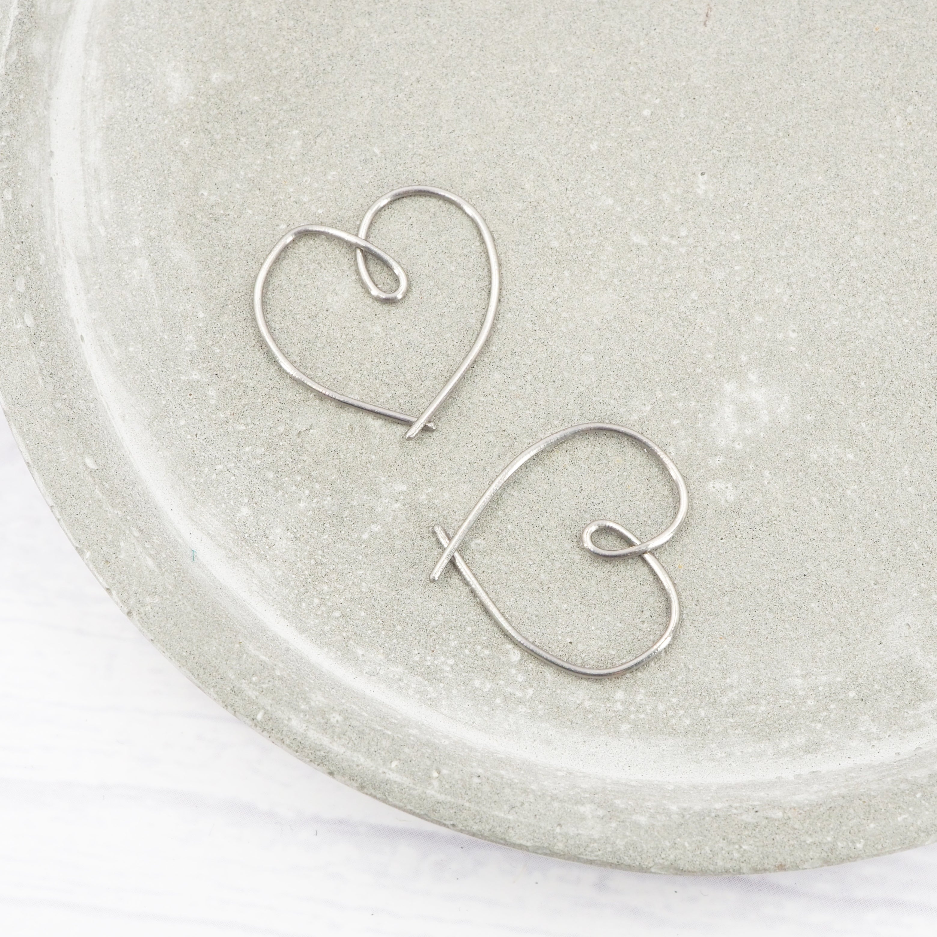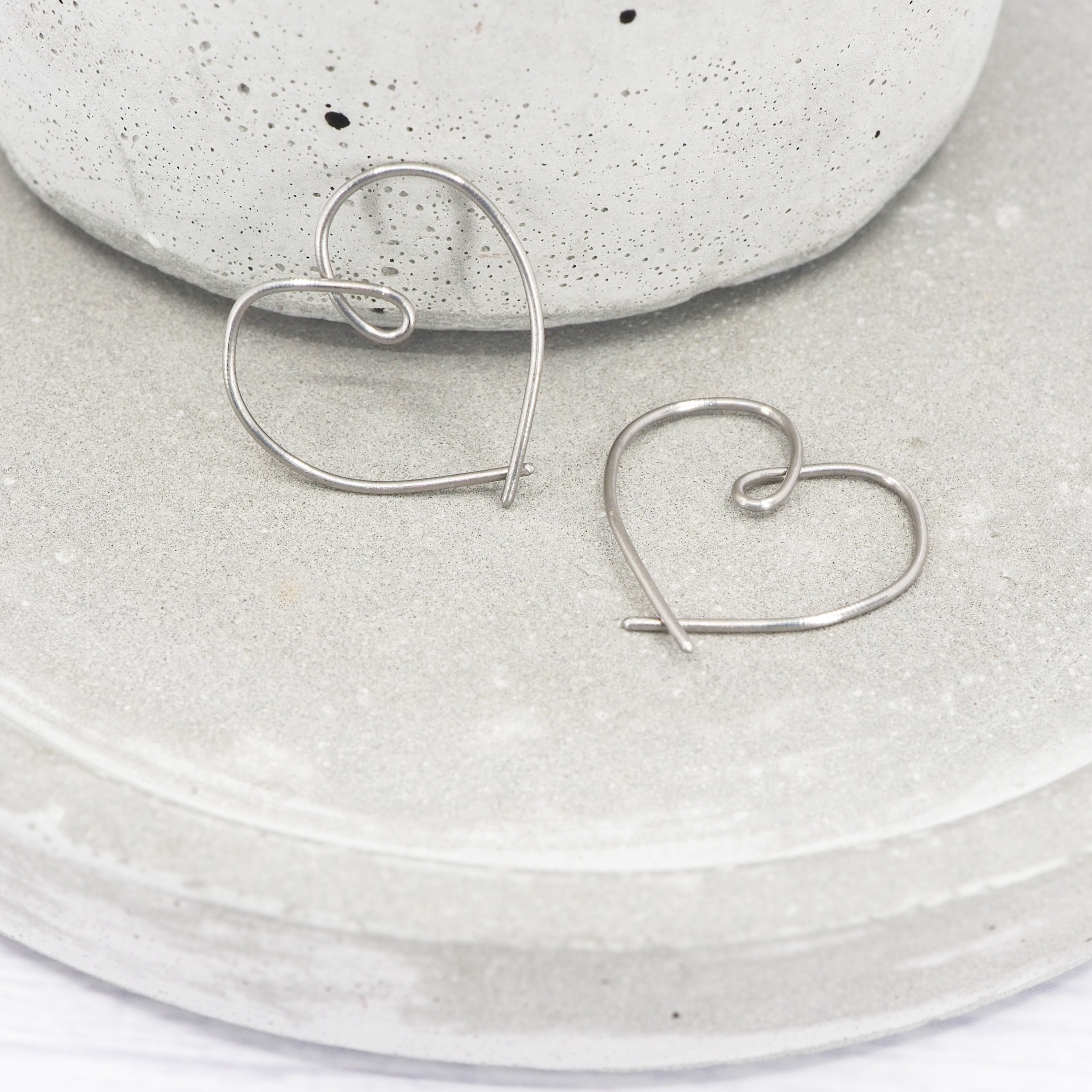 Heart hoop polished titanium earrings. 0.8mm hypoallergenic titanium wire.