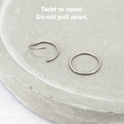 The hoops twist open as shown in the pictures above so they can be slipped through the piercing easily.