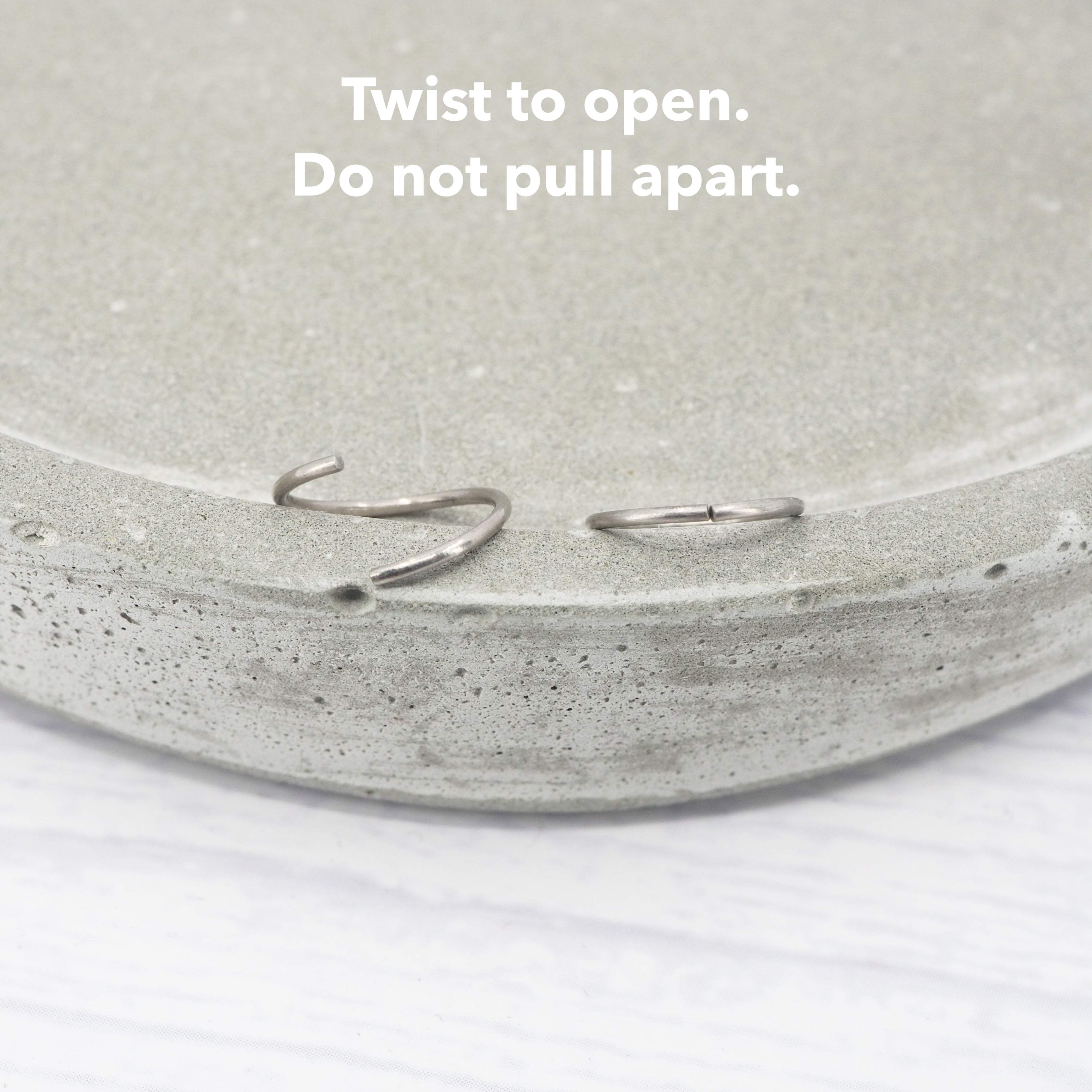 The hoops twist open as shown in the pictures above so they can be slipped through the piercing easily.