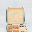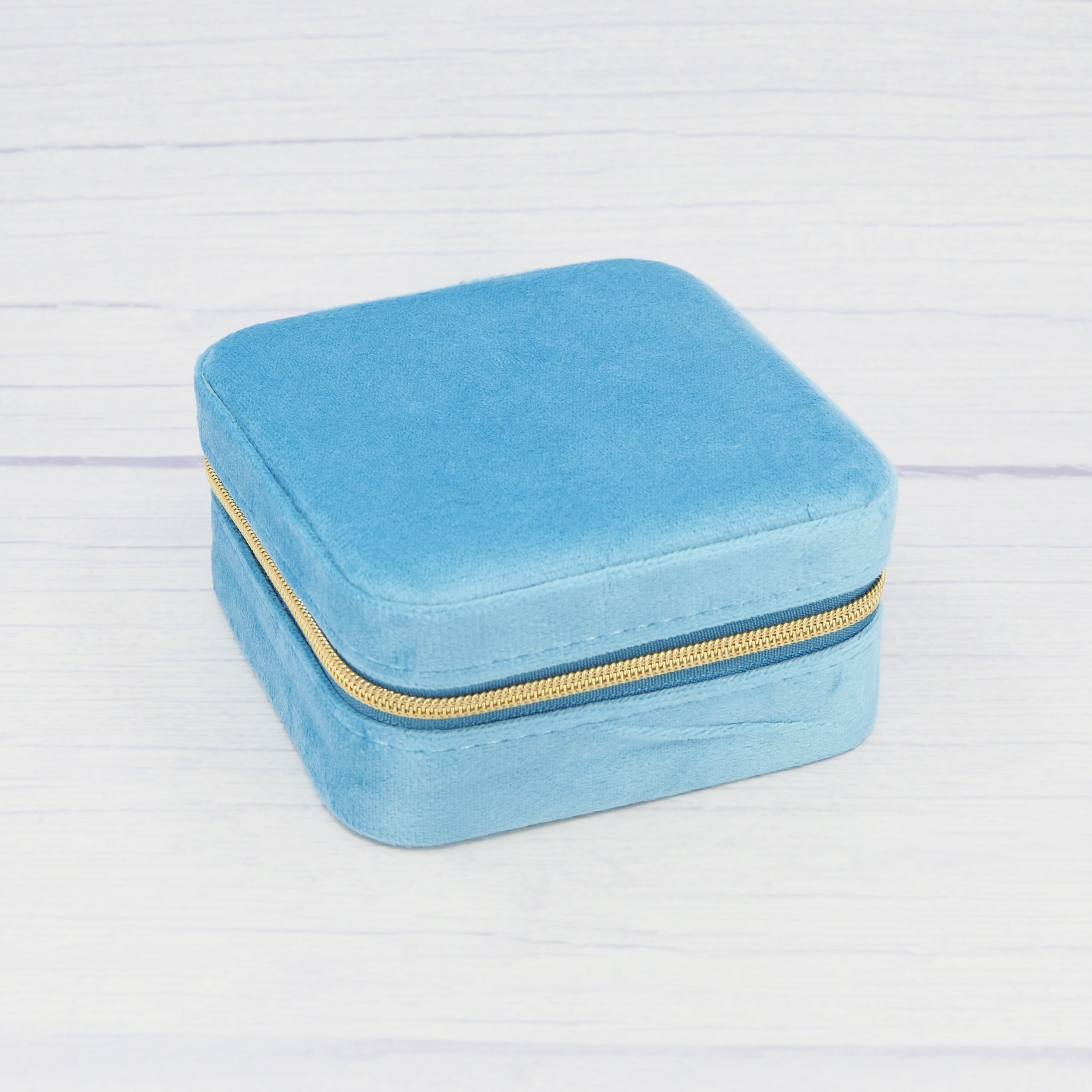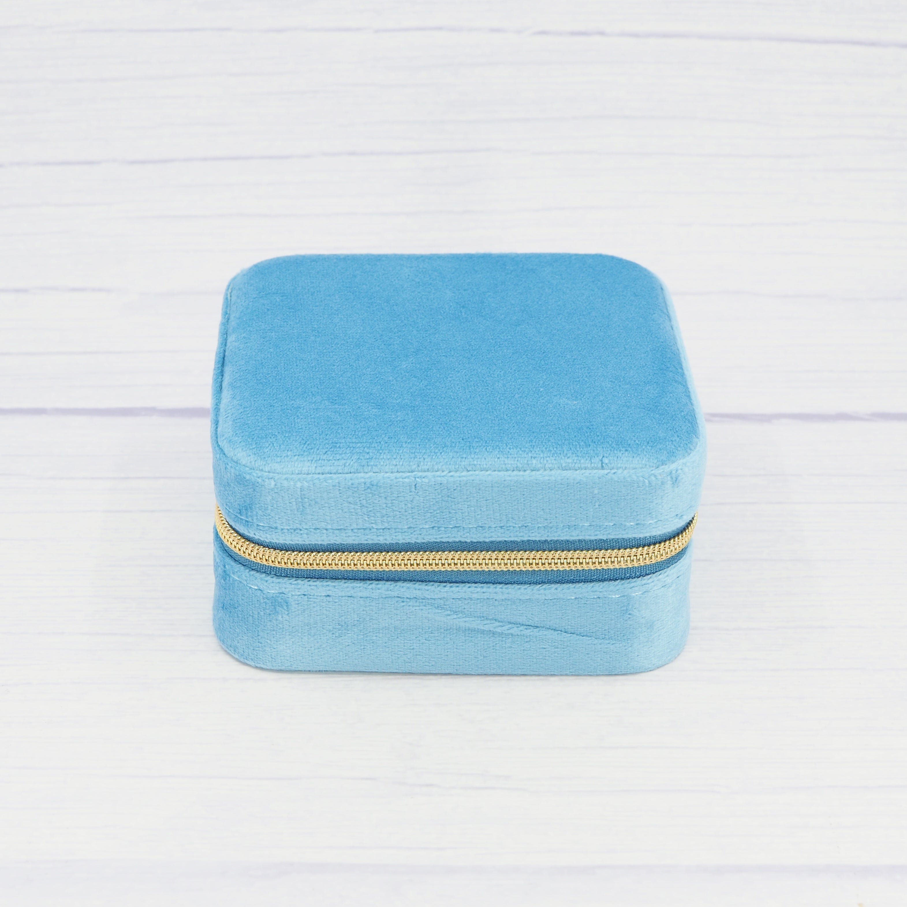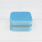 Experience compact and efficient storage for your jewellery pieces with this Gold velvet travel-sized box. This sleek box is designed to hold earrings, rings, necklaces, and more while adding a touch of elegance to your collection. The velvet fabric on the exterior is a rich Blue colour and the interior has a peachy tan hue. Measuring 2" (5 cm) from top to bottom and 4" (10 cm) from side to side, it is perfect for on-the-go storage.
