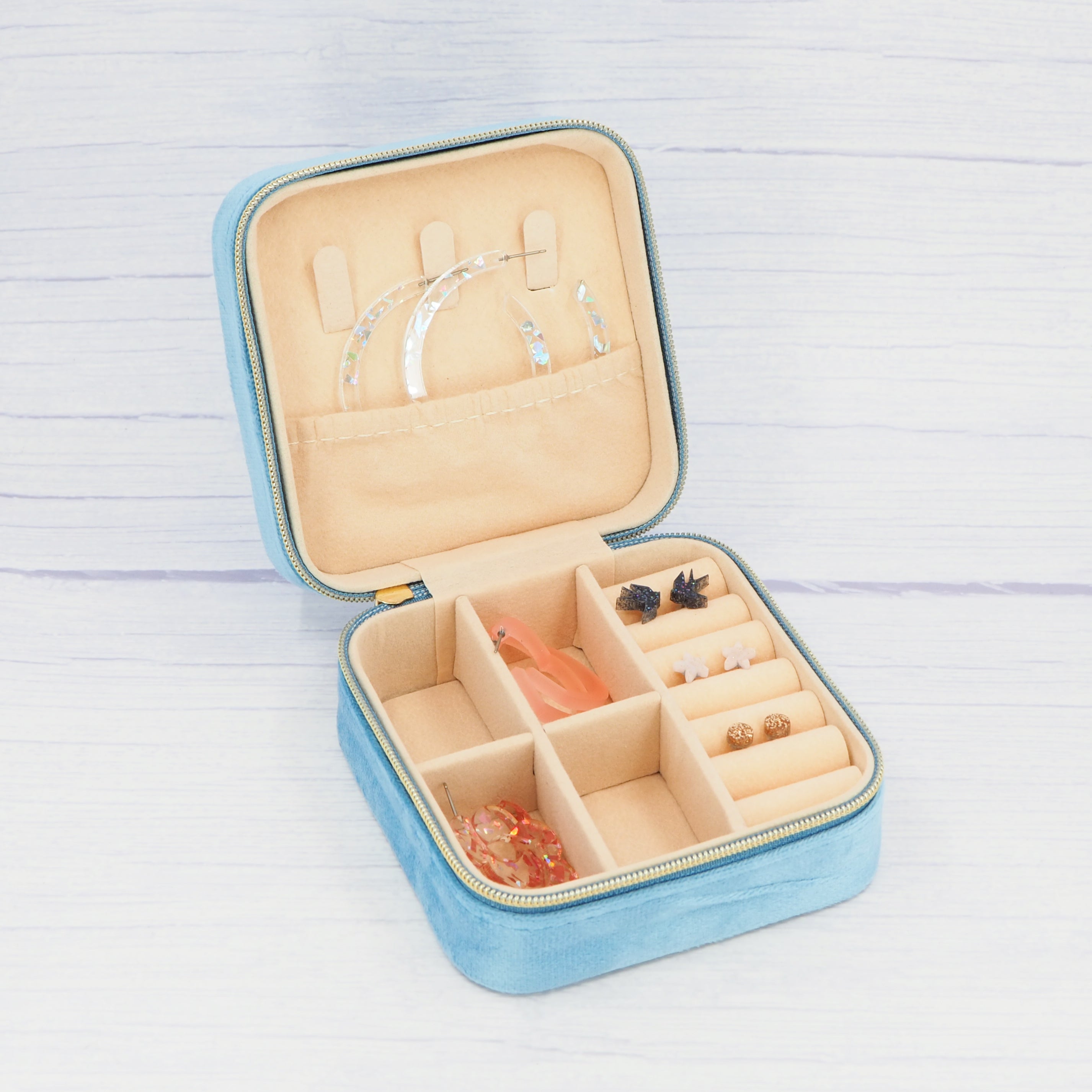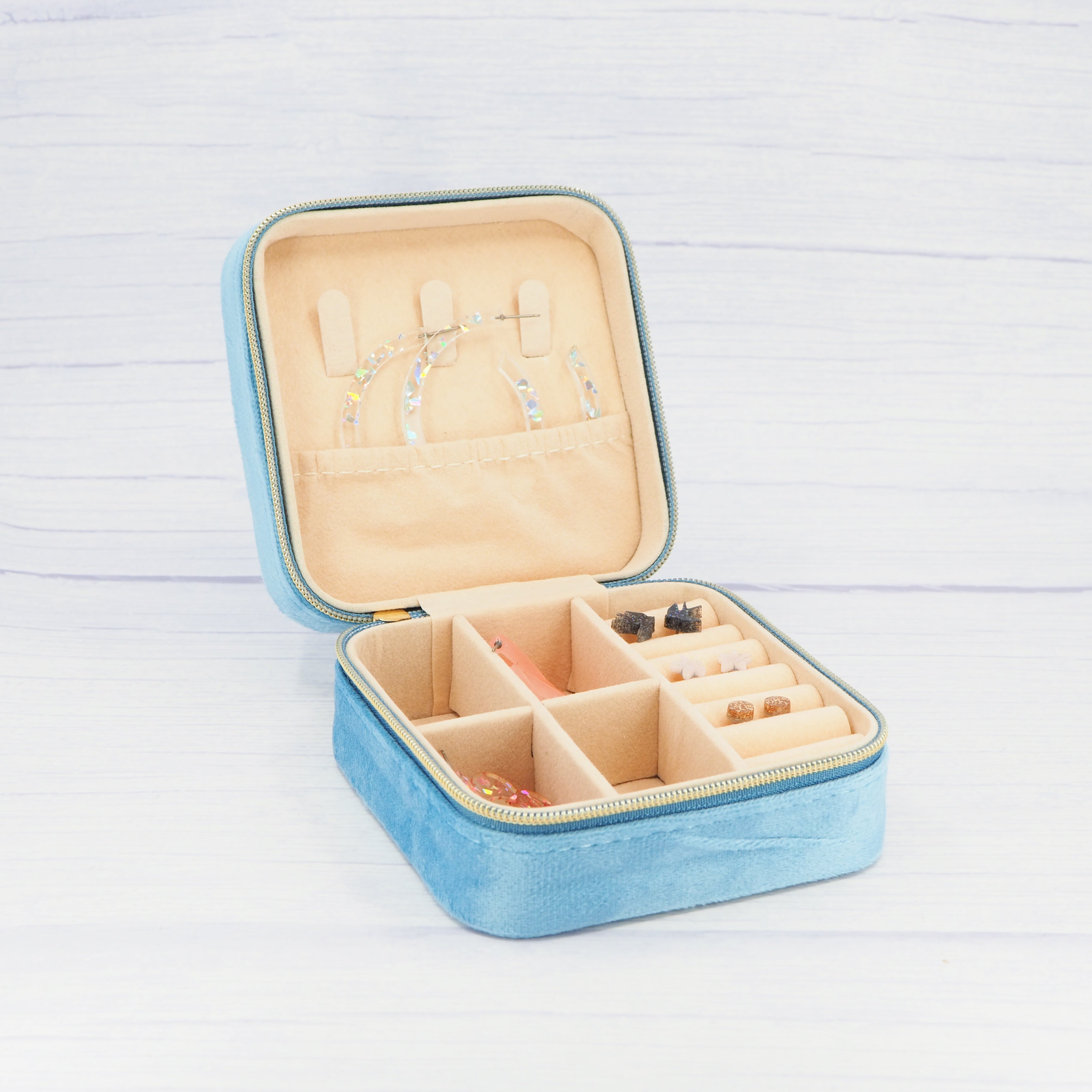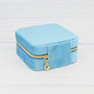 Blue velvet travel jewellery box