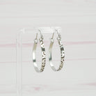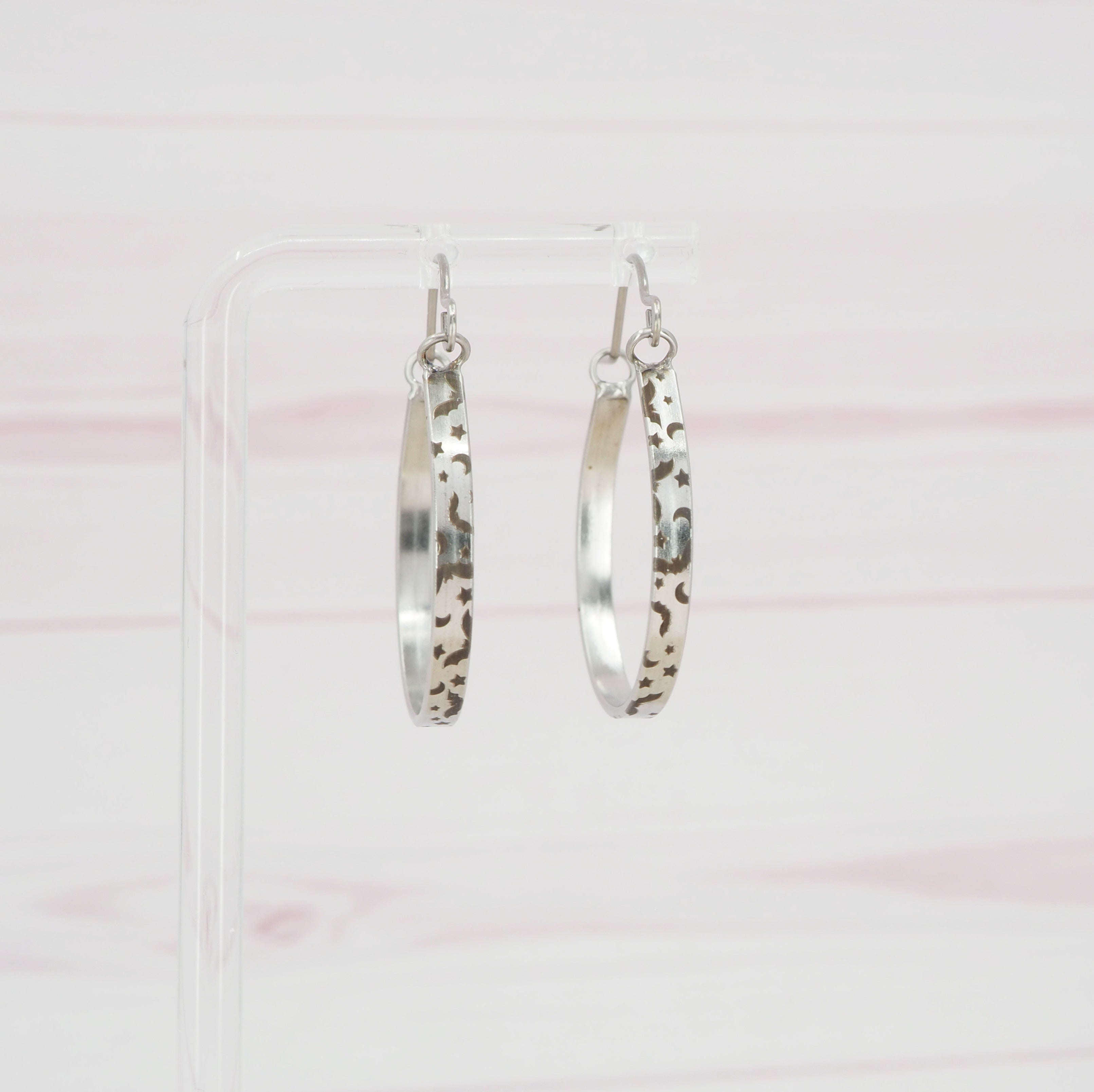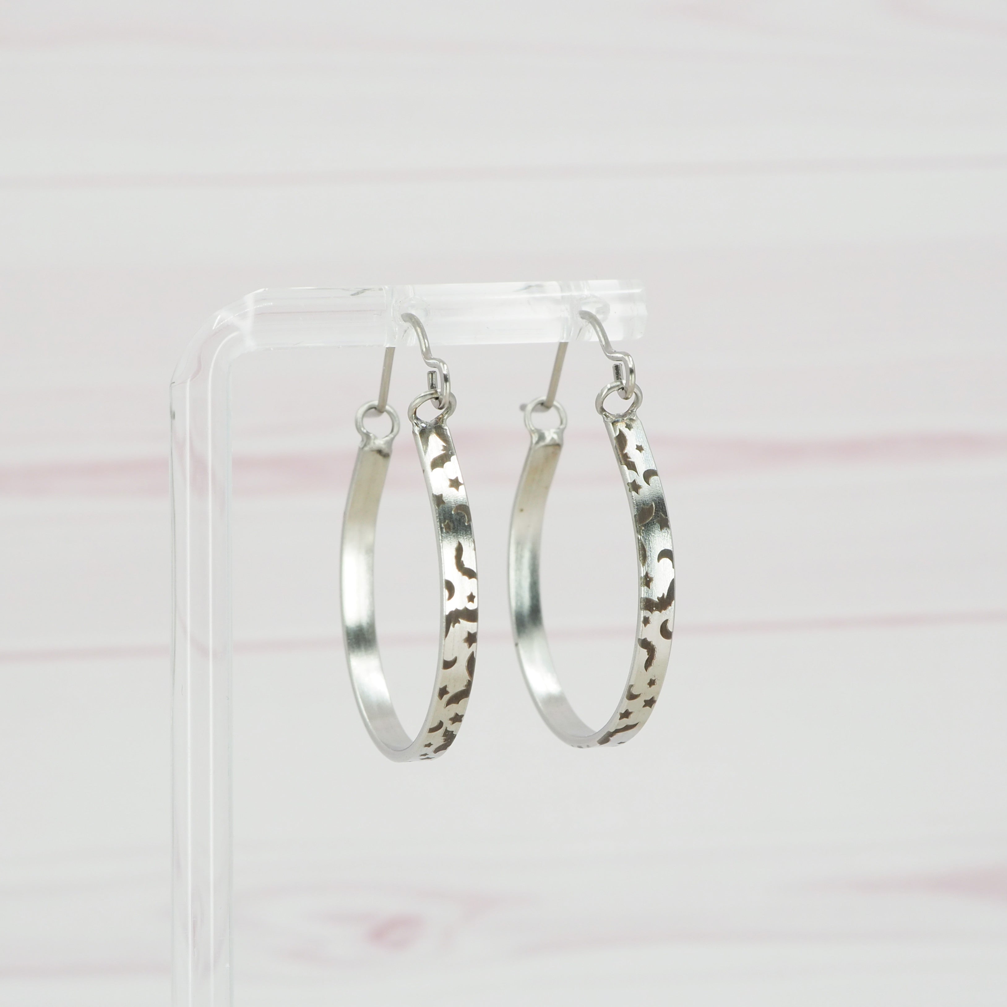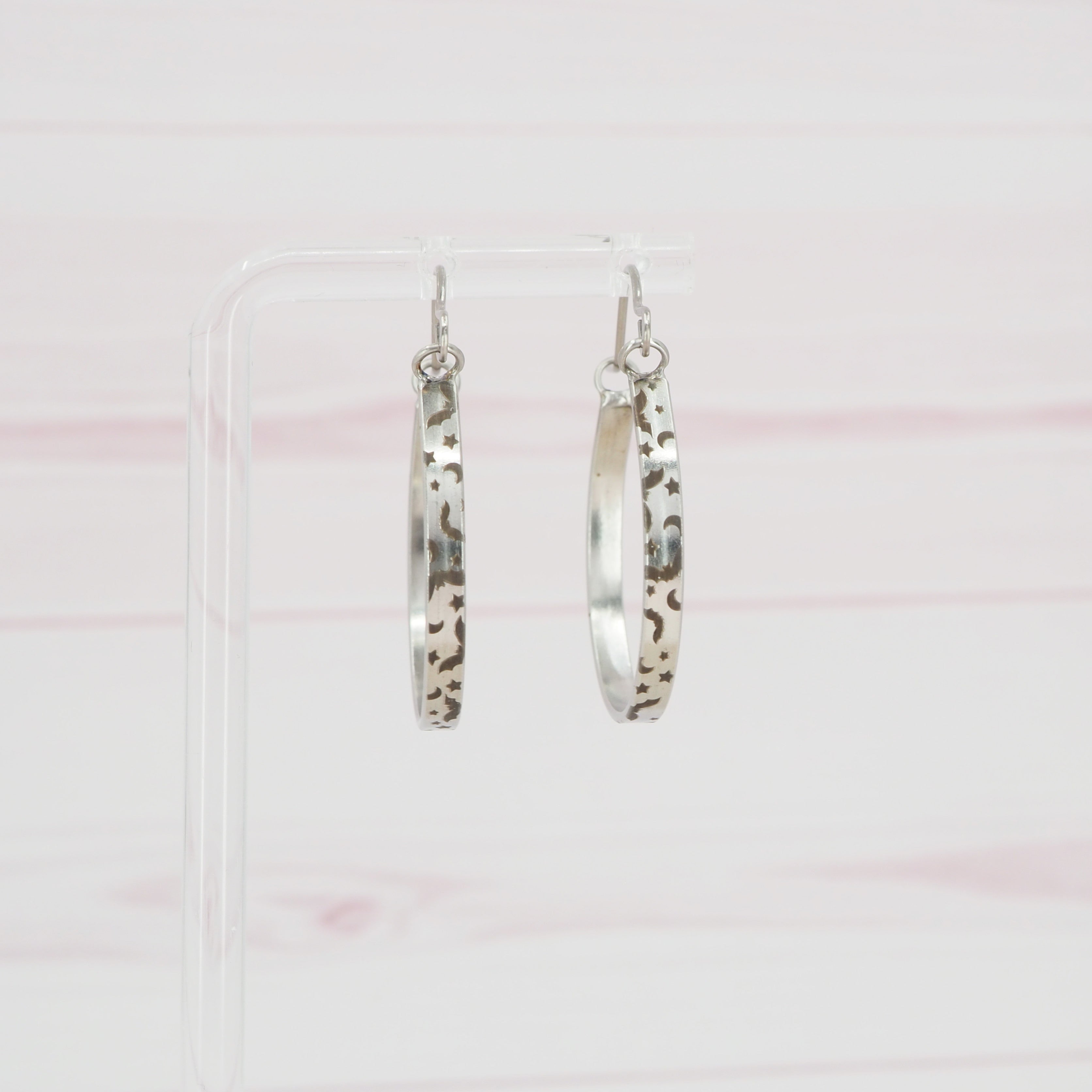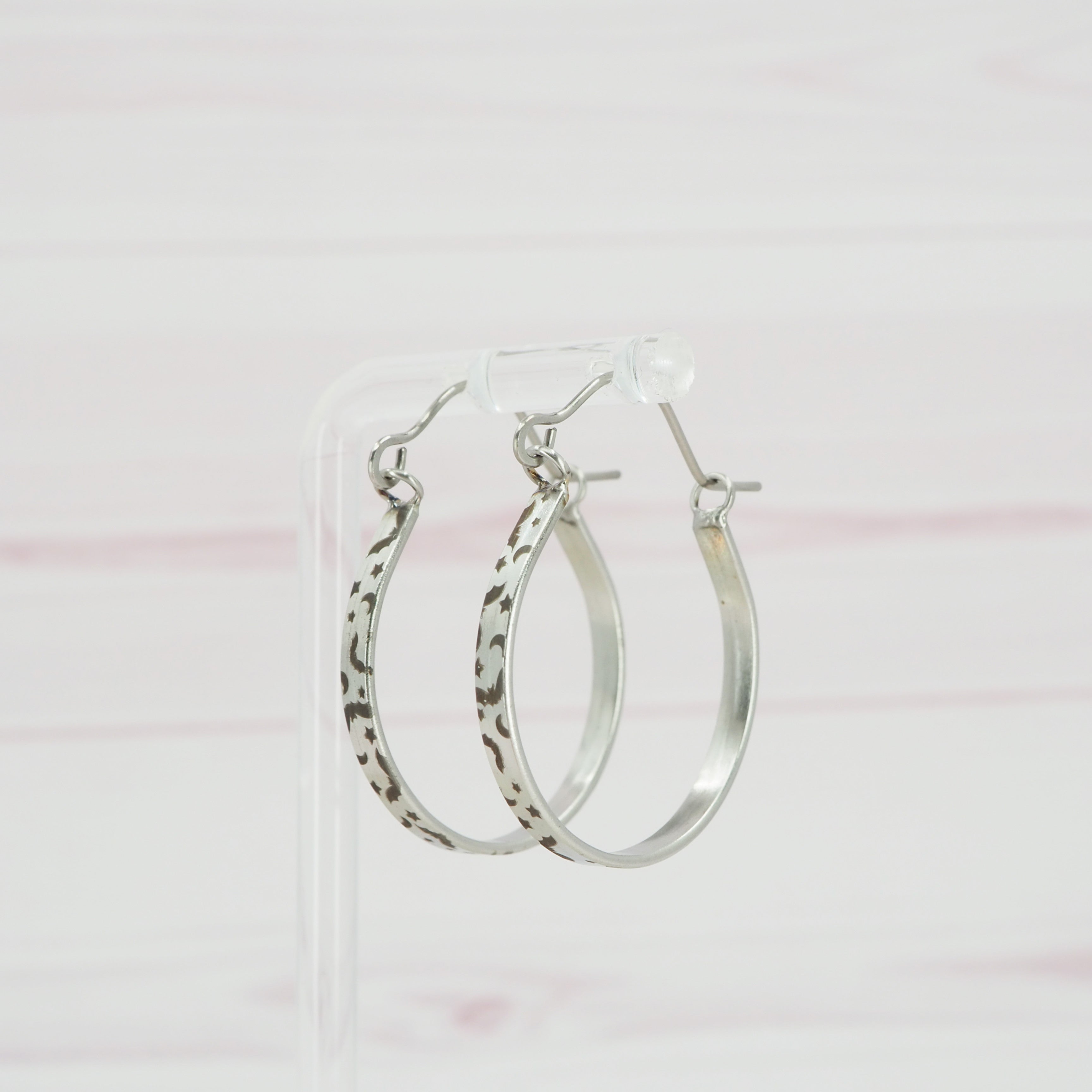 Solid stainless steel hoop earrings.