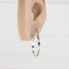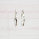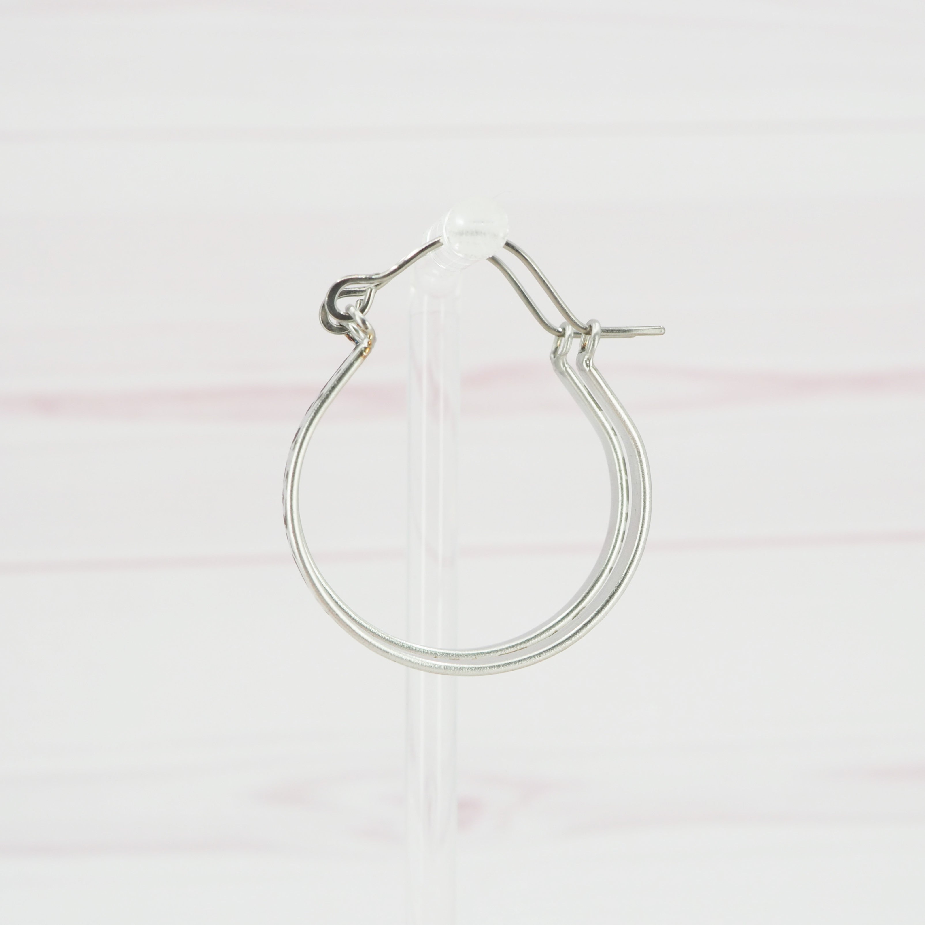 Solid stainless steel hoop earrings.