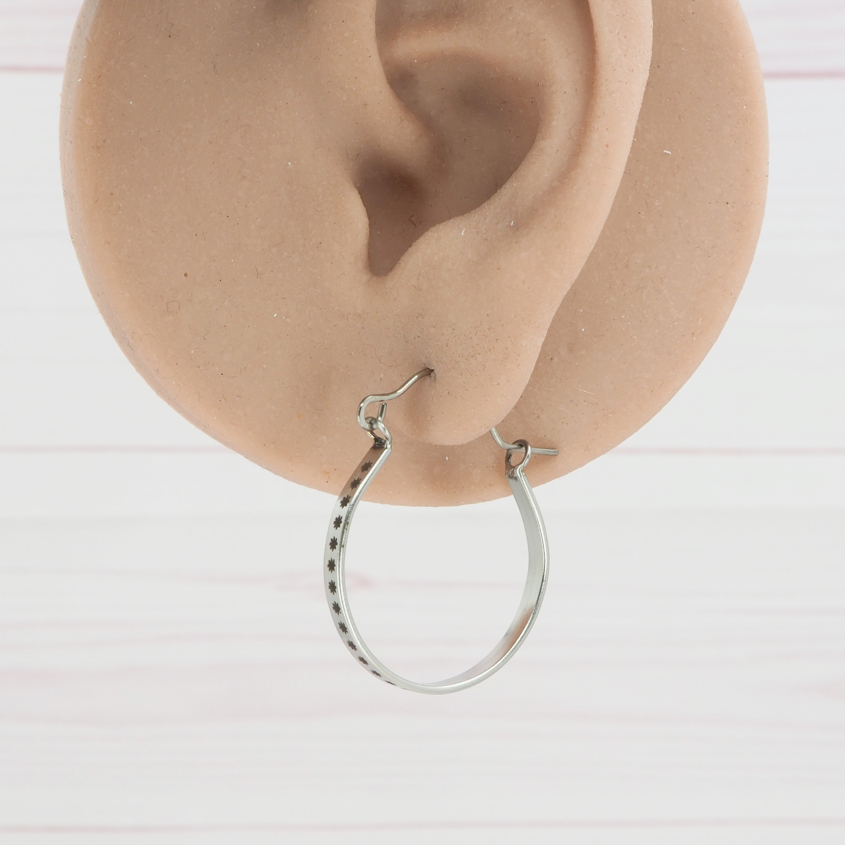 0.8mm Grade 1 Titanium ear wires. Suitable for even sensitive ears.