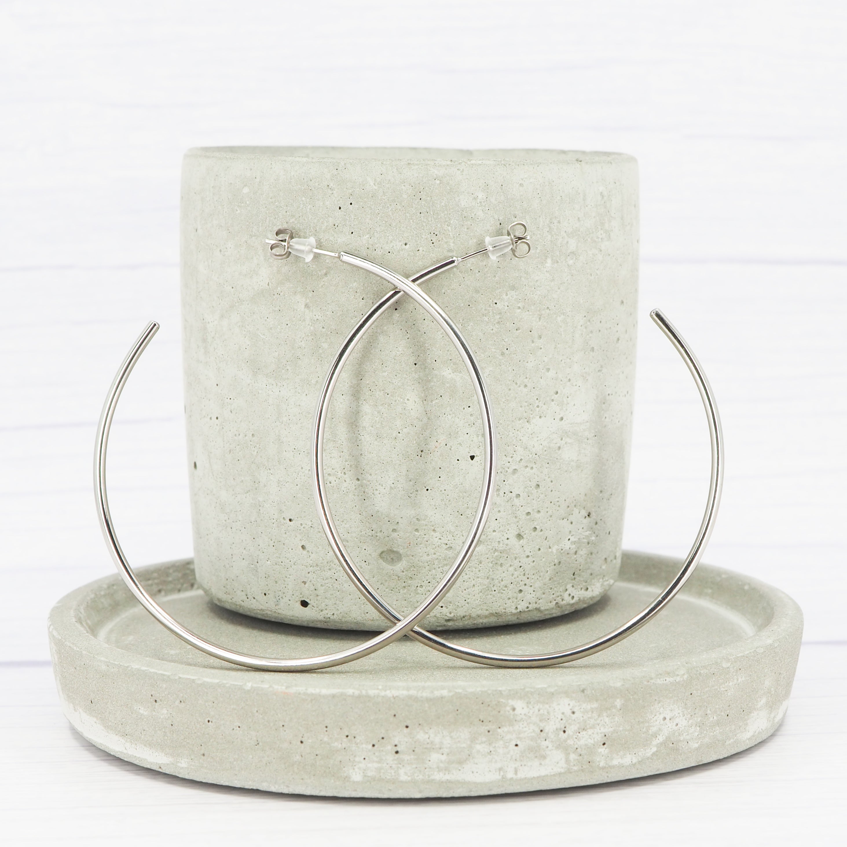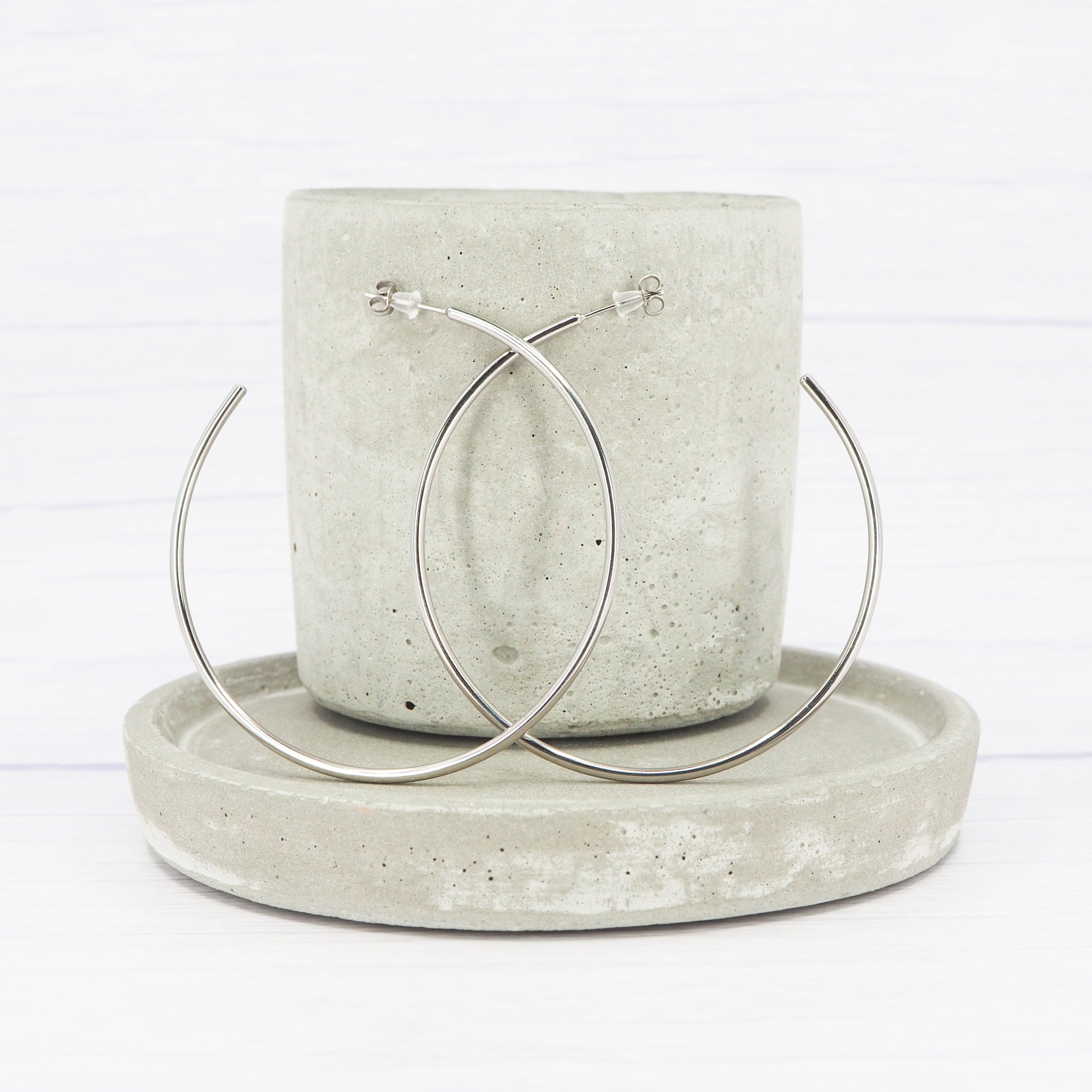 Solid 2.75-inch titanium hoop earrings.