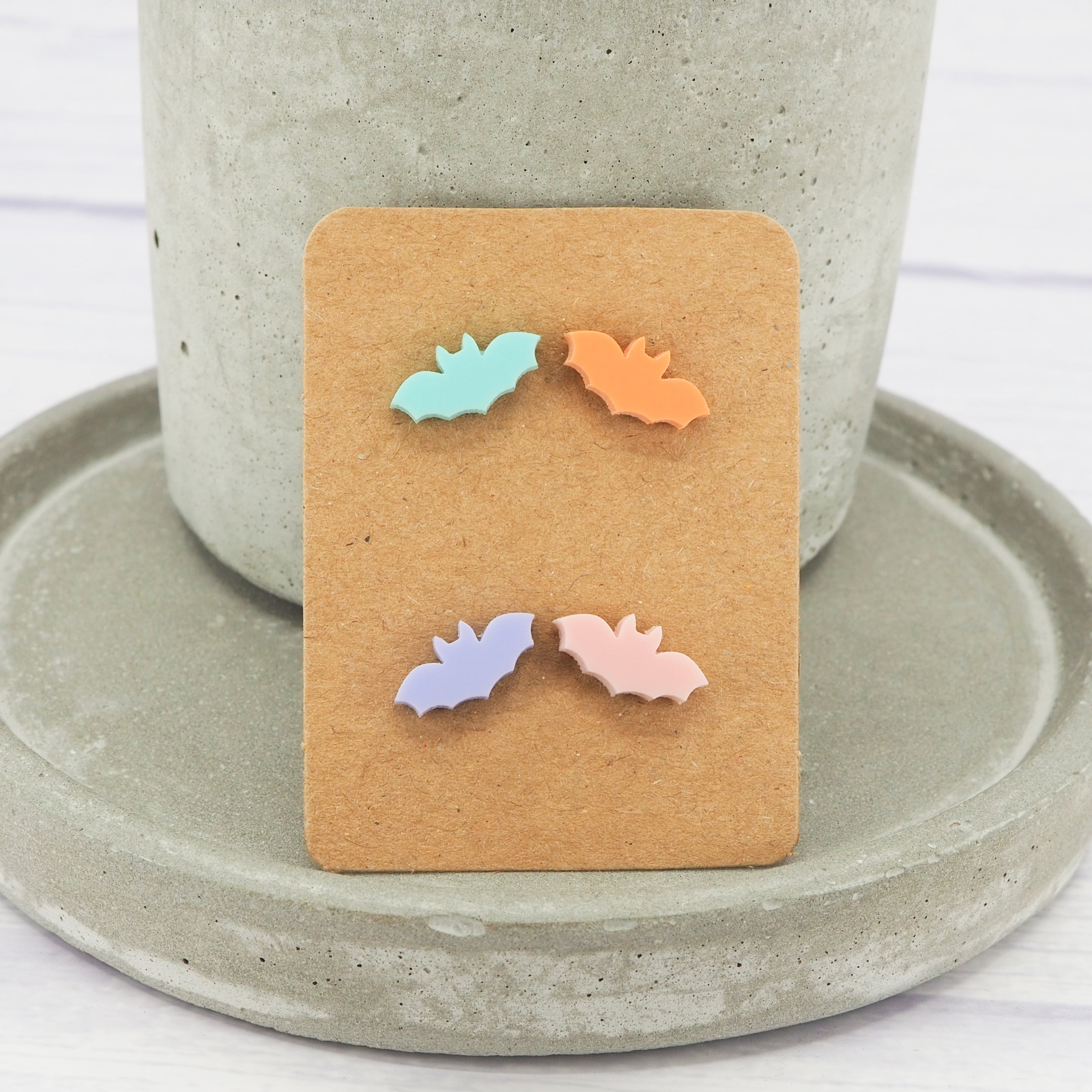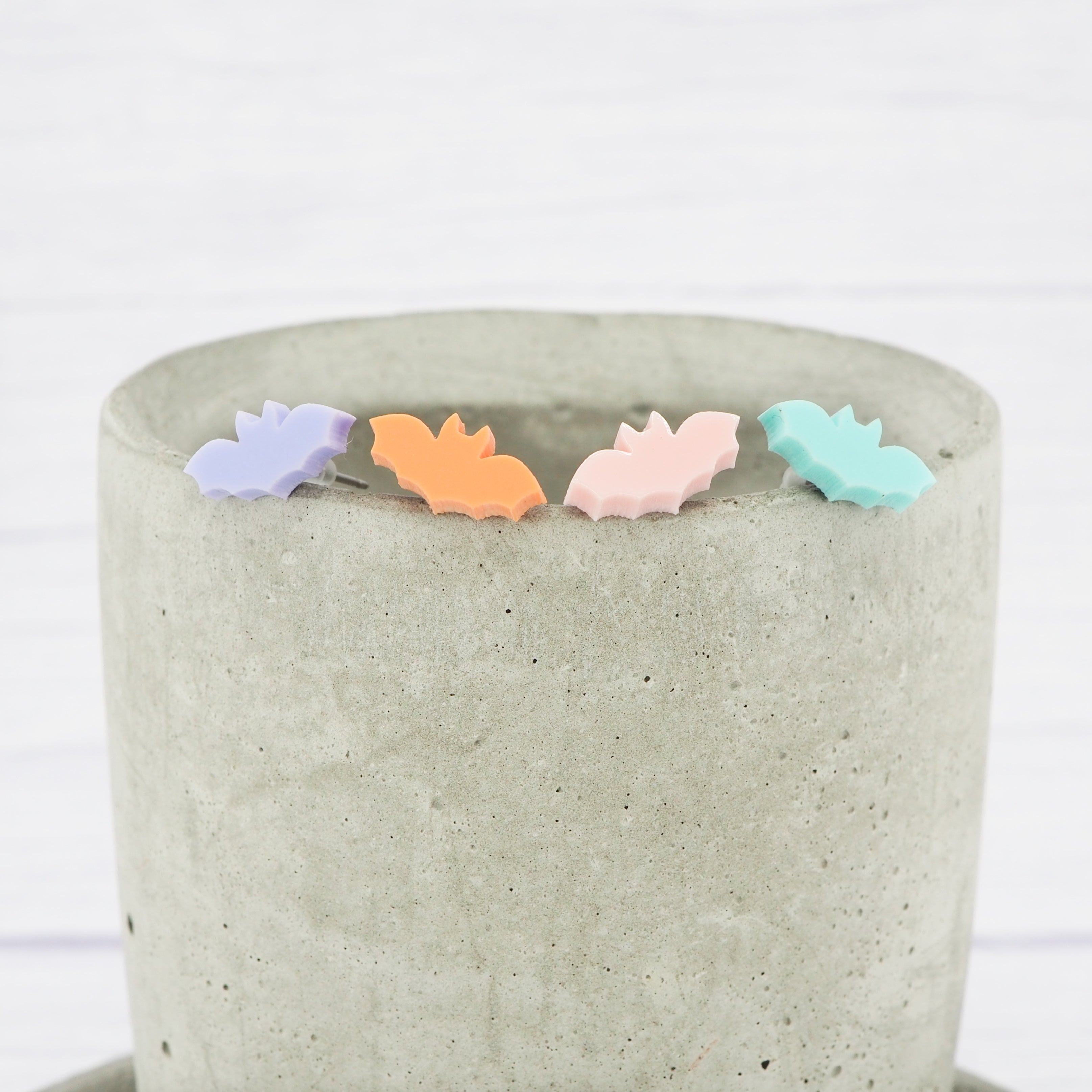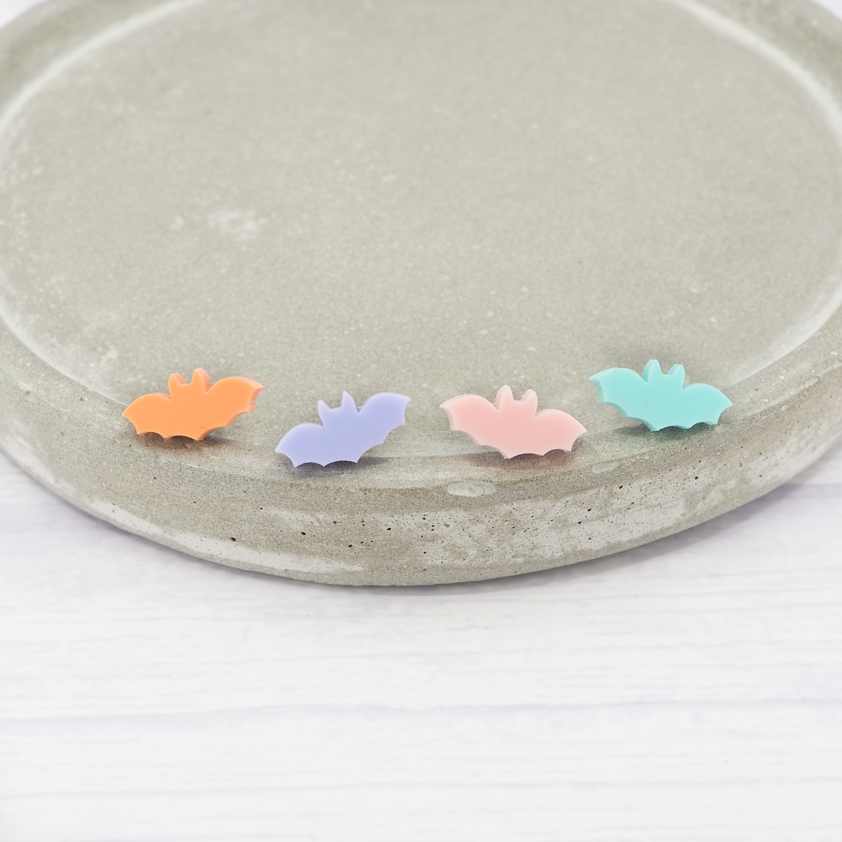 Pastel bat studs with 0.7mm titanium ear stems.