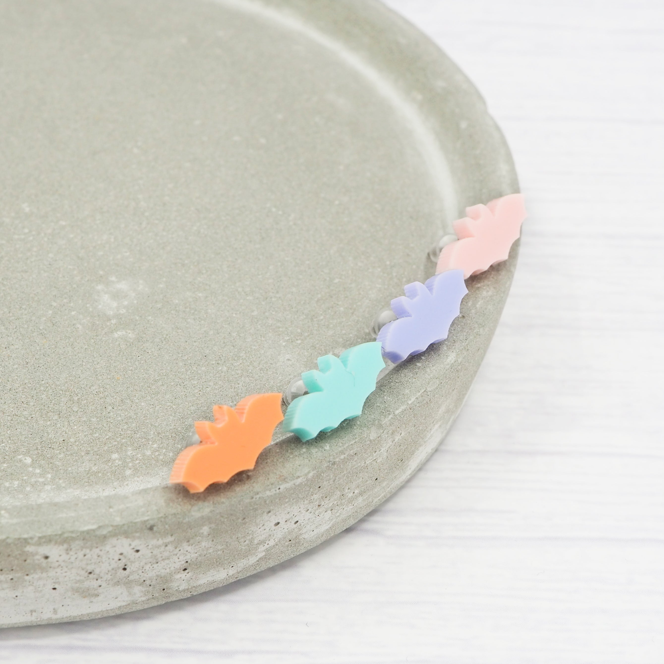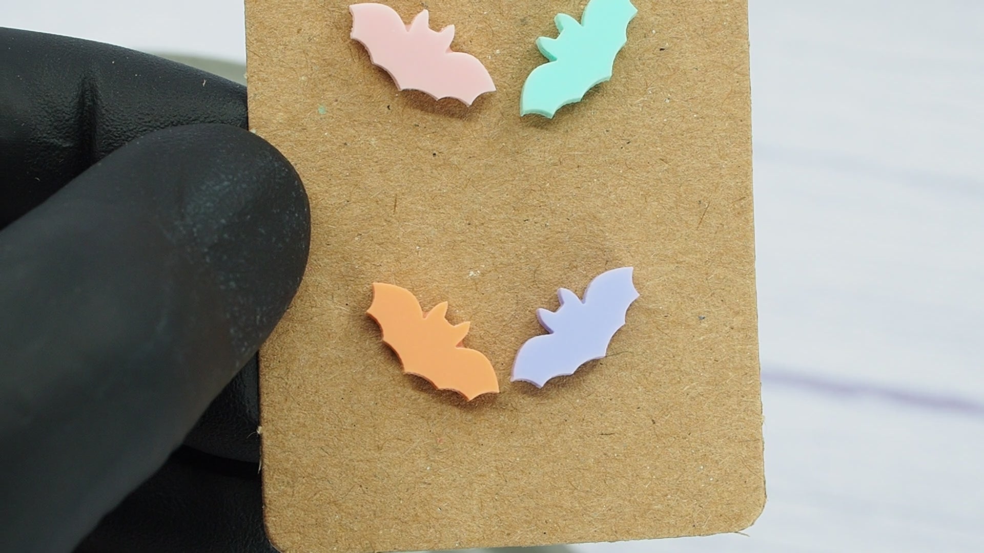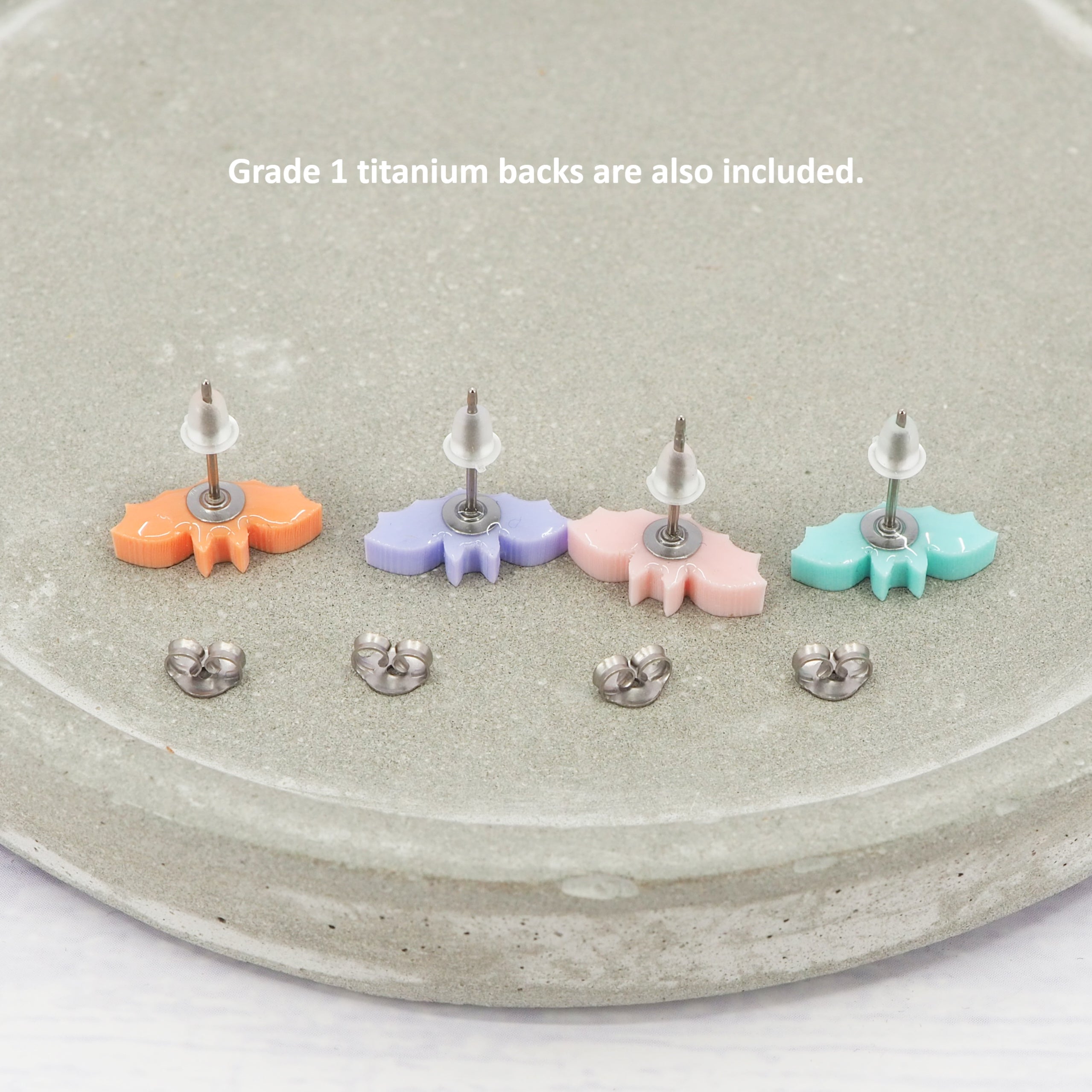 Pastel bat studs with 0.7mm titanium ear stems.