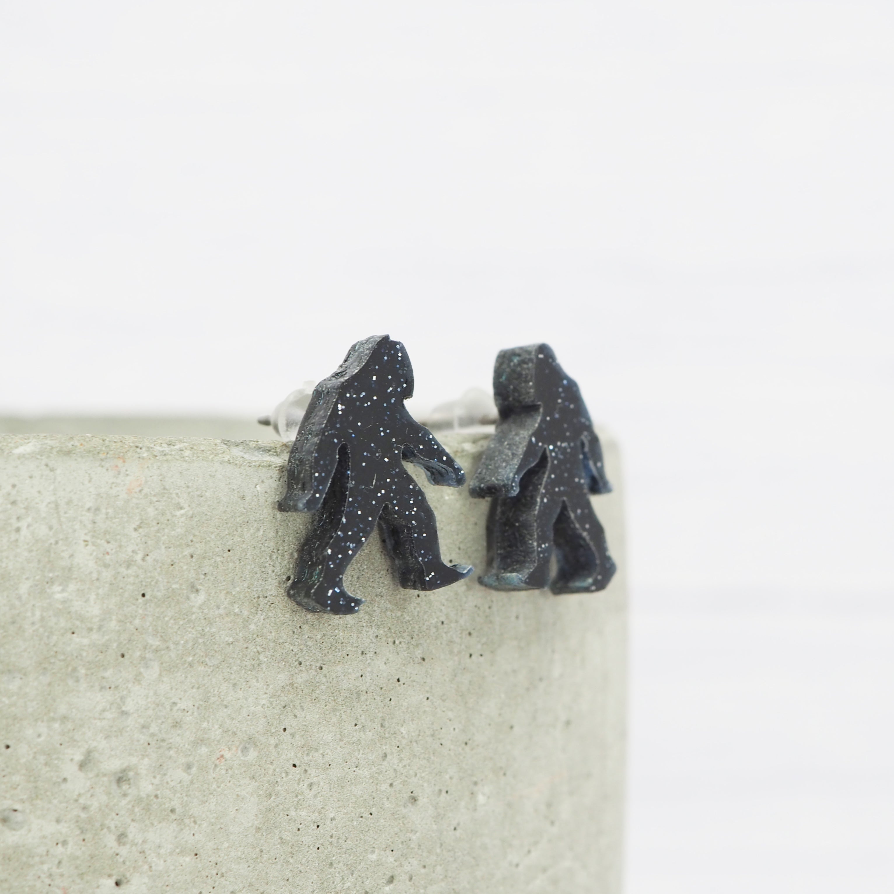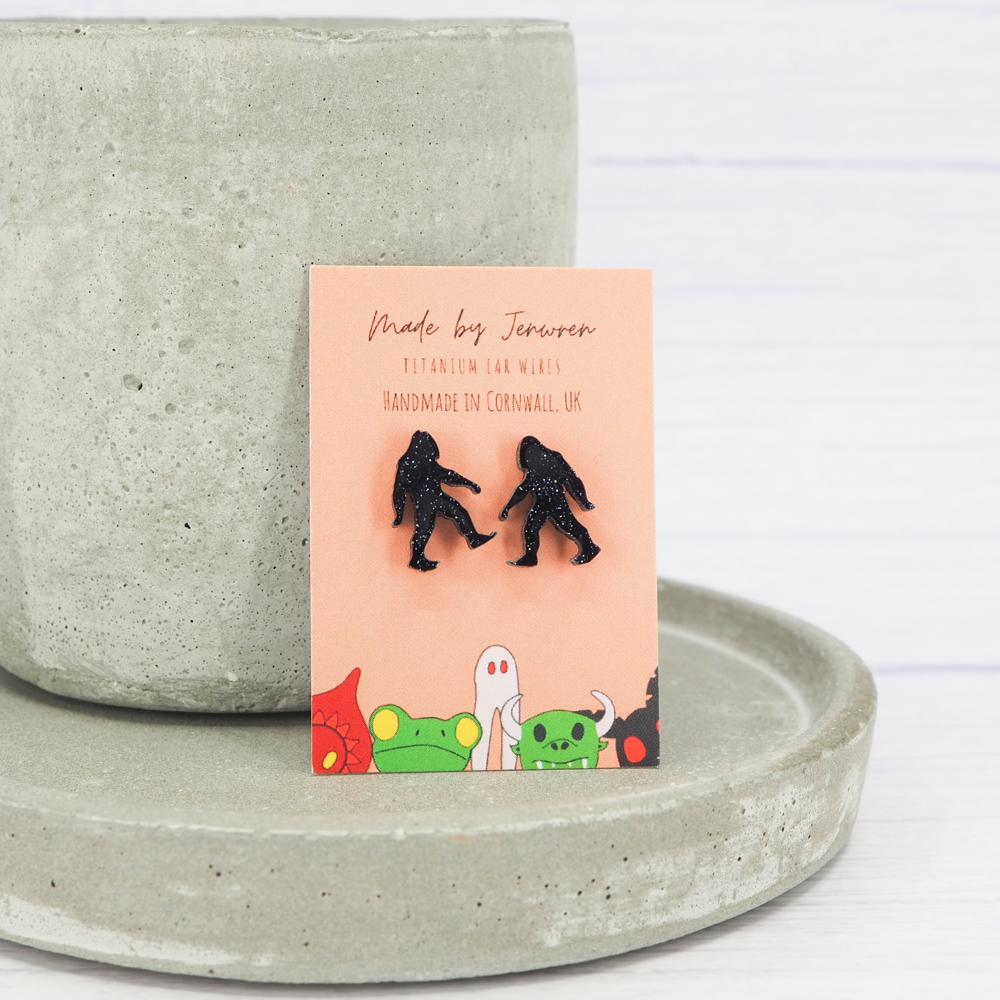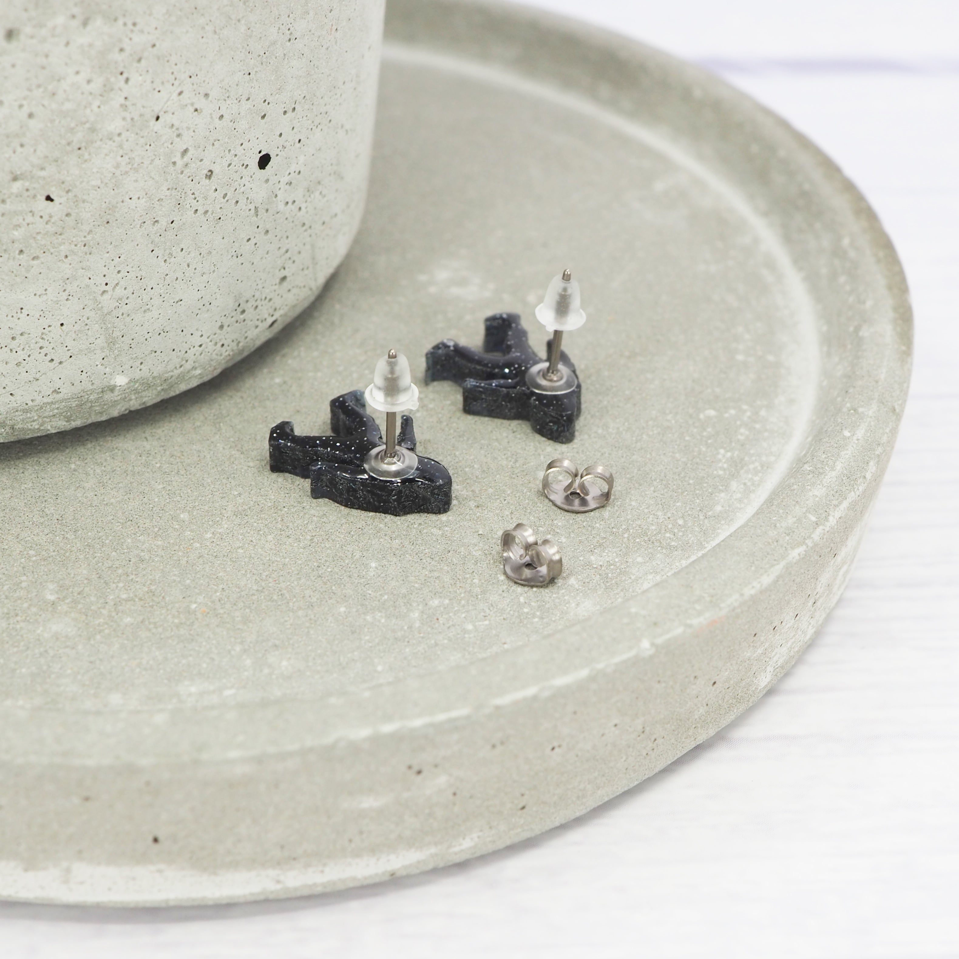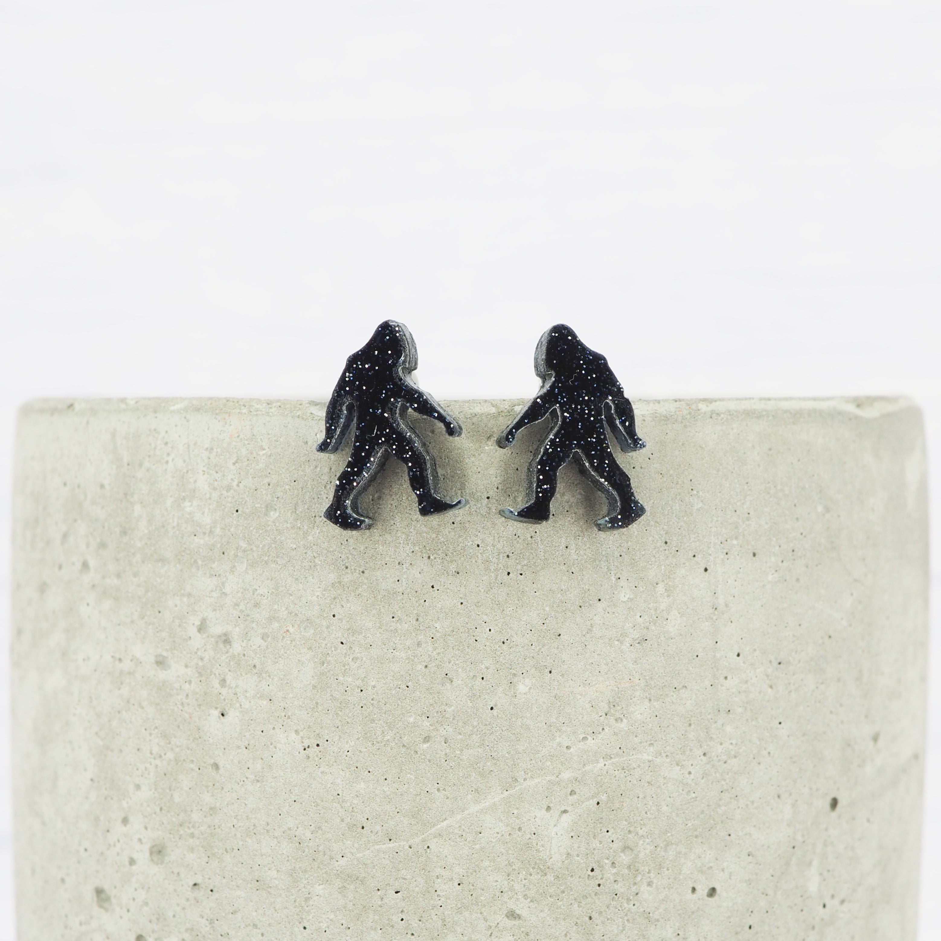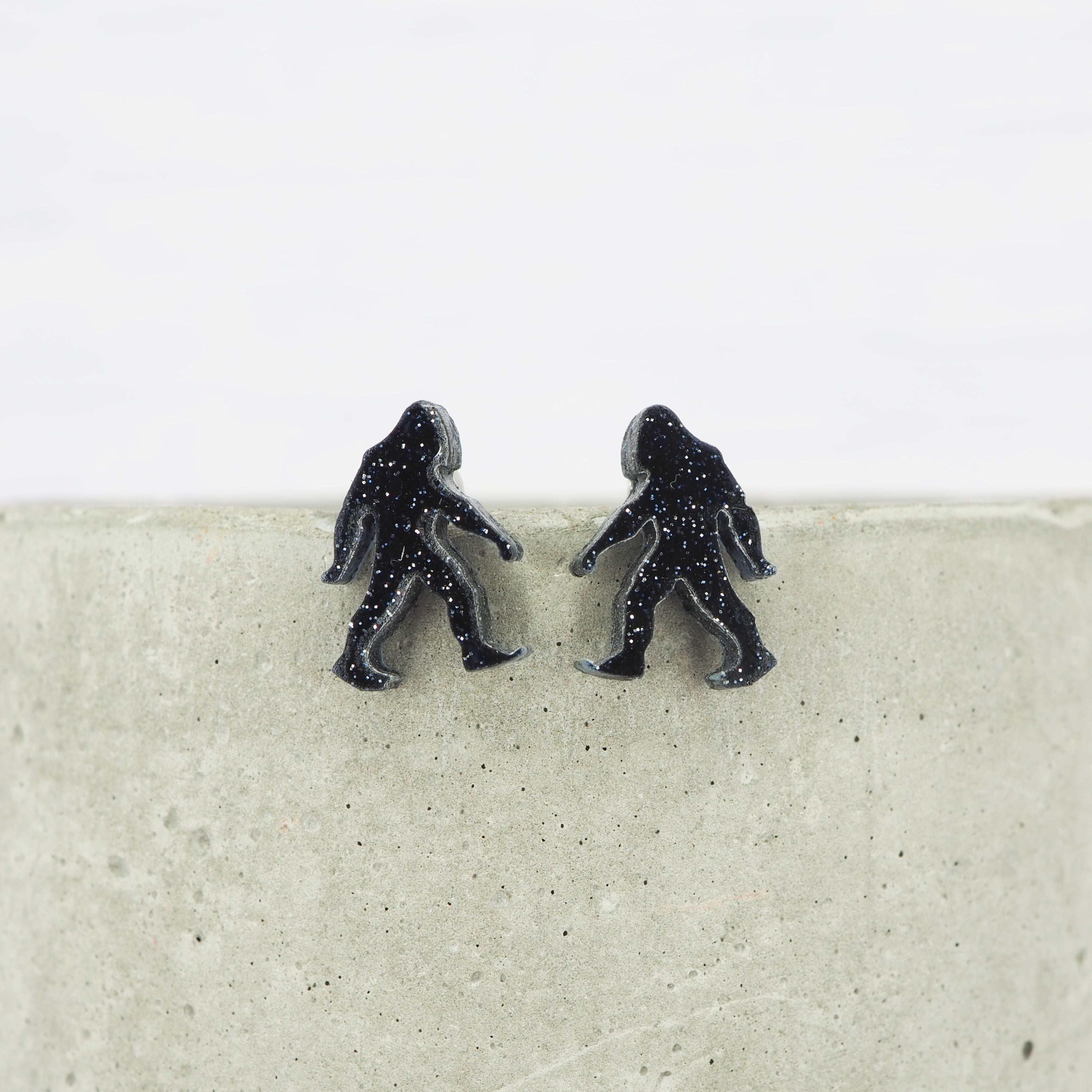 Black glitter Bigfoot acrylic studs with 0.7mm ear stems.