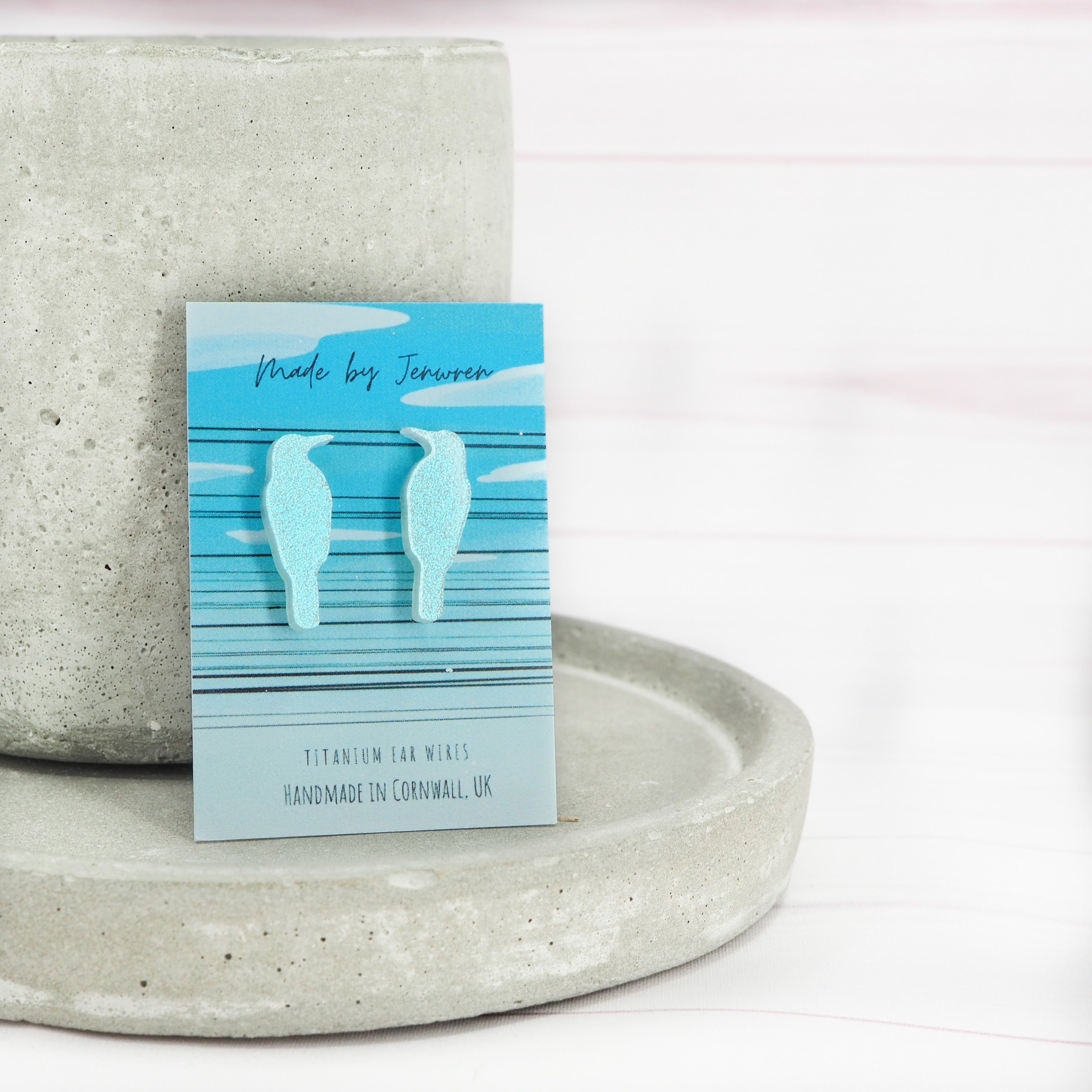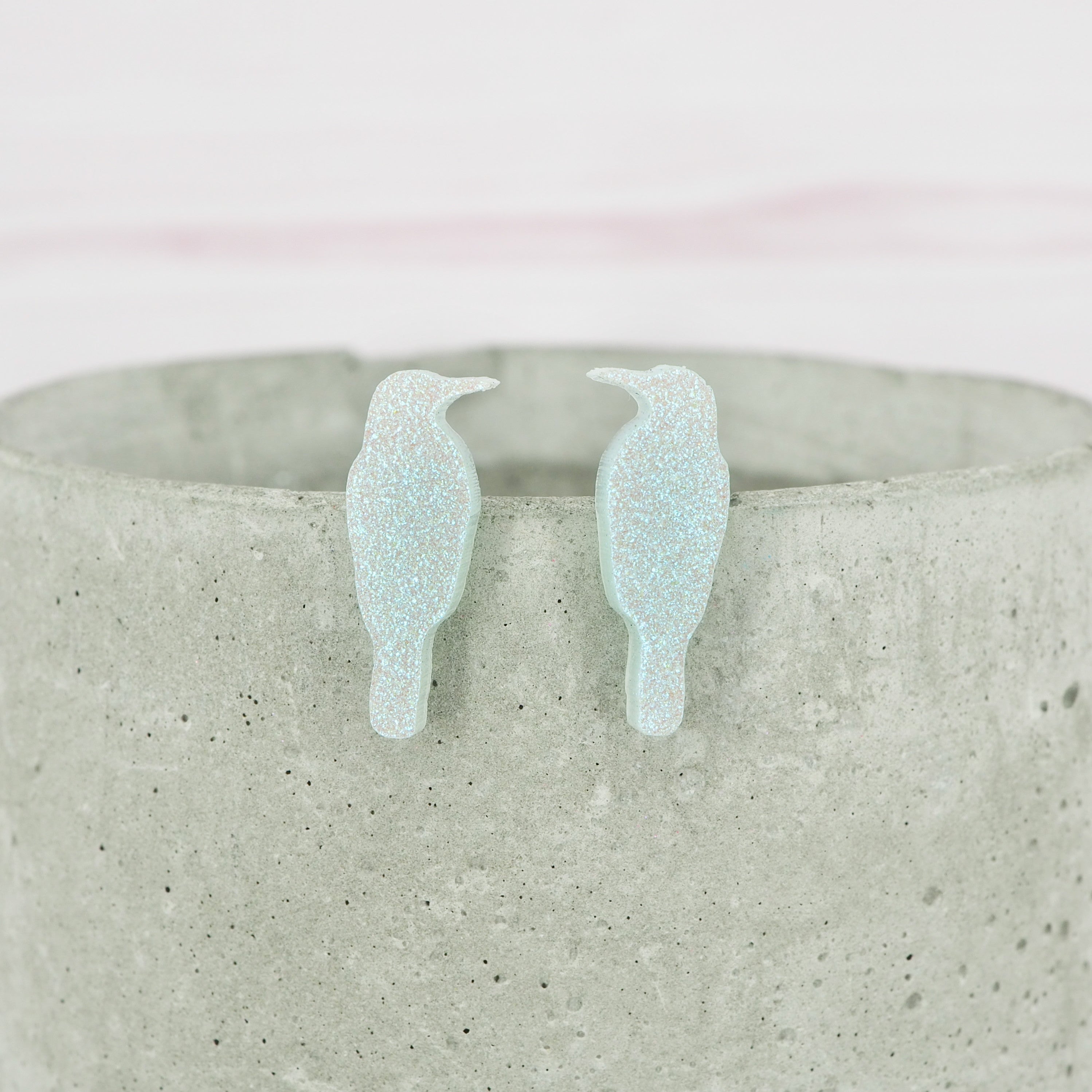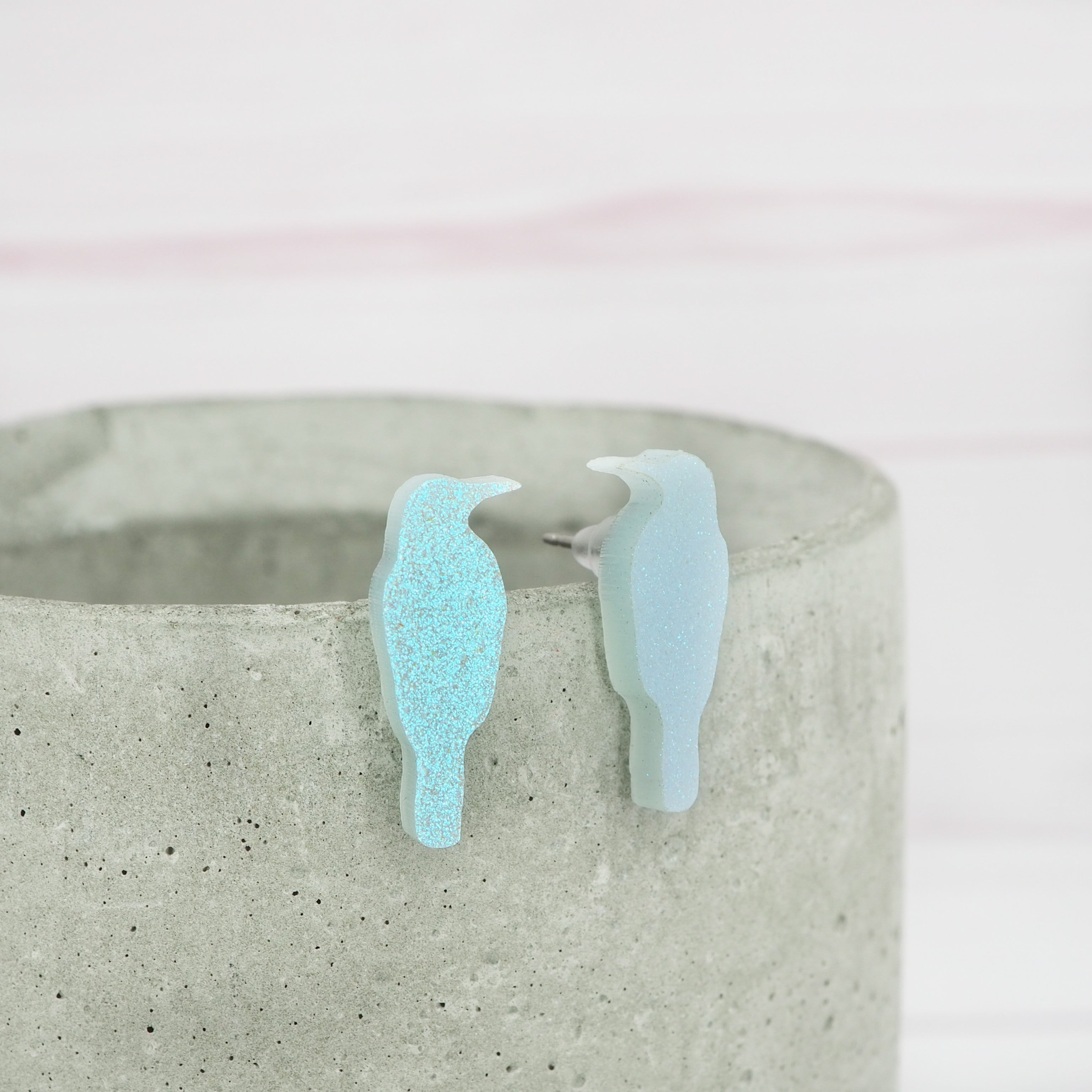 Blue lustre bird stud earrings.