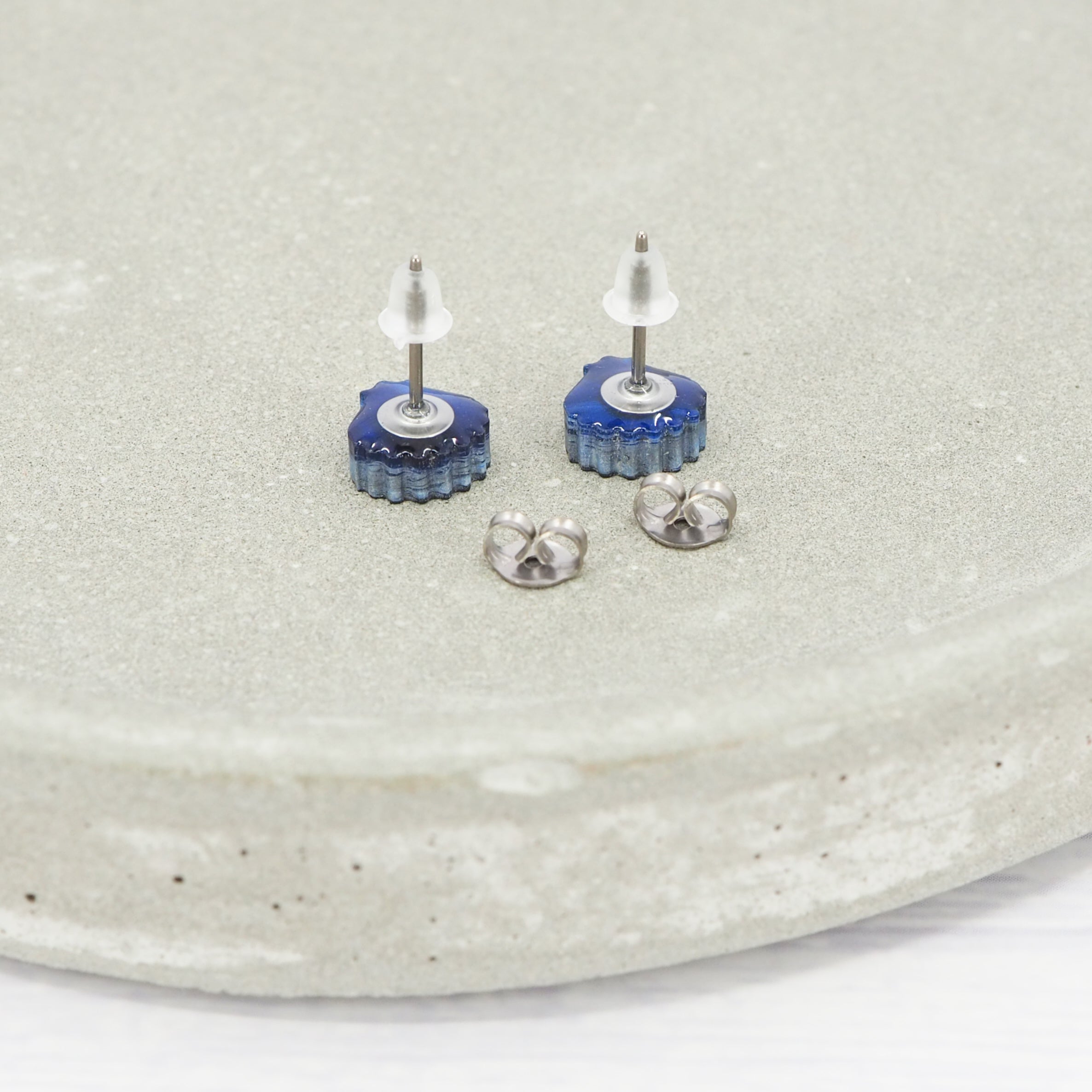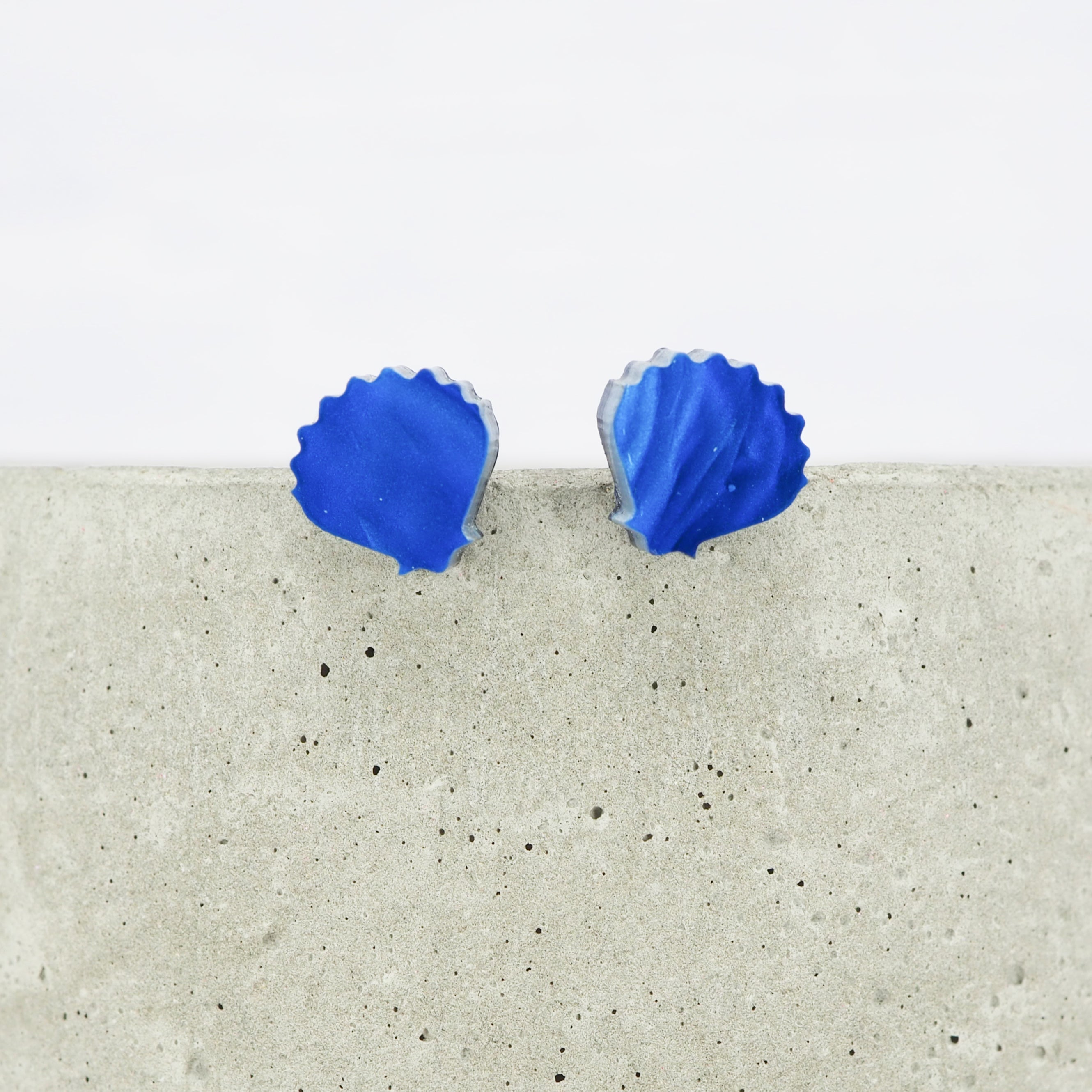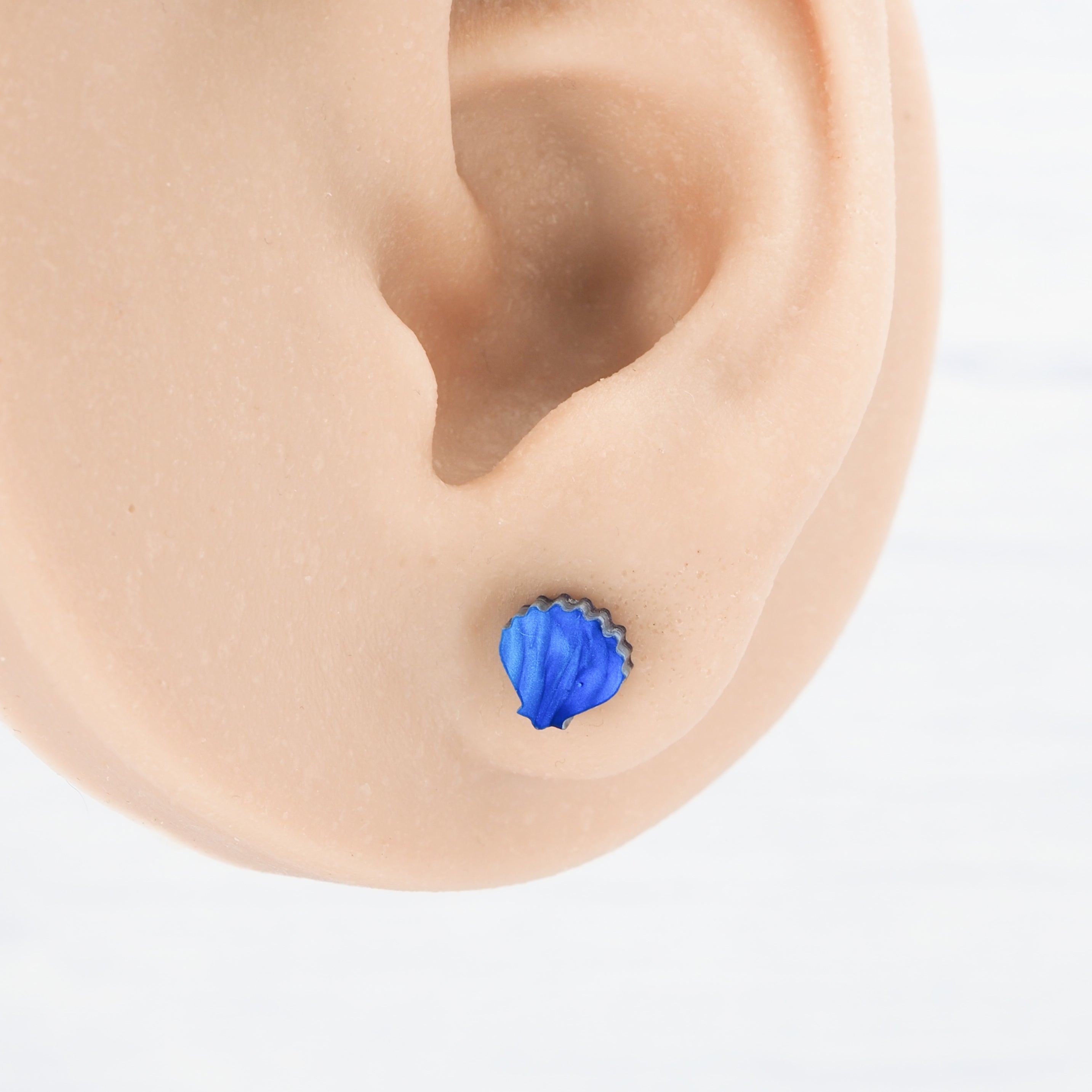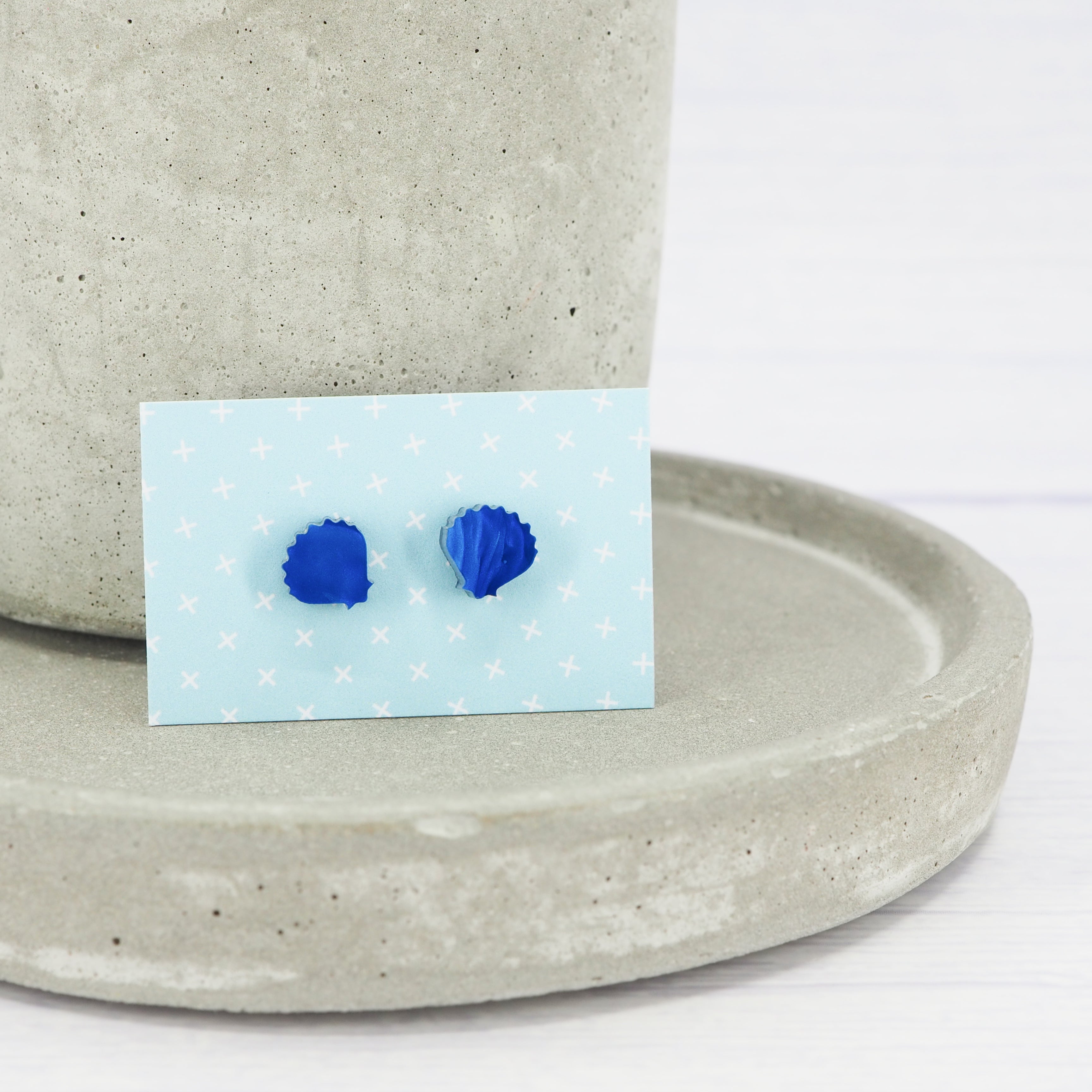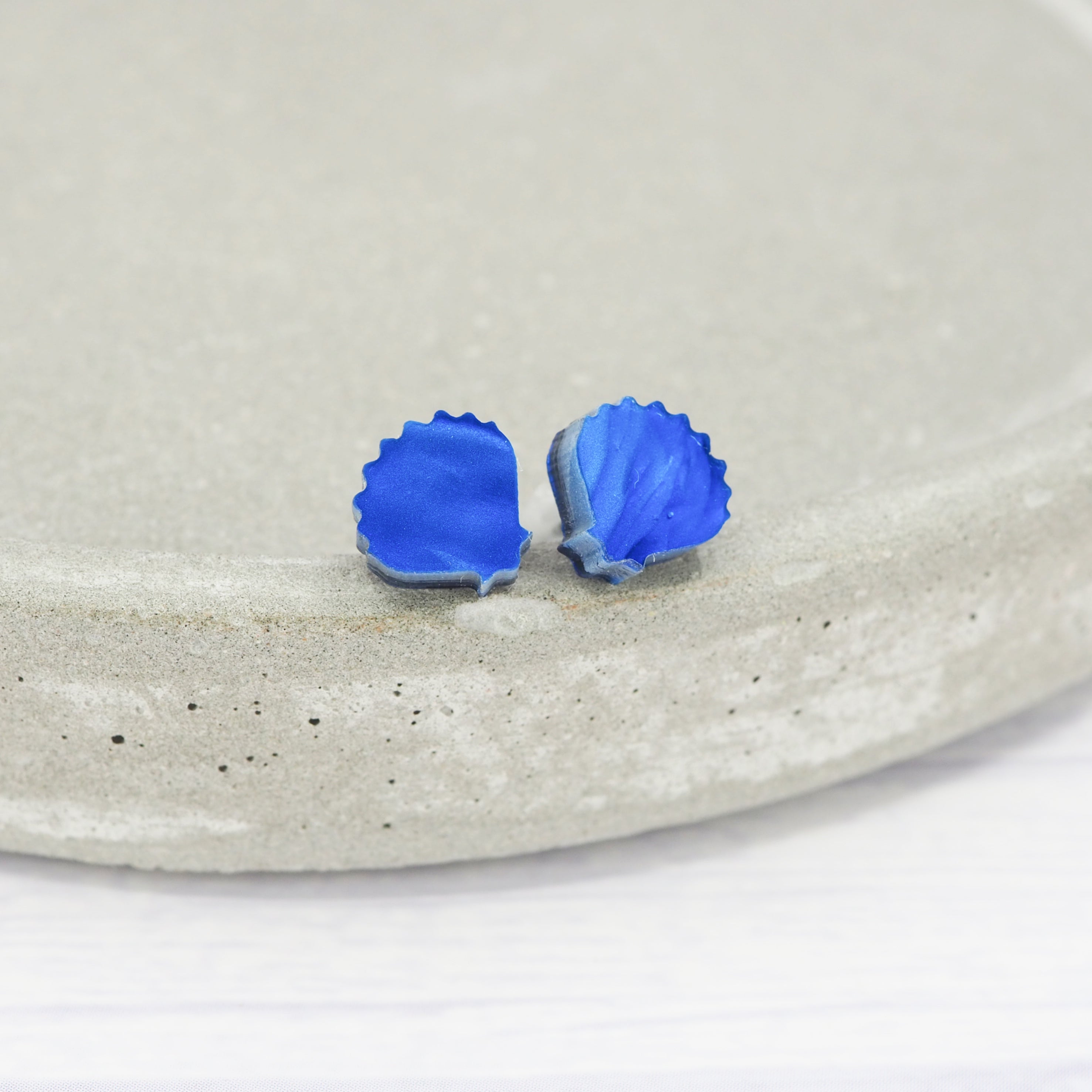 Small Blue shell acrylic studs with 0.7mm ear stems.