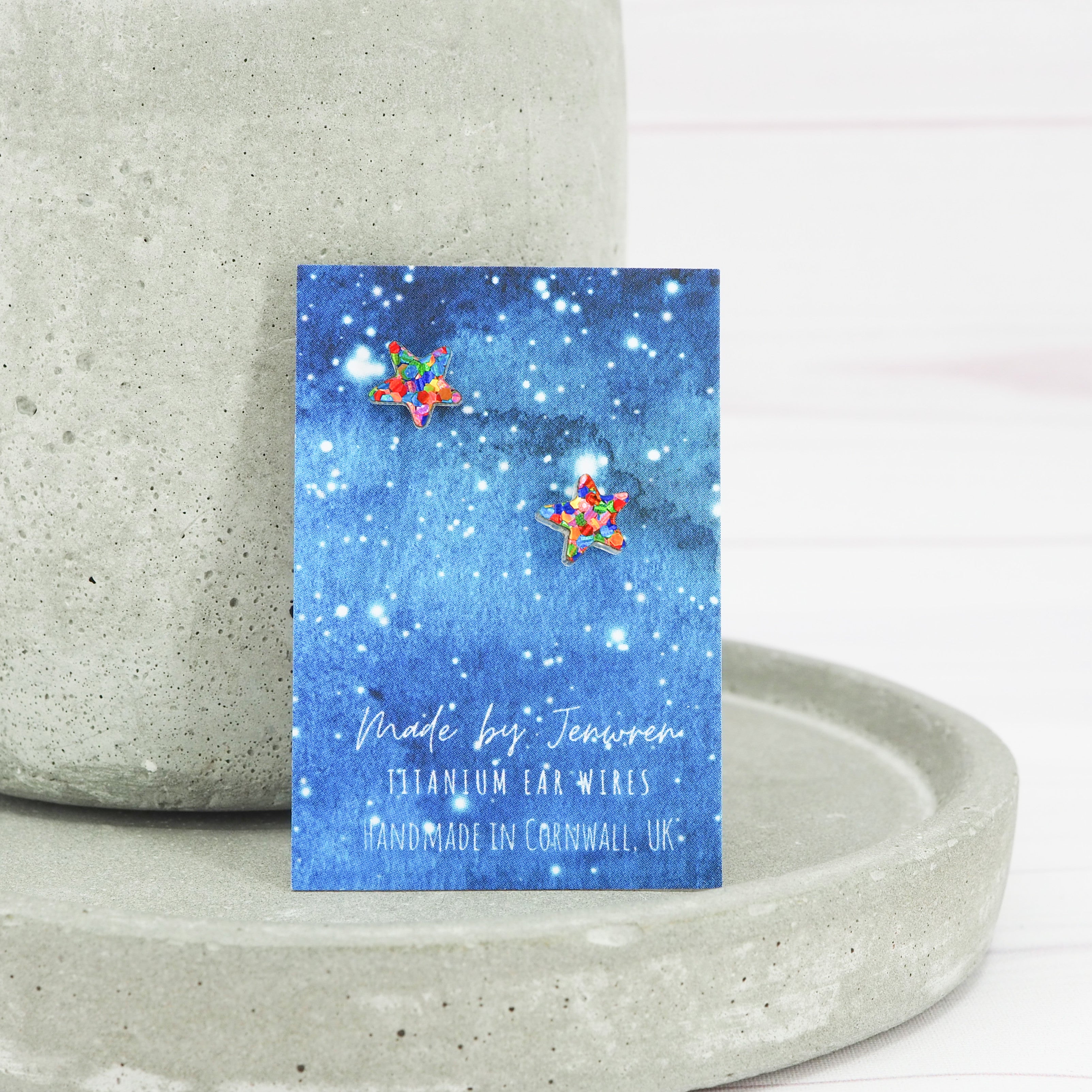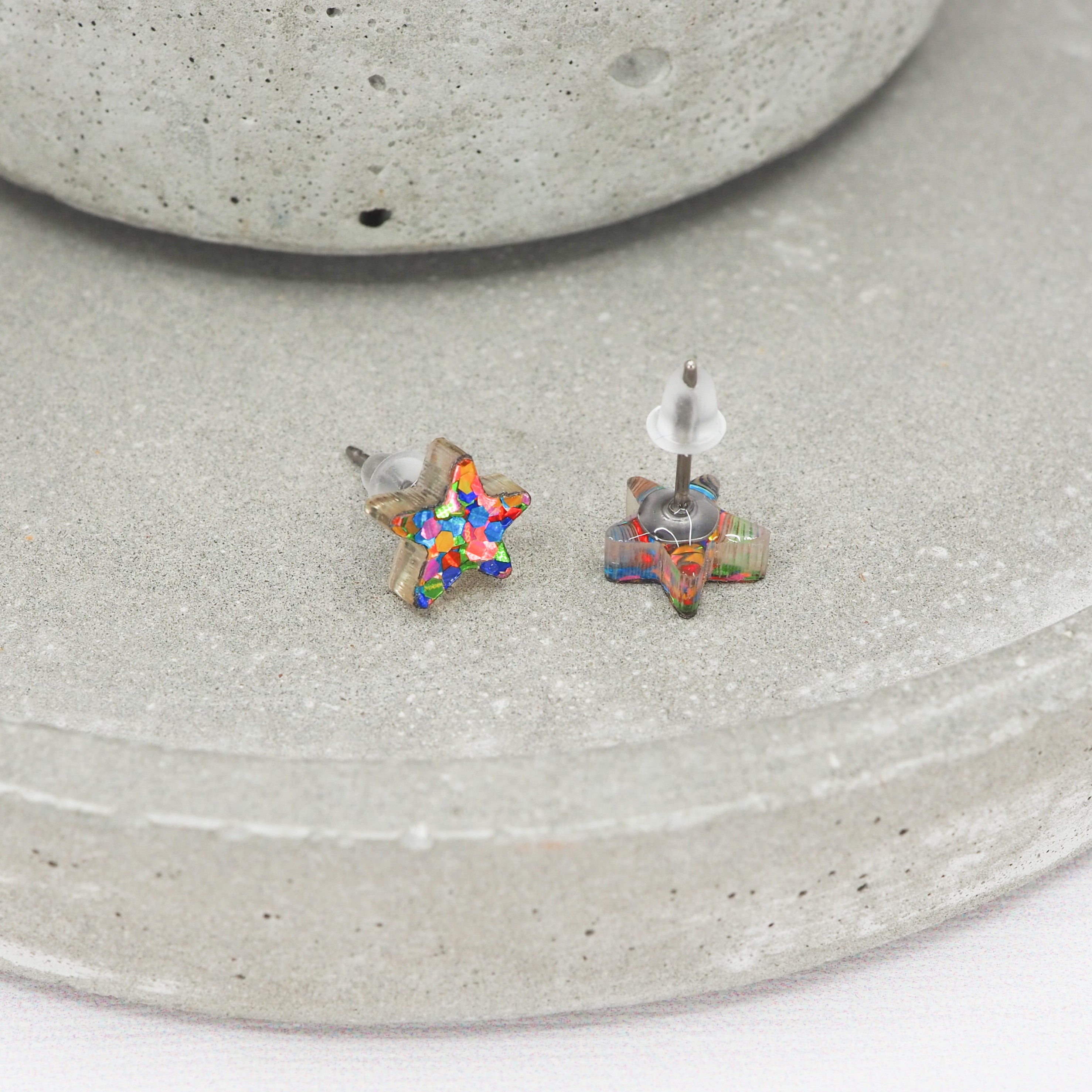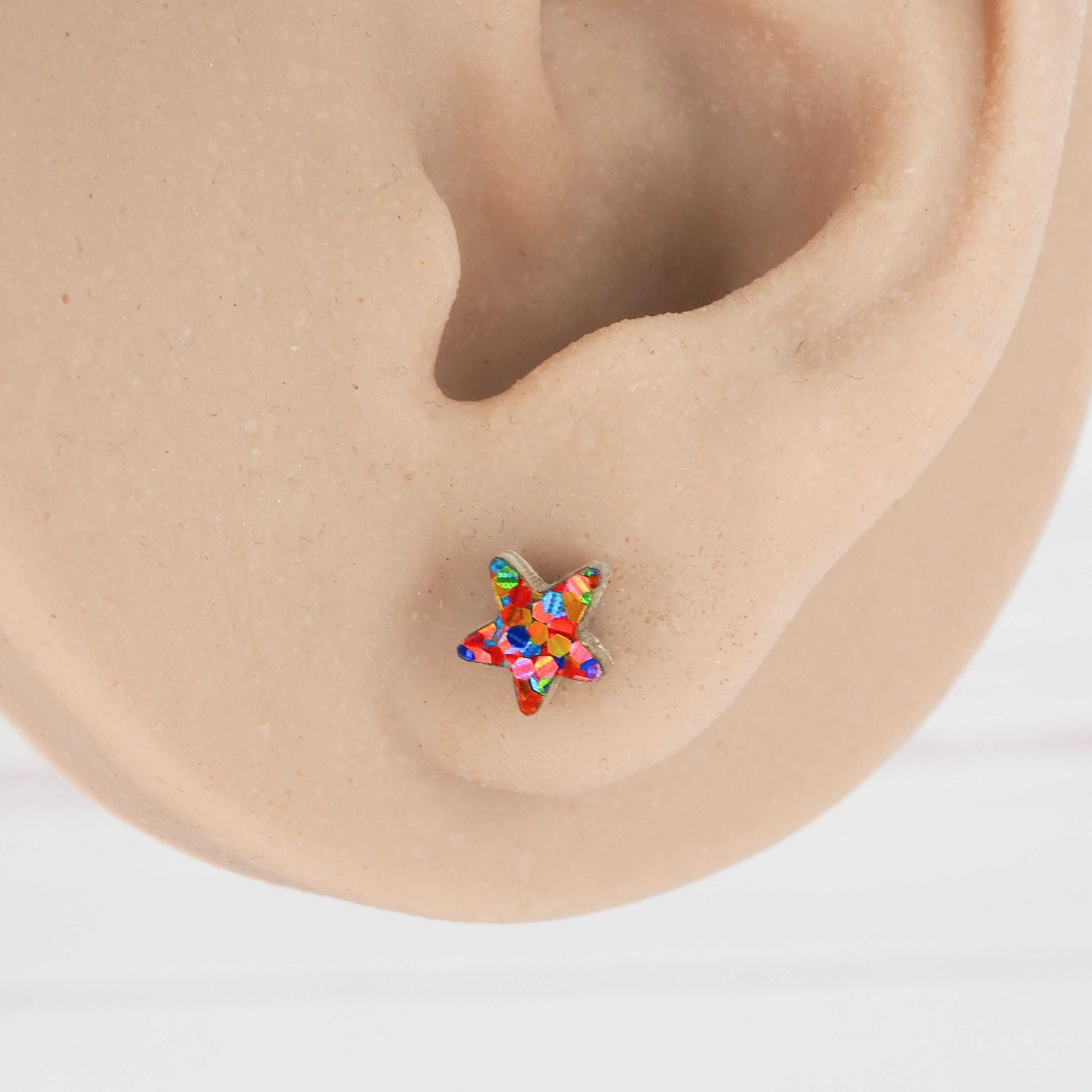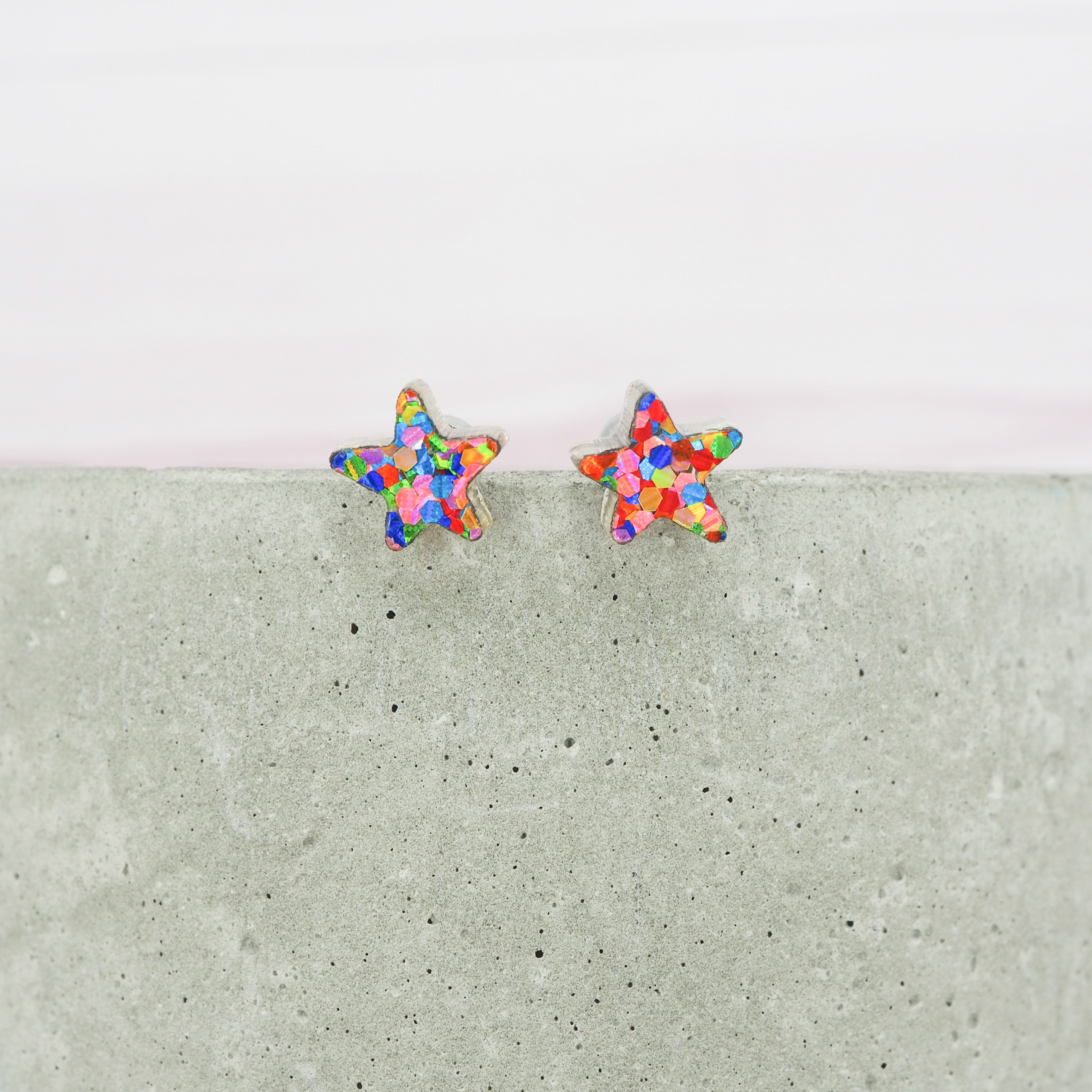 One pair of Bright Mixed Glitter Small Star Stud Earrings