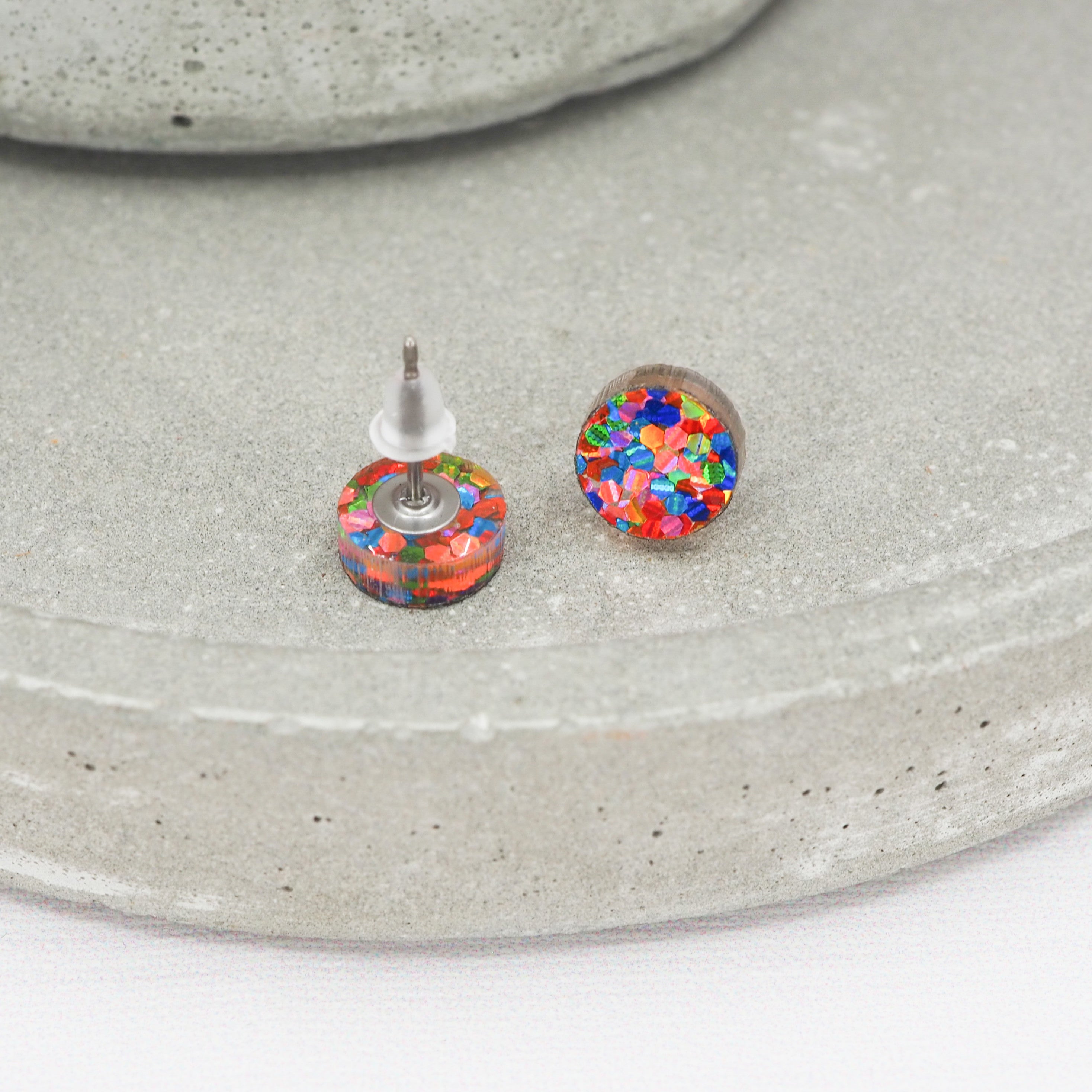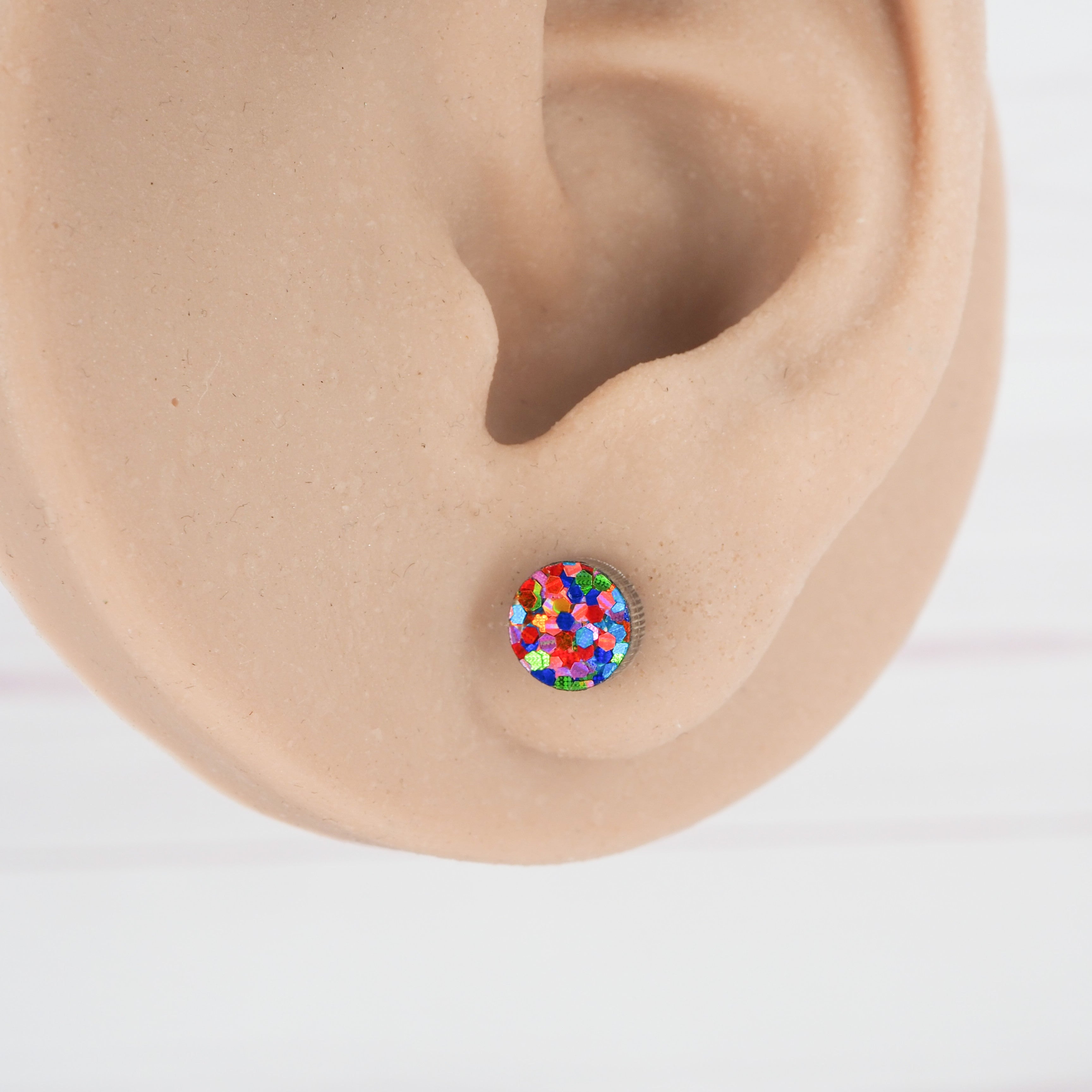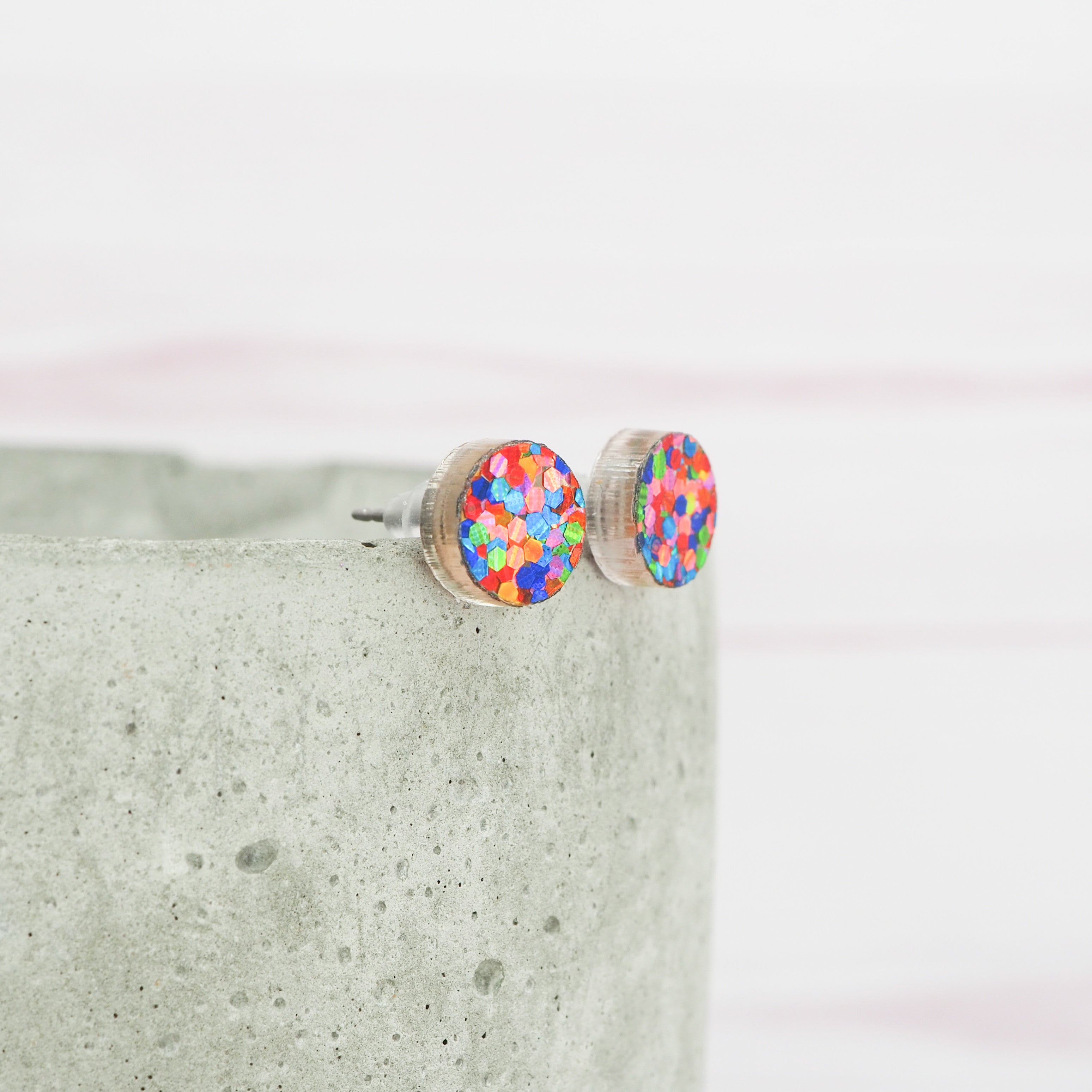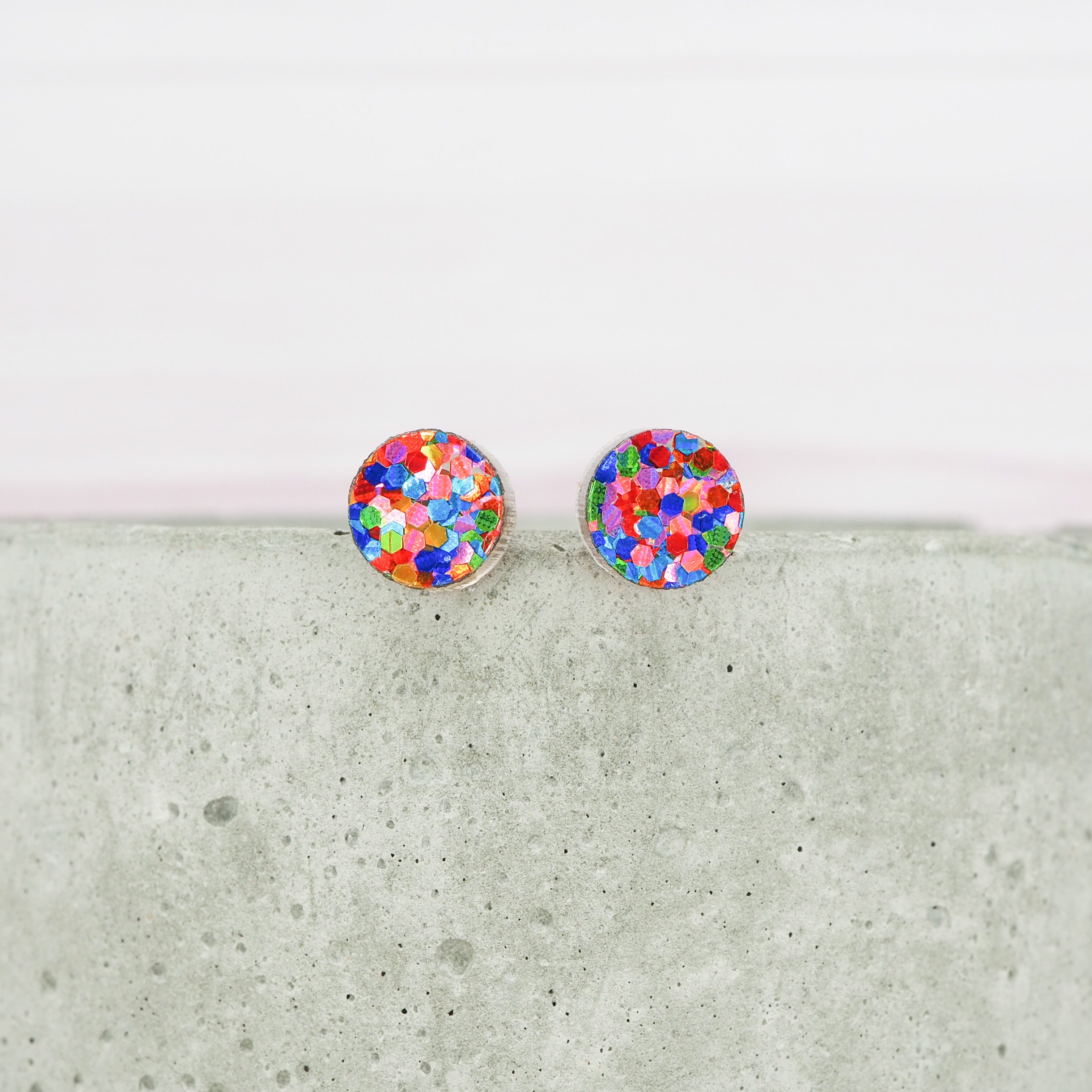 Bright mixed glitter 8mm dot studs