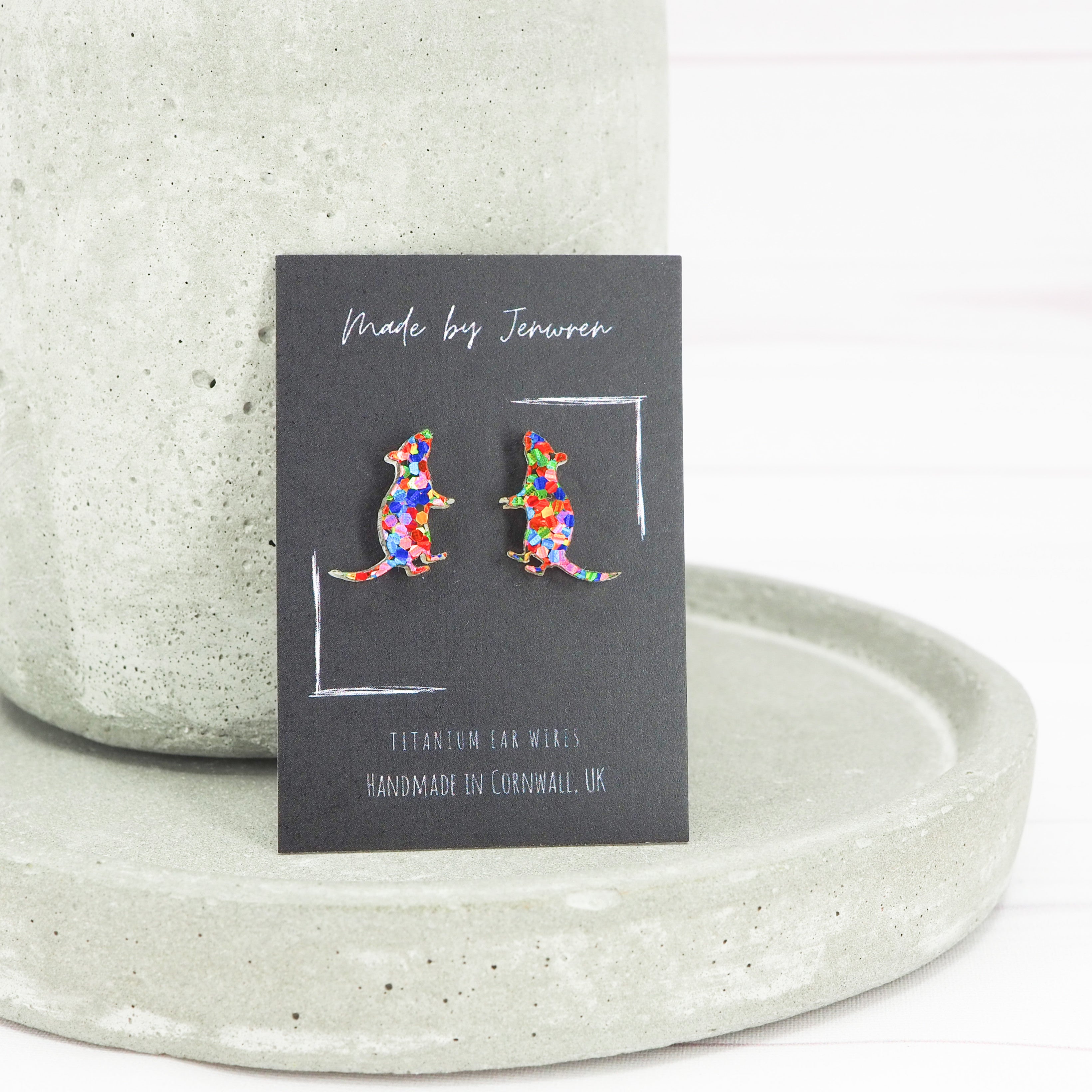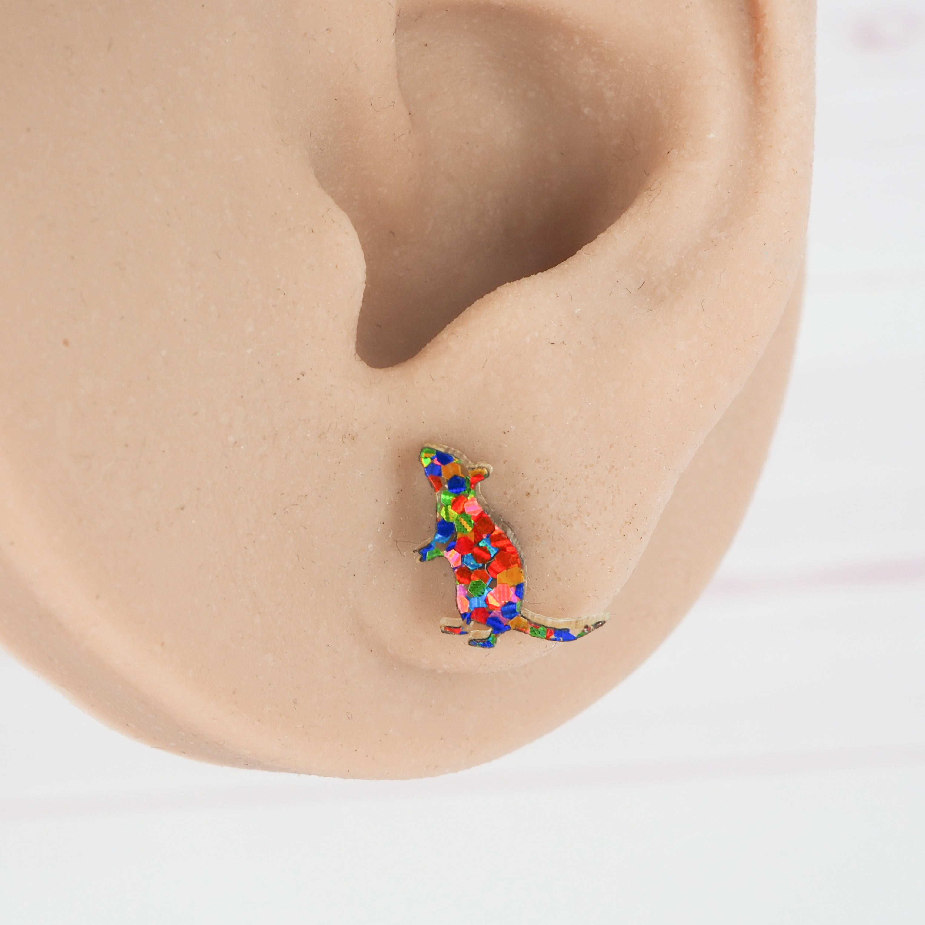 Bright mixed glitter acrylic rat/mouse studs with 0.7mm ear stems.
