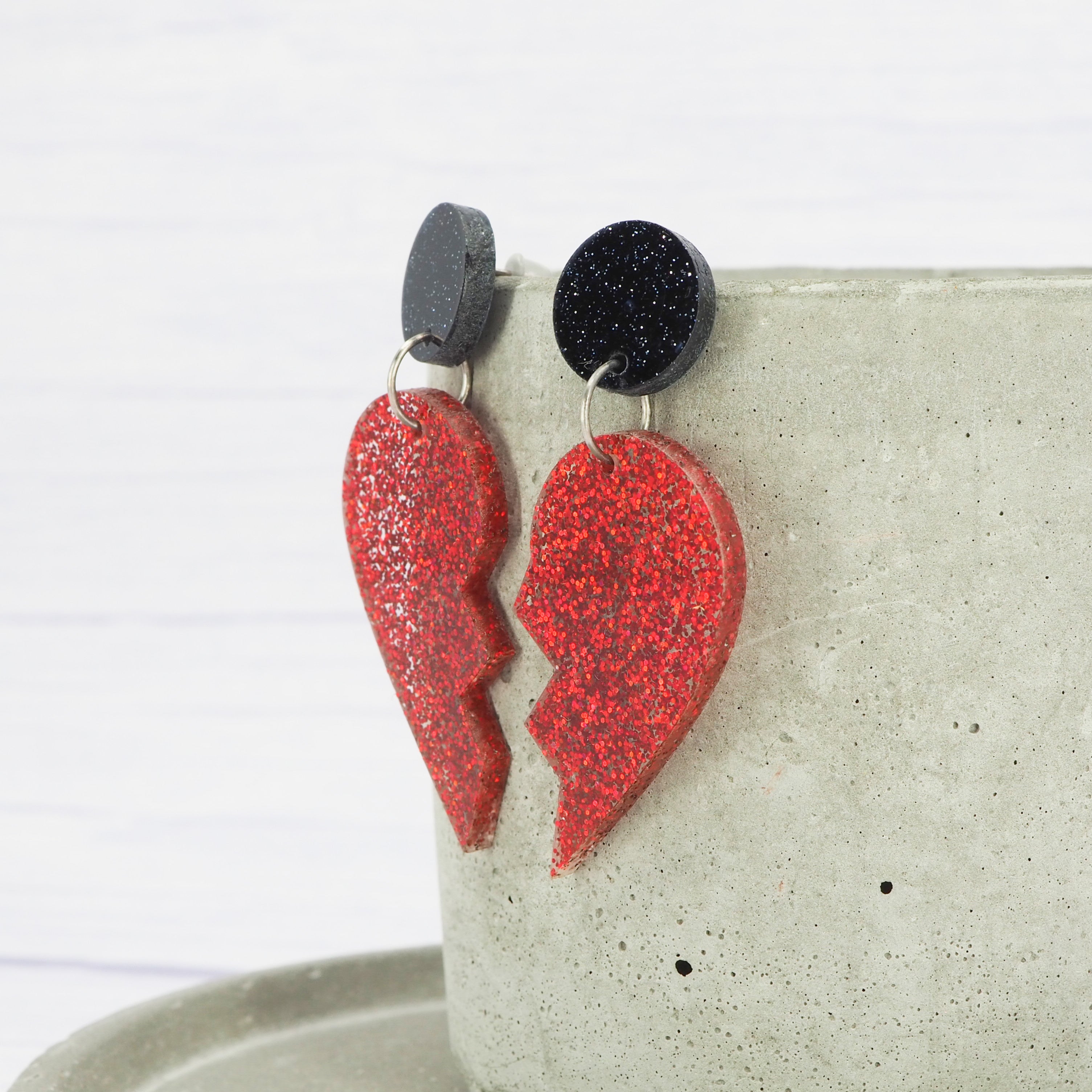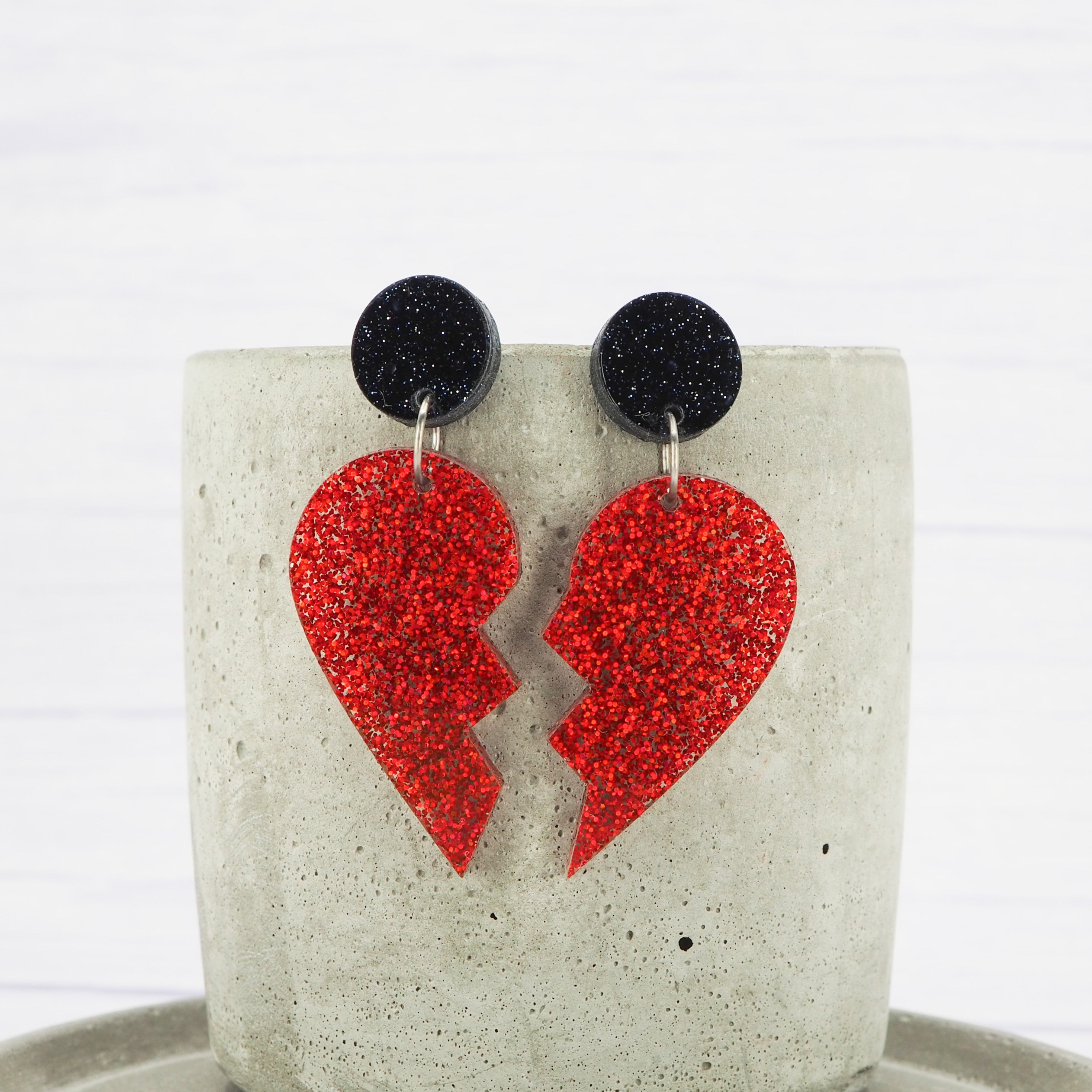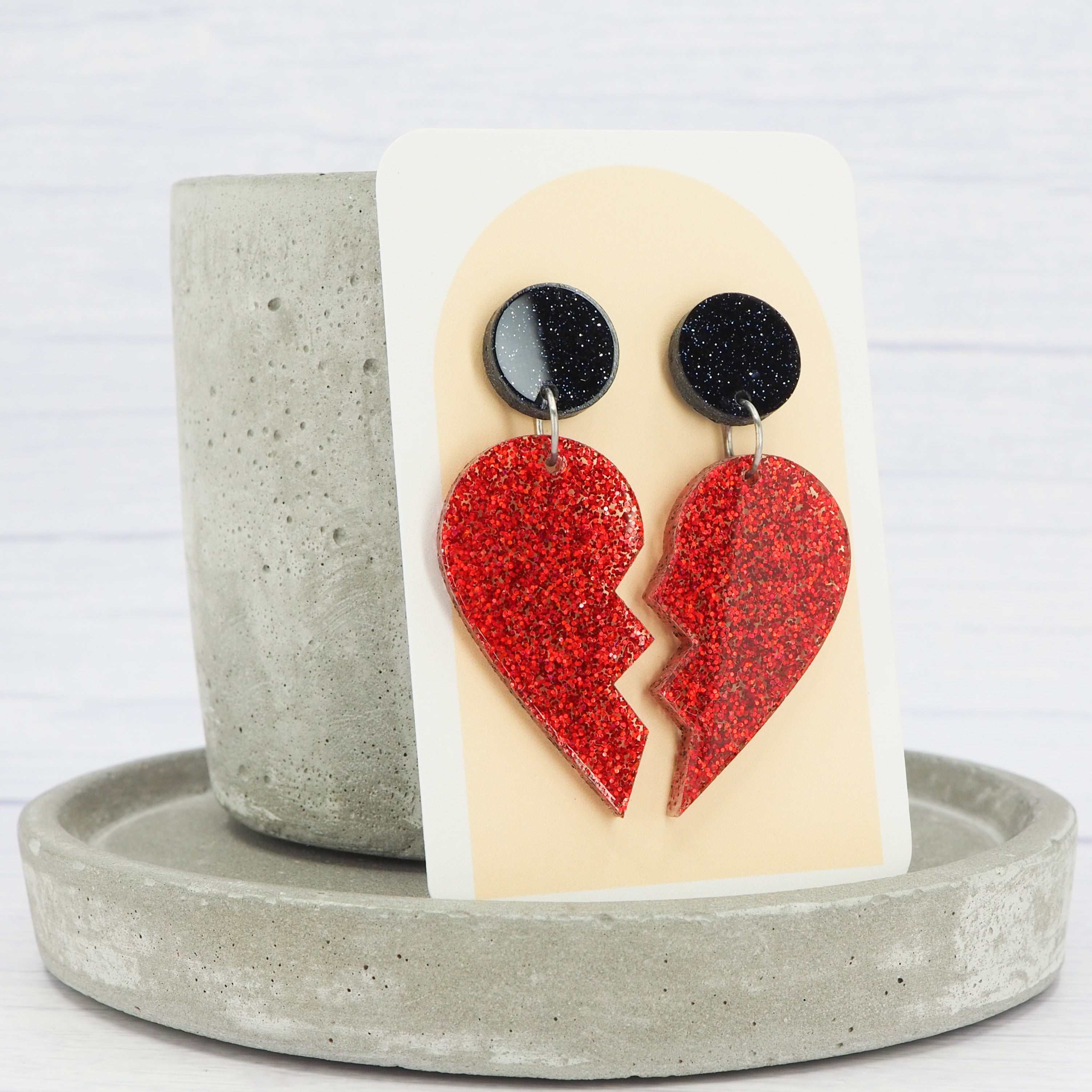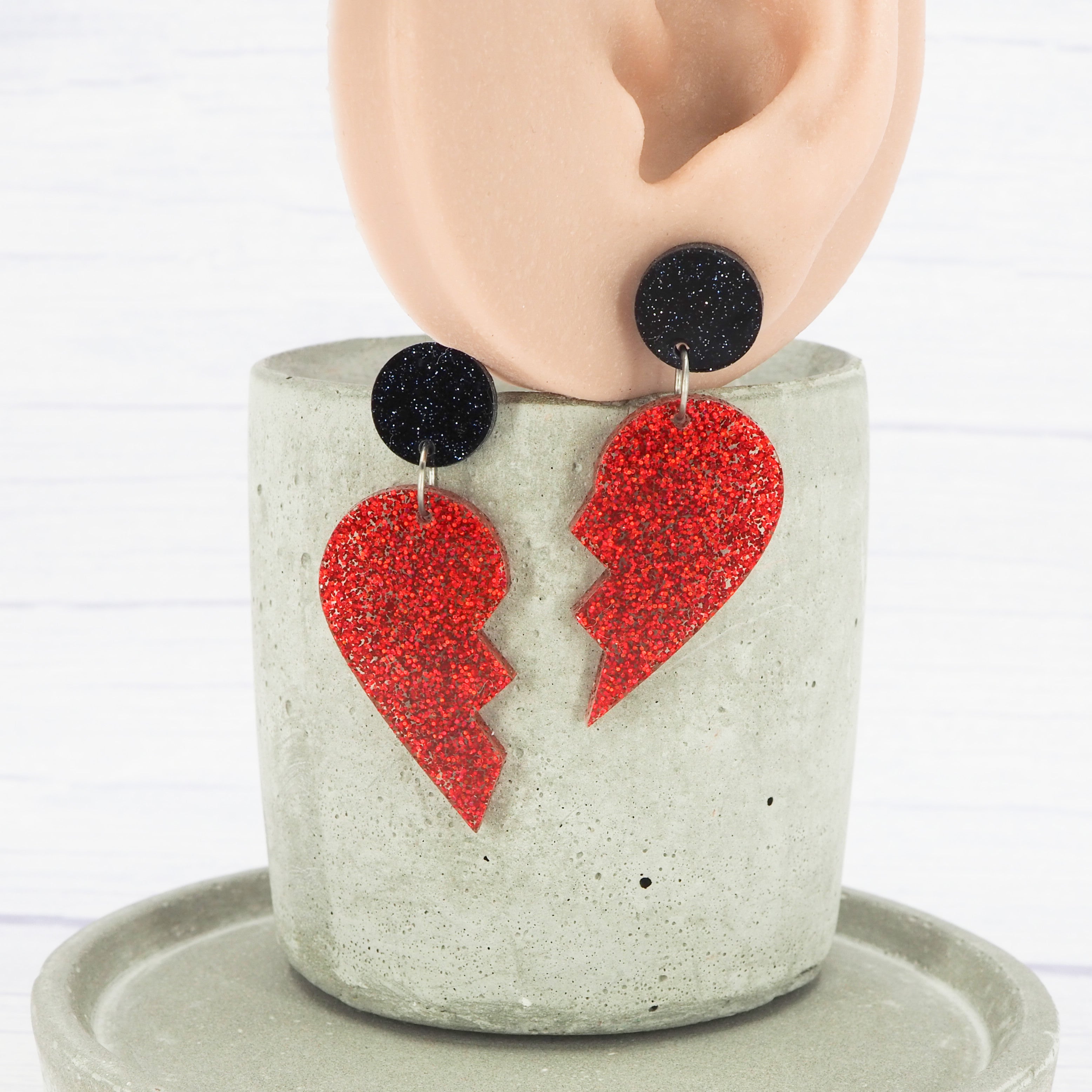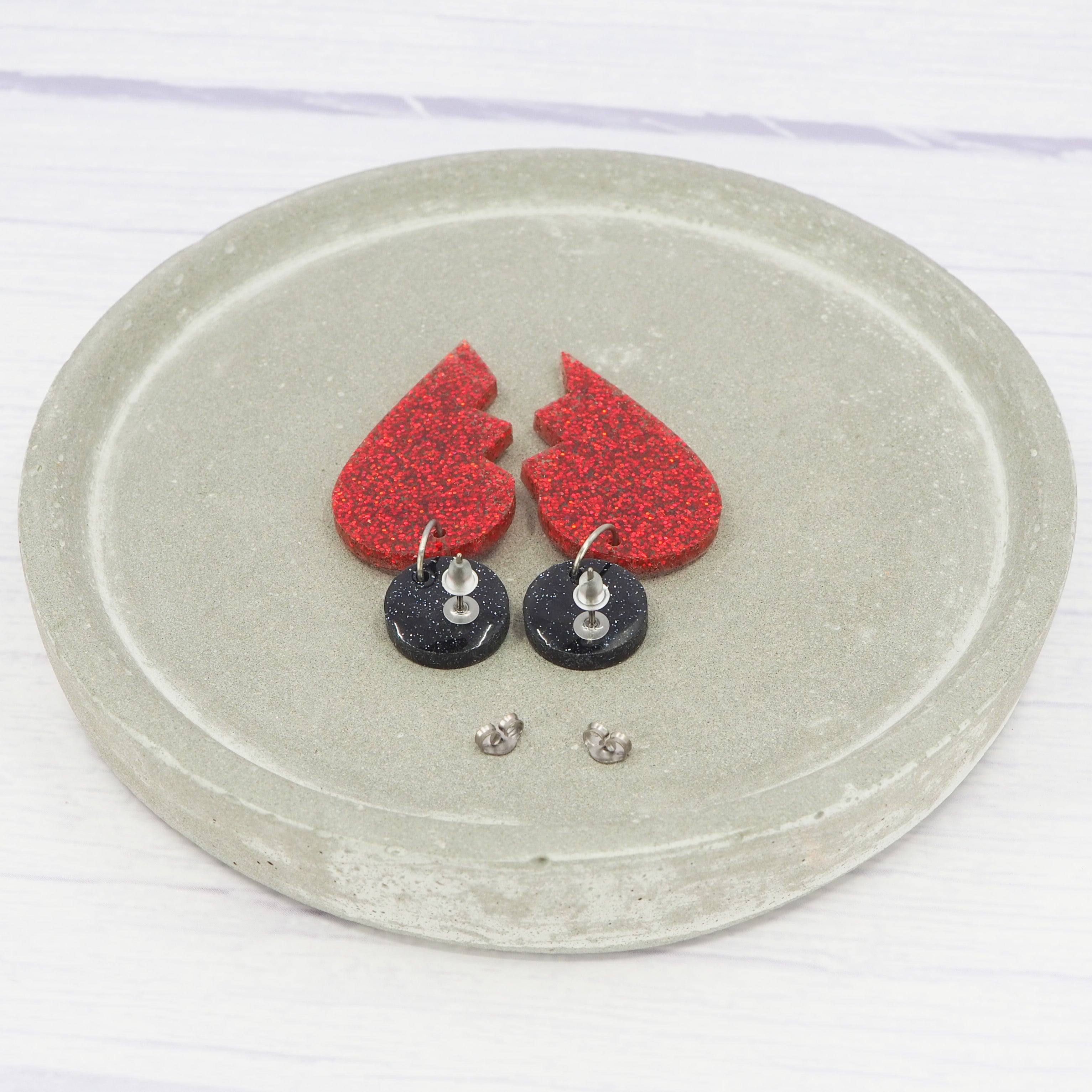 The earrings have a total drop length of 2.1" (5.4cm) from the top of the Round to the bottom of the heart.