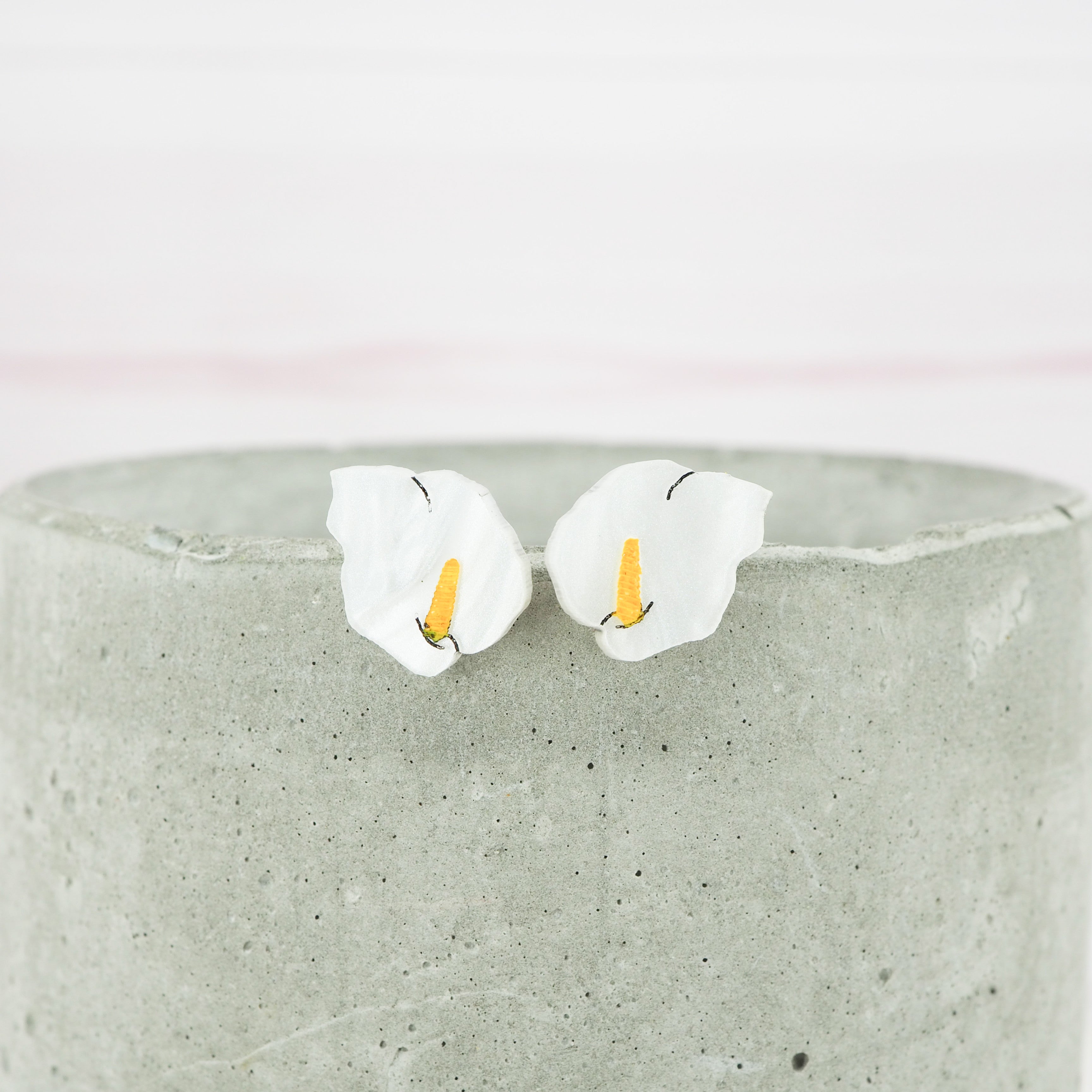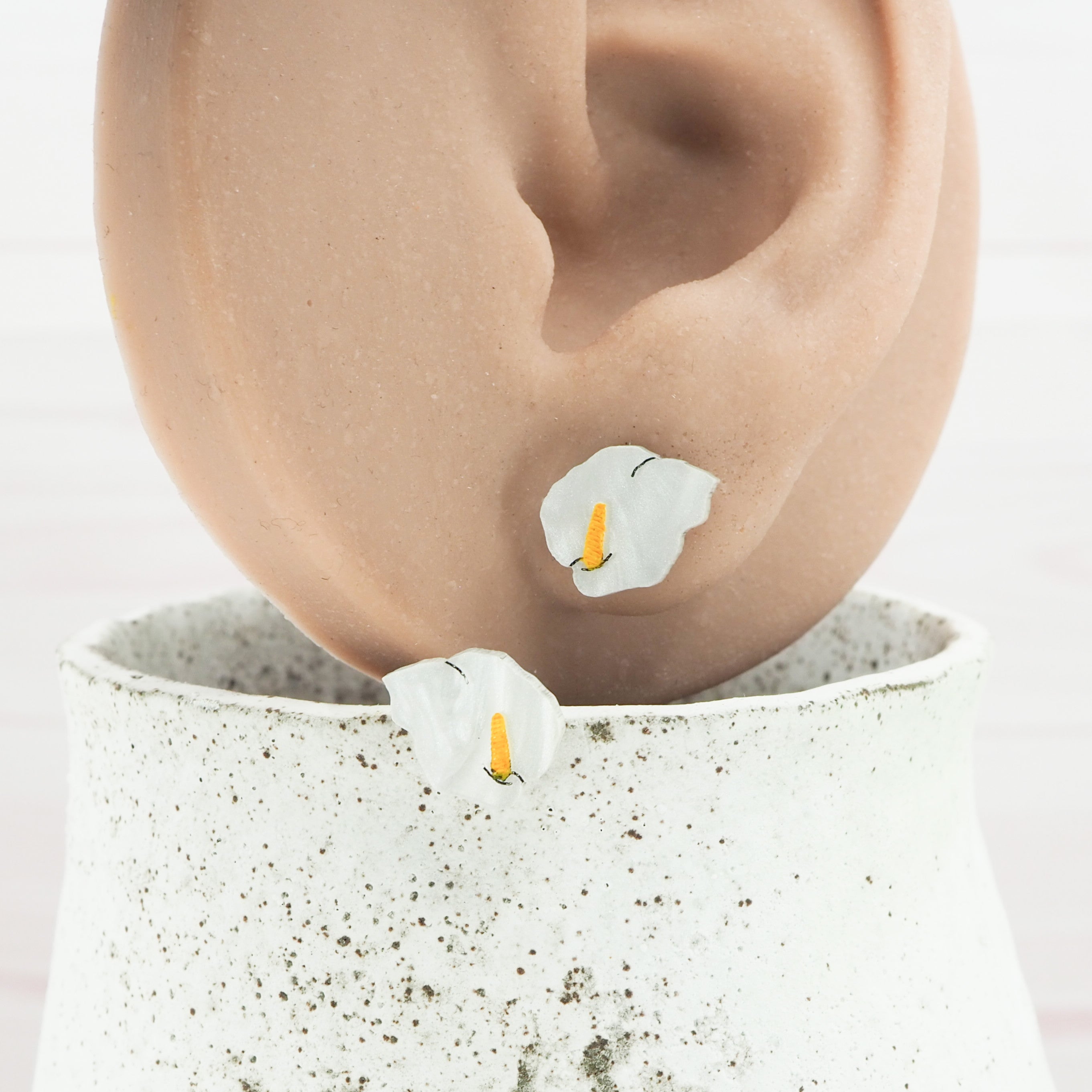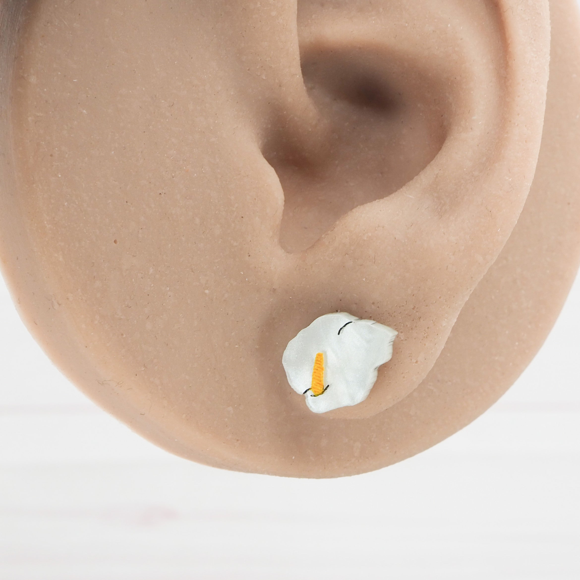 Pearly white Calla Lily acrylic studs with 0.7mm ear stems.