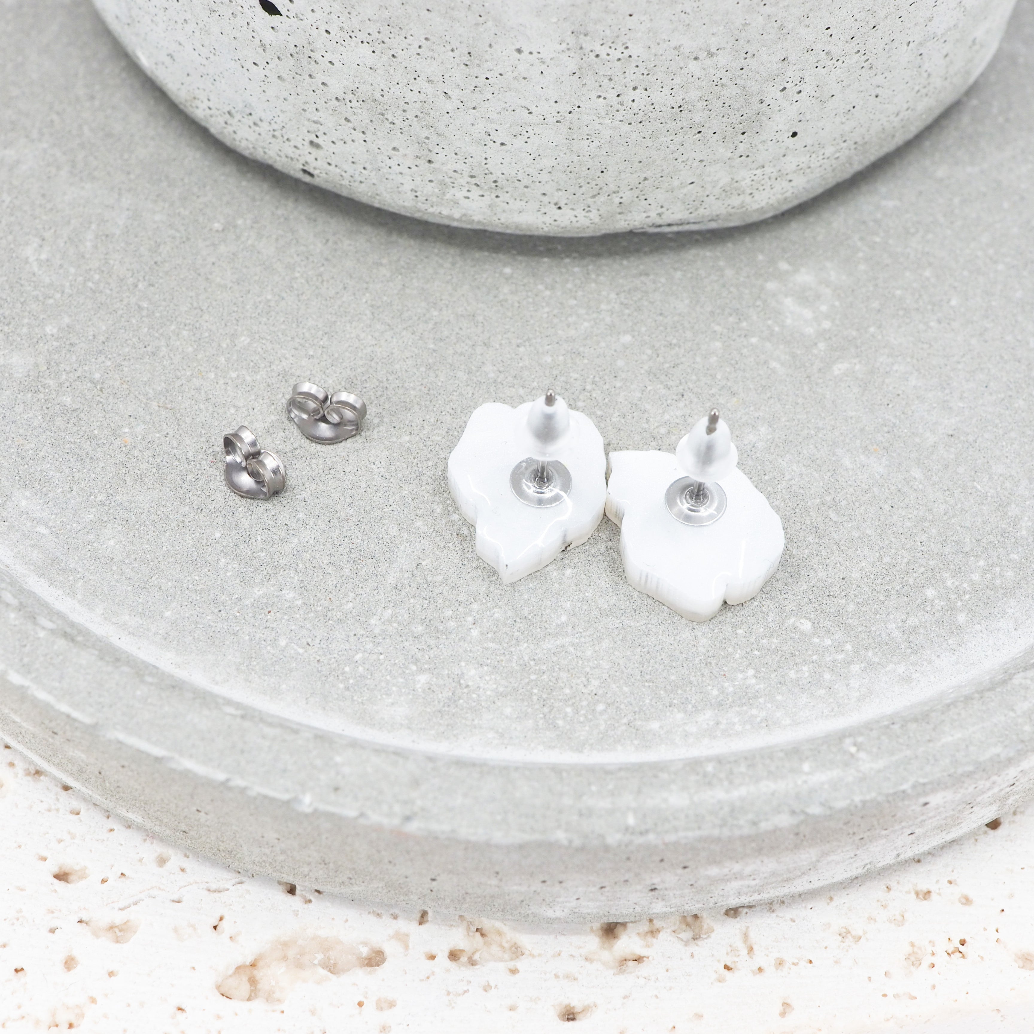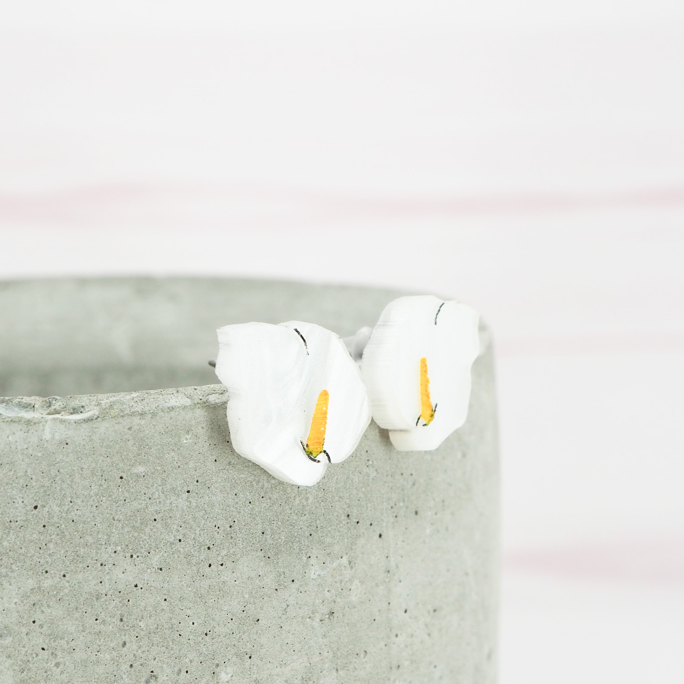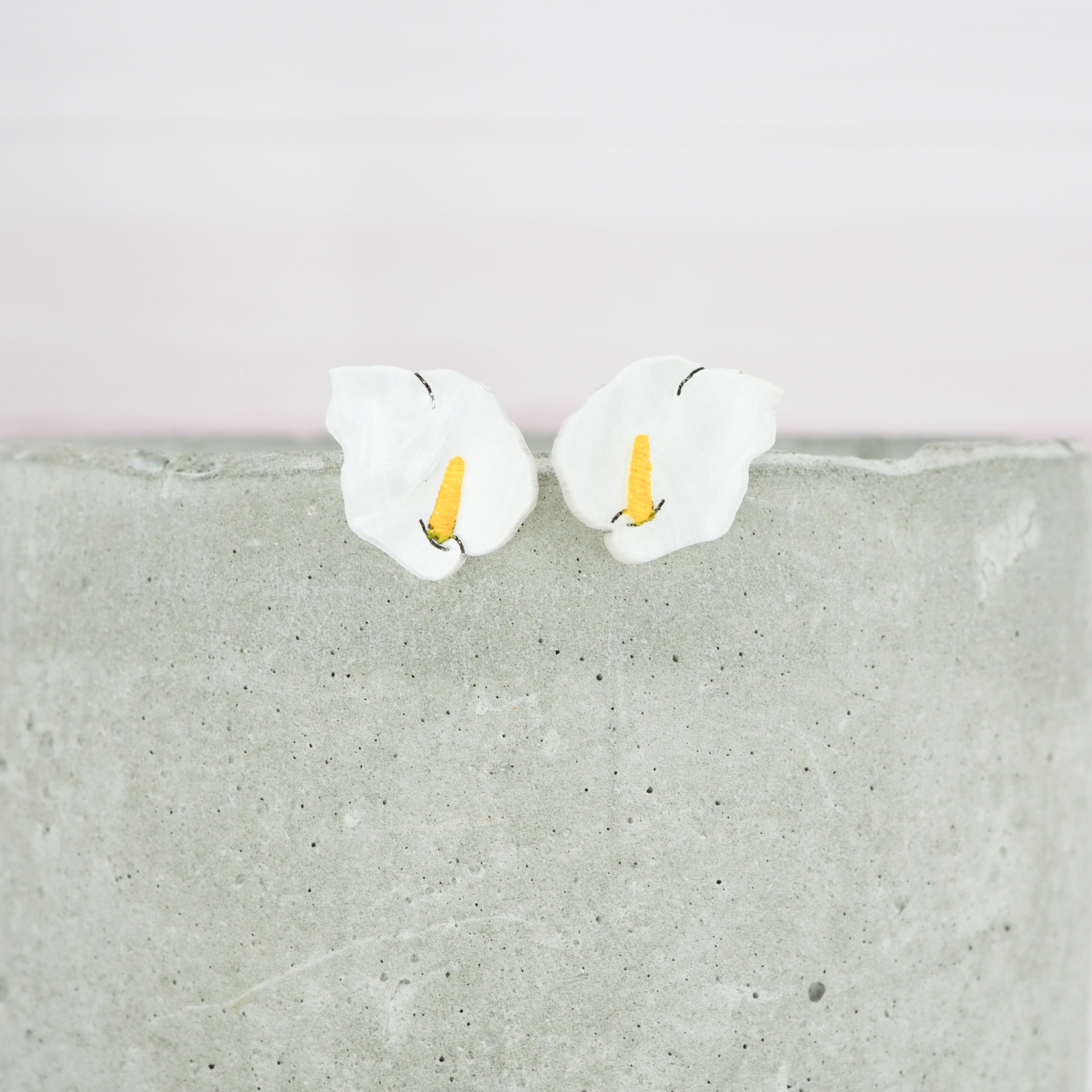Pearly white Calla Lily acrylic studs with 0.7mm ear stems.