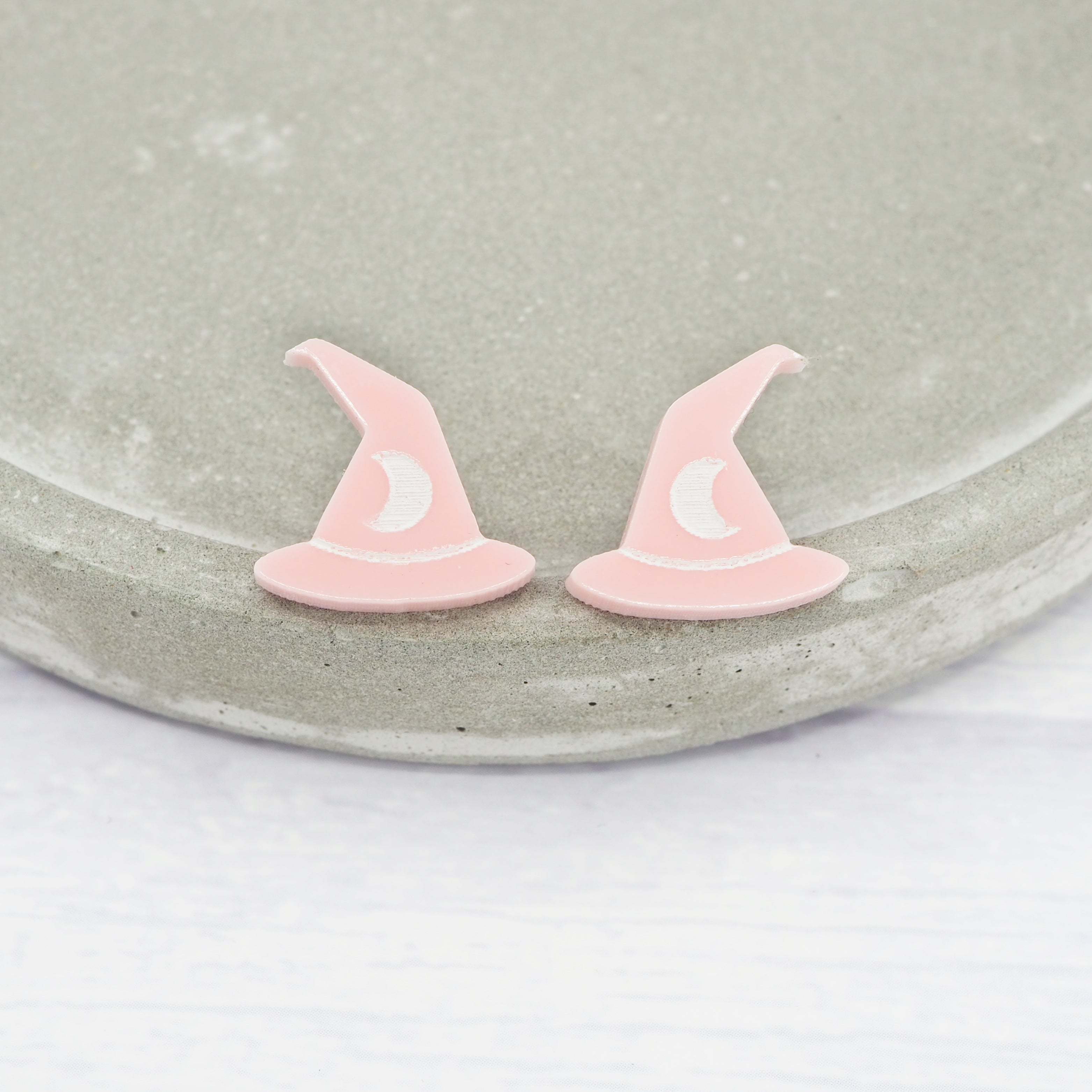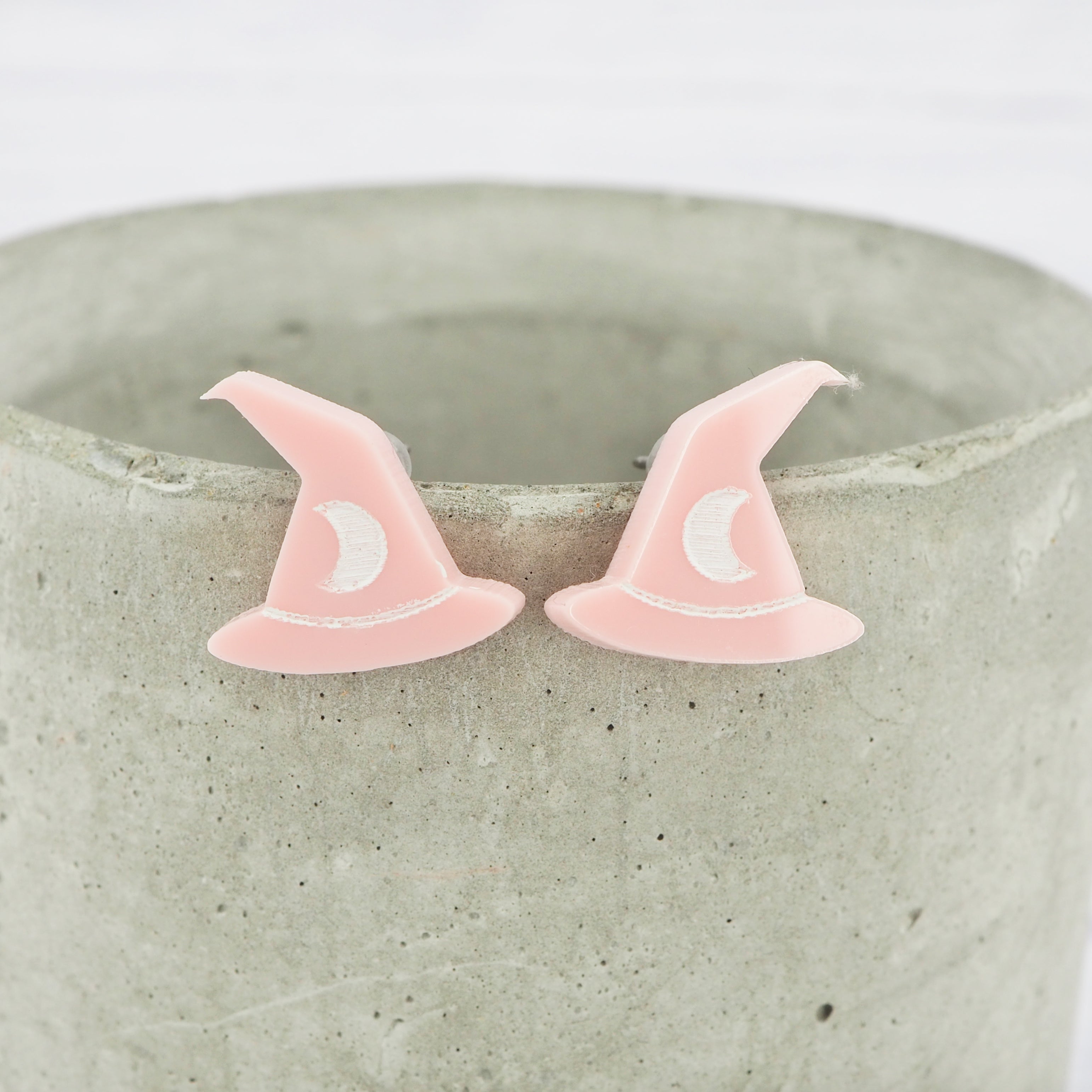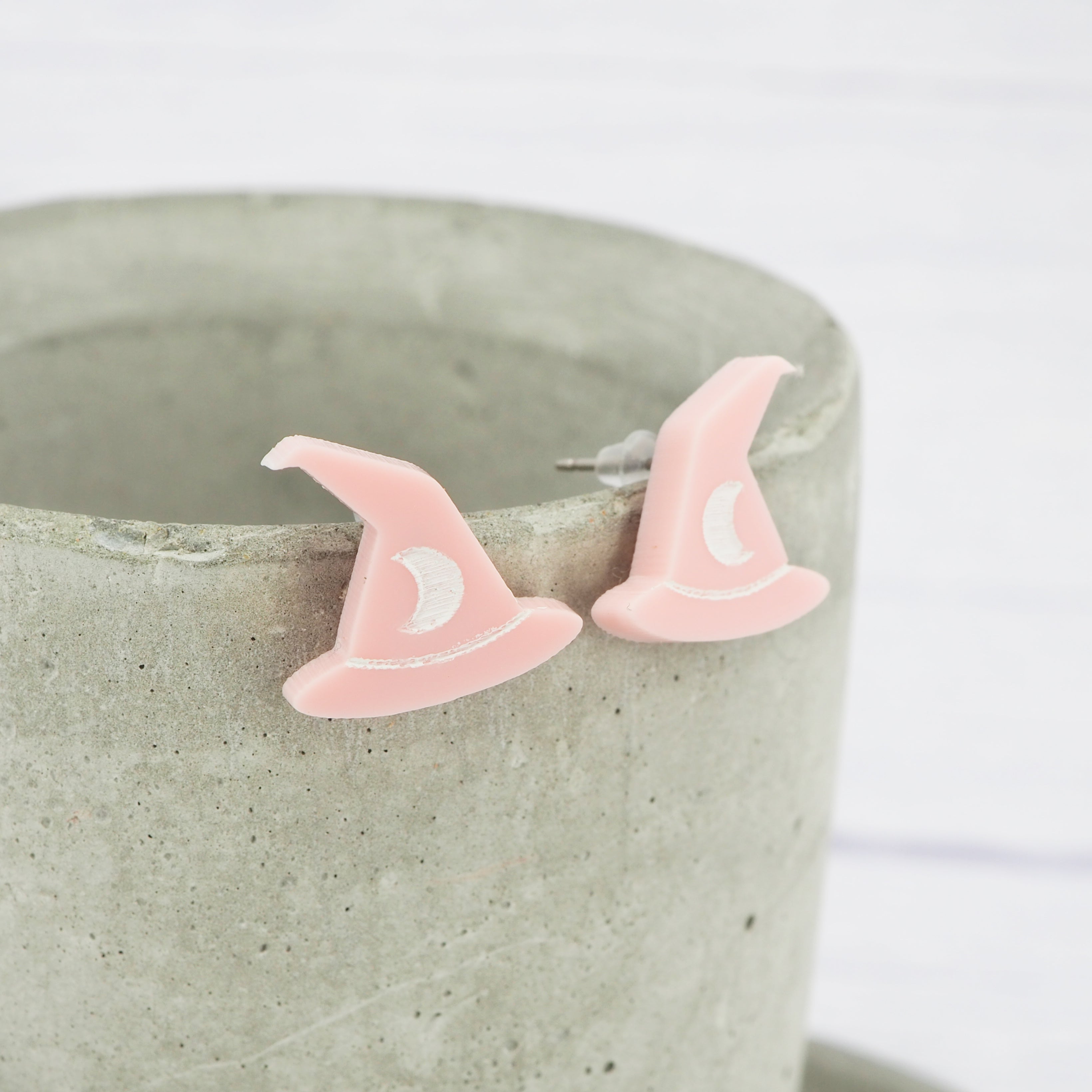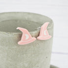 Glossy pink witches hat studs