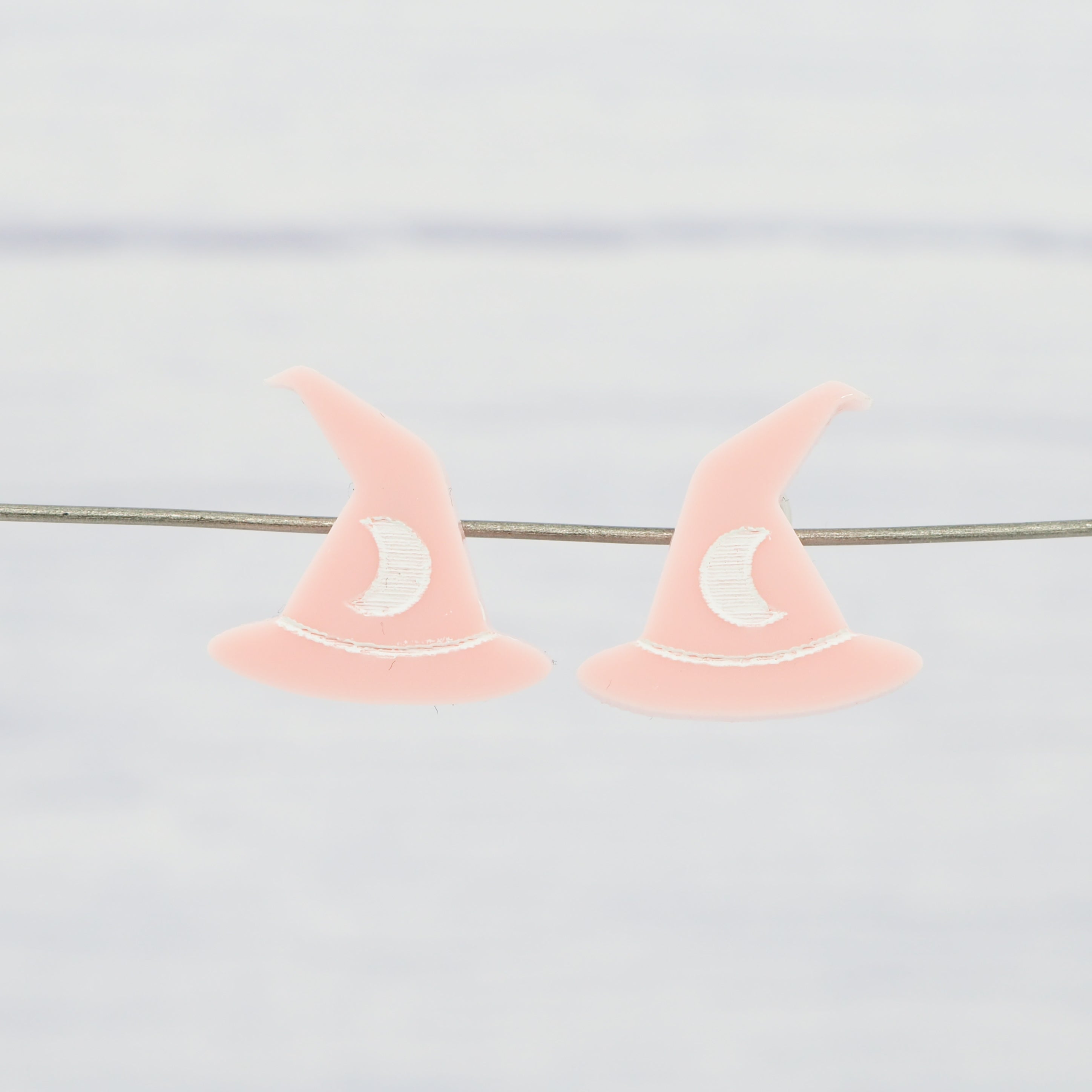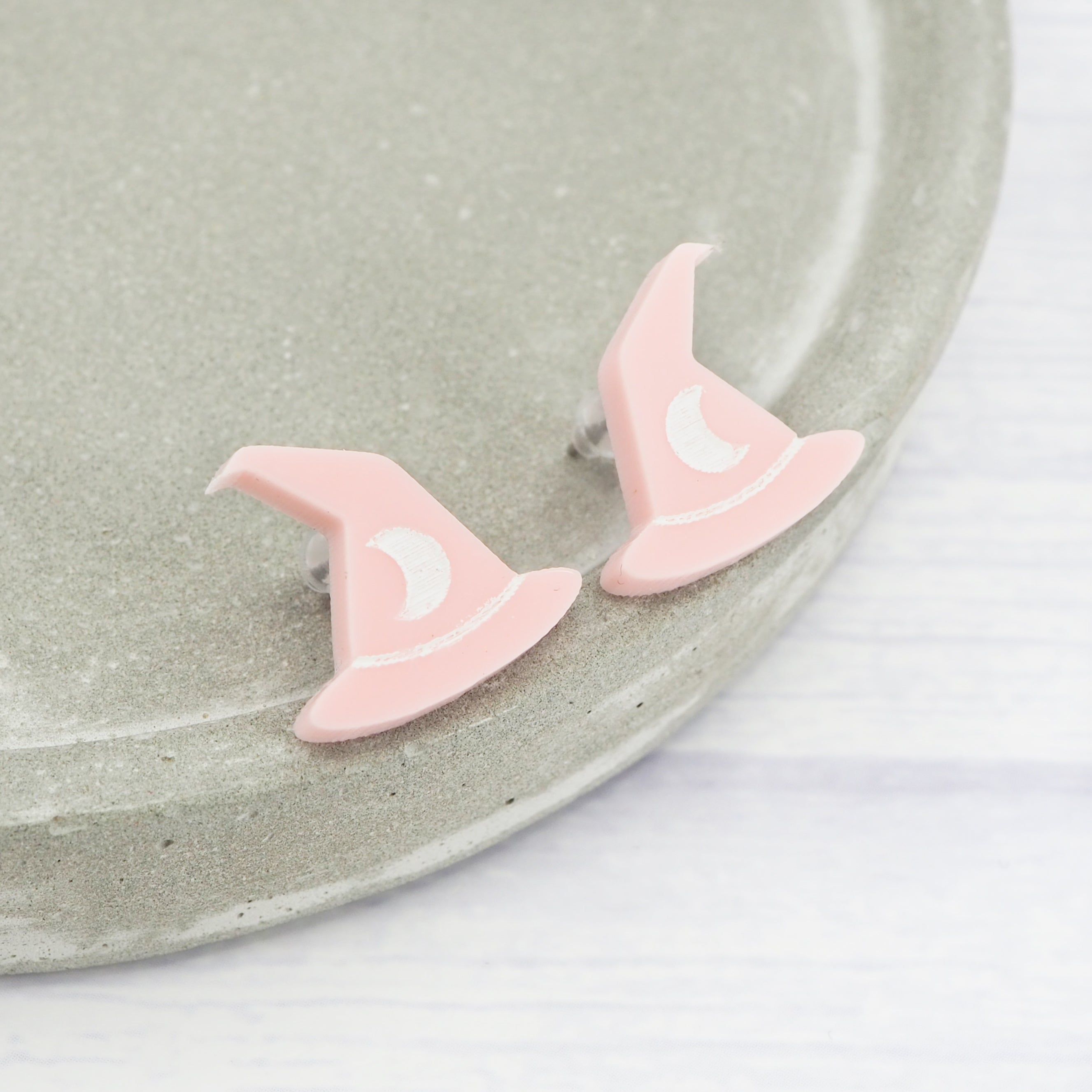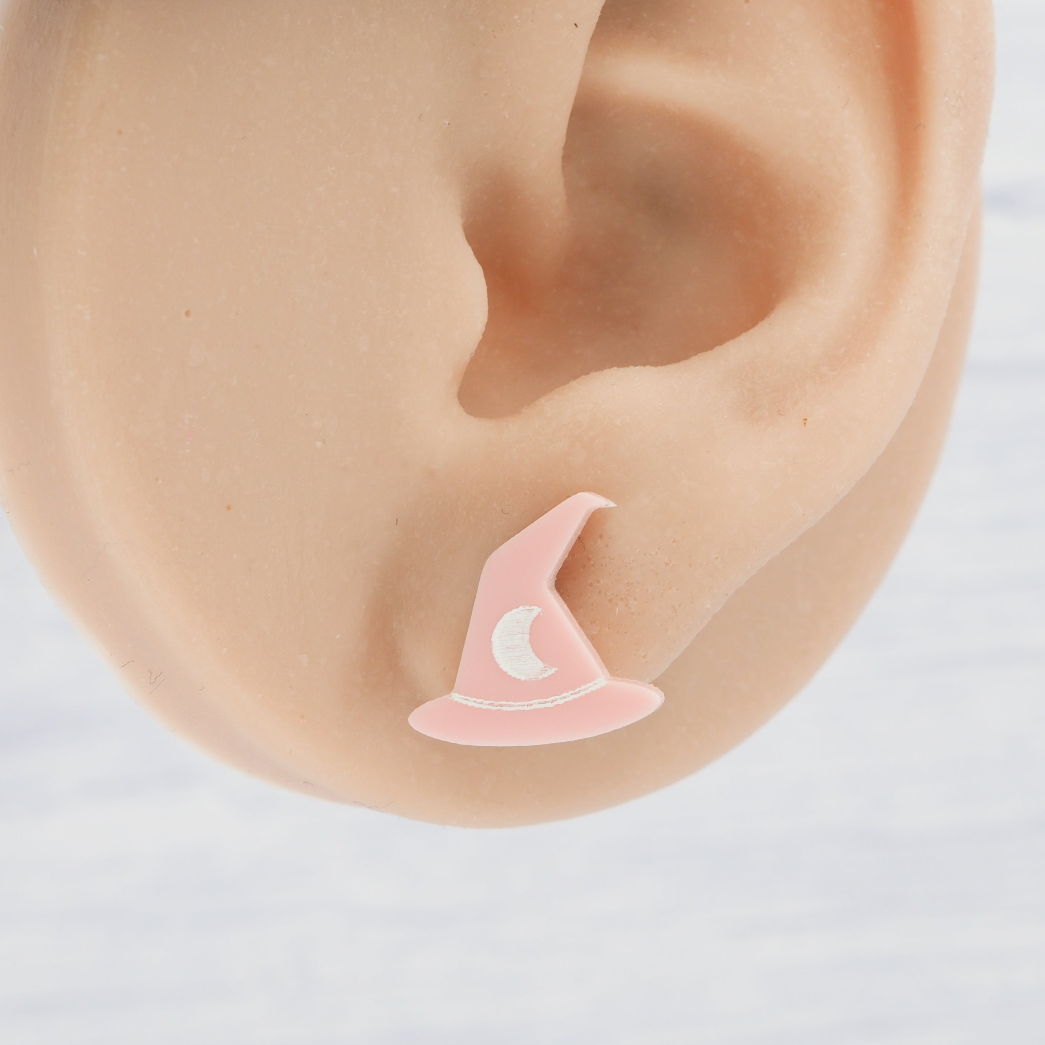 Glossy pink witches hat studs