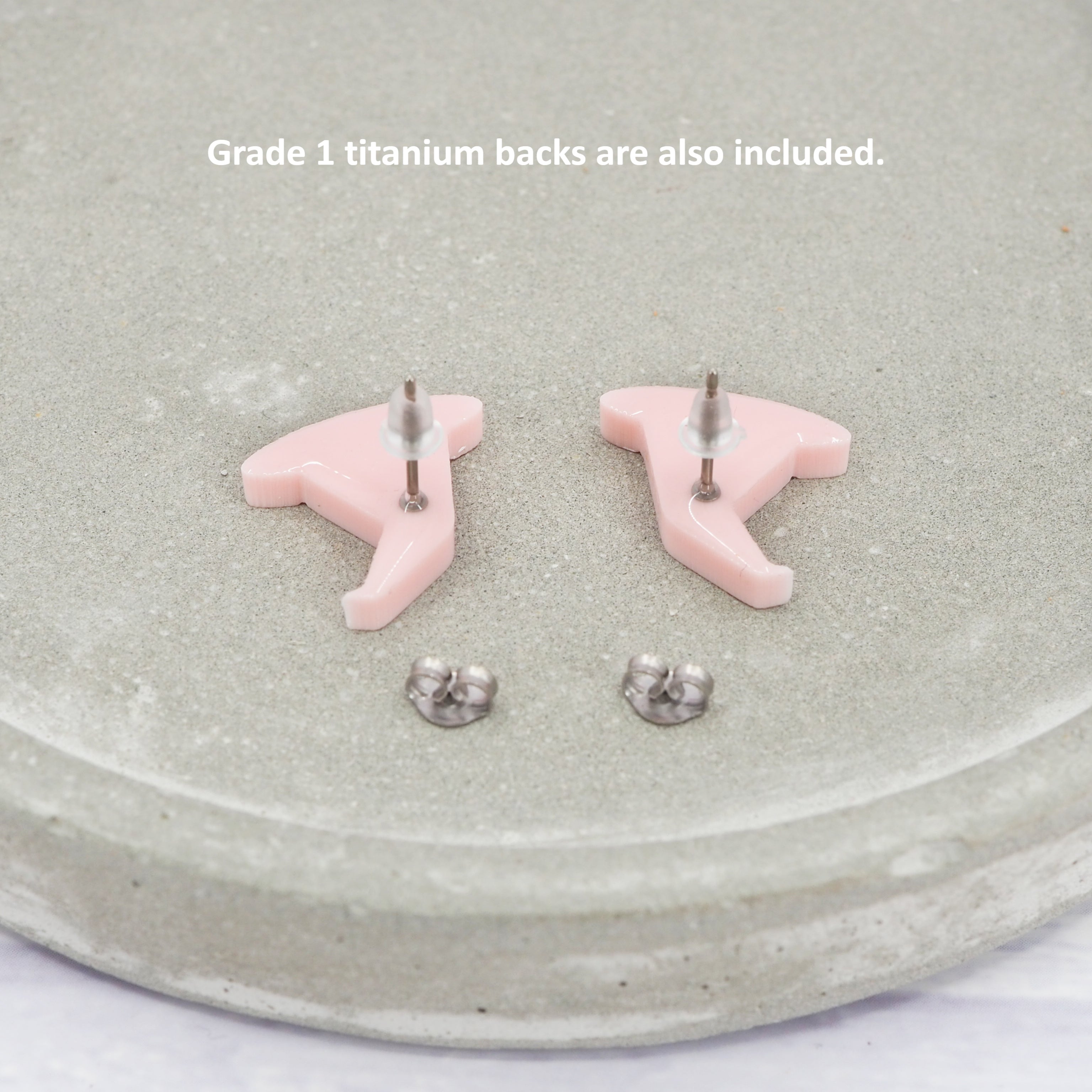 Glossy pink witches hat studs with 0.7mm titanium ear stems.
