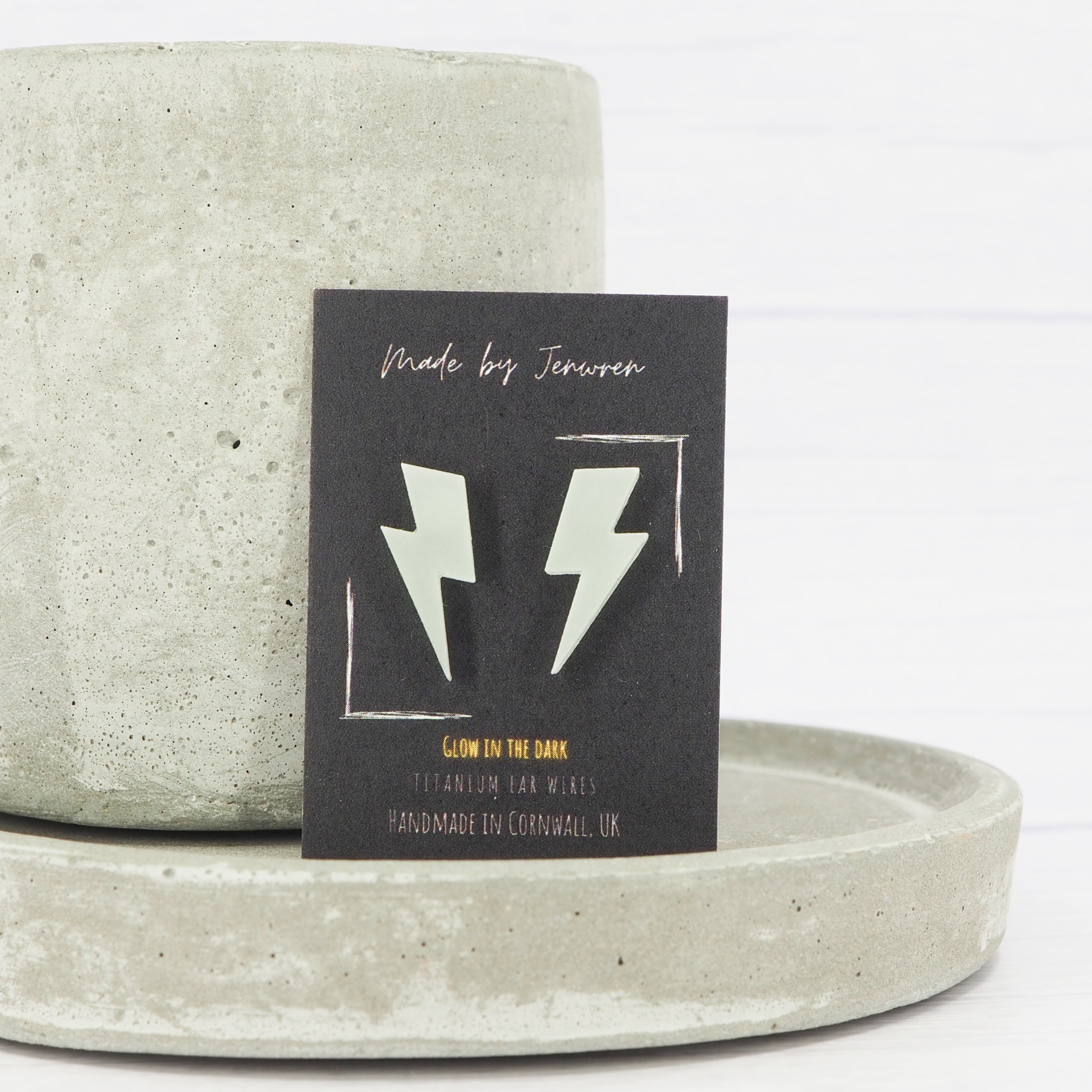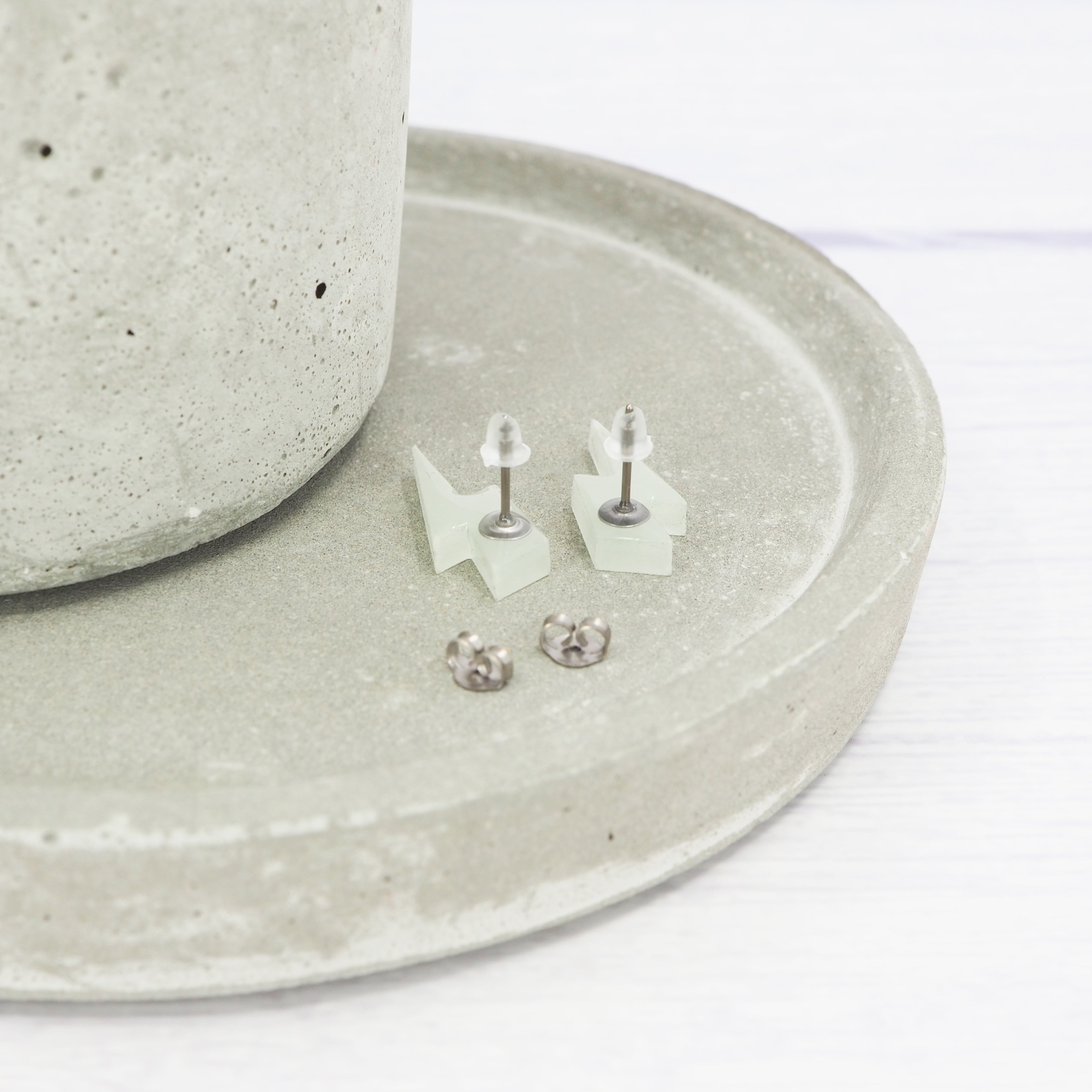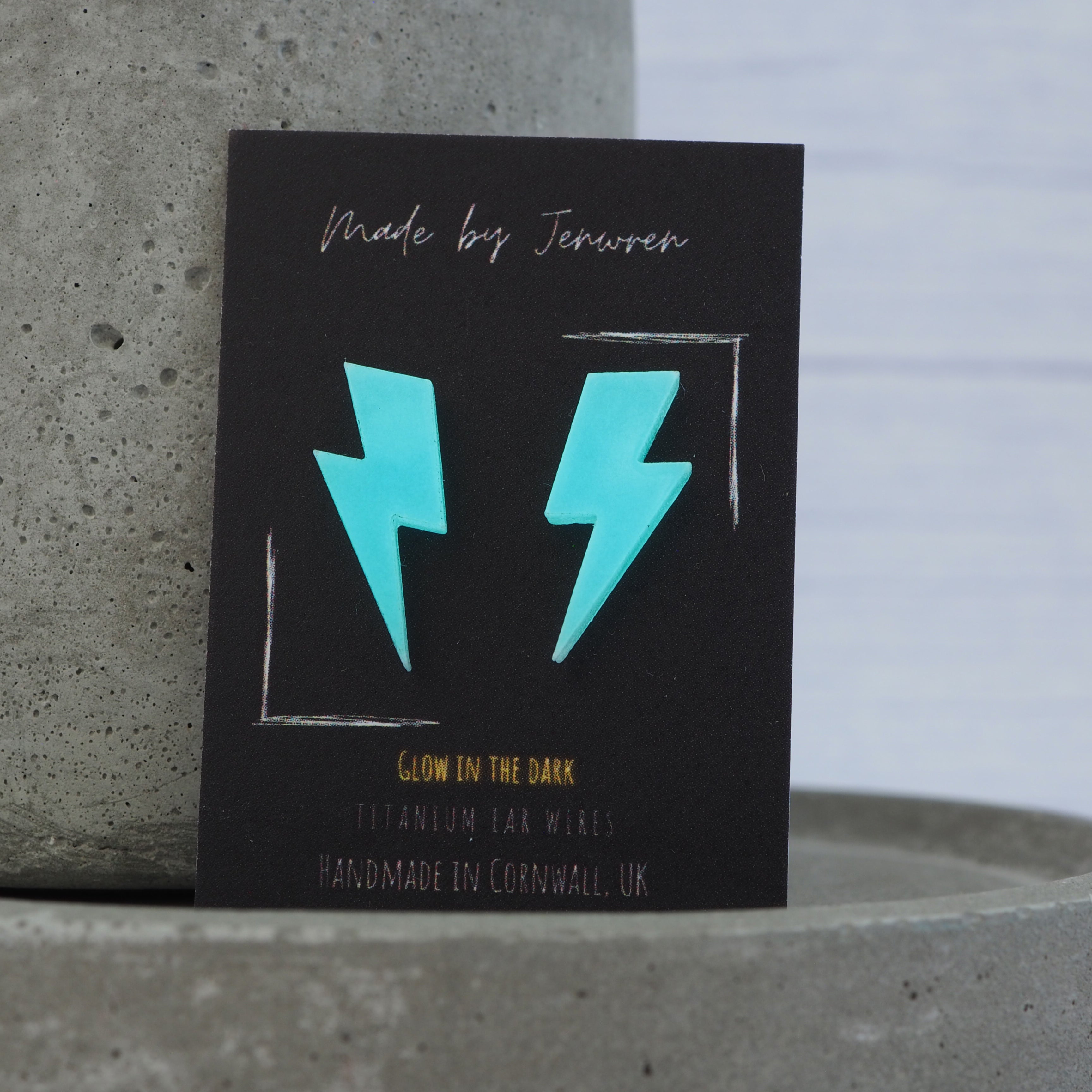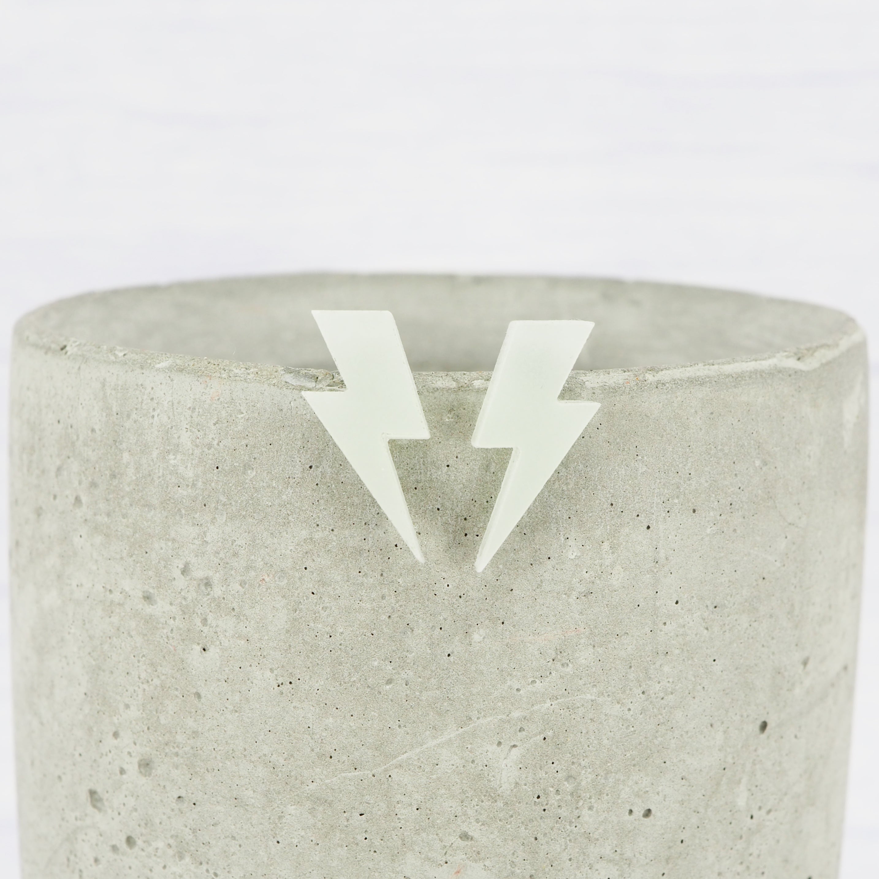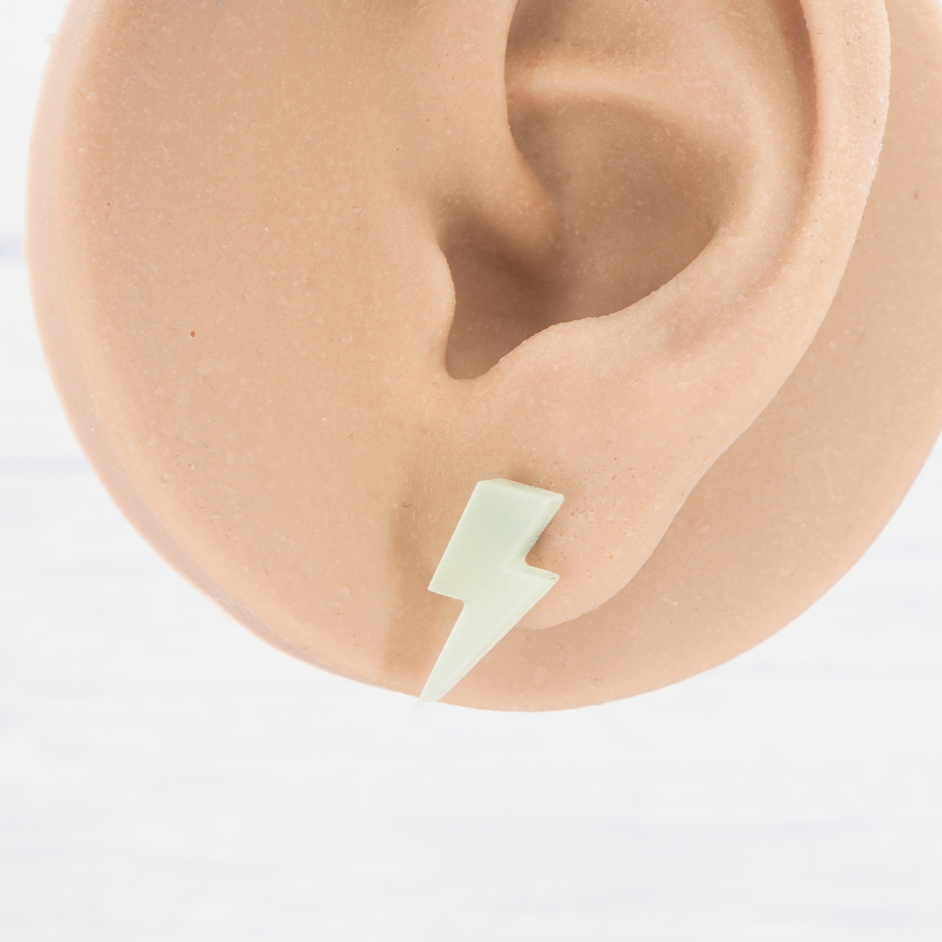 Glow-in-the-dark lightning bolt studs with 0.7mm ear stems.