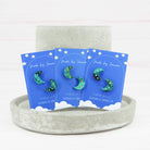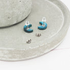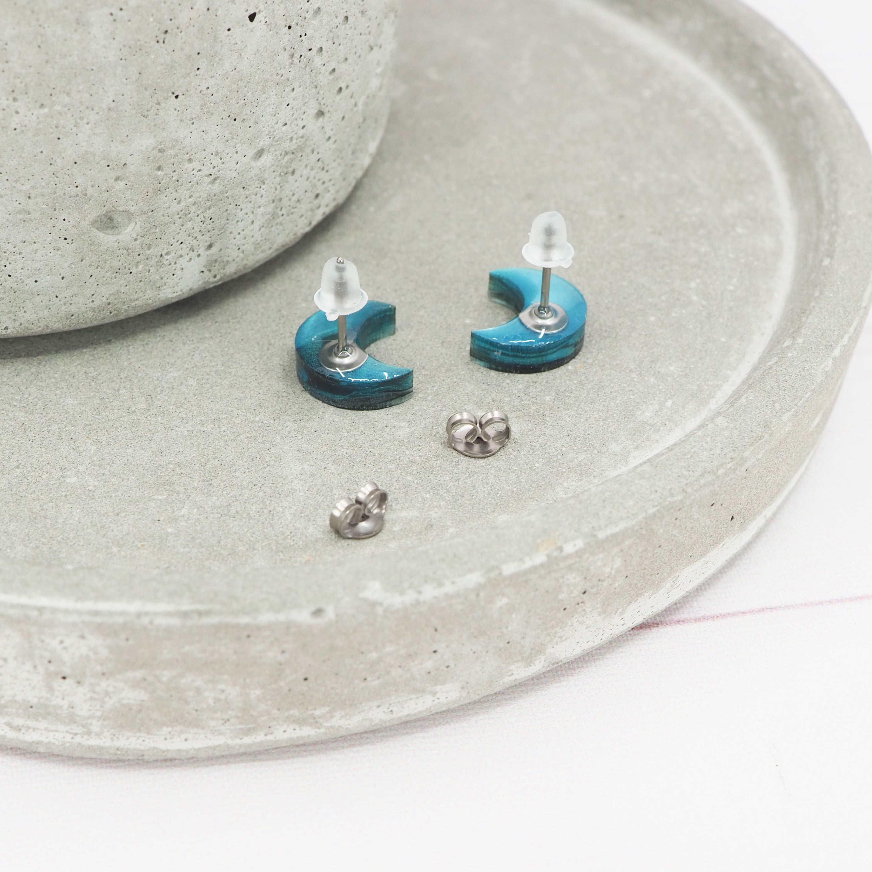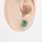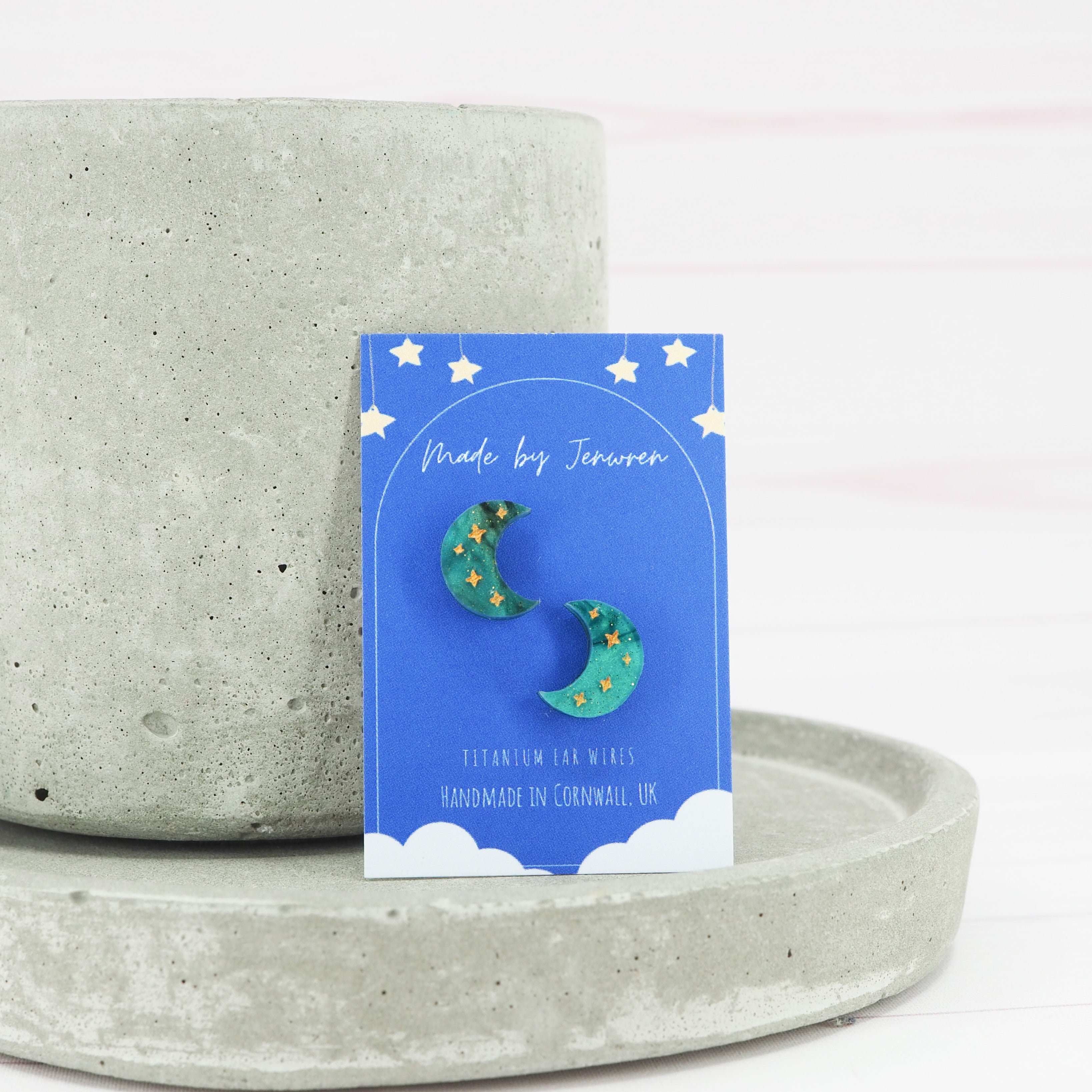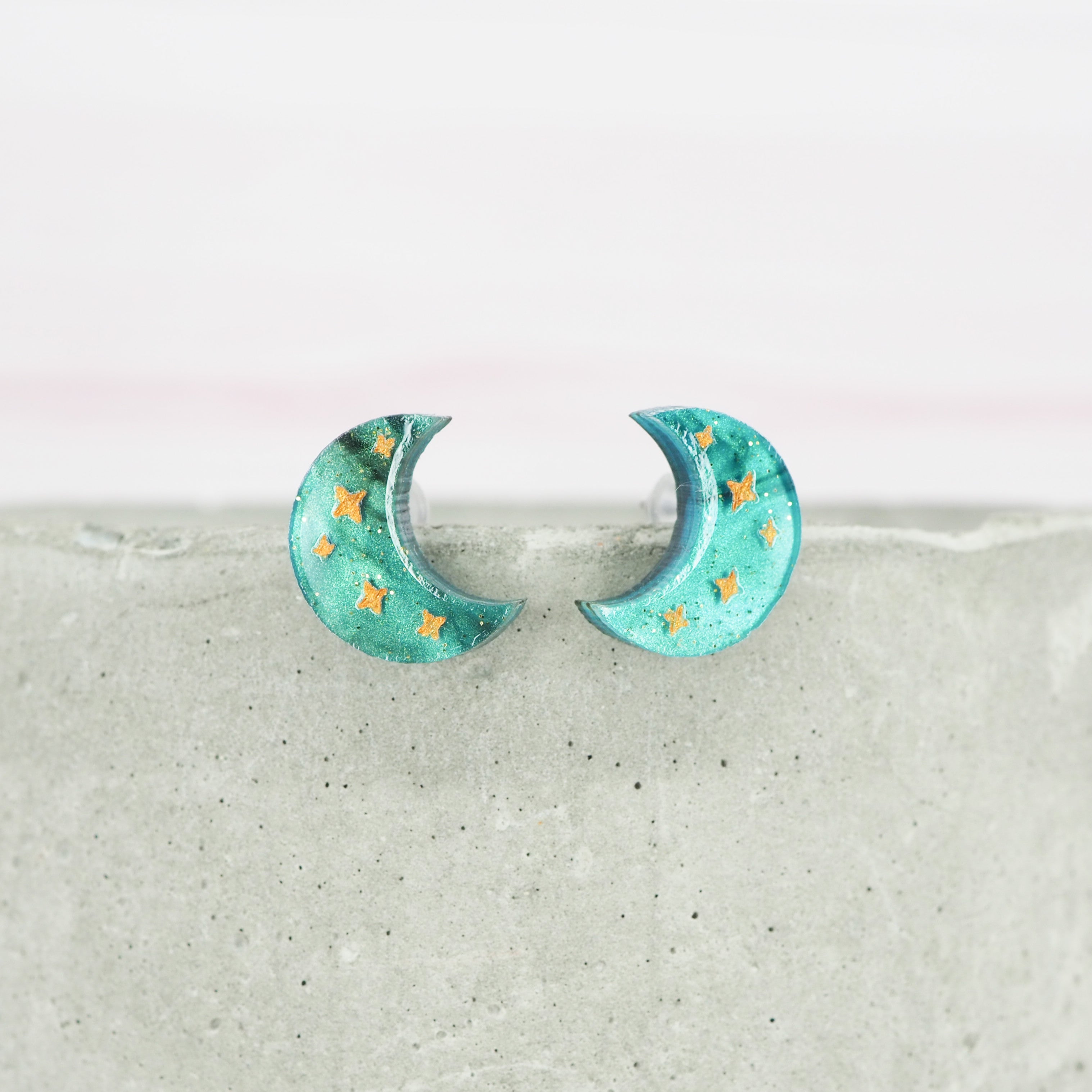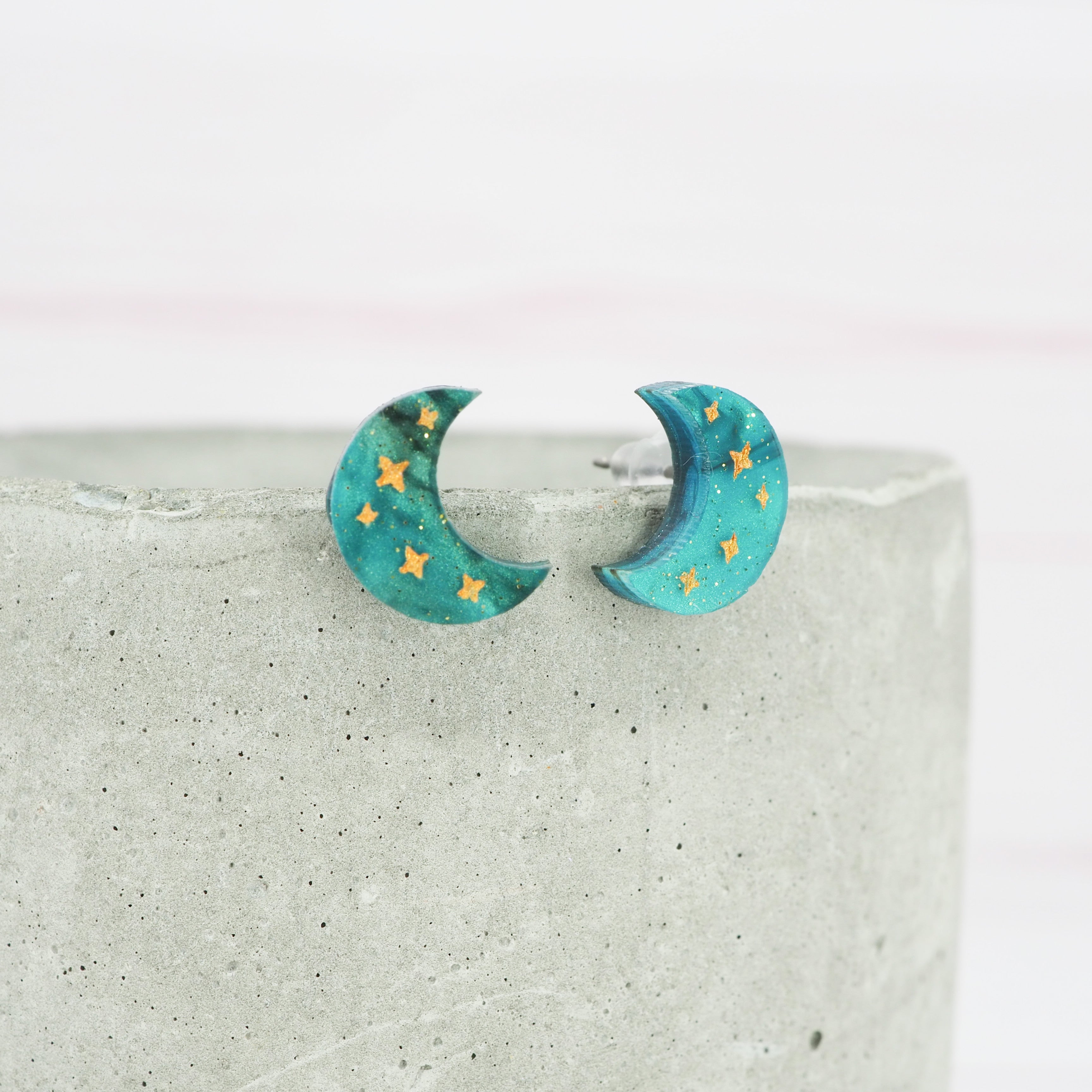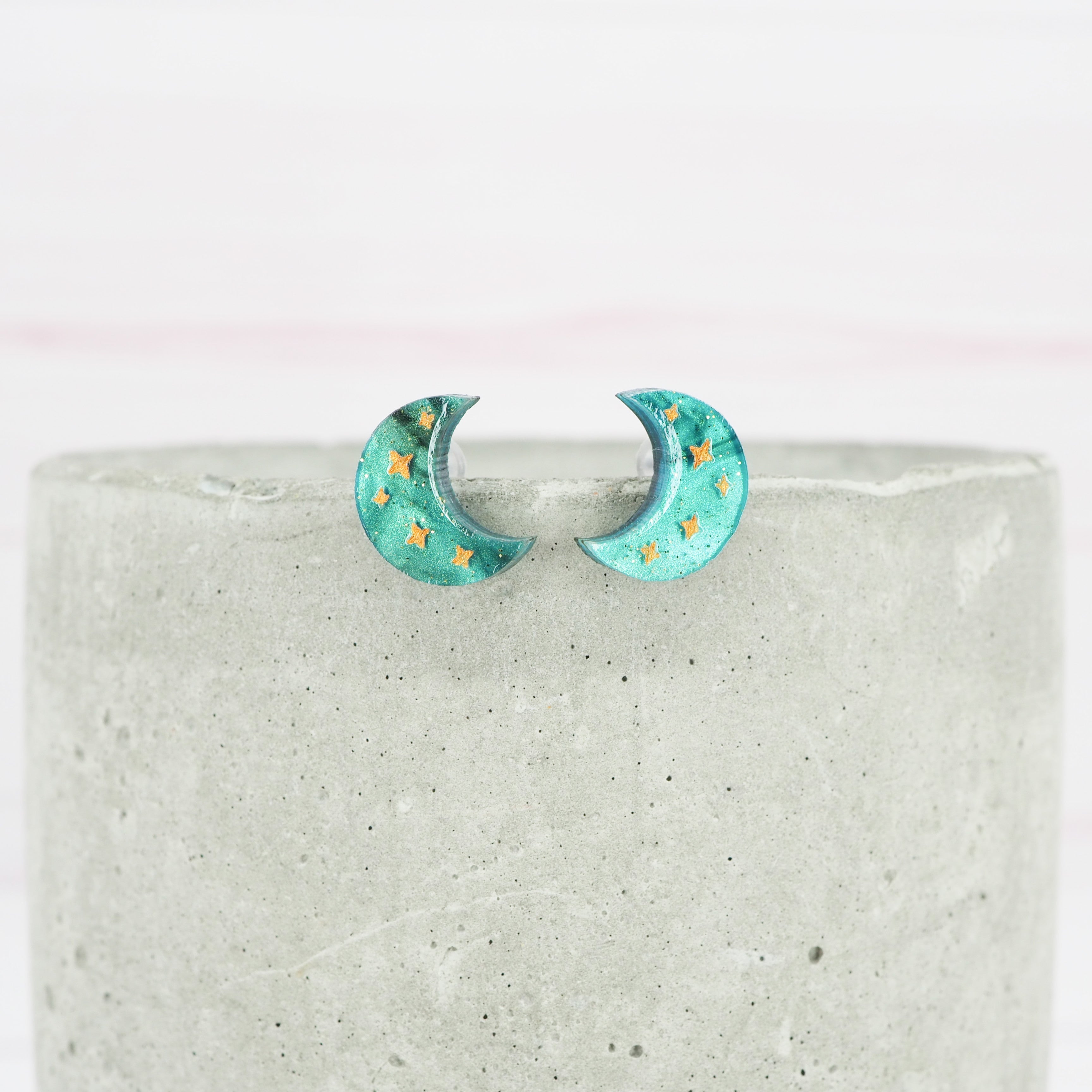 Green galaxy with Gold star crescent moon studs with 0.7mm ear stems.
