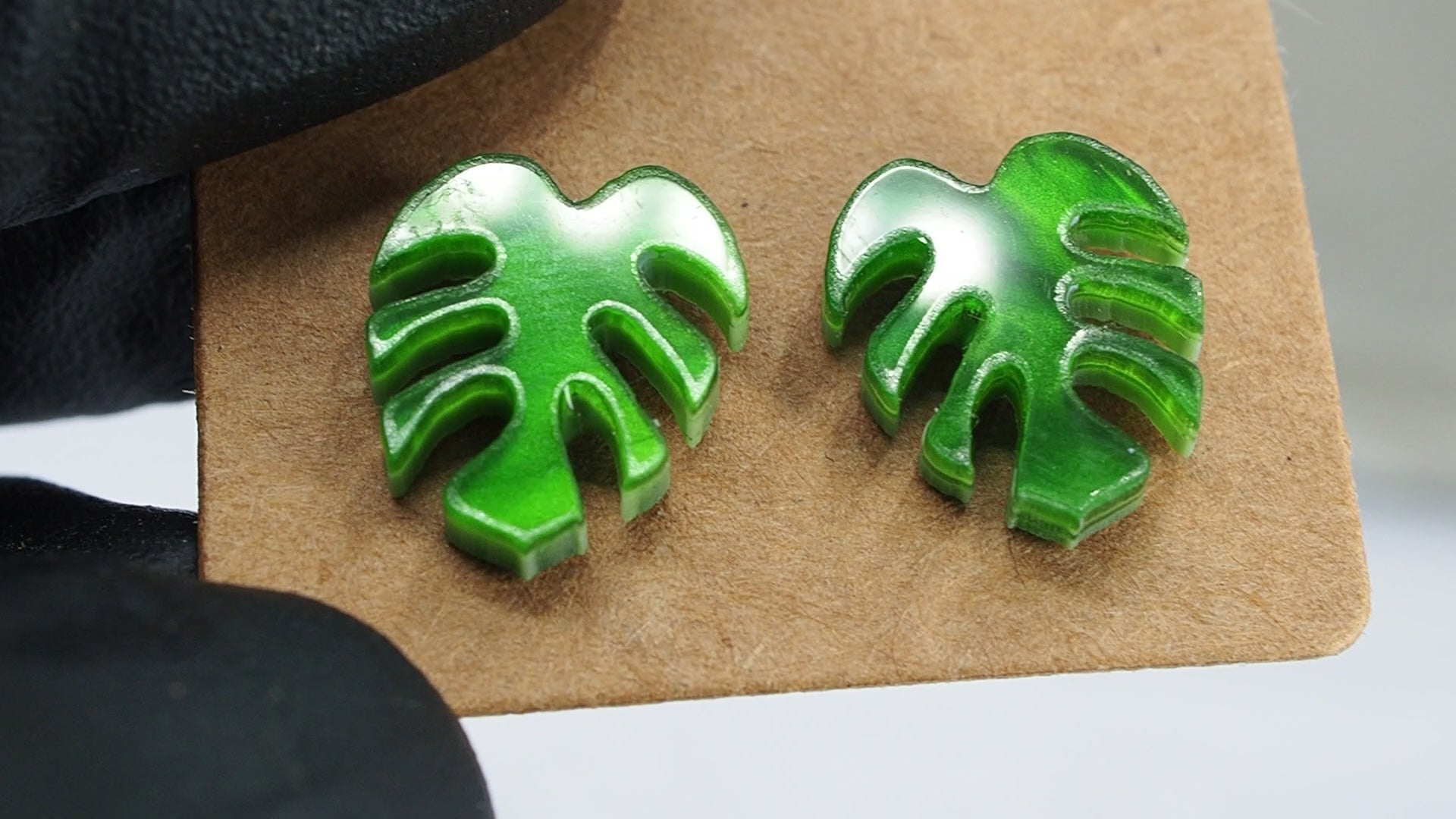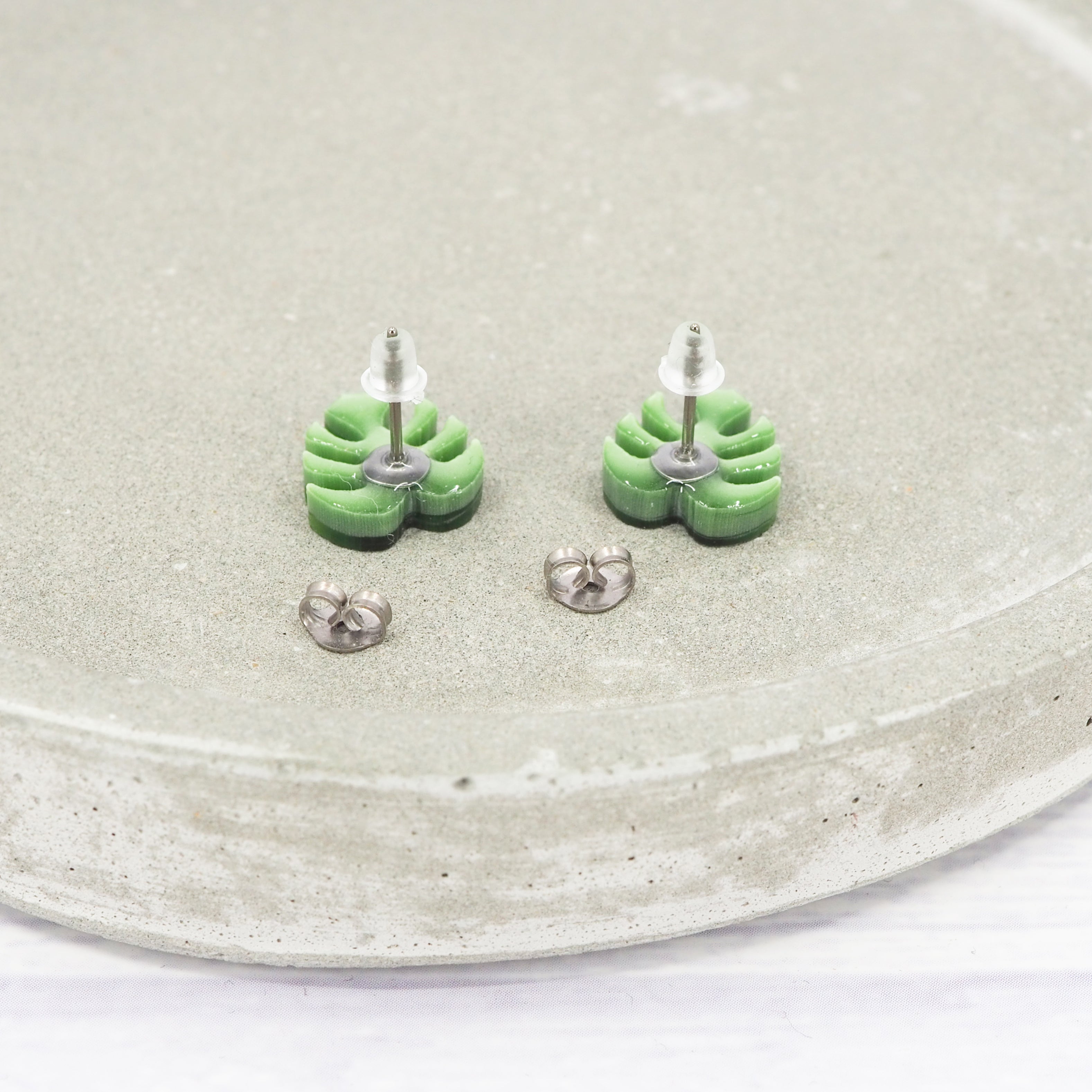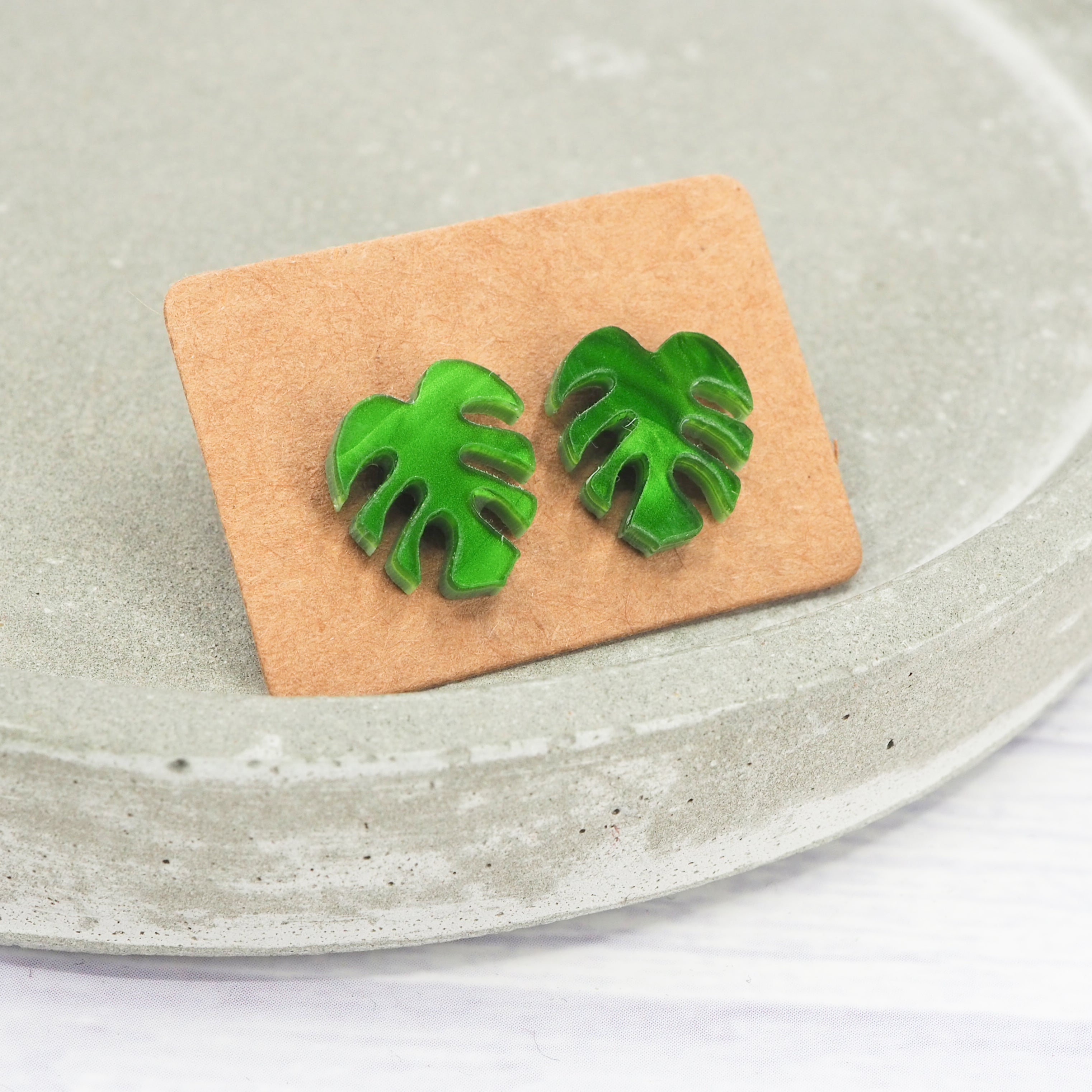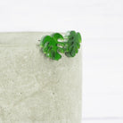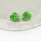 Green pearly Monstera leaf studs