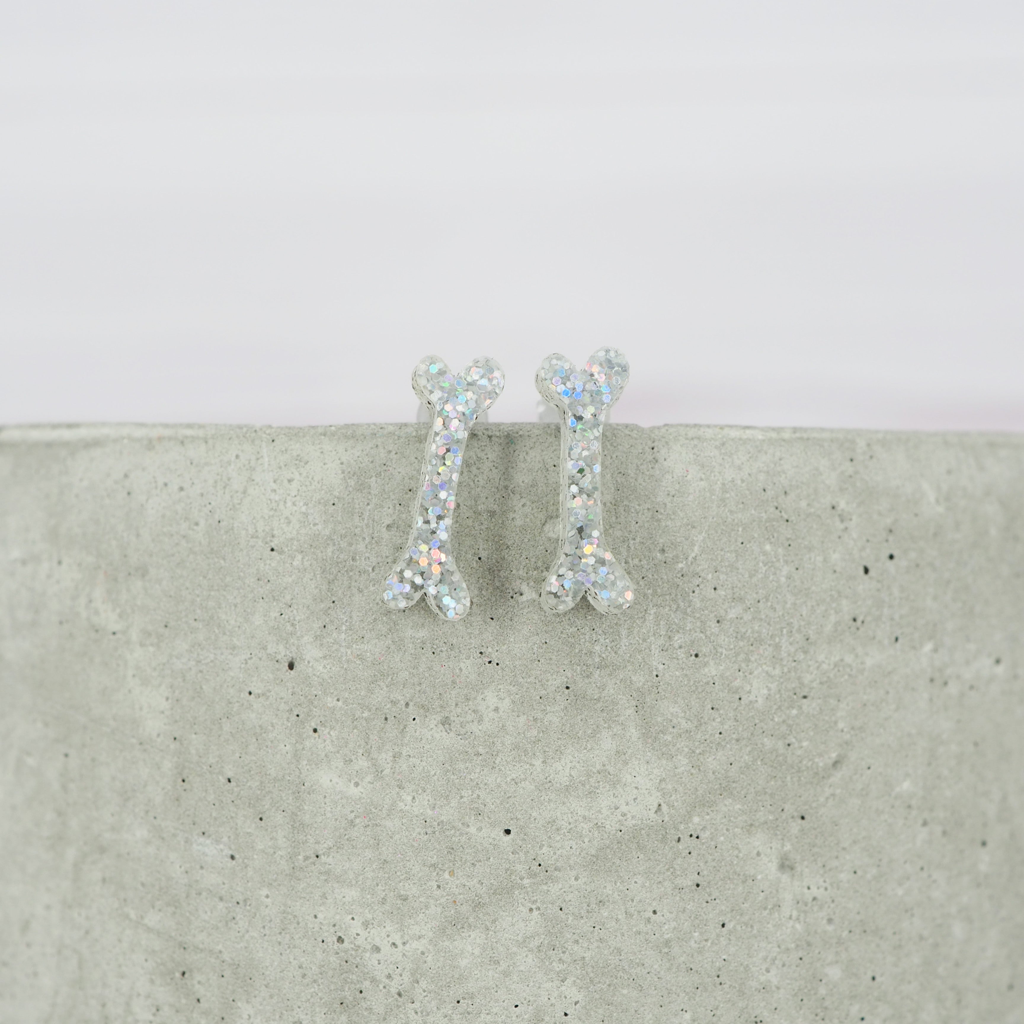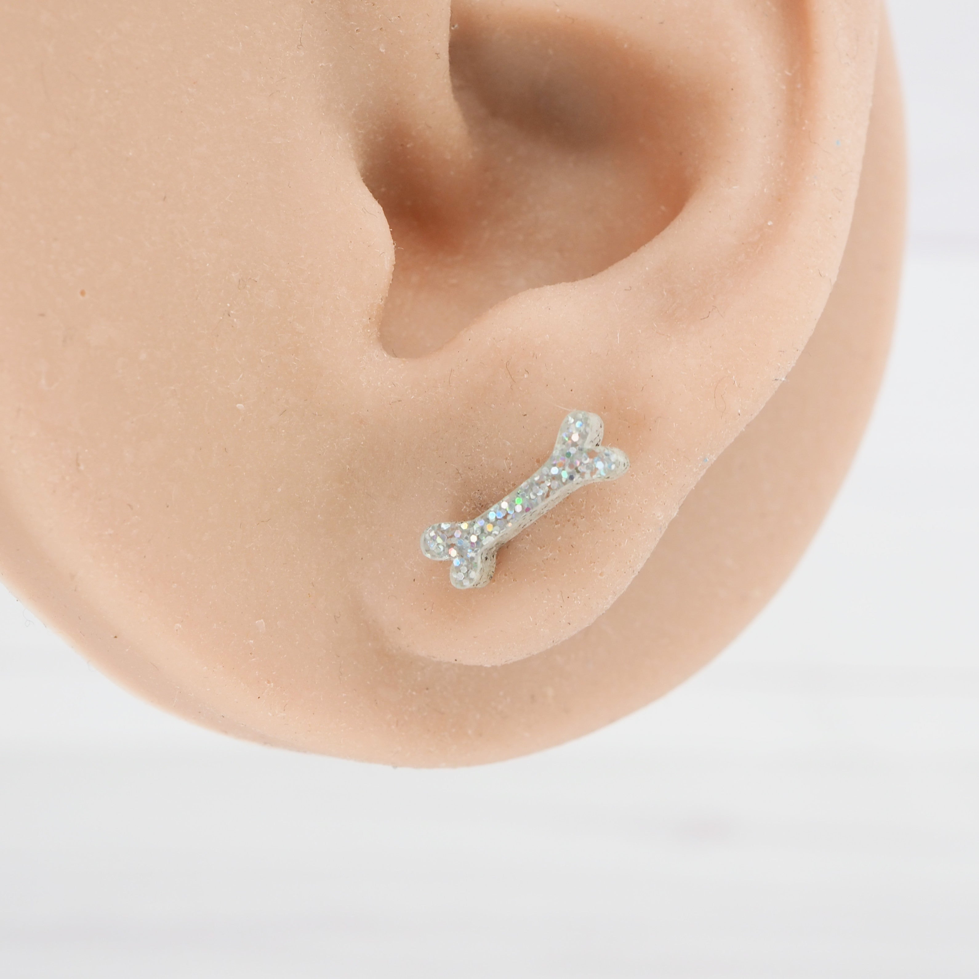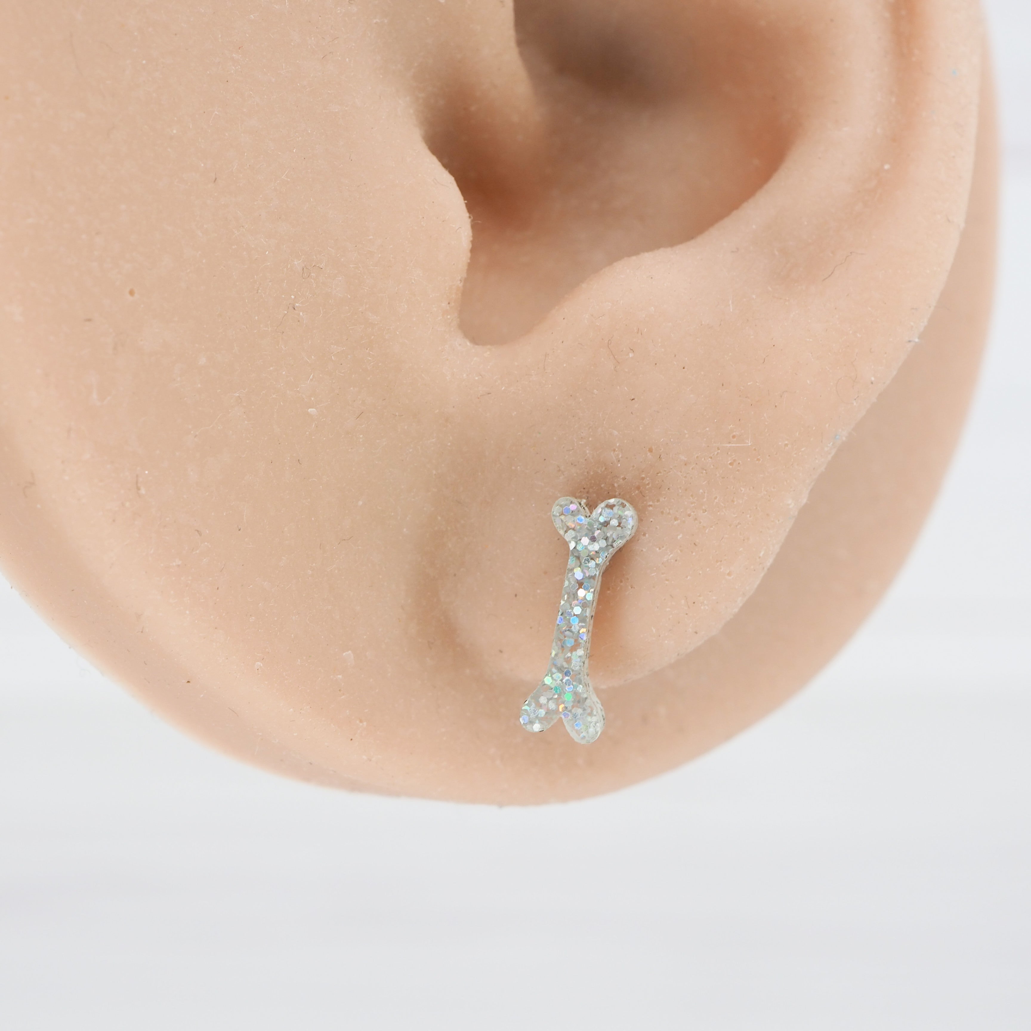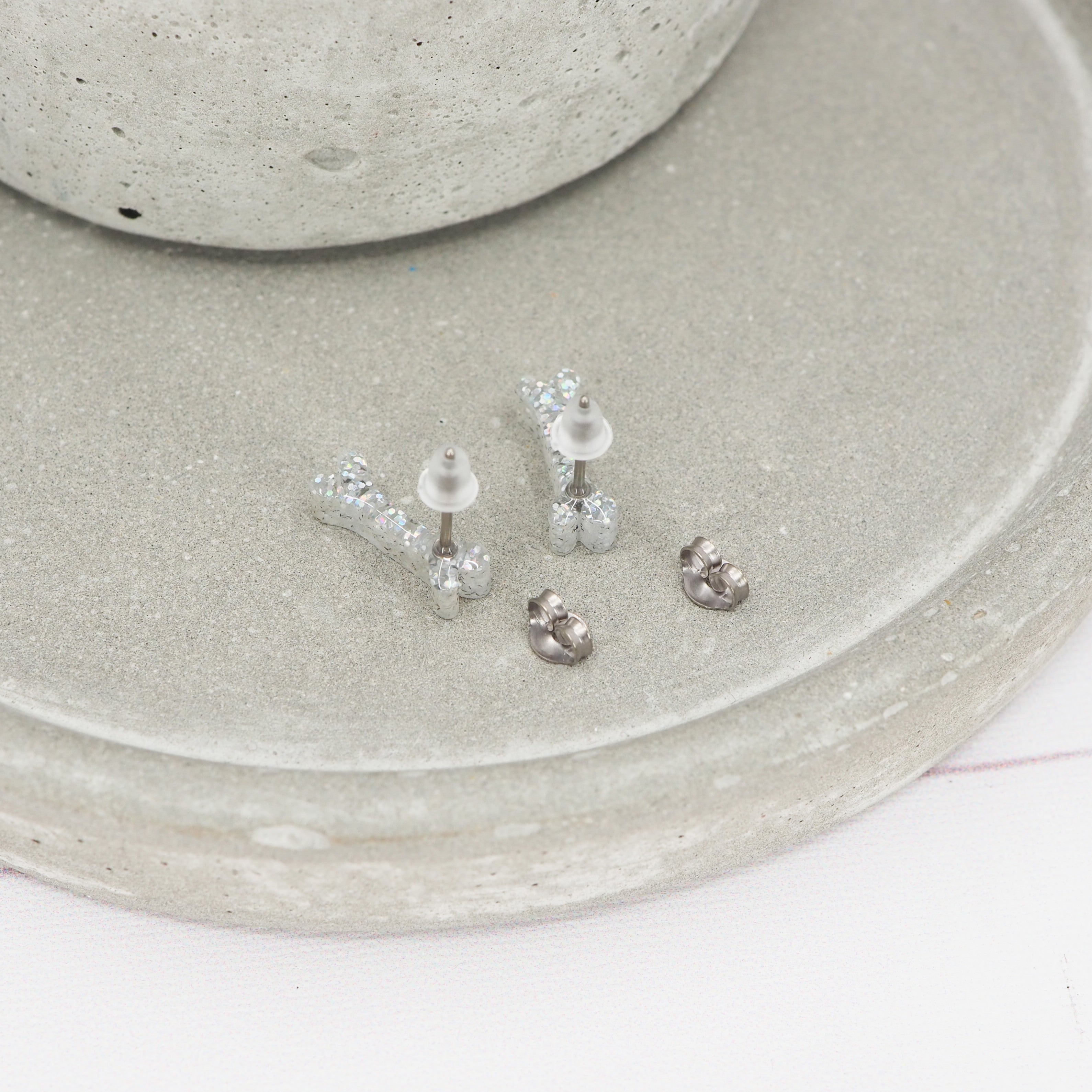 Holographic glitter bone studs with 0.7mm Grade 1 titanium ear stems.