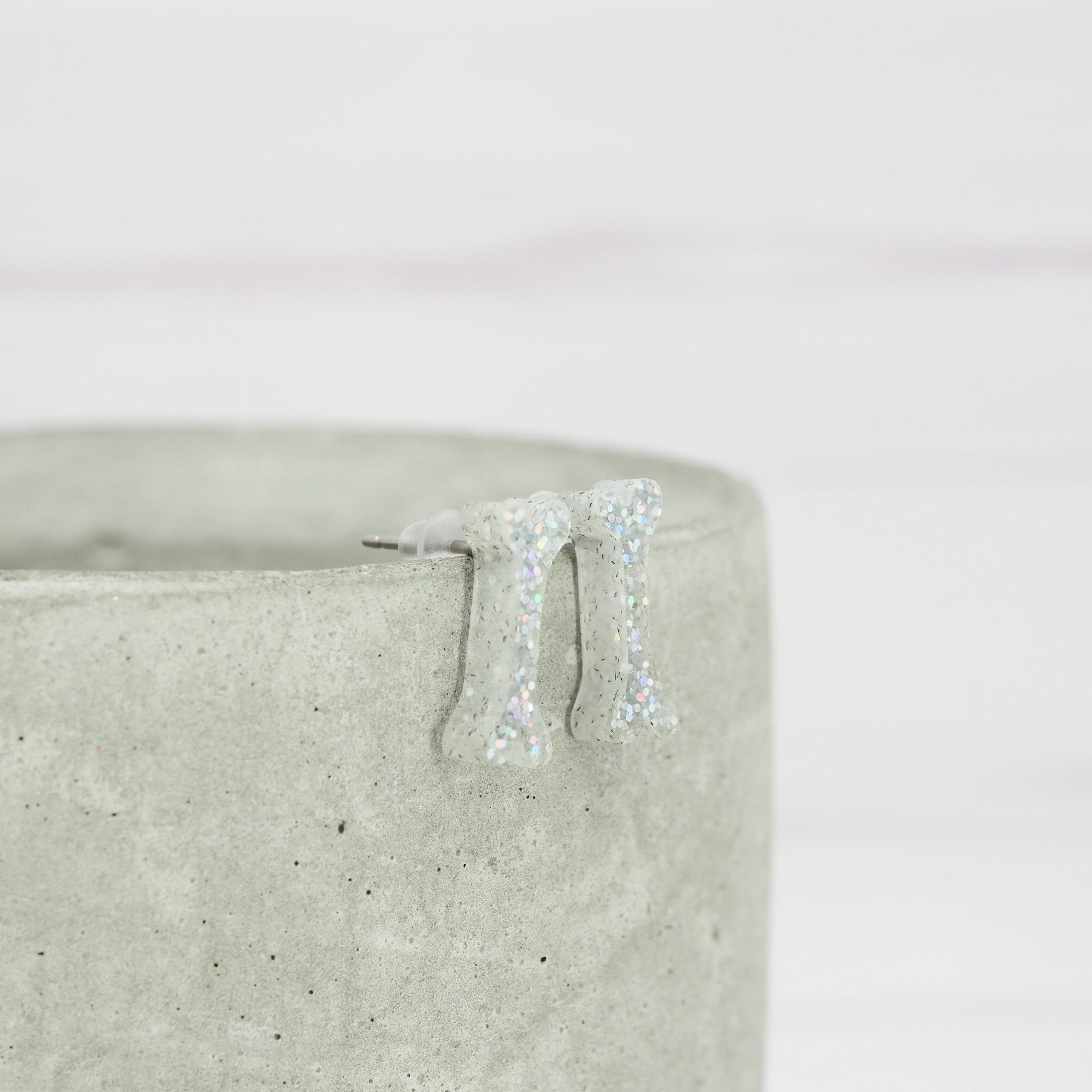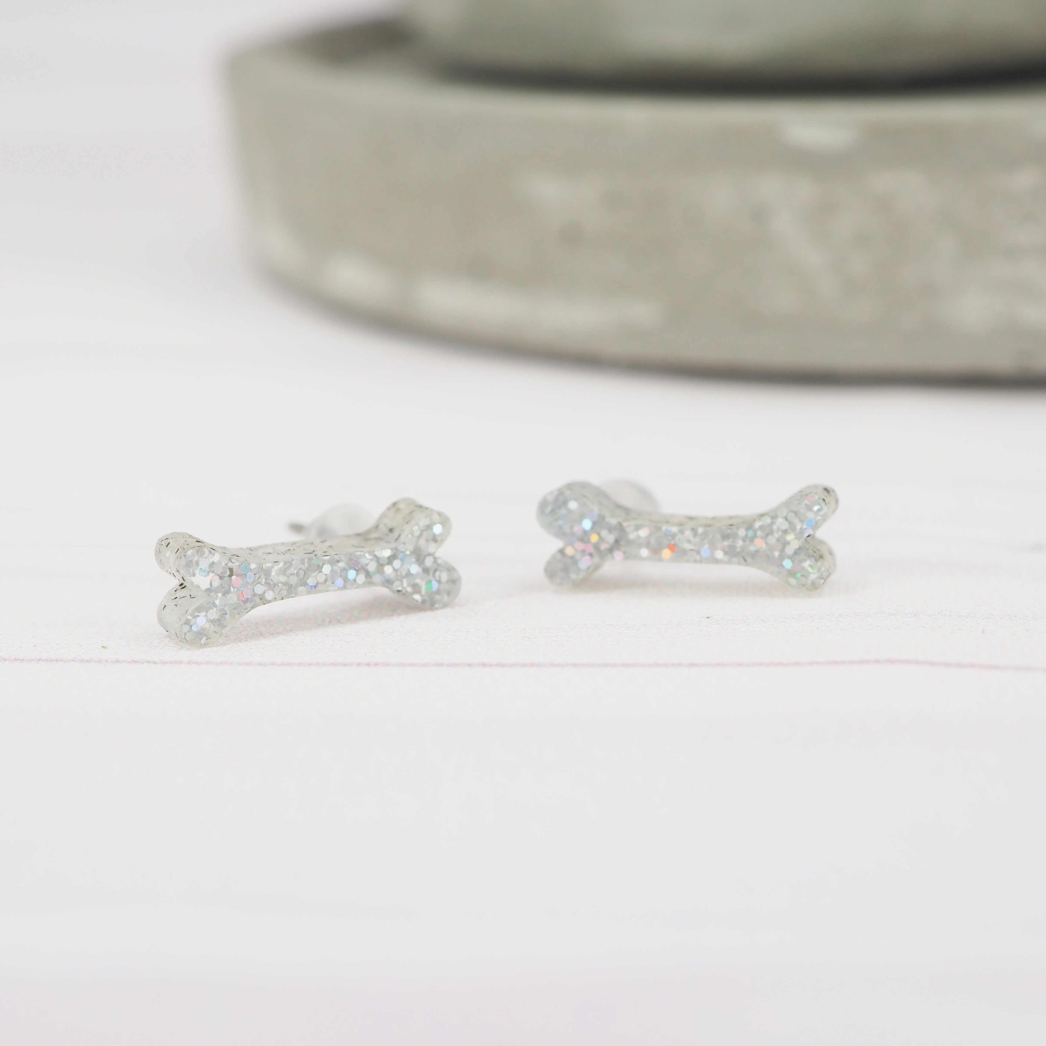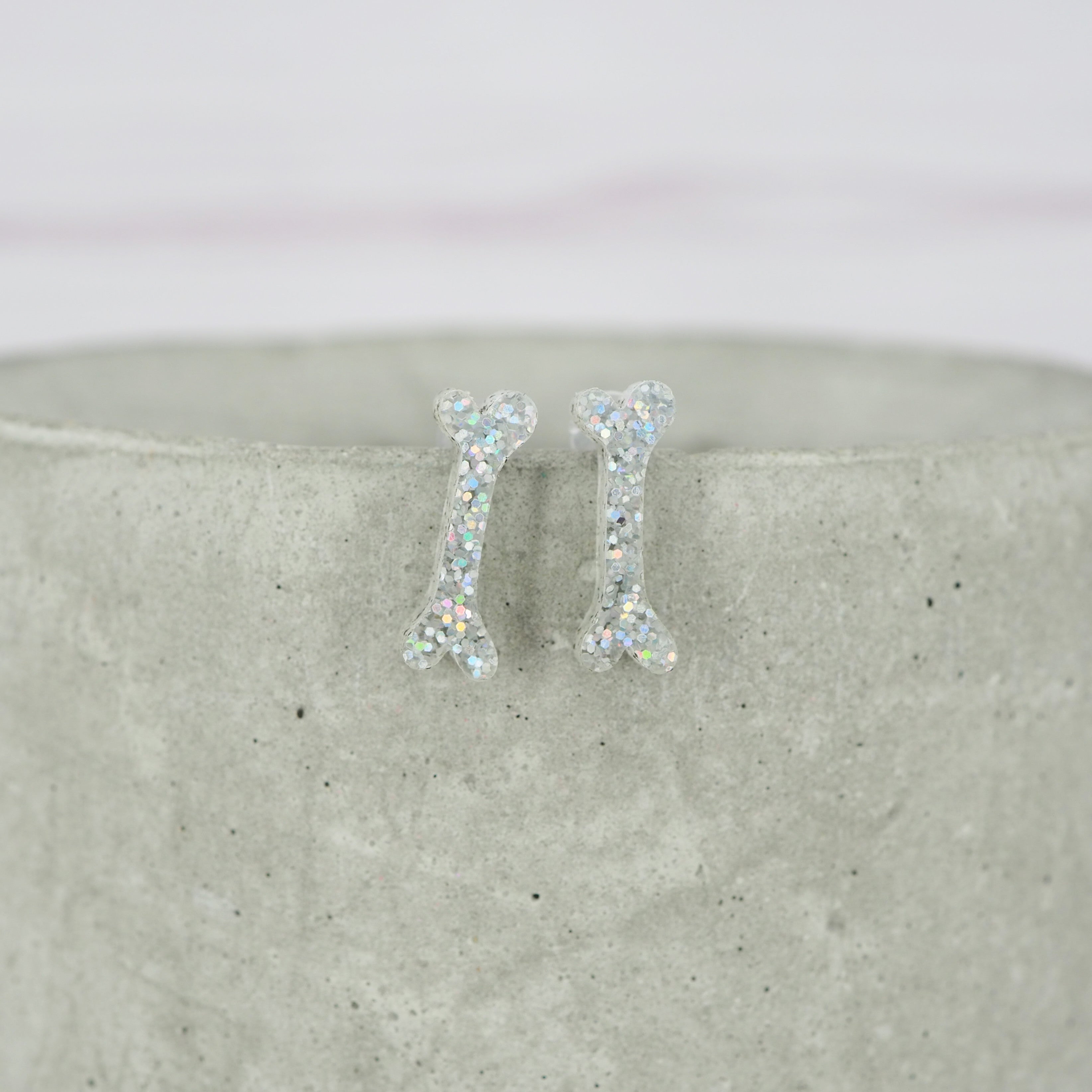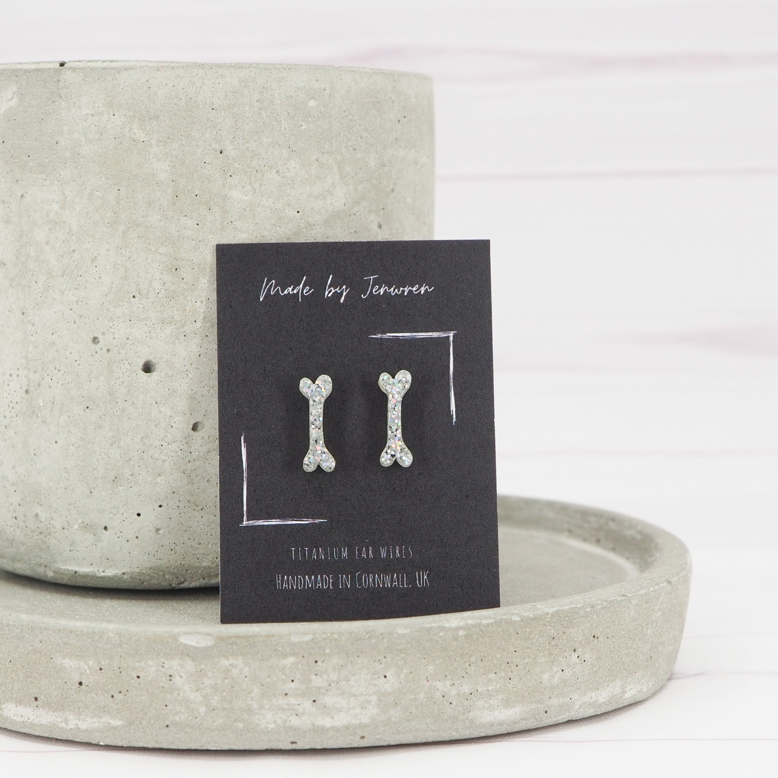 Holographic glitter bone studs with 0.7mm Grade 1 titanium ear stems.