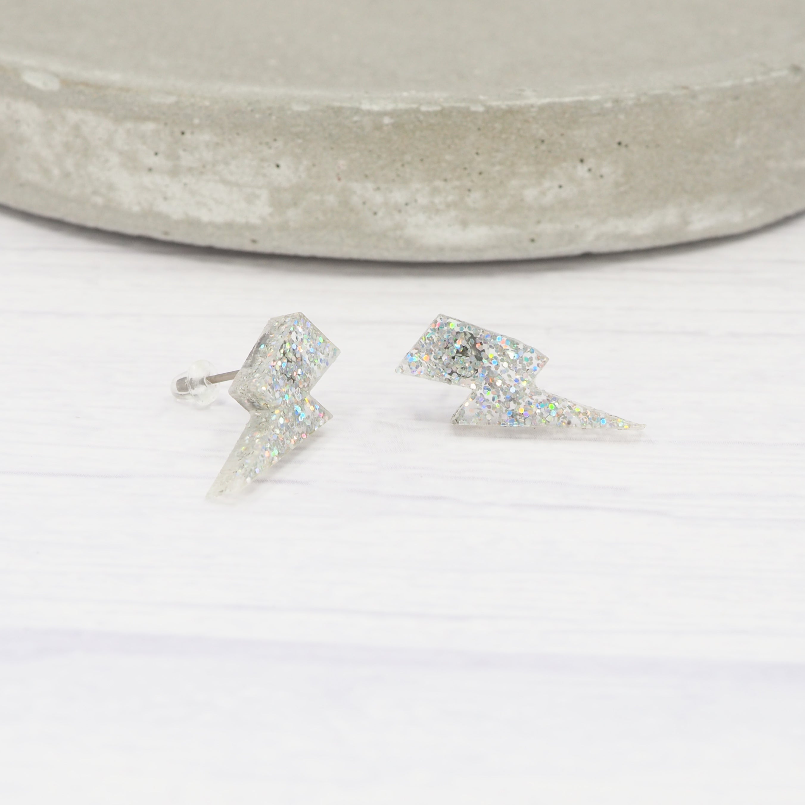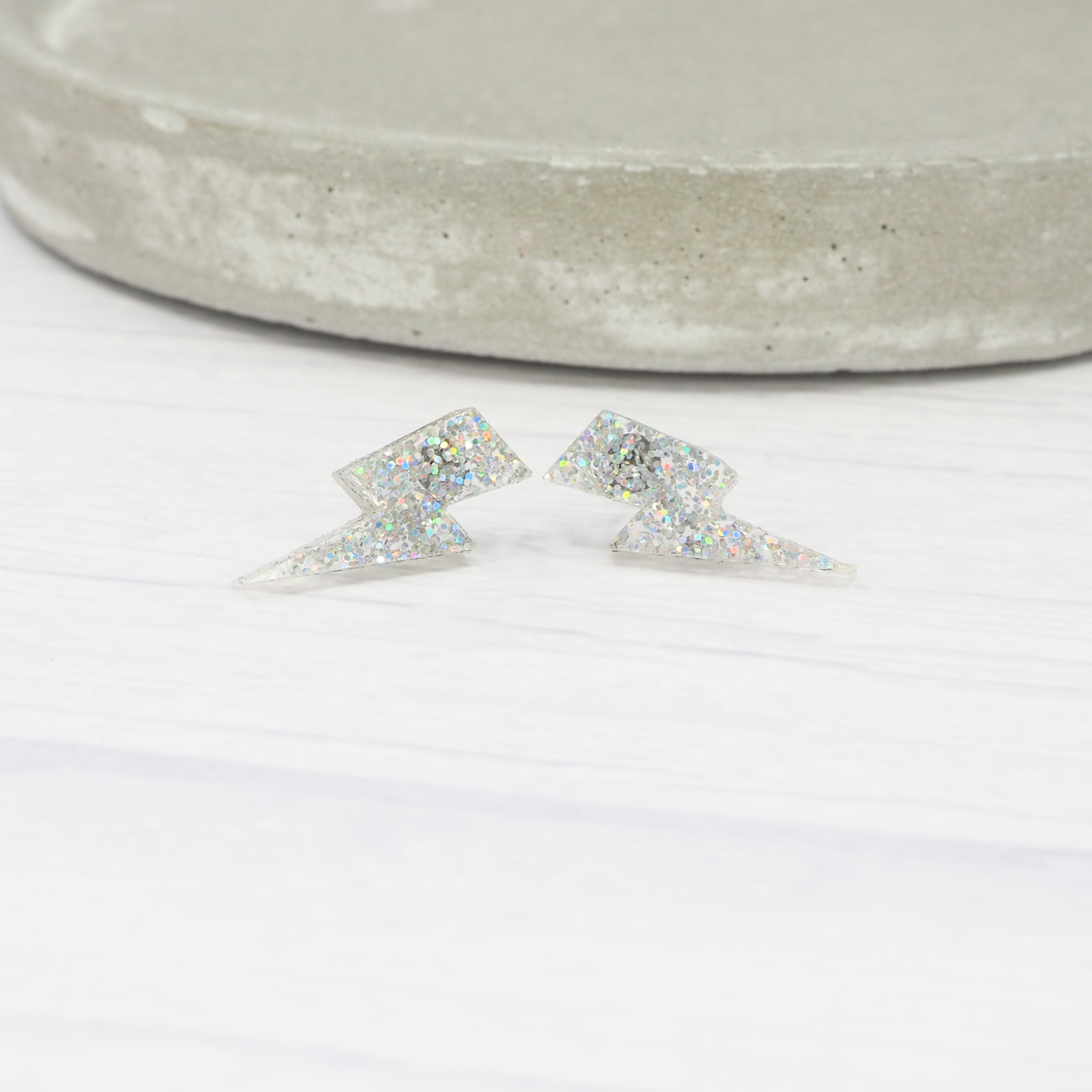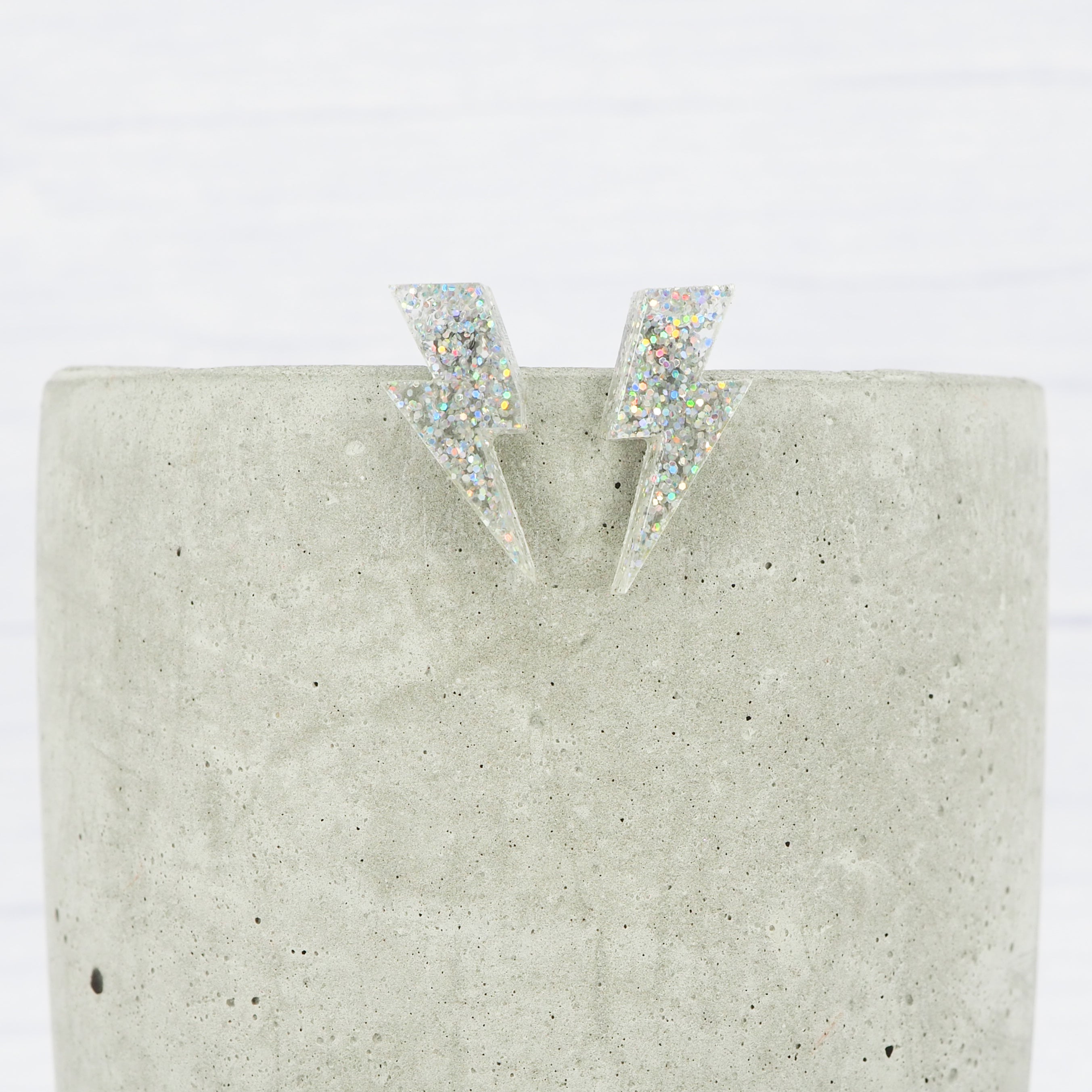Holographic glitter lightning bolt studs