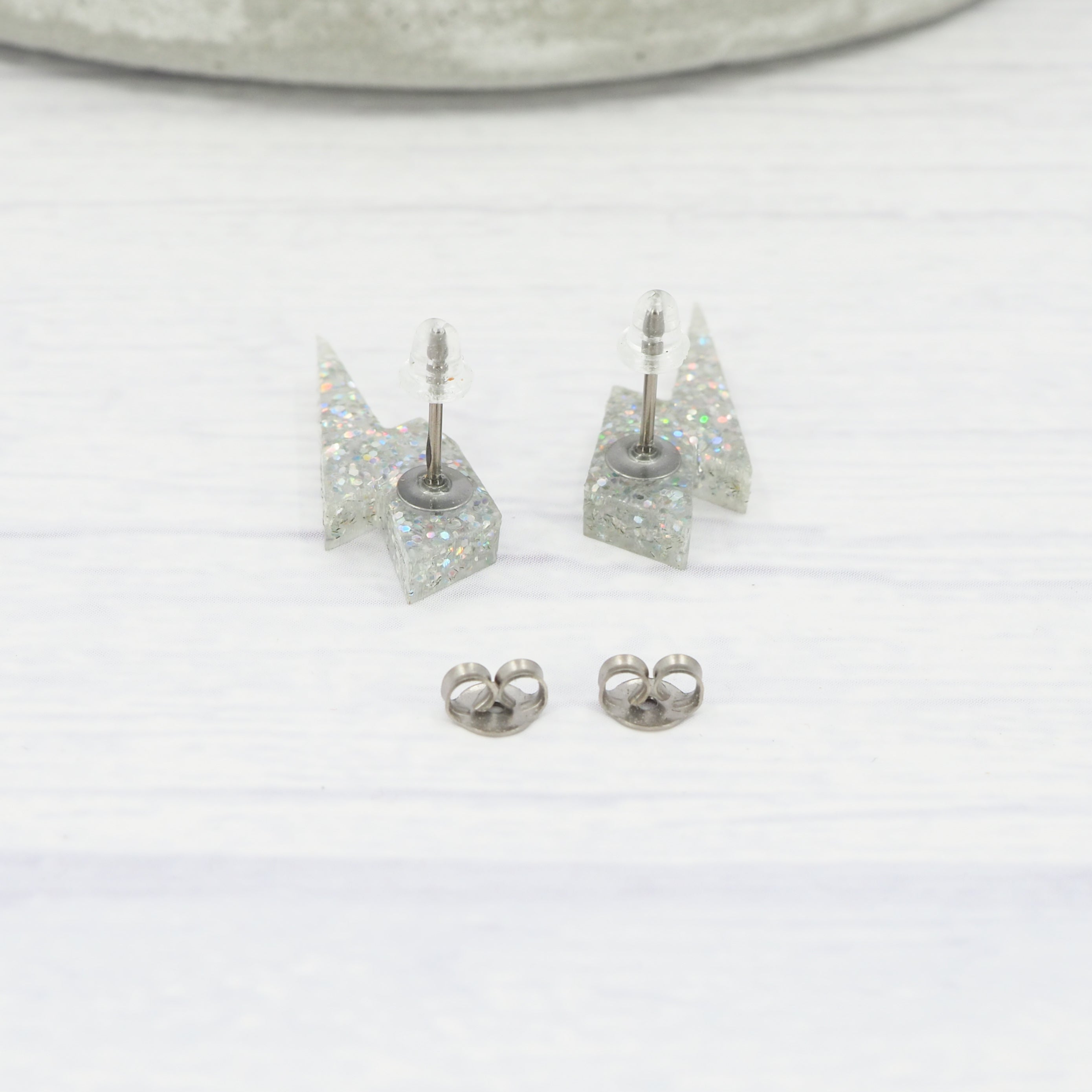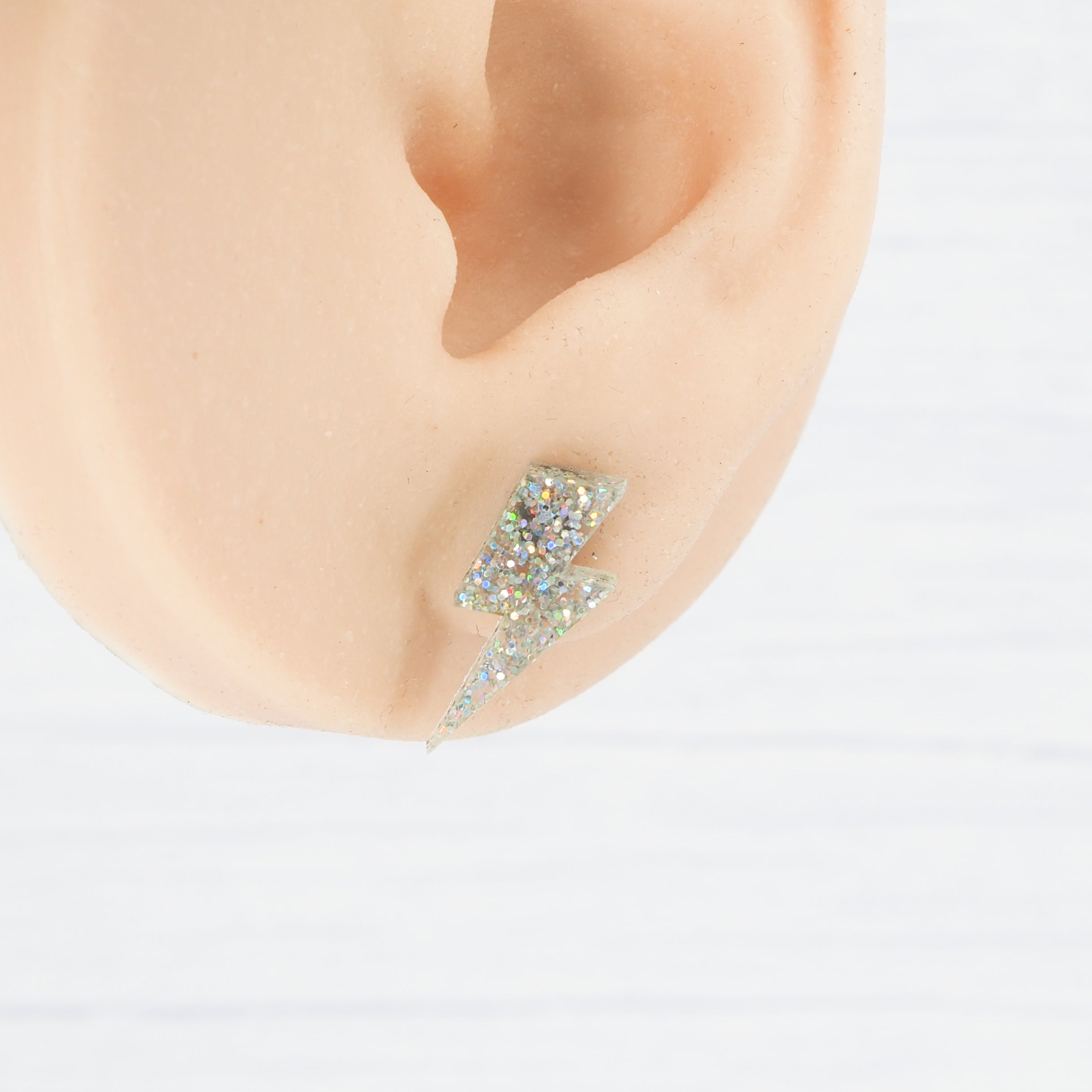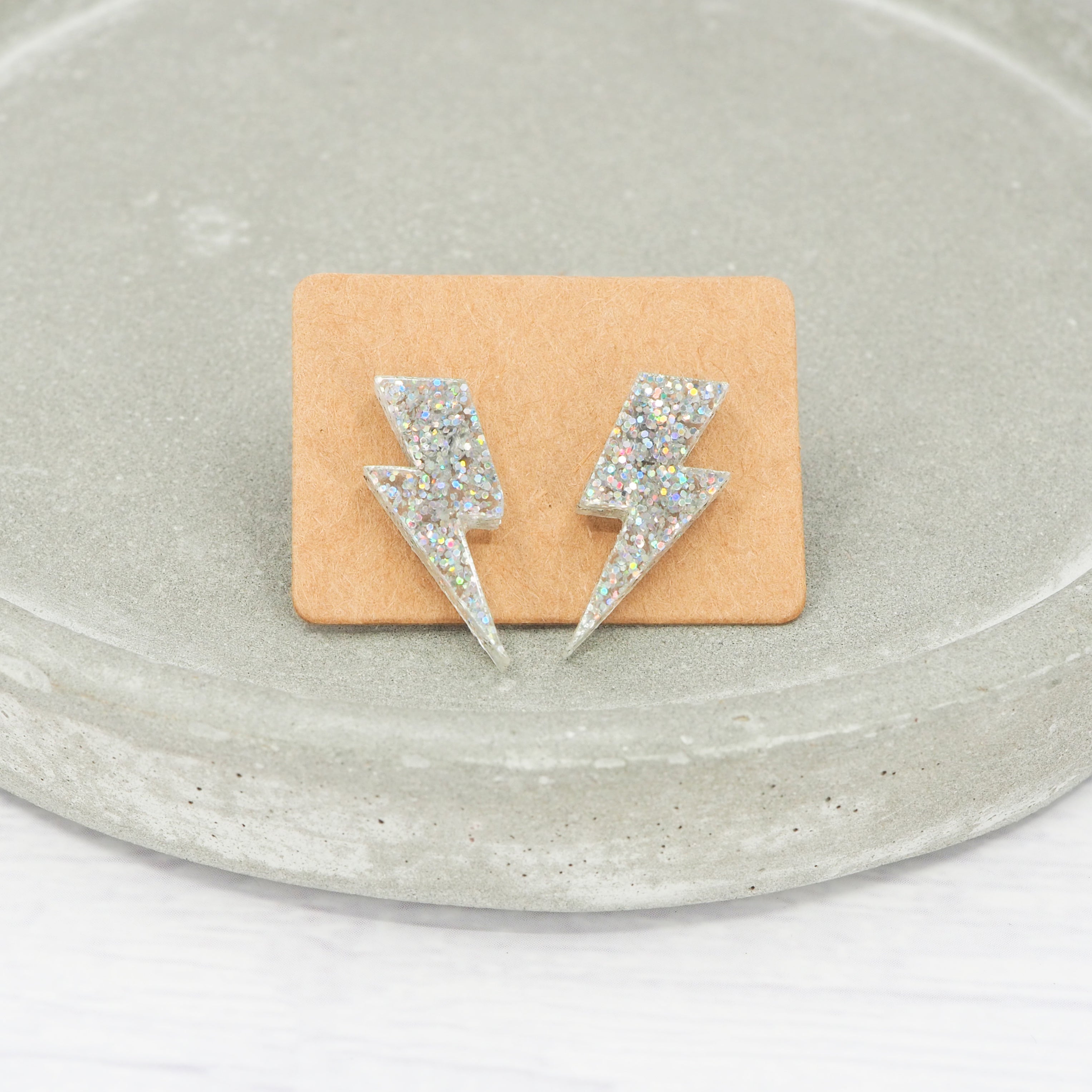 Holographic glitter lightning bolt studs