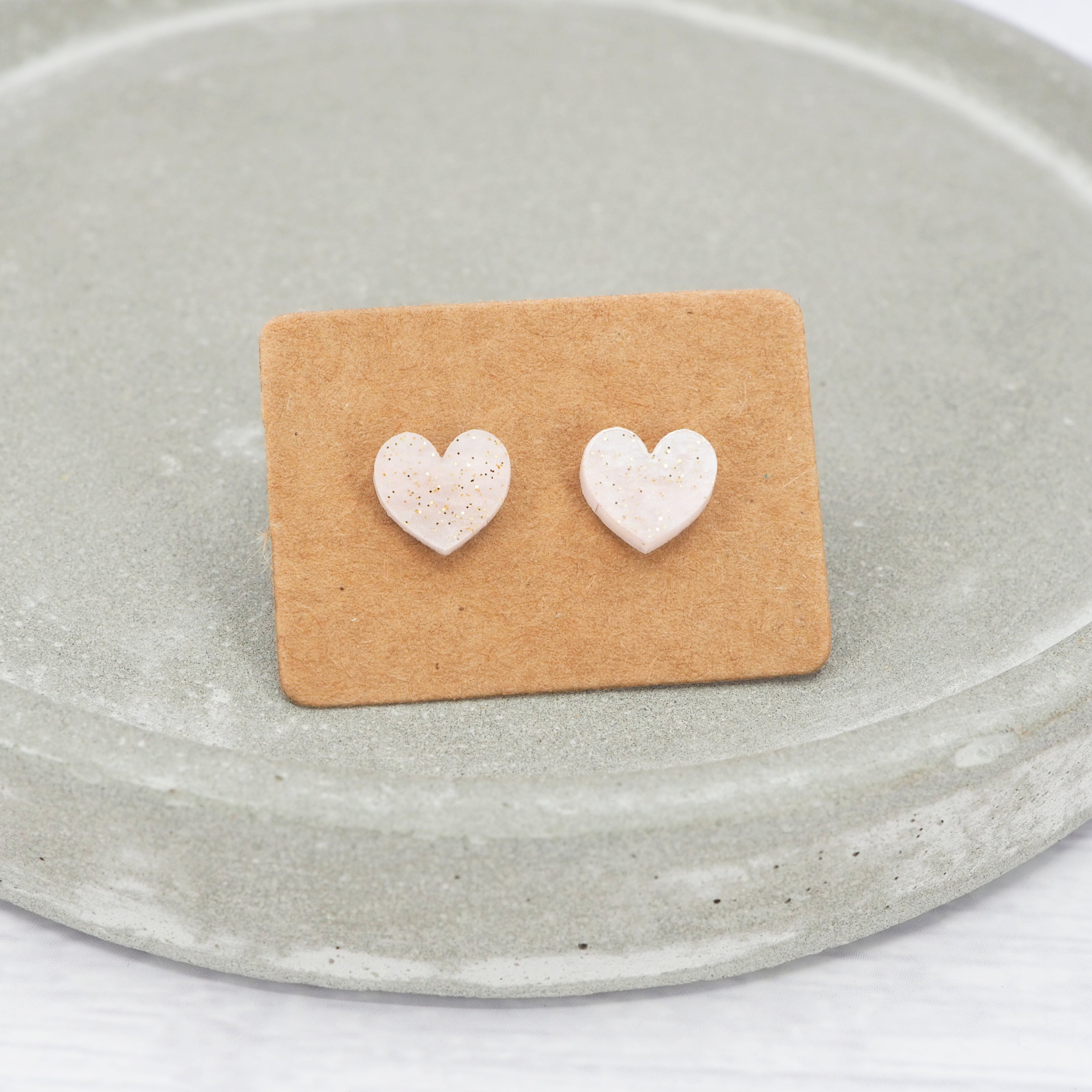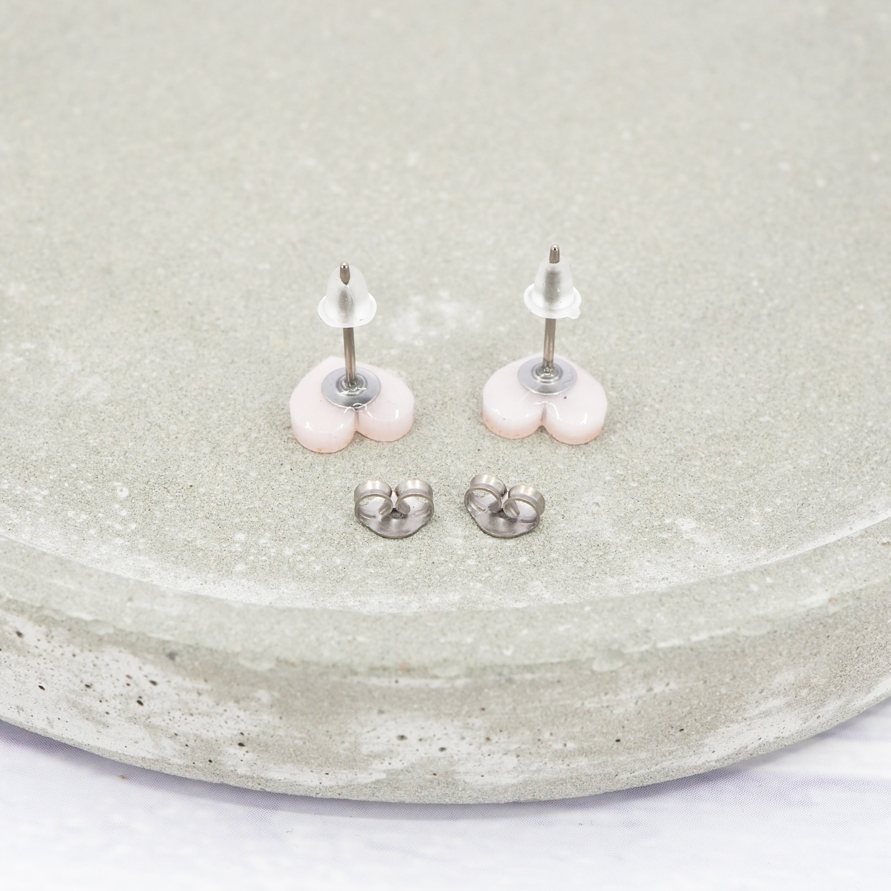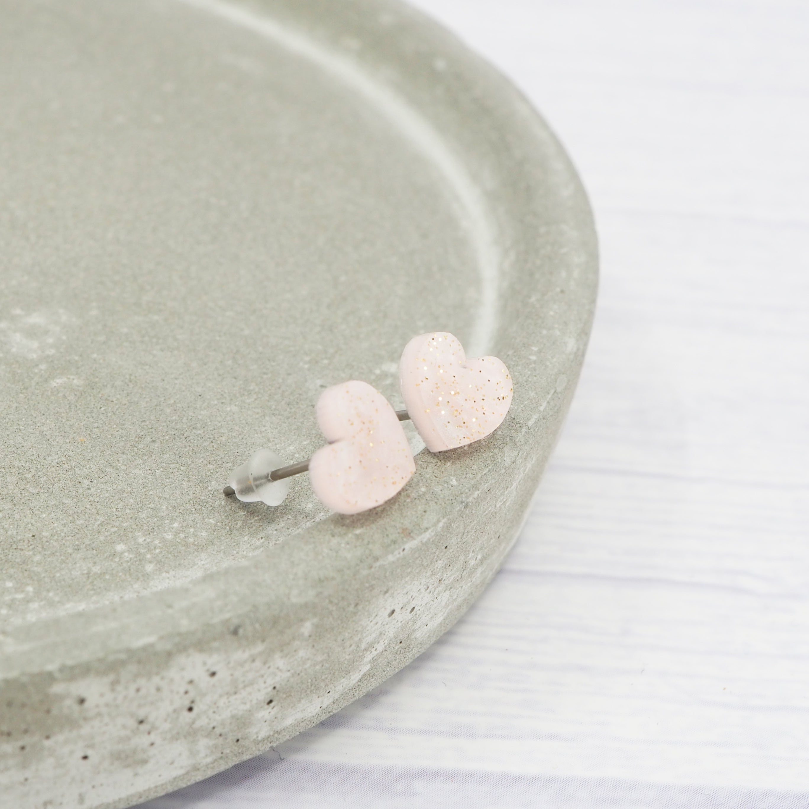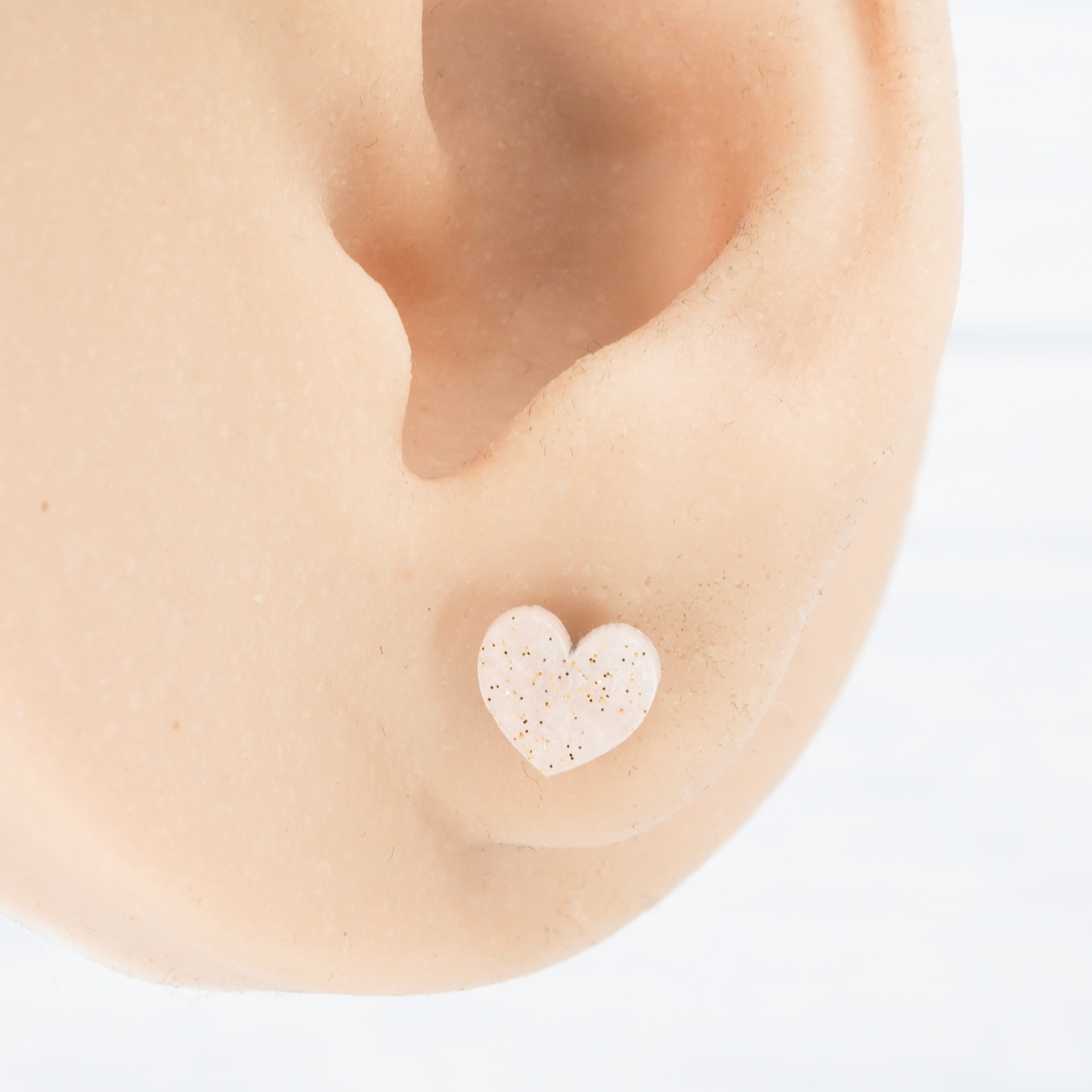 Light Pink galaxy glitter small heart acrylic studs with 0.7mm ear stems.