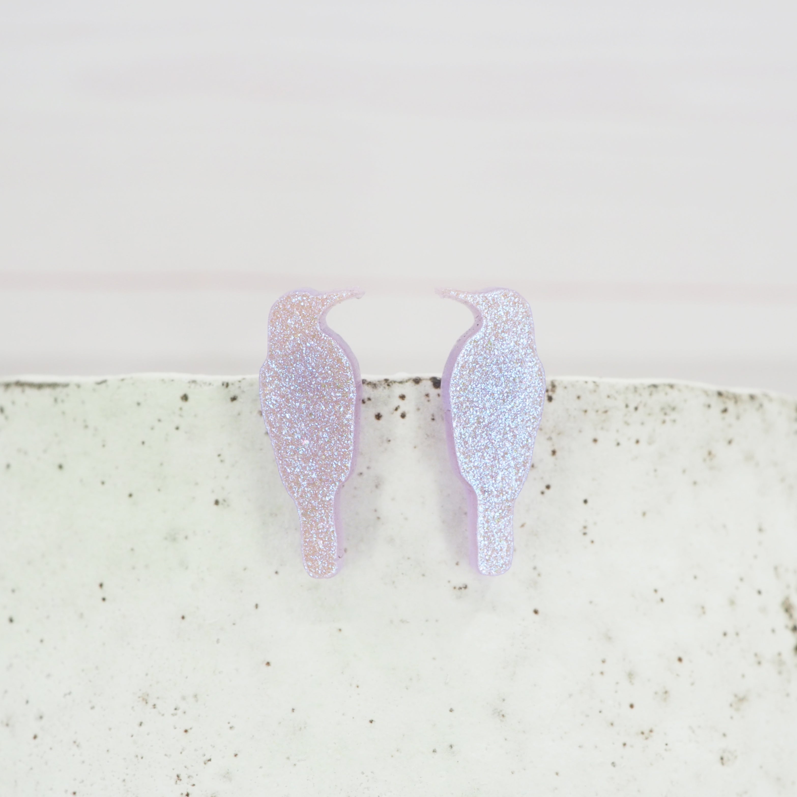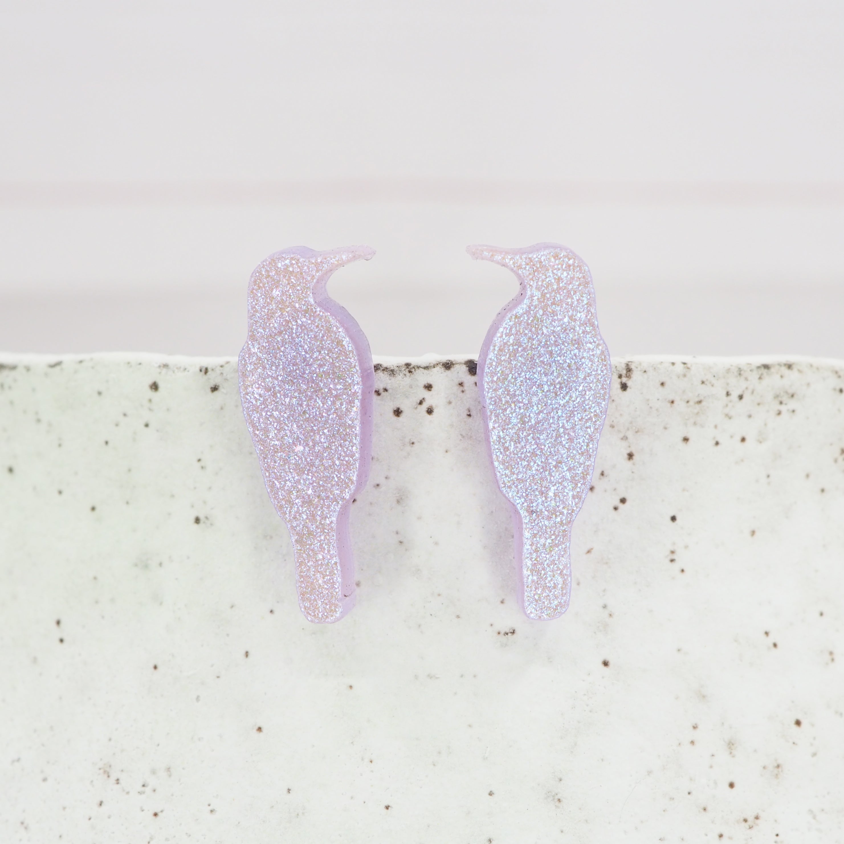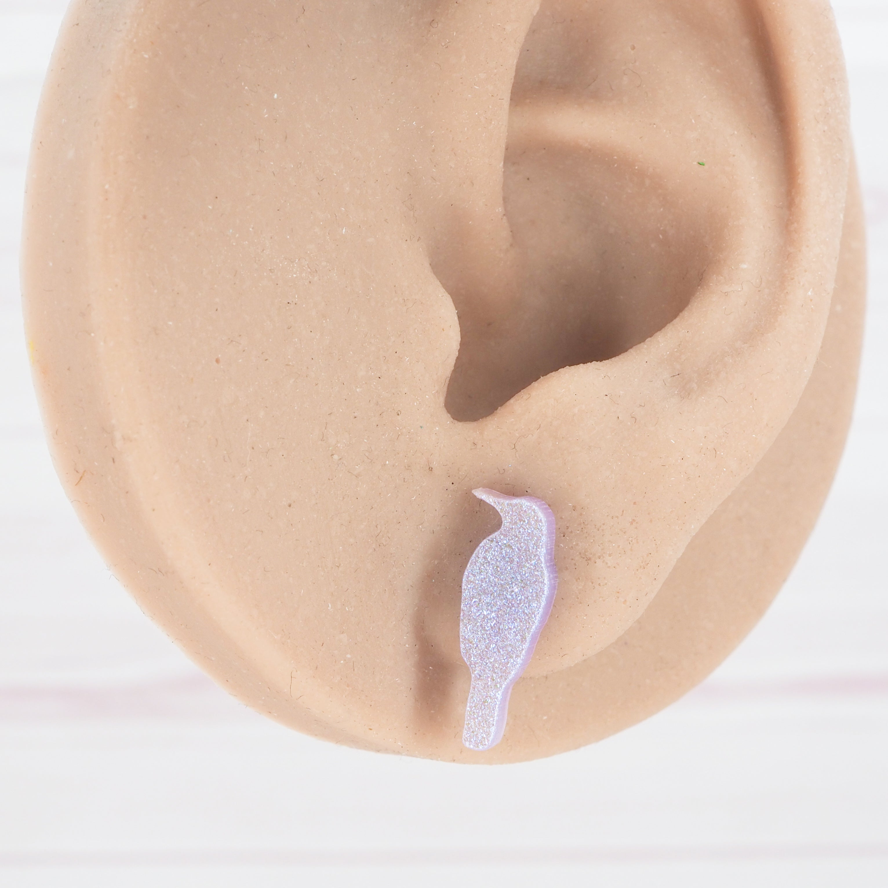 Lilac iridescent crows with 0.7mm grade 1 titanium ear stems.