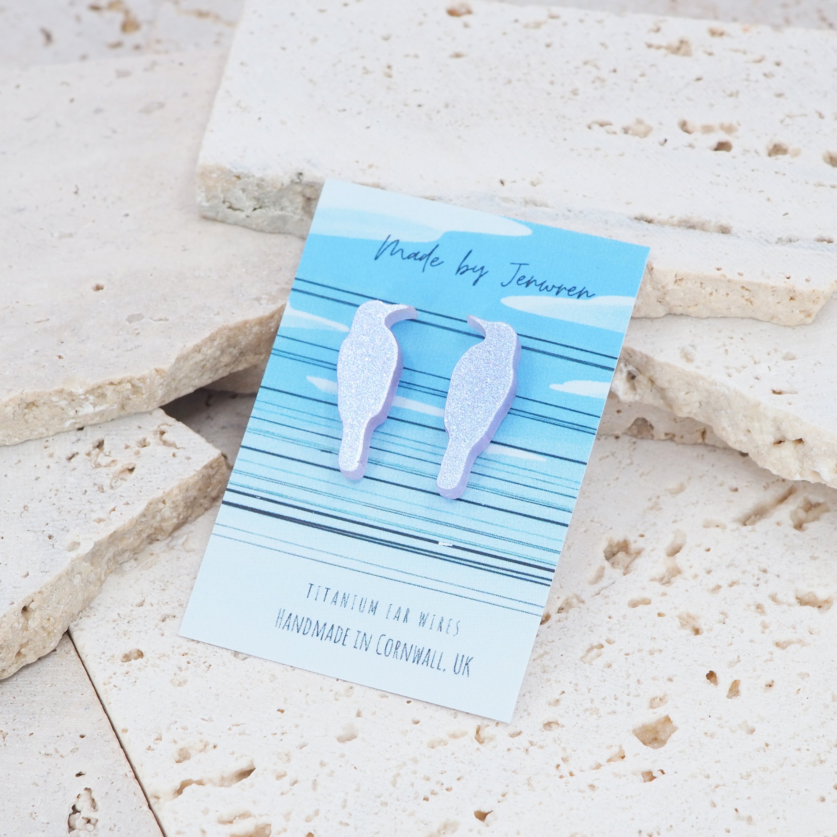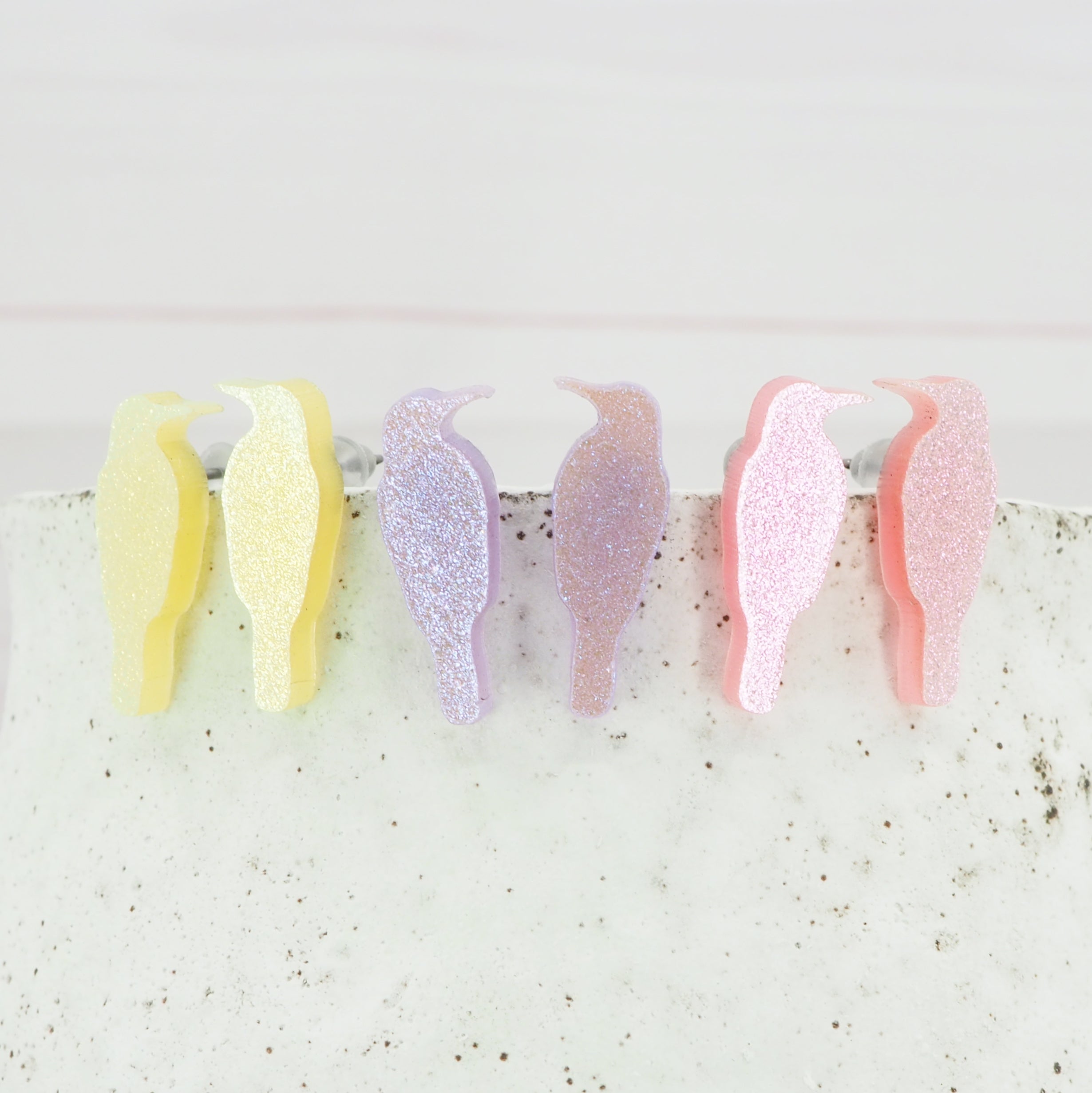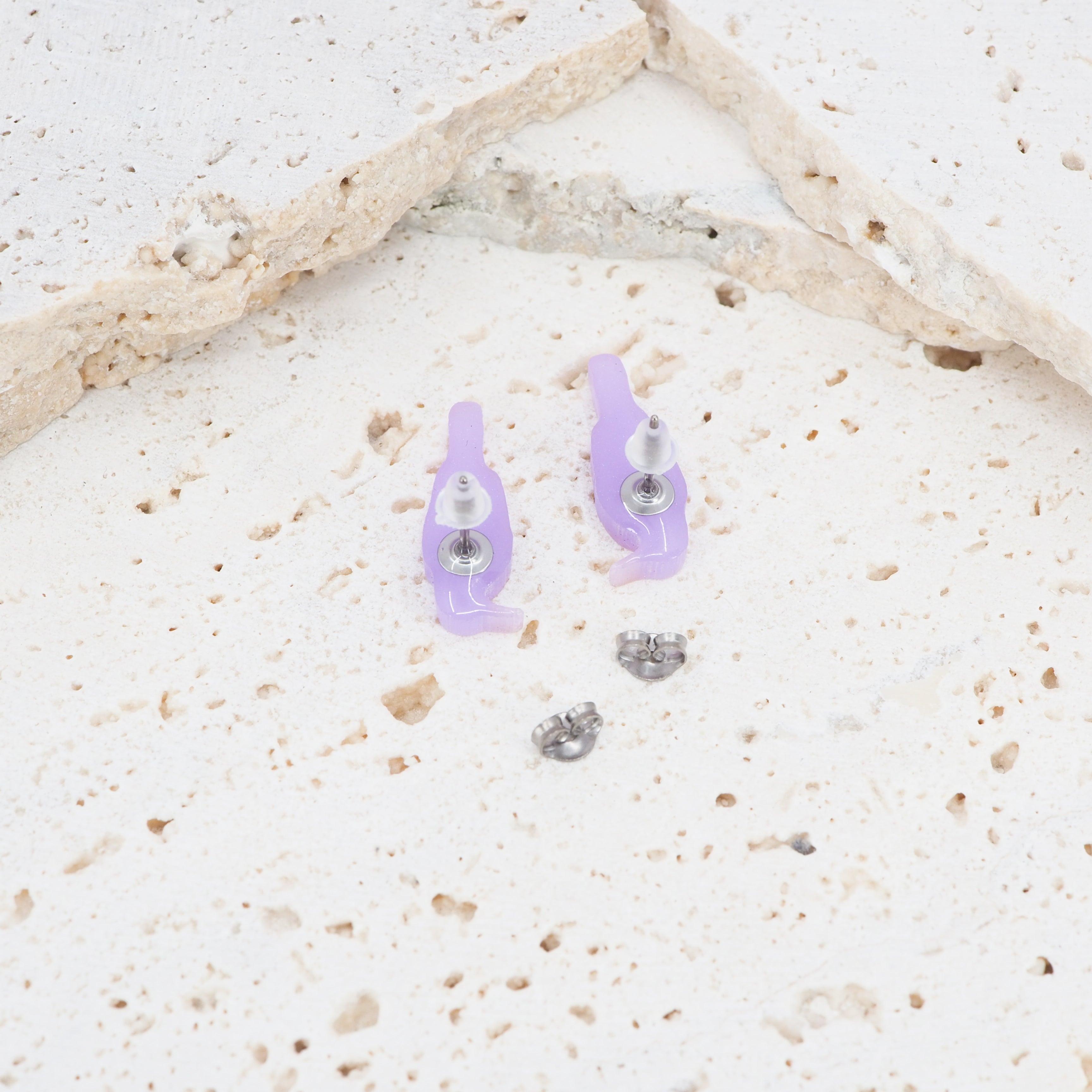Lilac iridescent crows with 0.7mm grade 1 titanium ear stems.