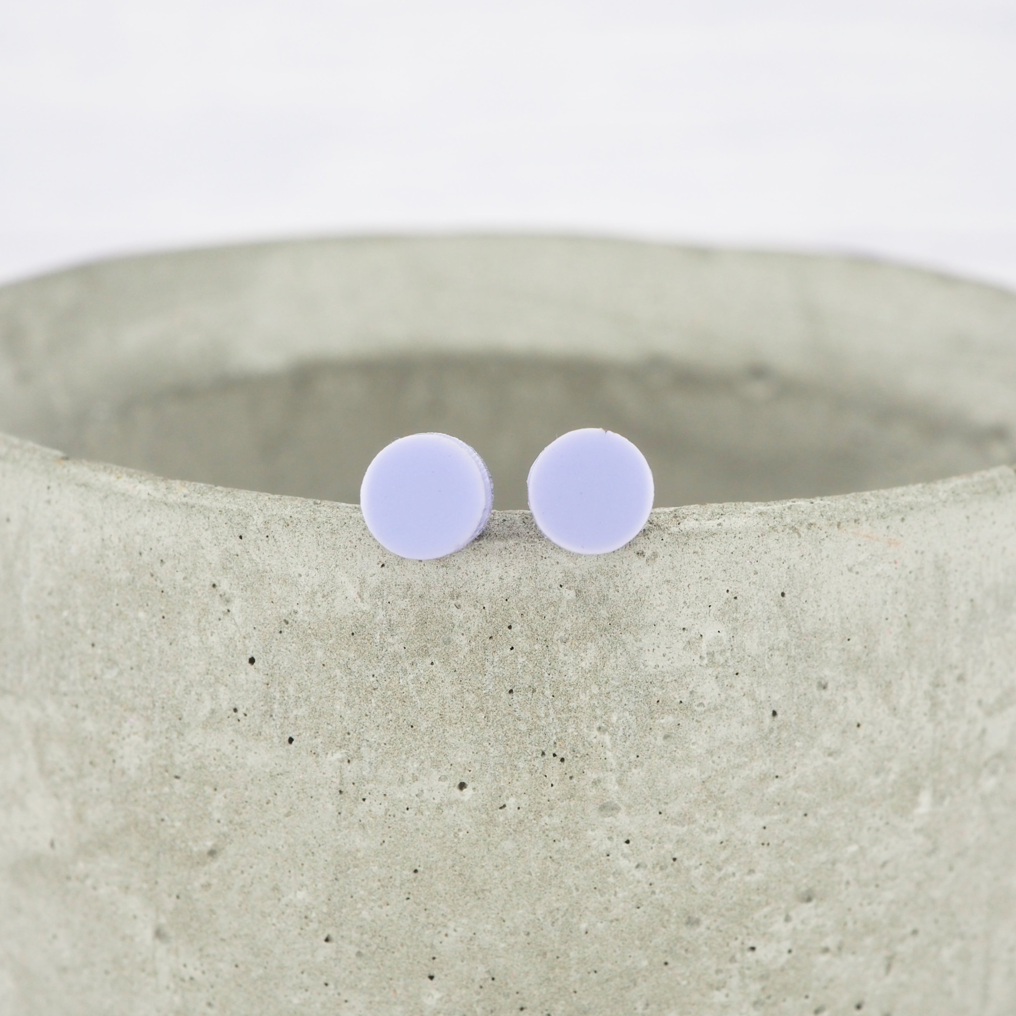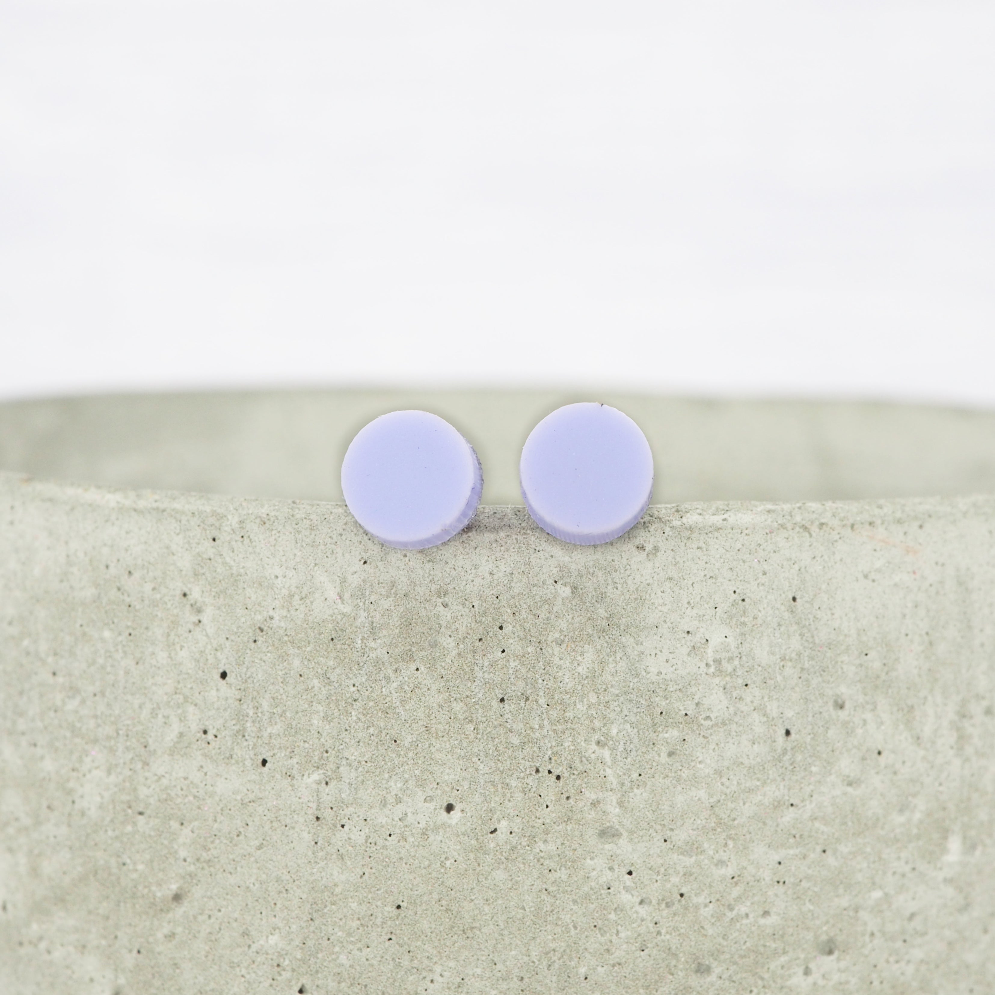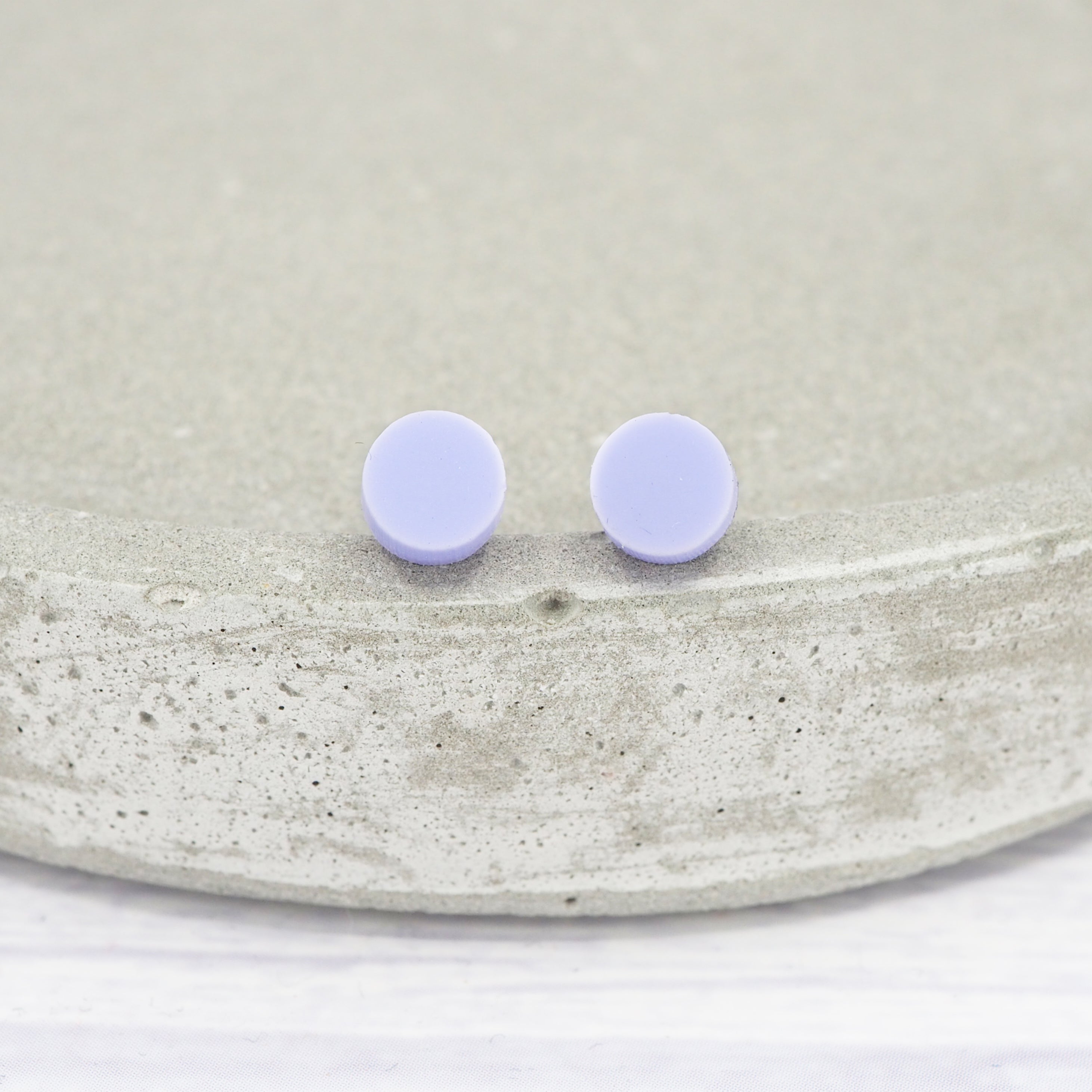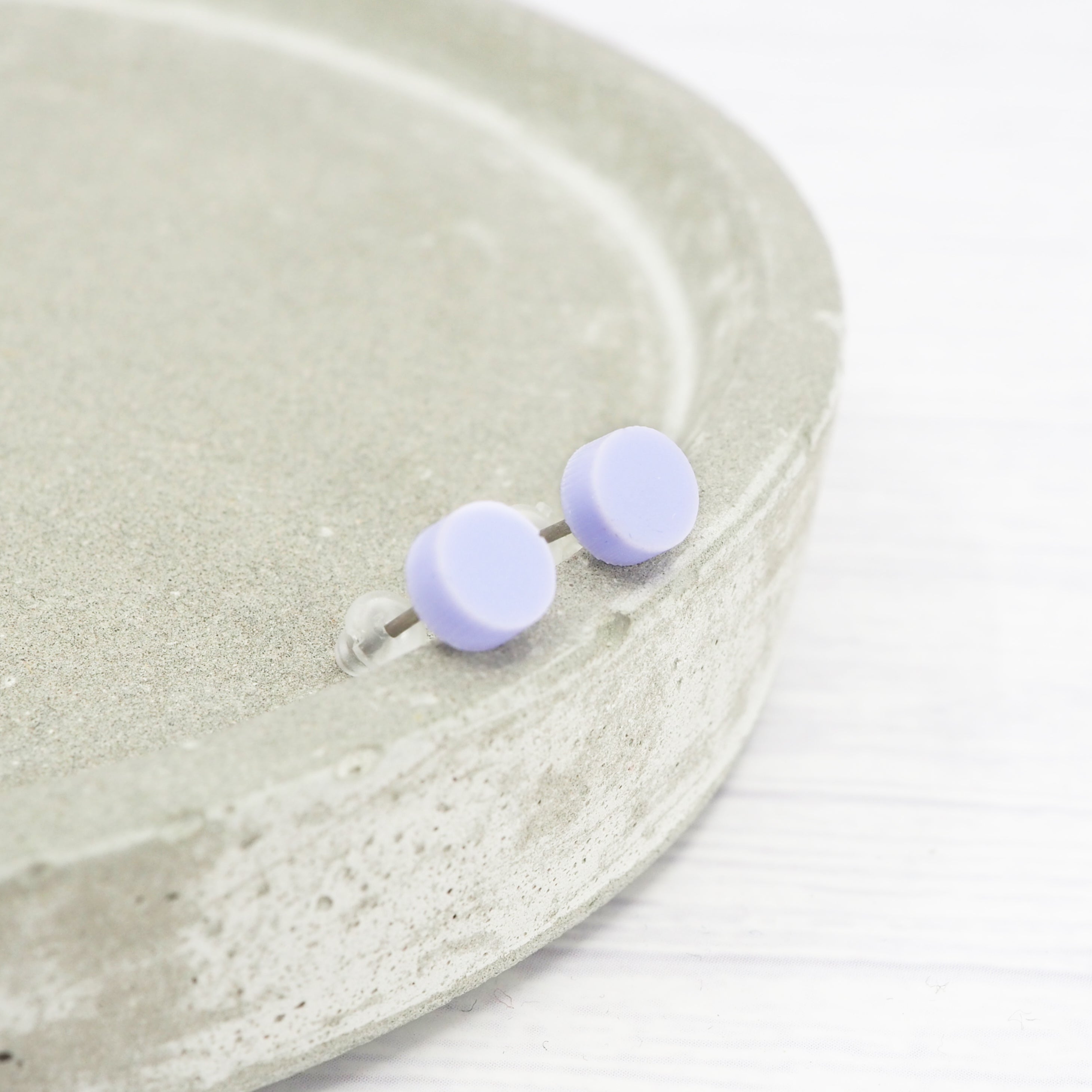 Matte lilac pastel acrylic dot studs with 0.7mm ear stems.