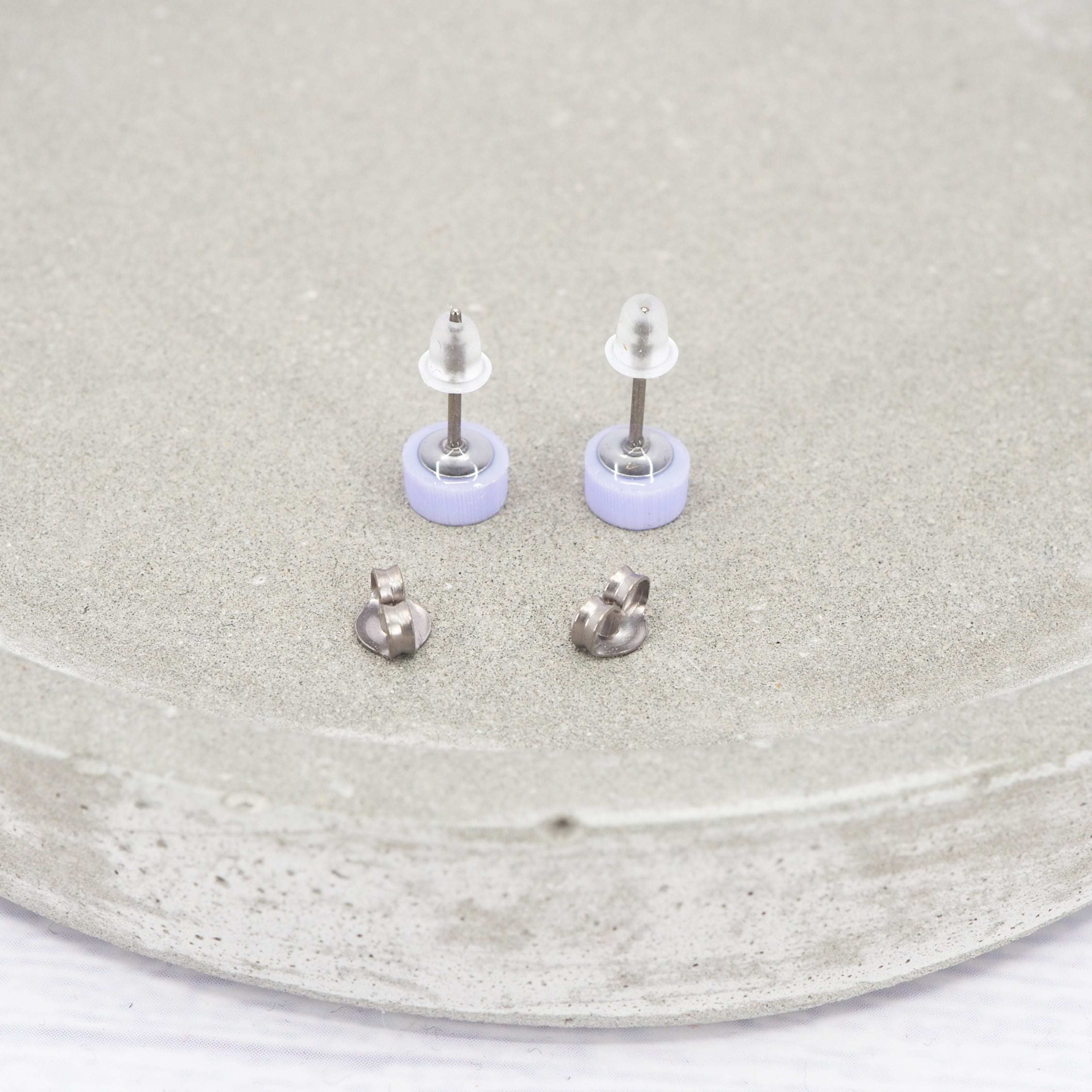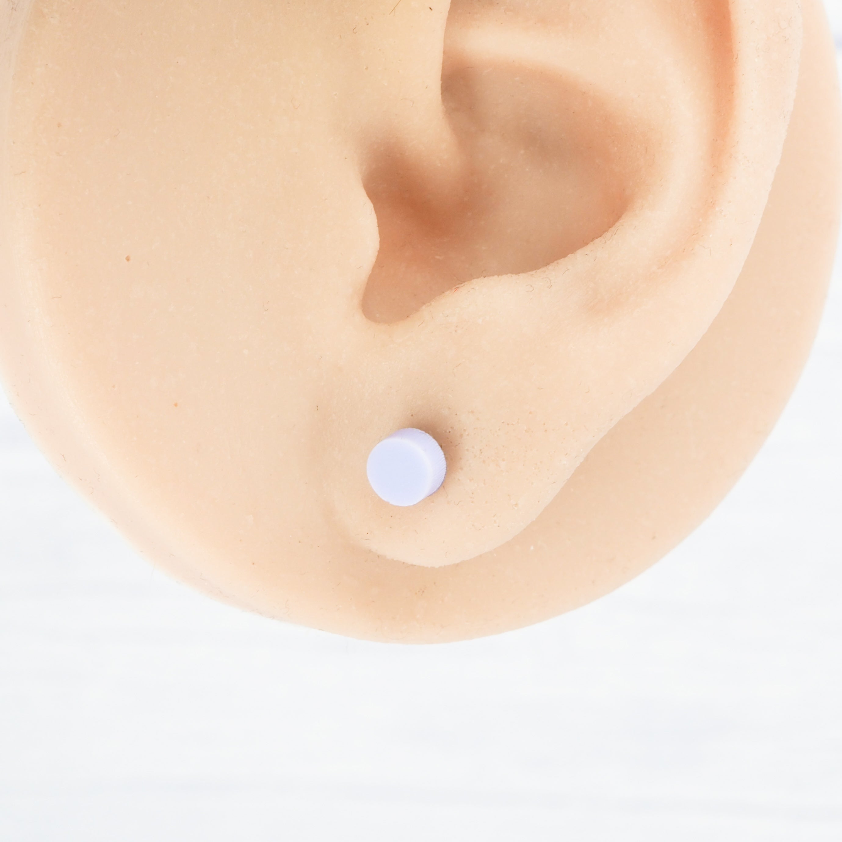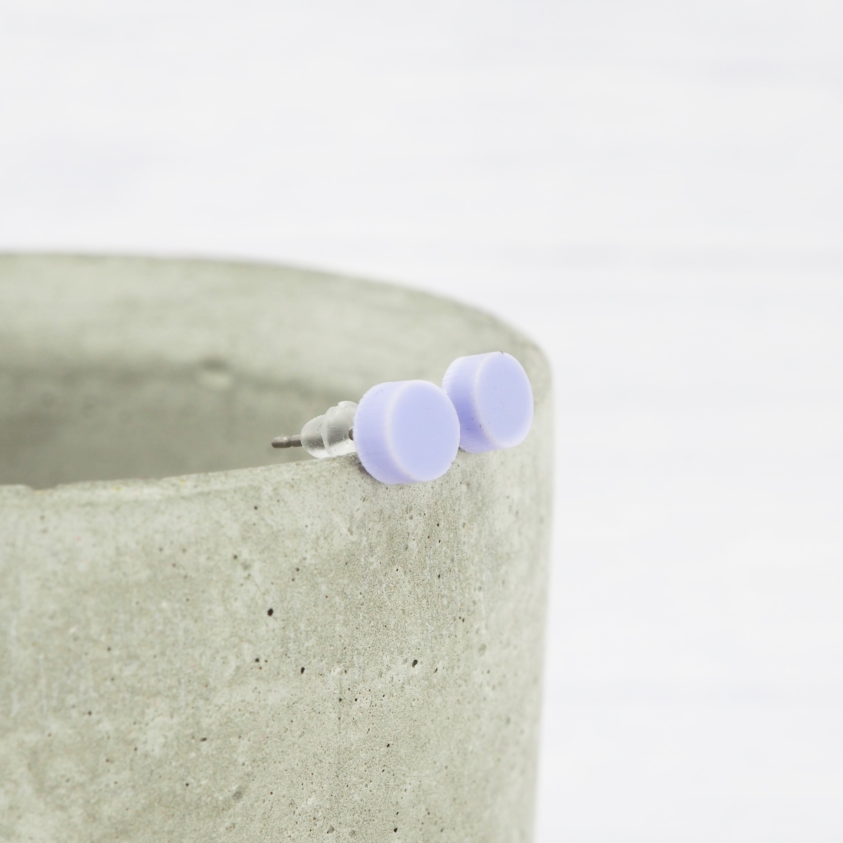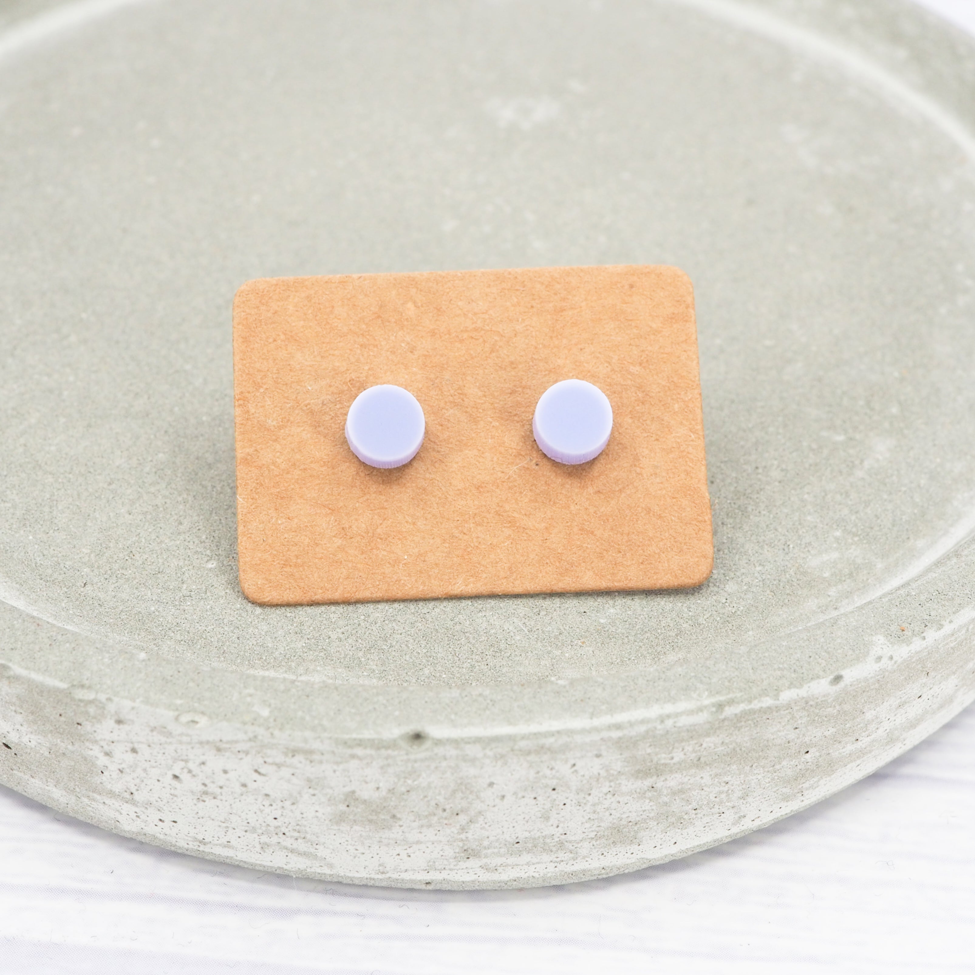 Matte lilac pastel acrylic dot studs with 0.7mm ear stems.