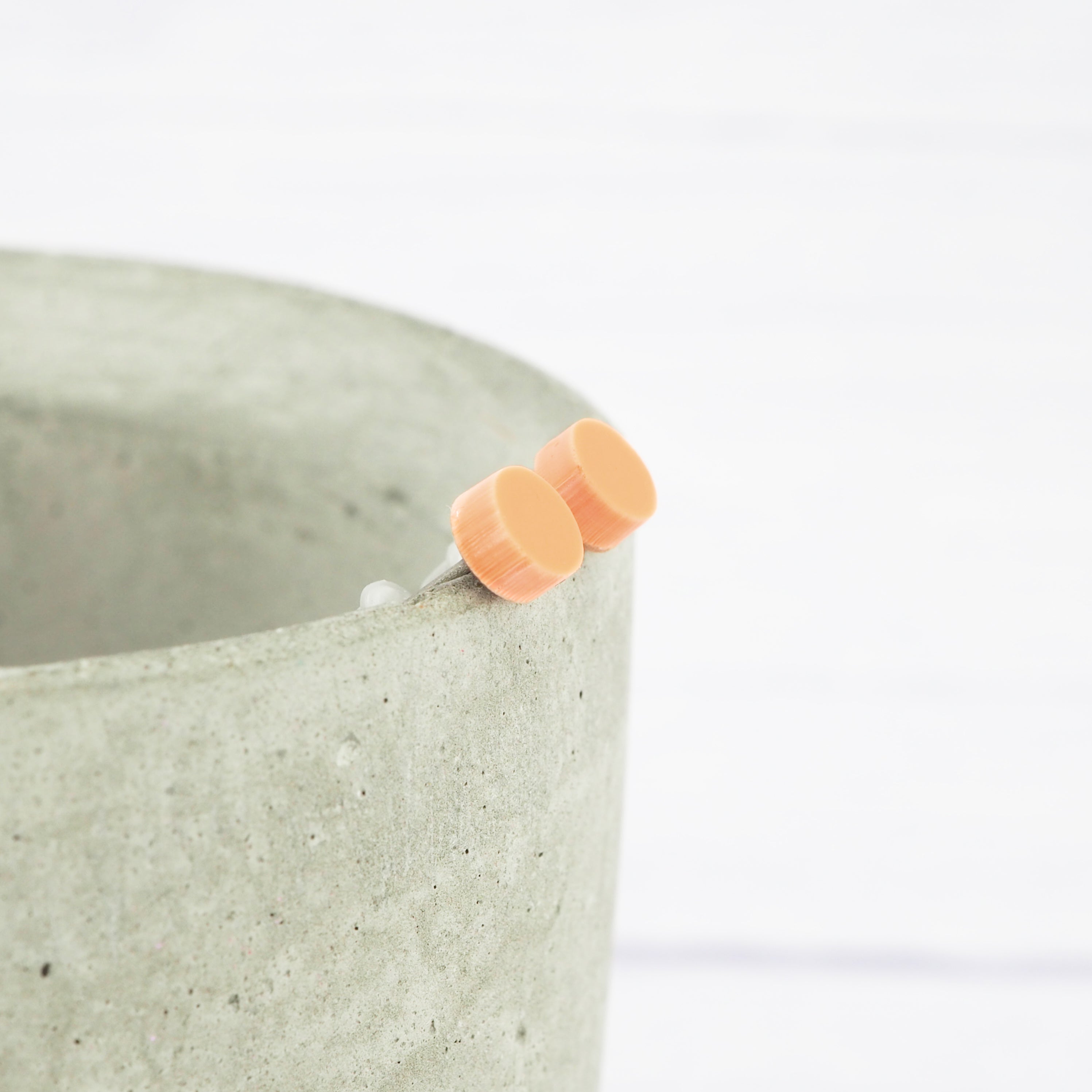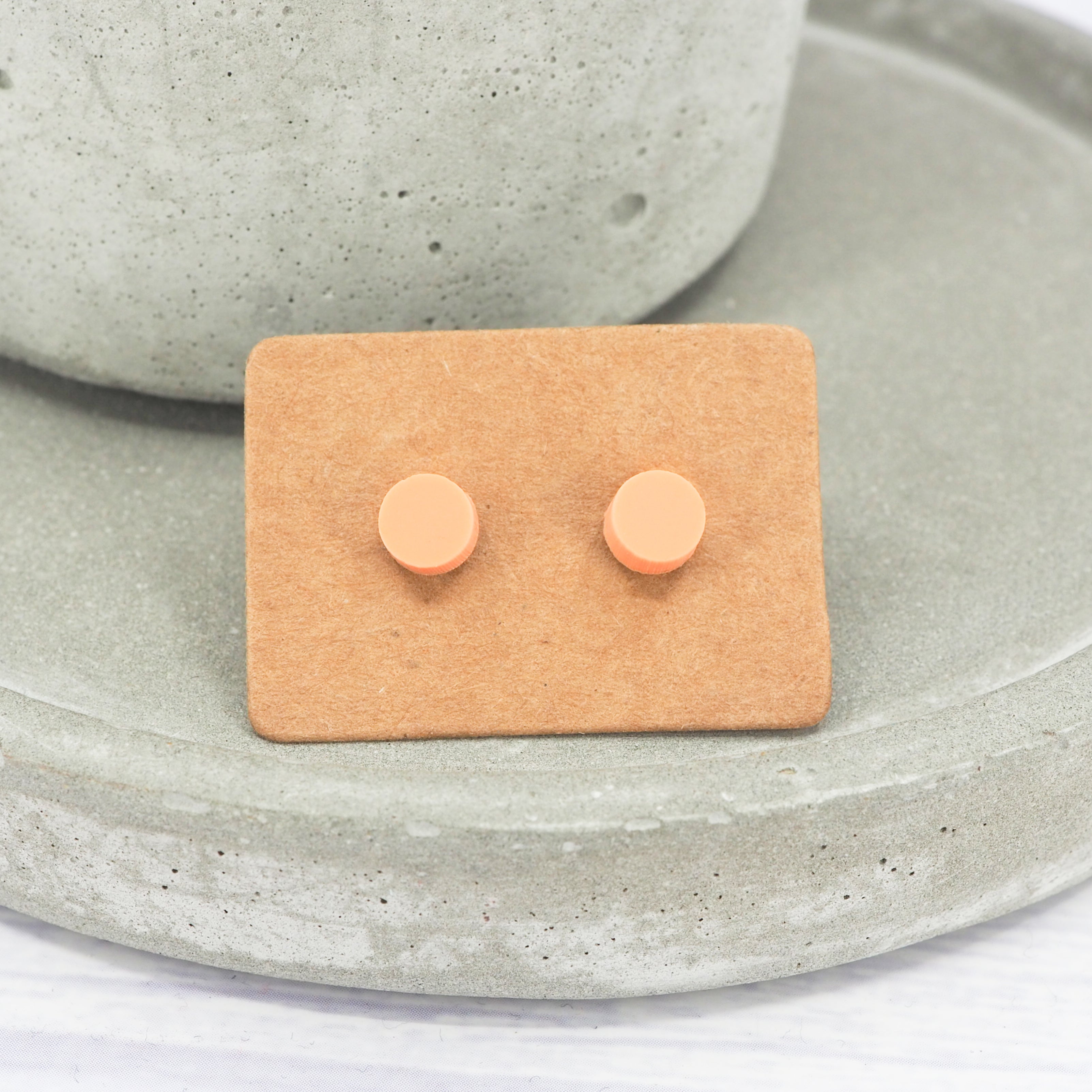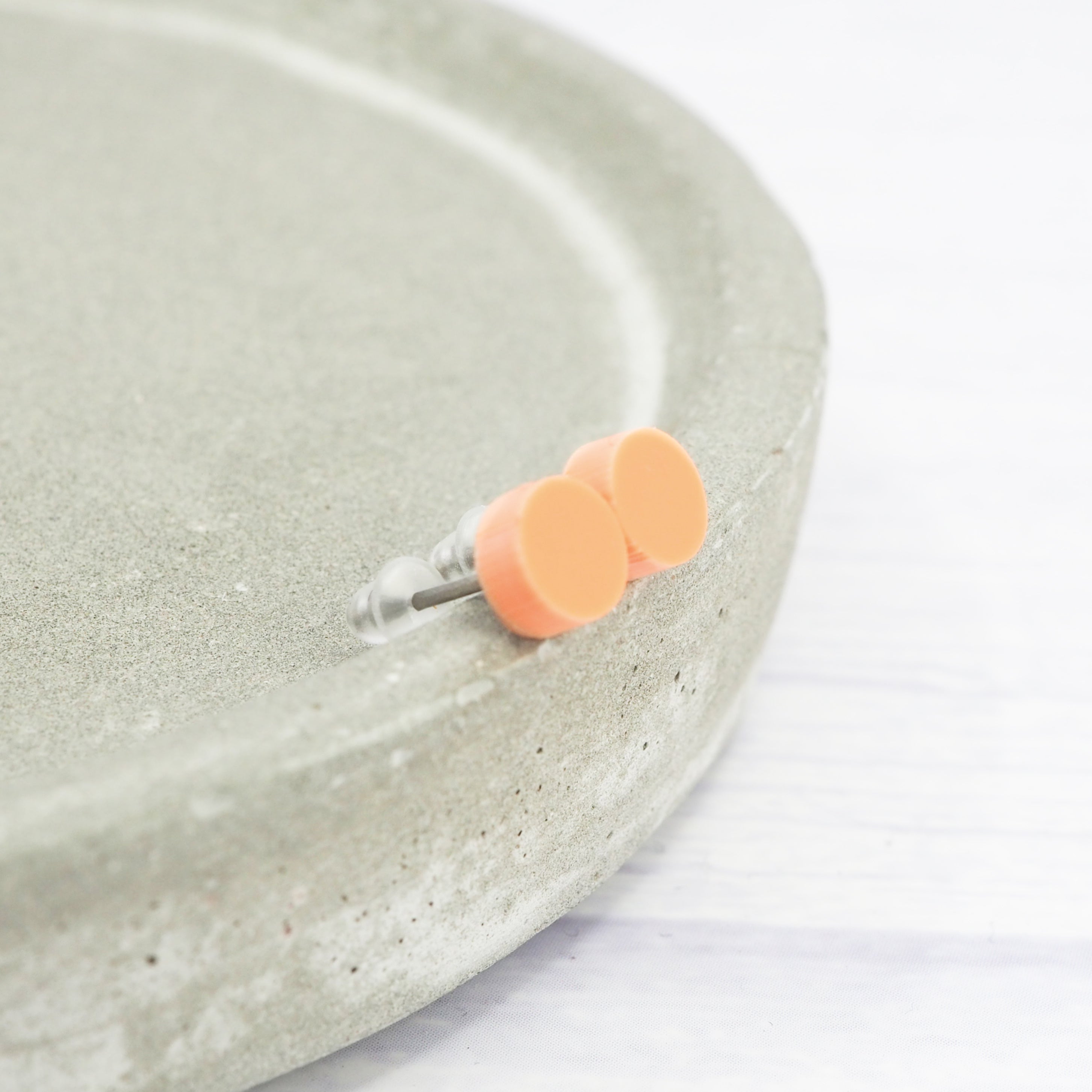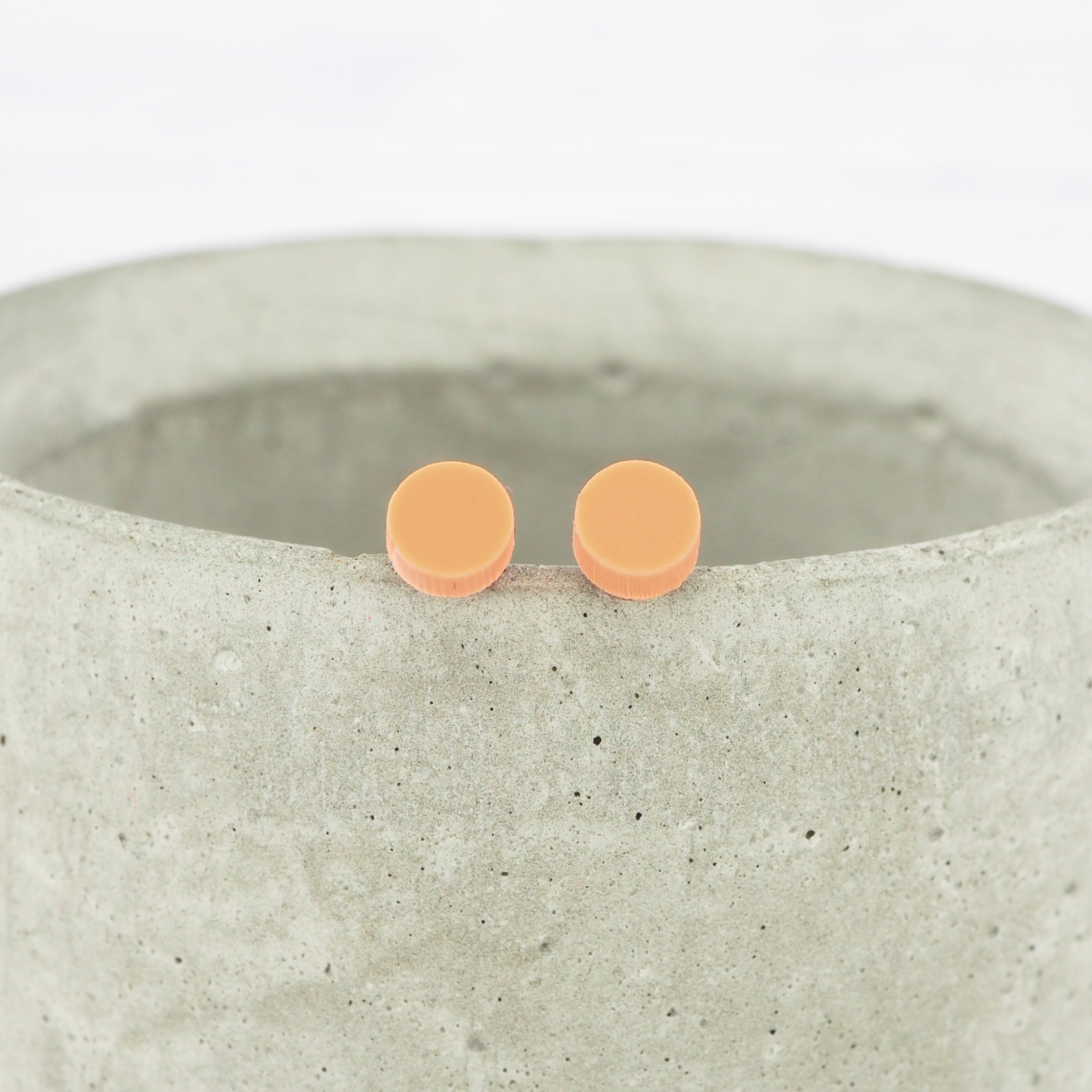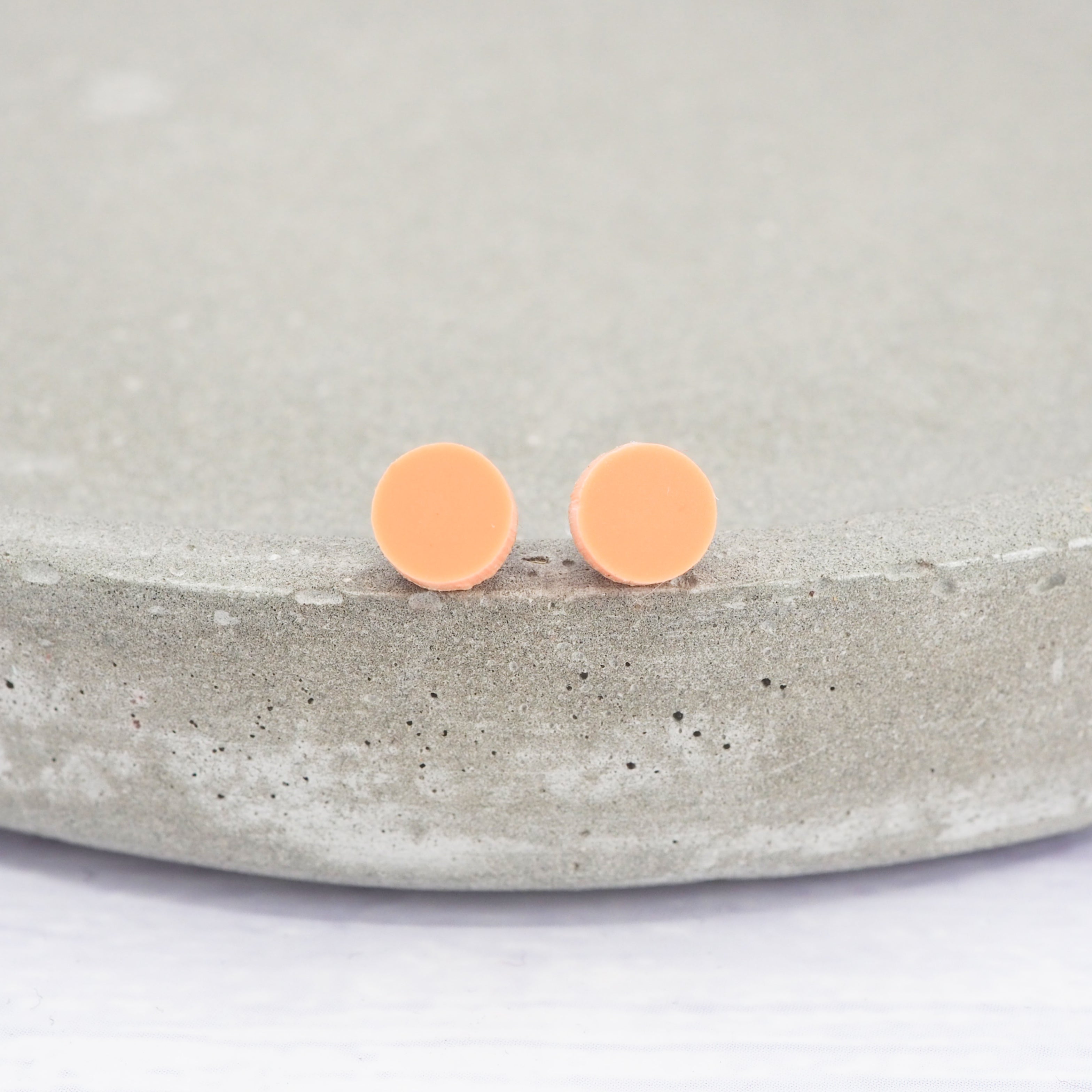 Matte orange pastel acrylic dot studs with 0.7mm ear stems.