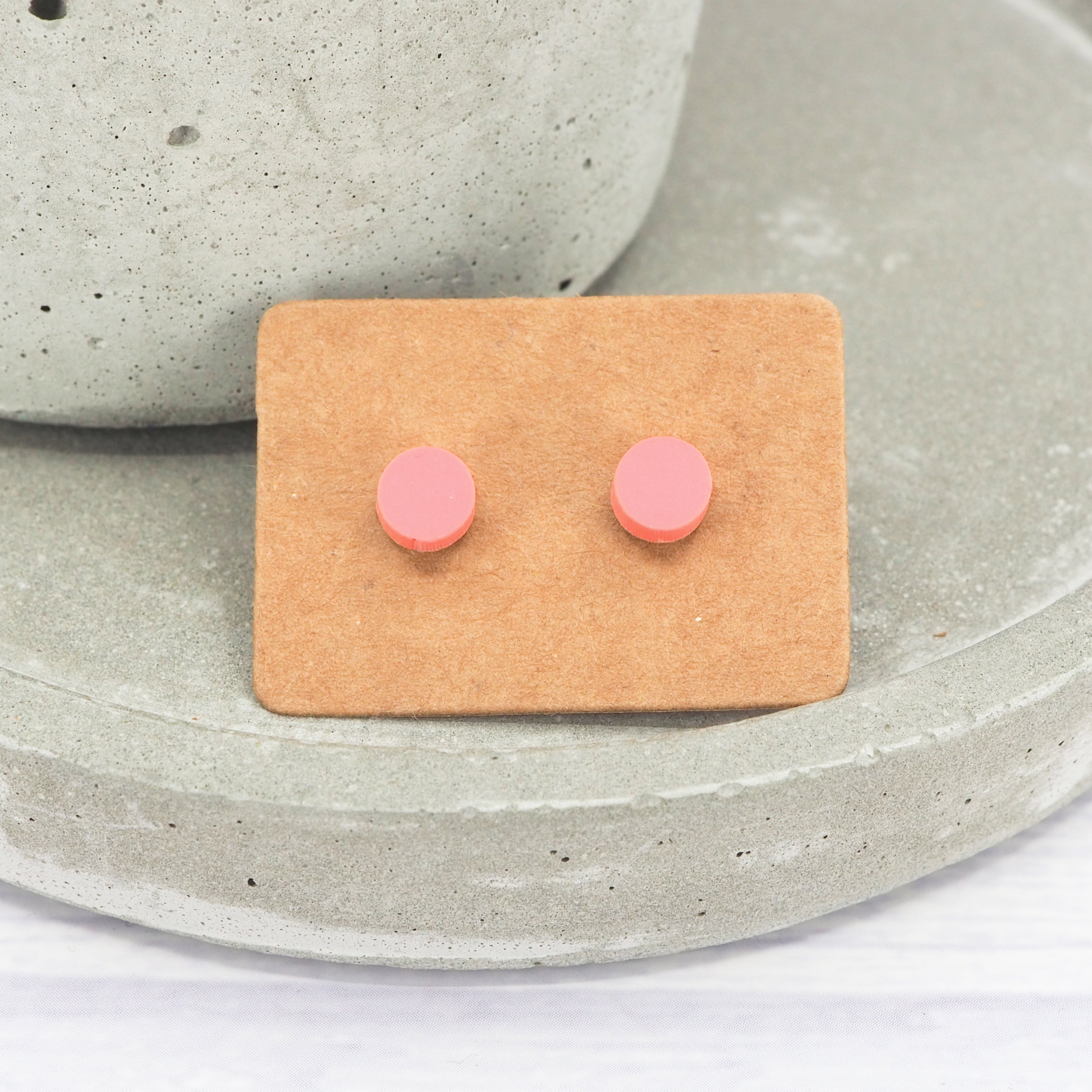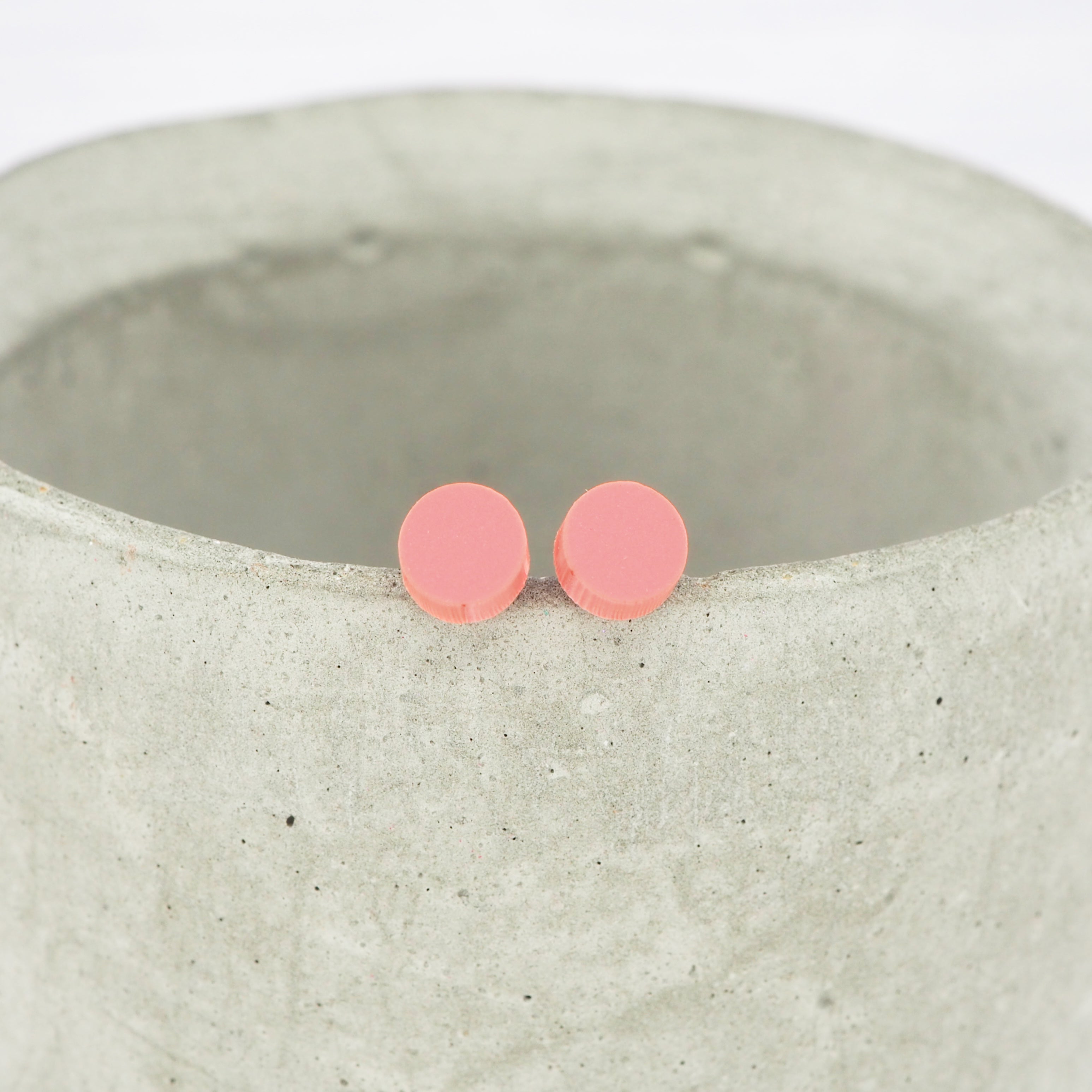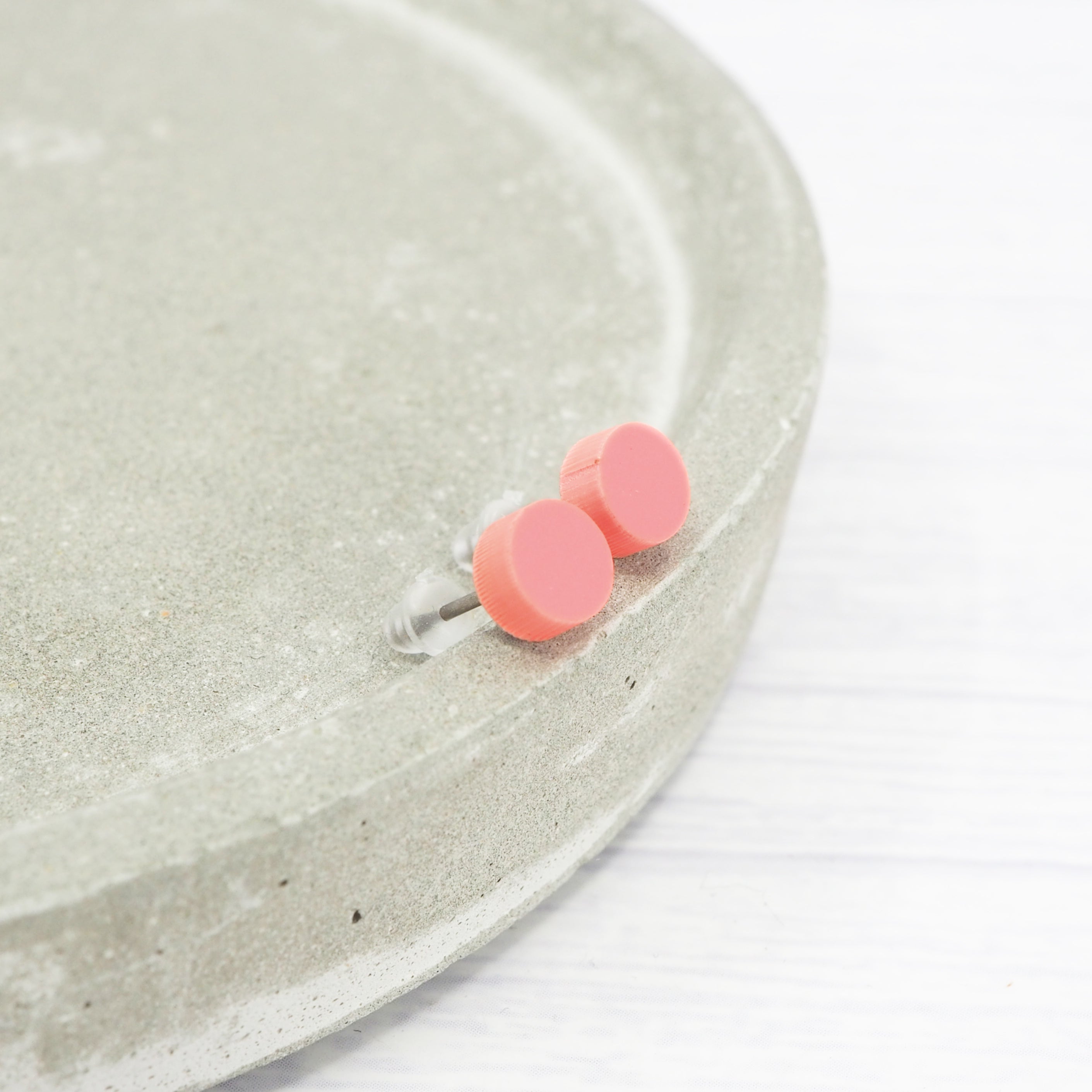 Matte salmon pink pastel acrylic dot studs with 0.7mm ear stems.