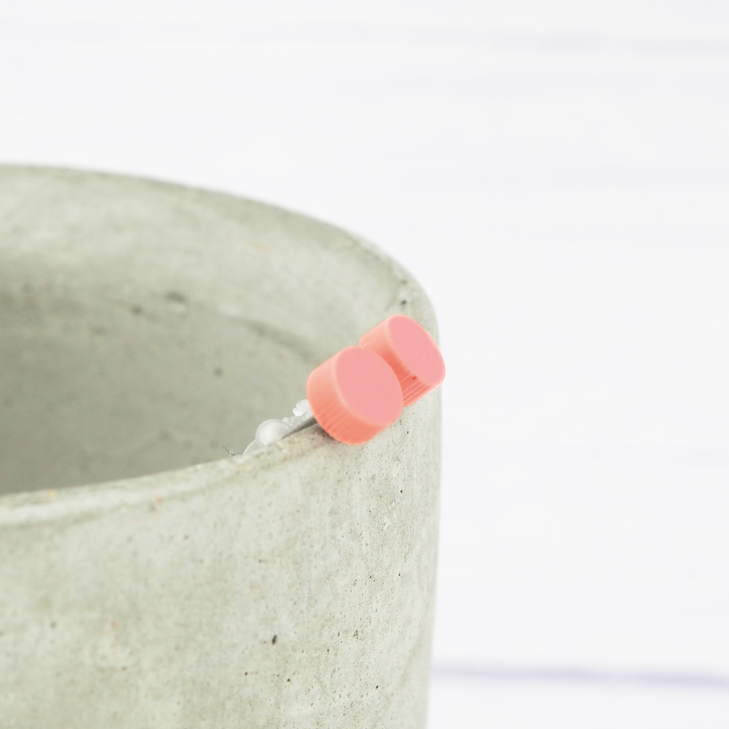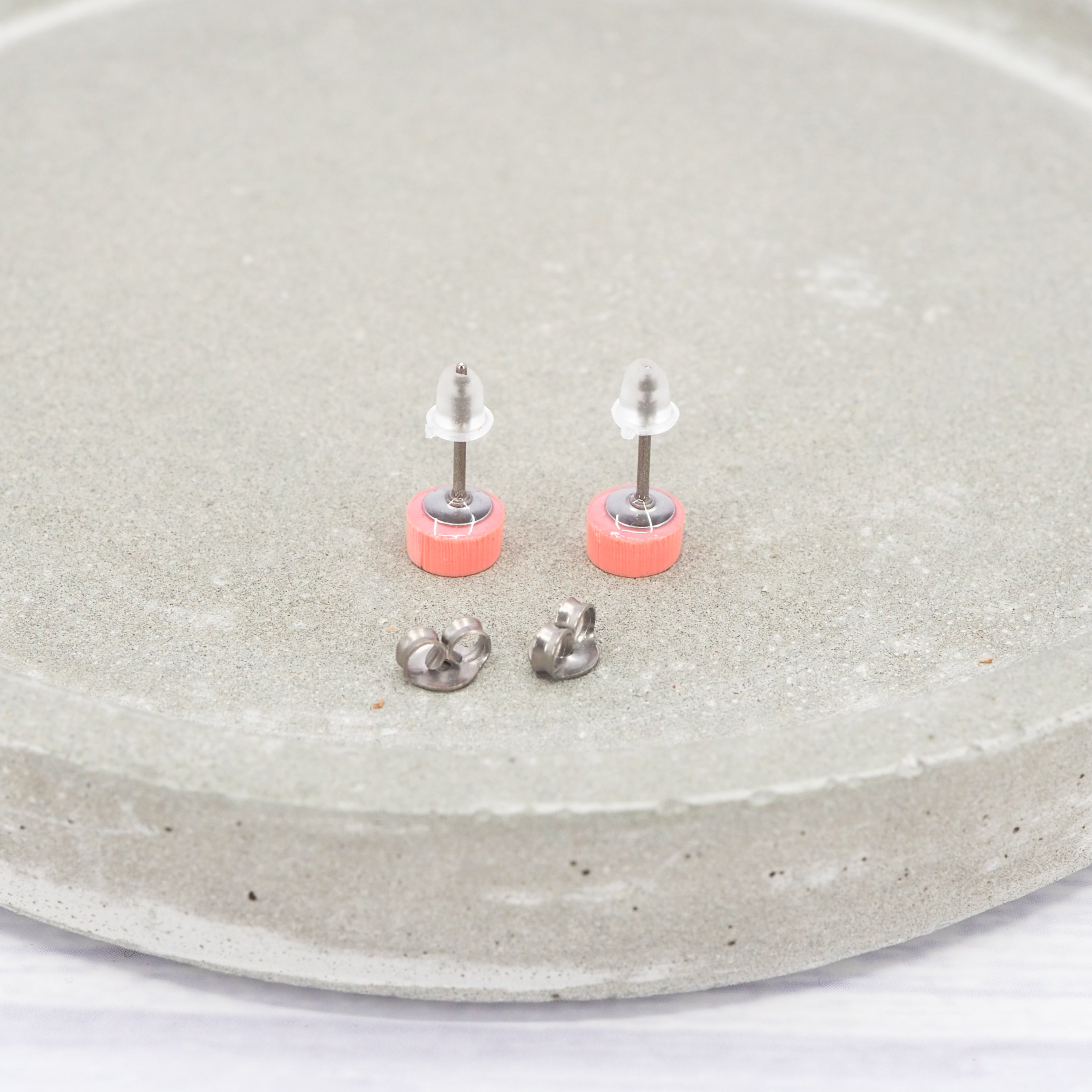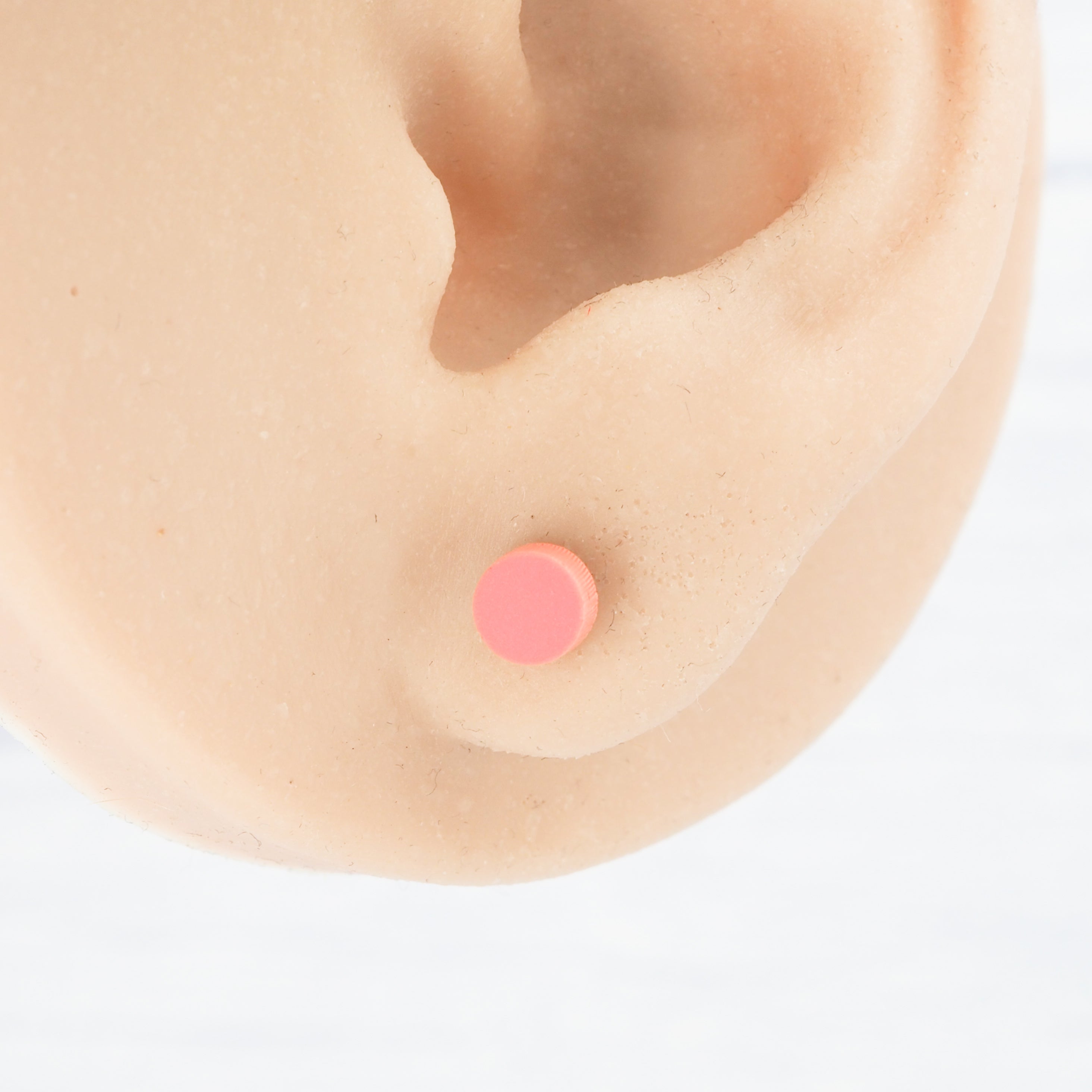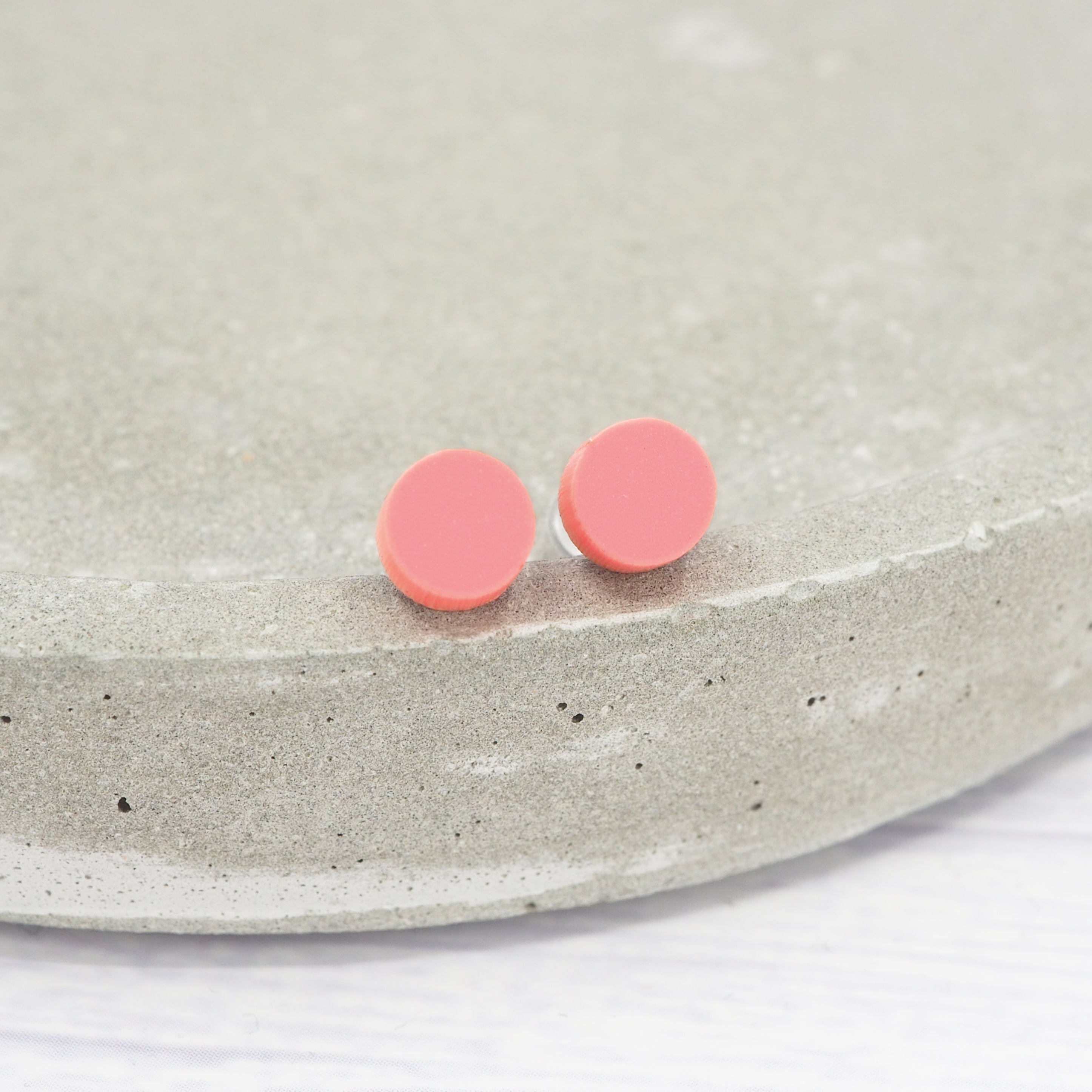 Matte salmon pink pastel acrylic dot studs with 0.7mm ear stems.