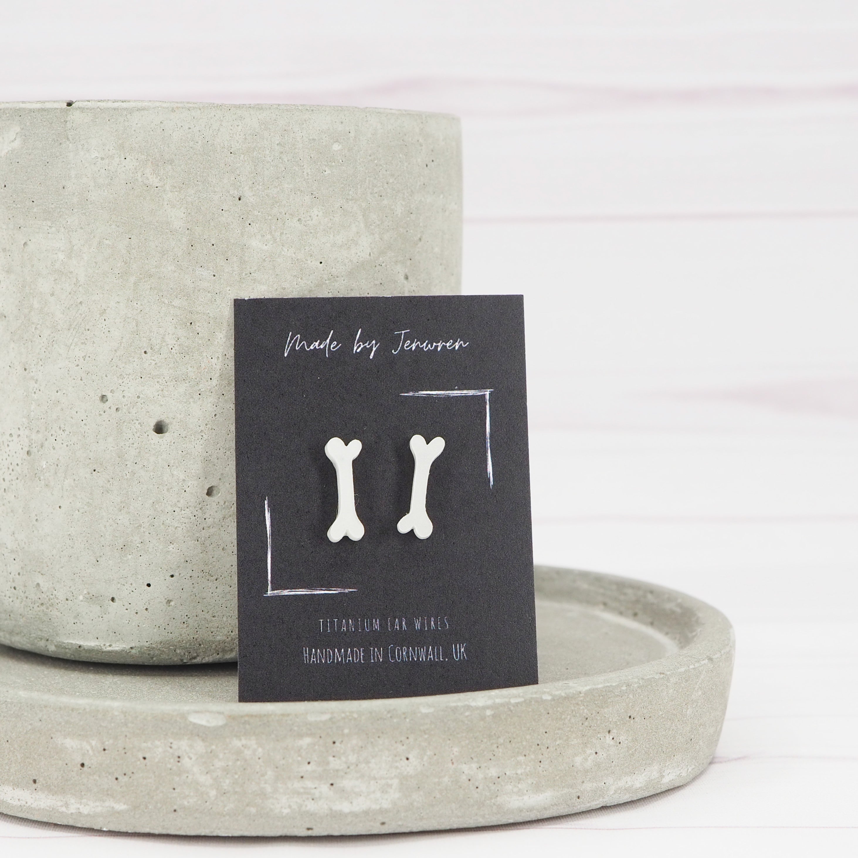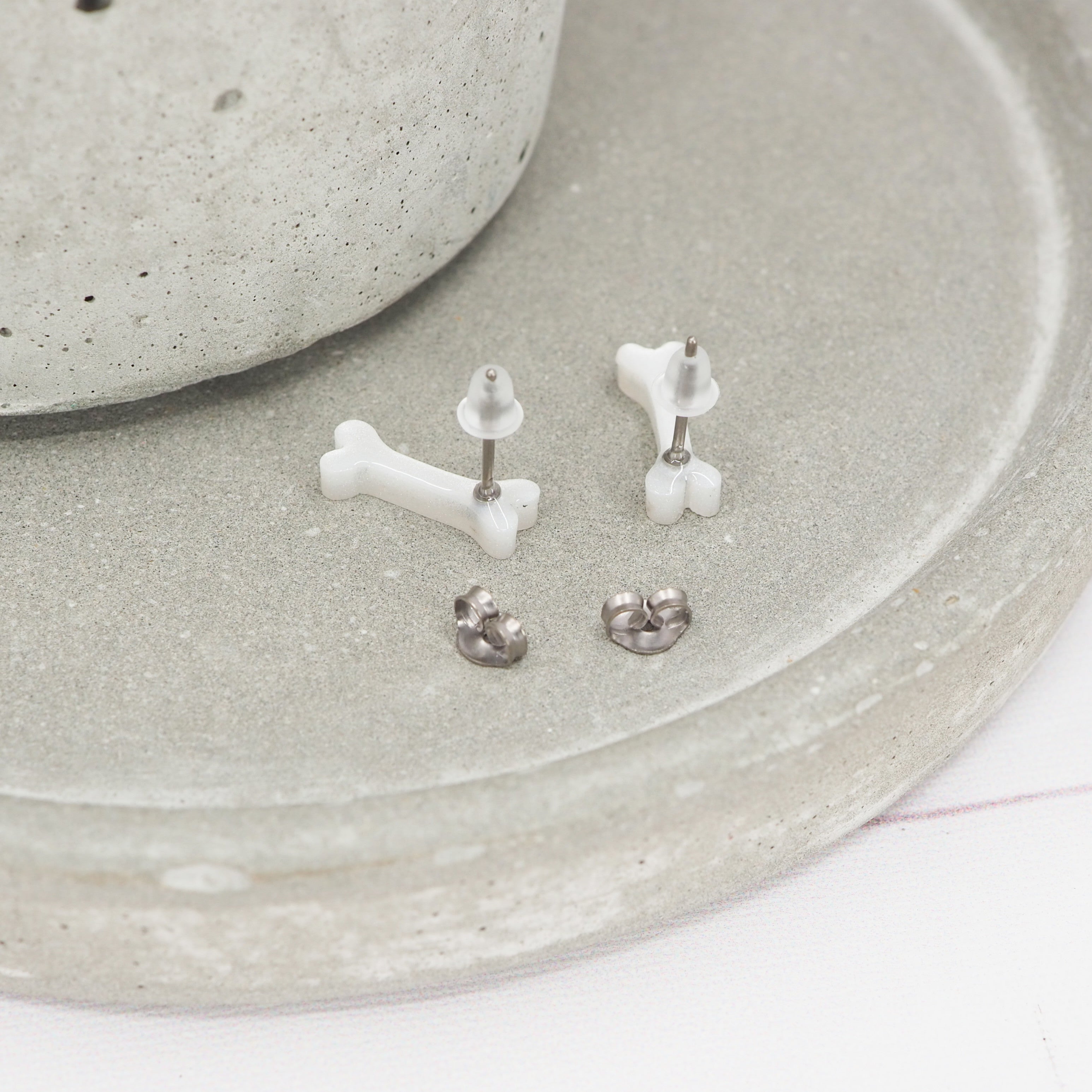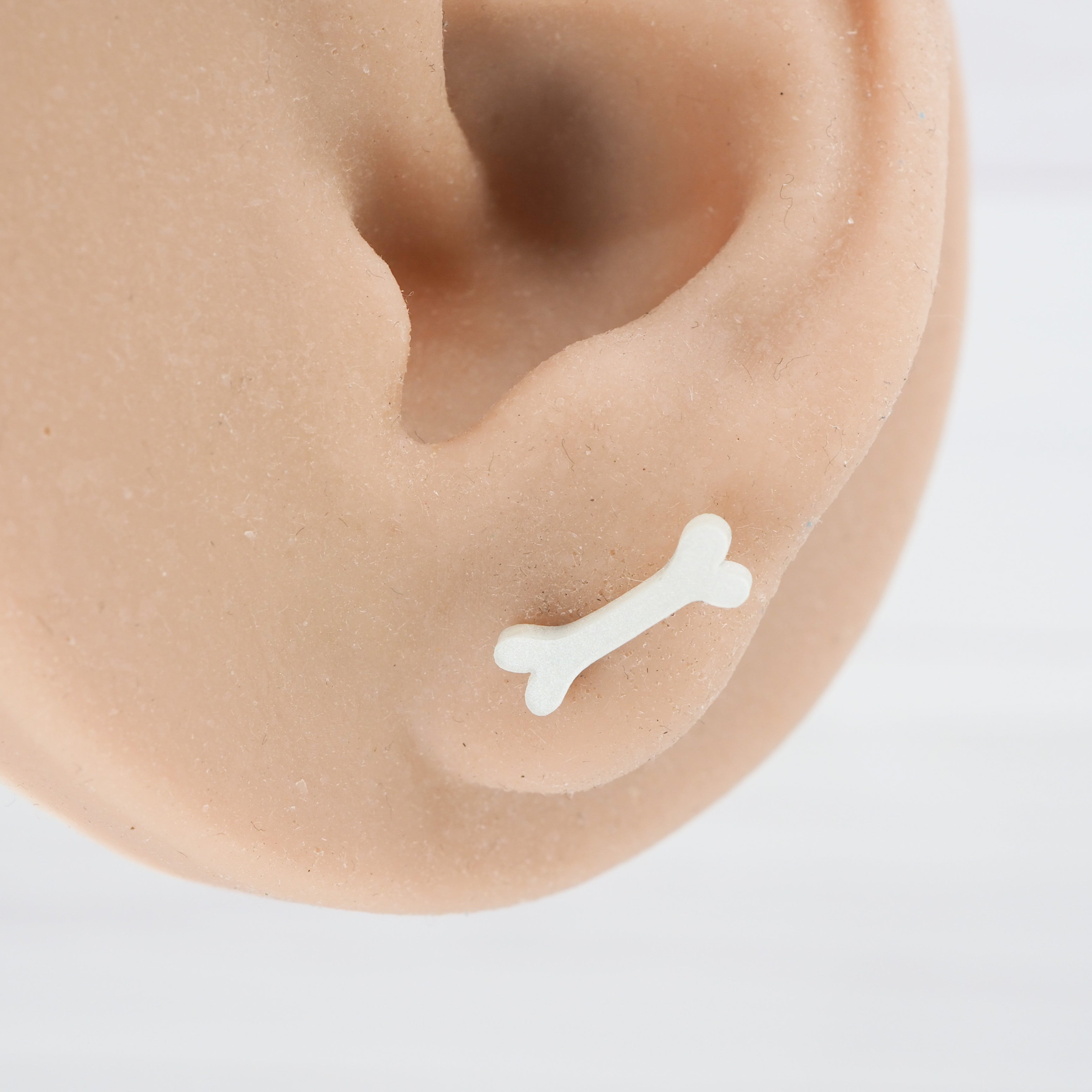 Metallic White bone studs with 0.7mm Grade 1 titanium ear stems.