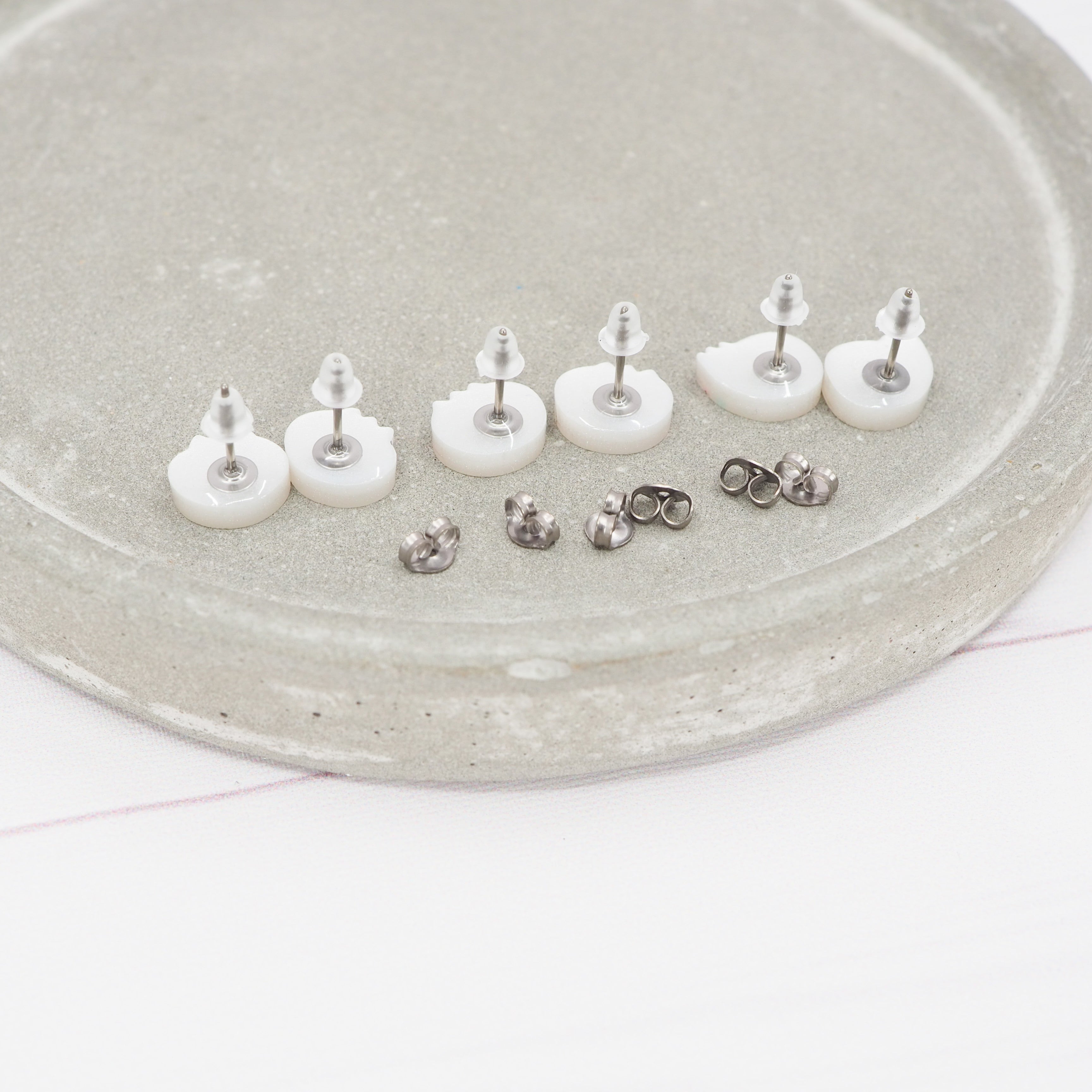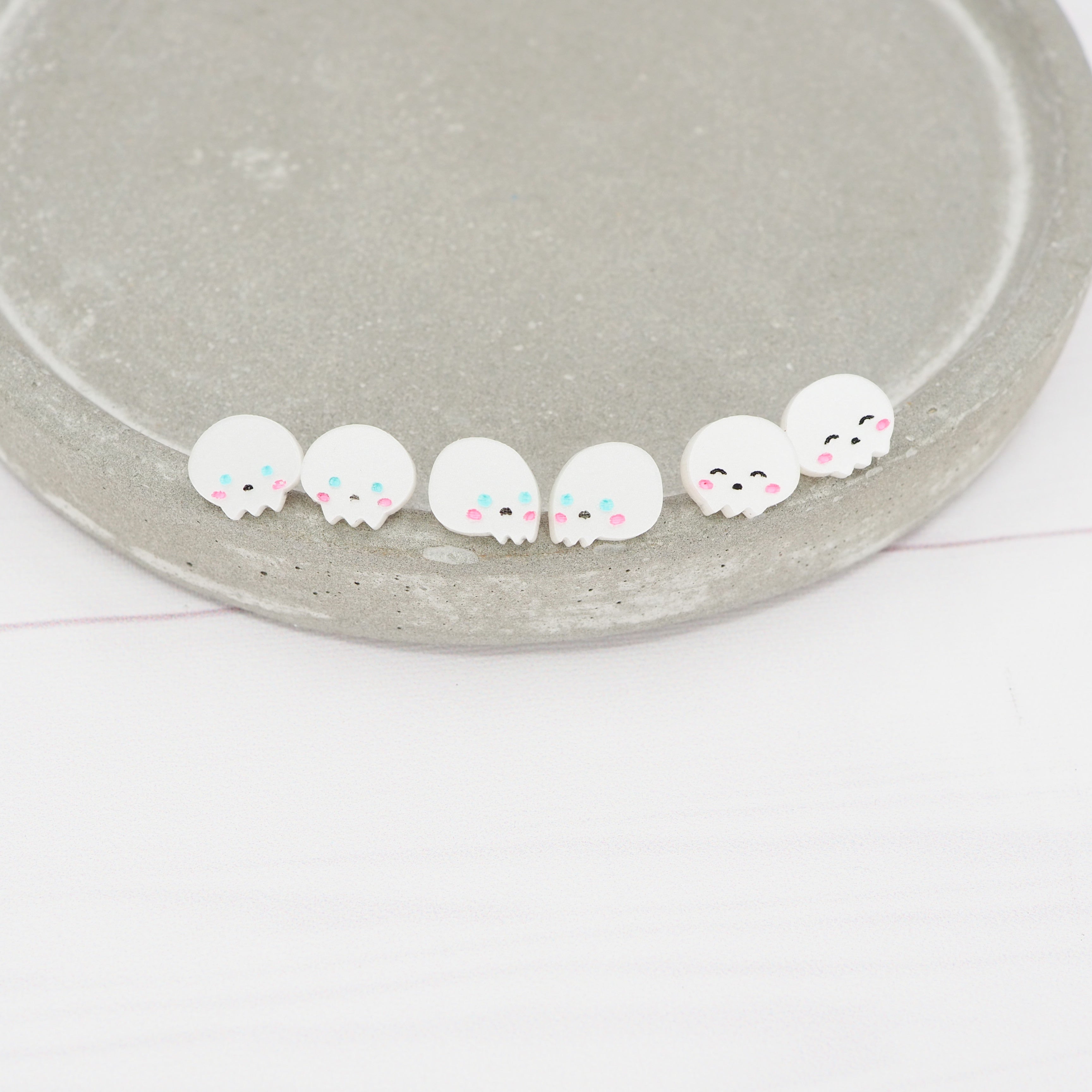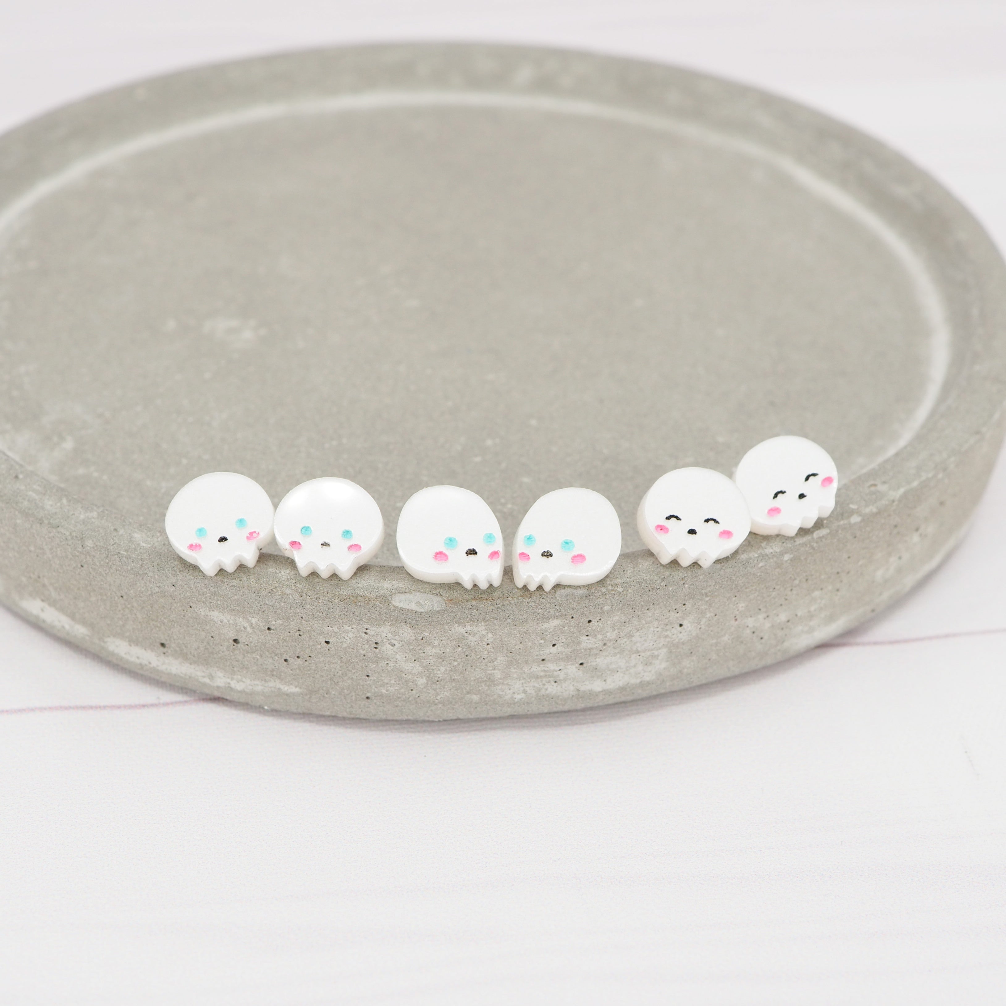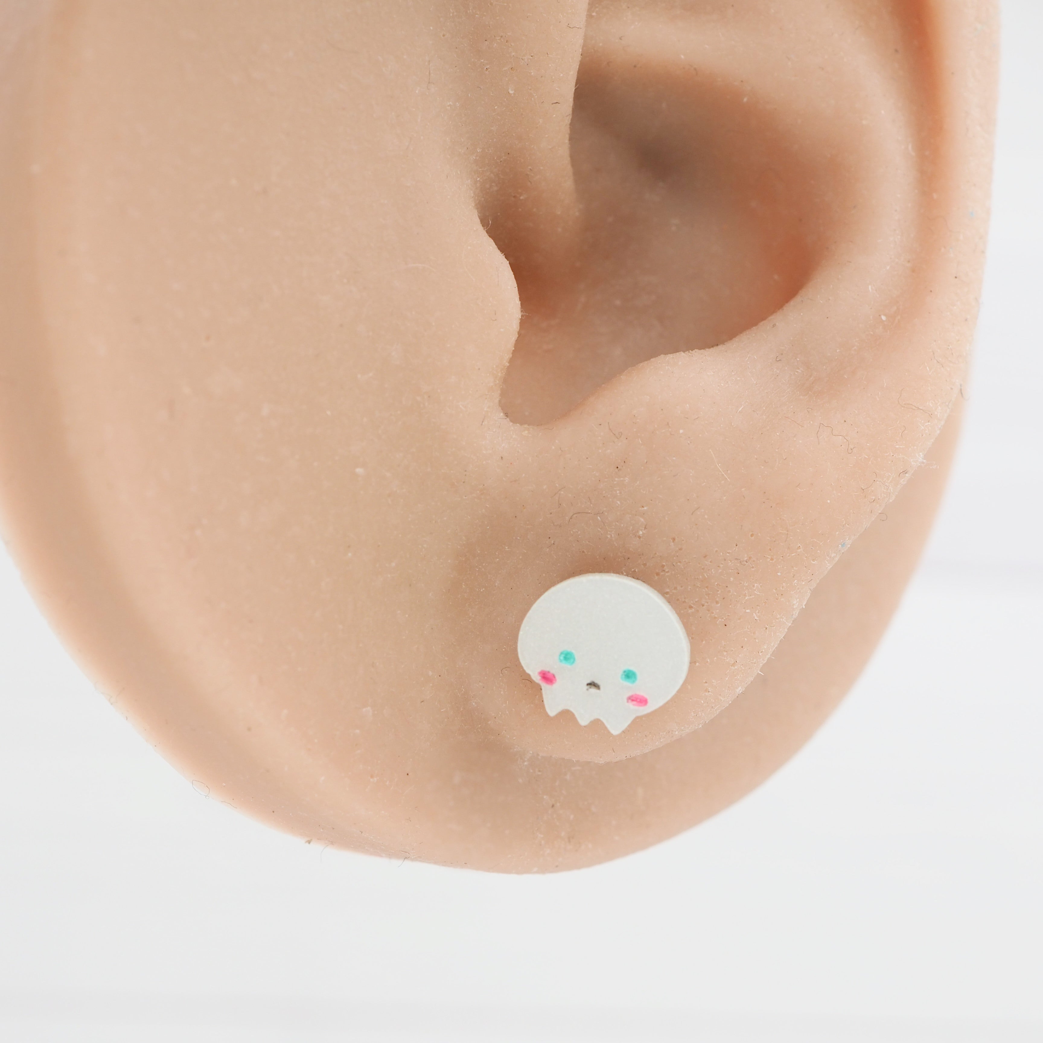Metallic white cute skull studs with 0.7mm Grade 1 titanium ear stems.