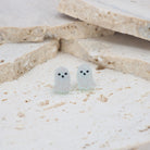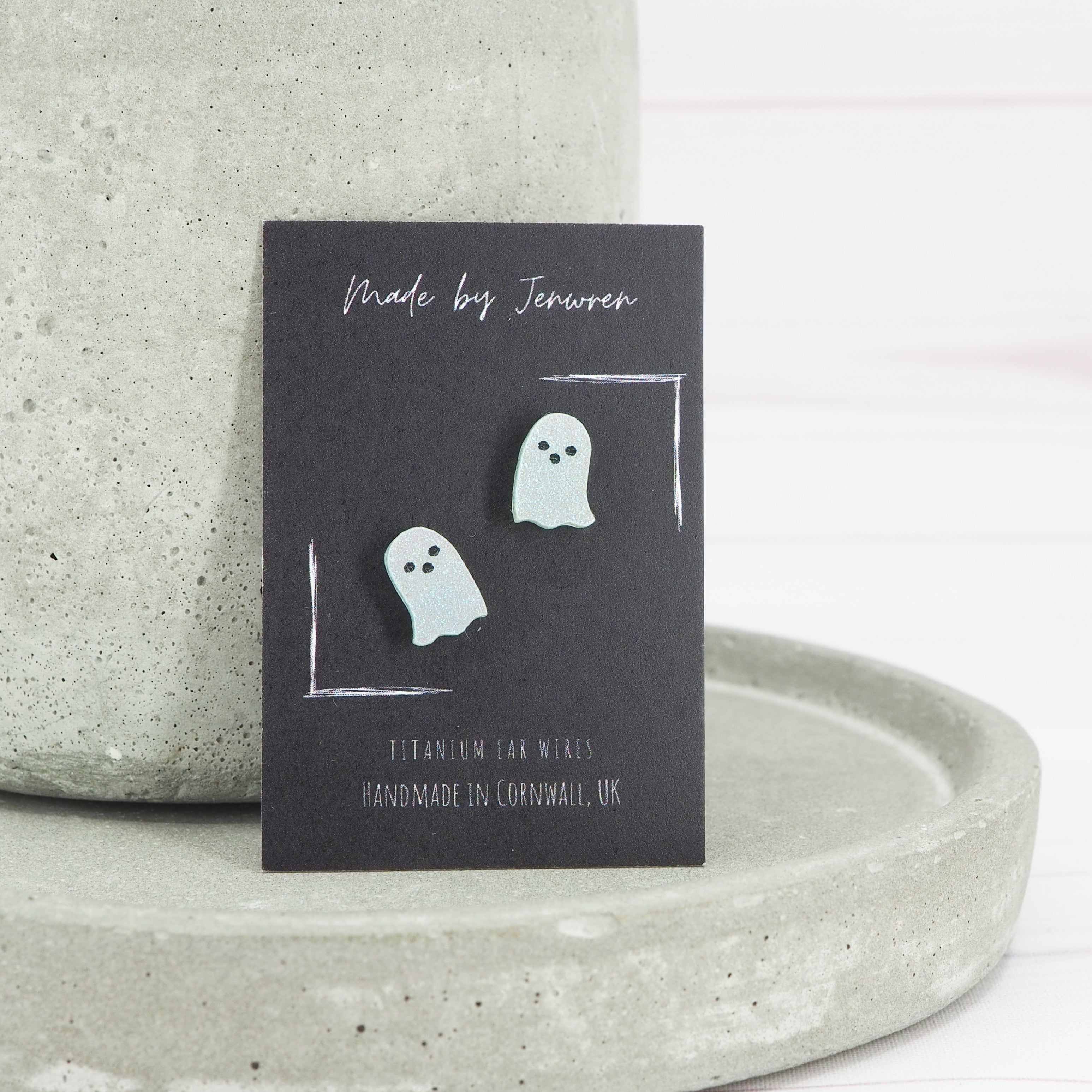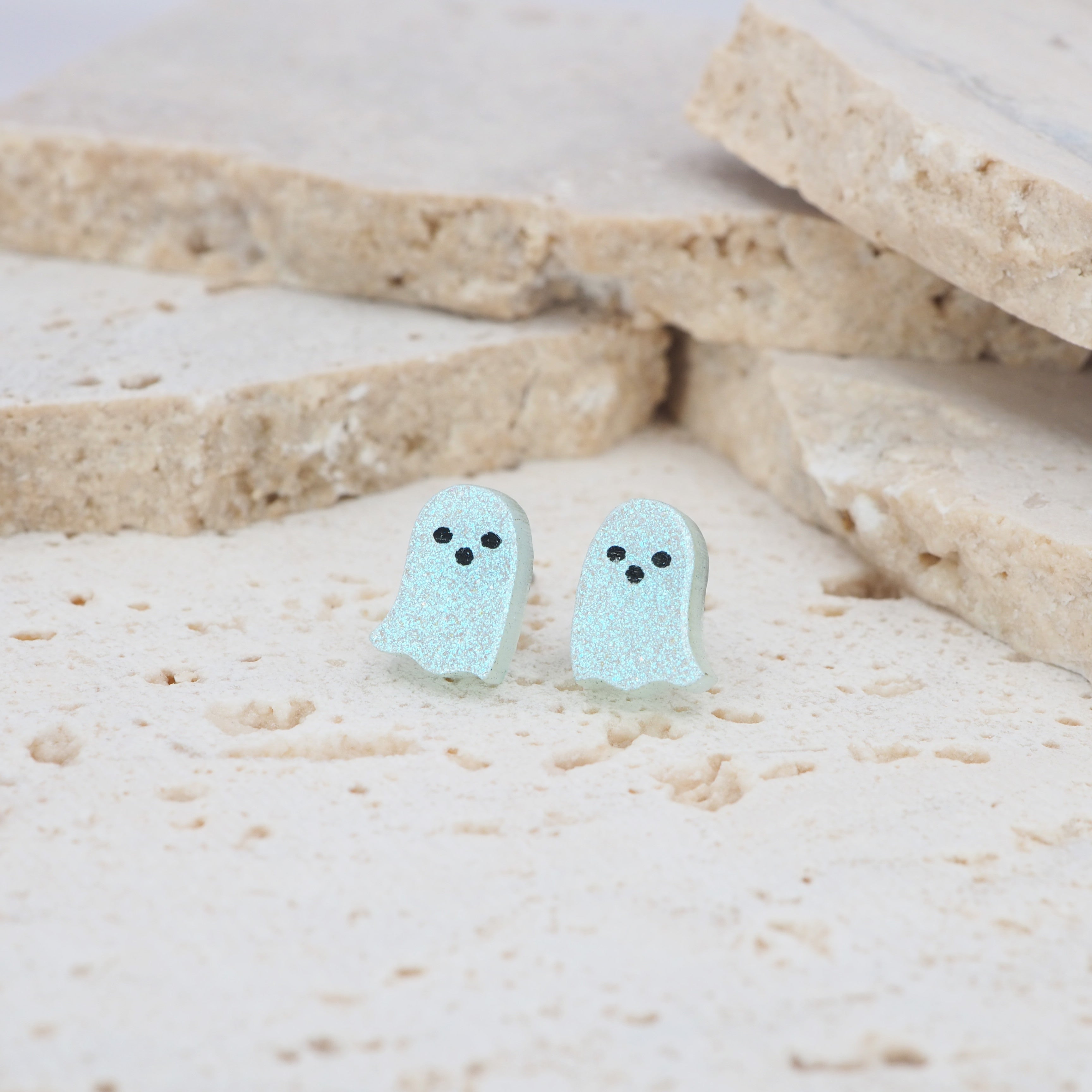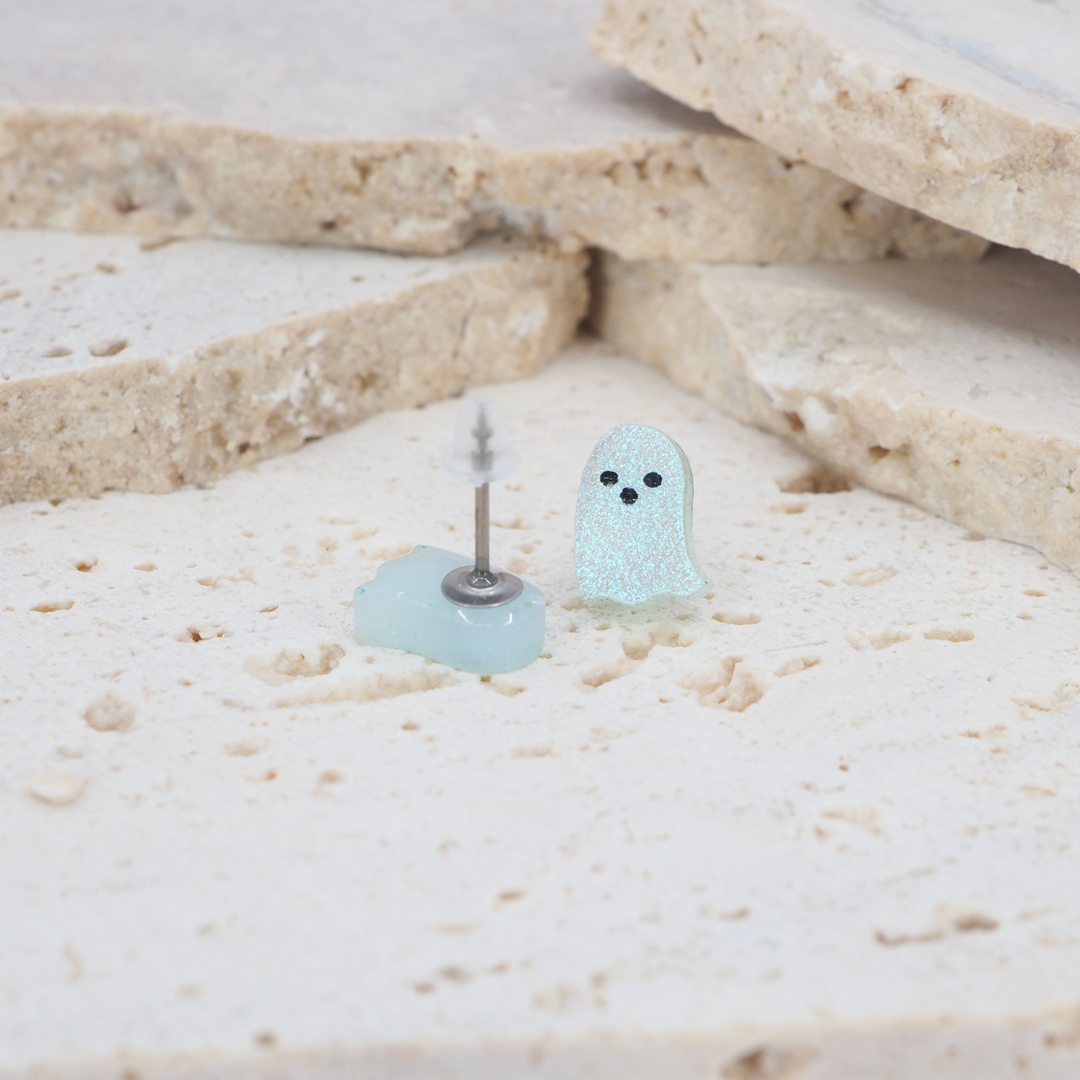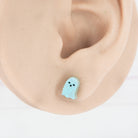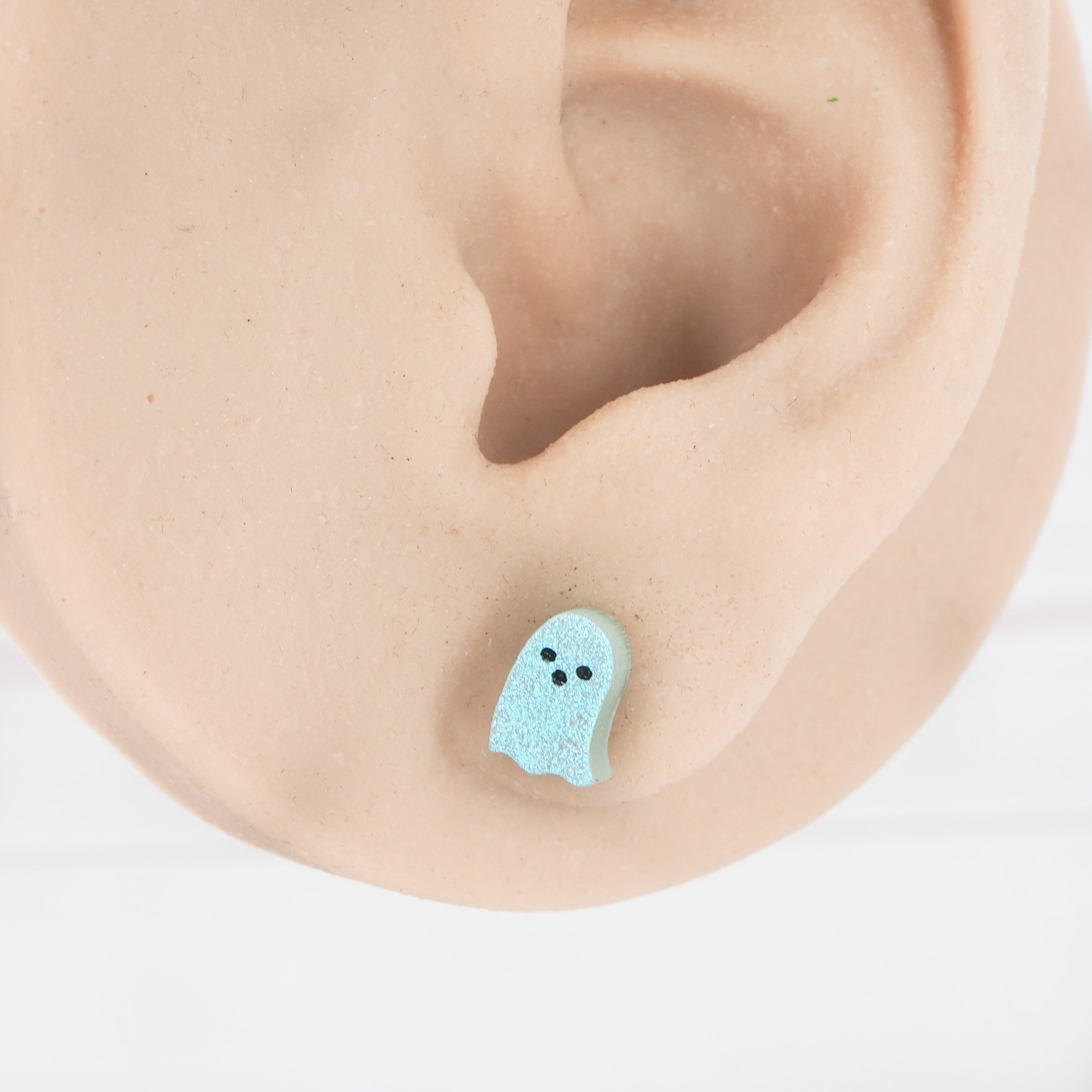 Blue lustre ghost studs with 0.7mm Grade 1 titanium ear stems.