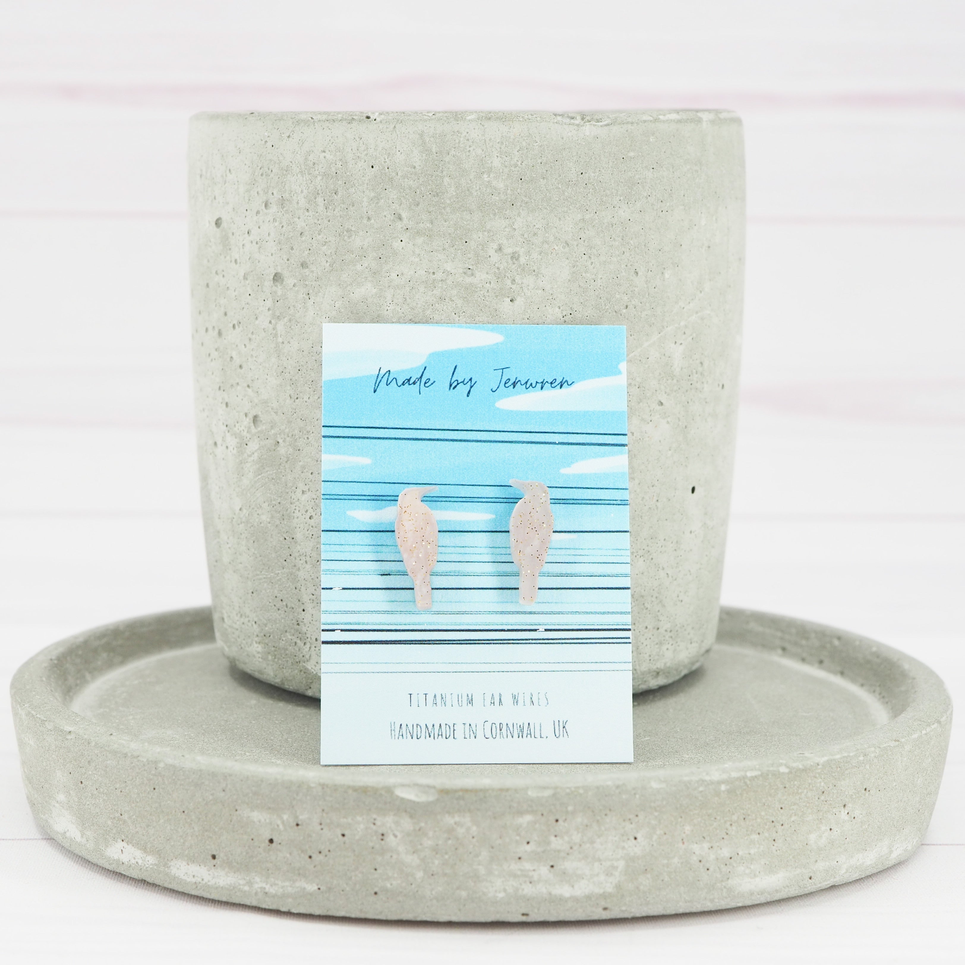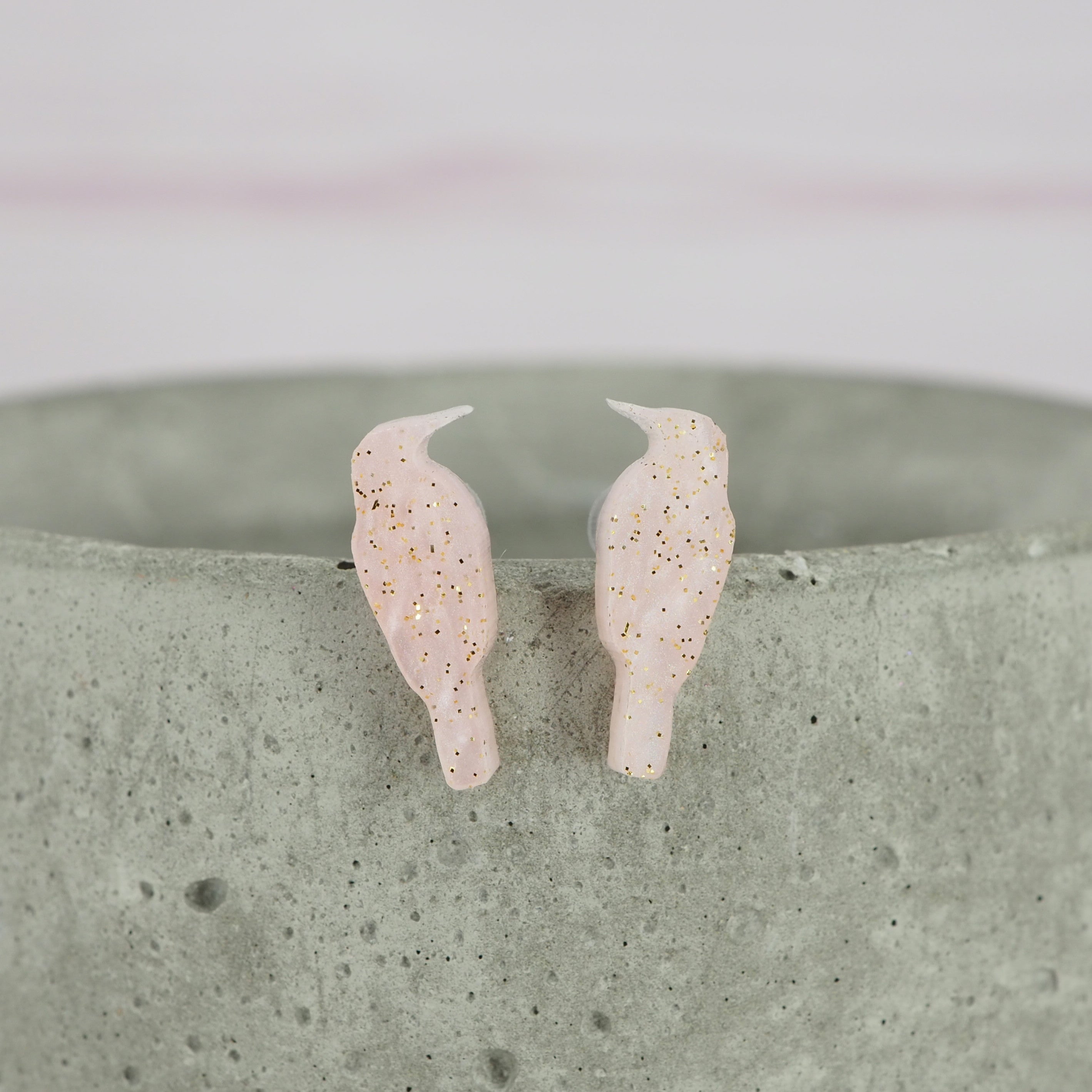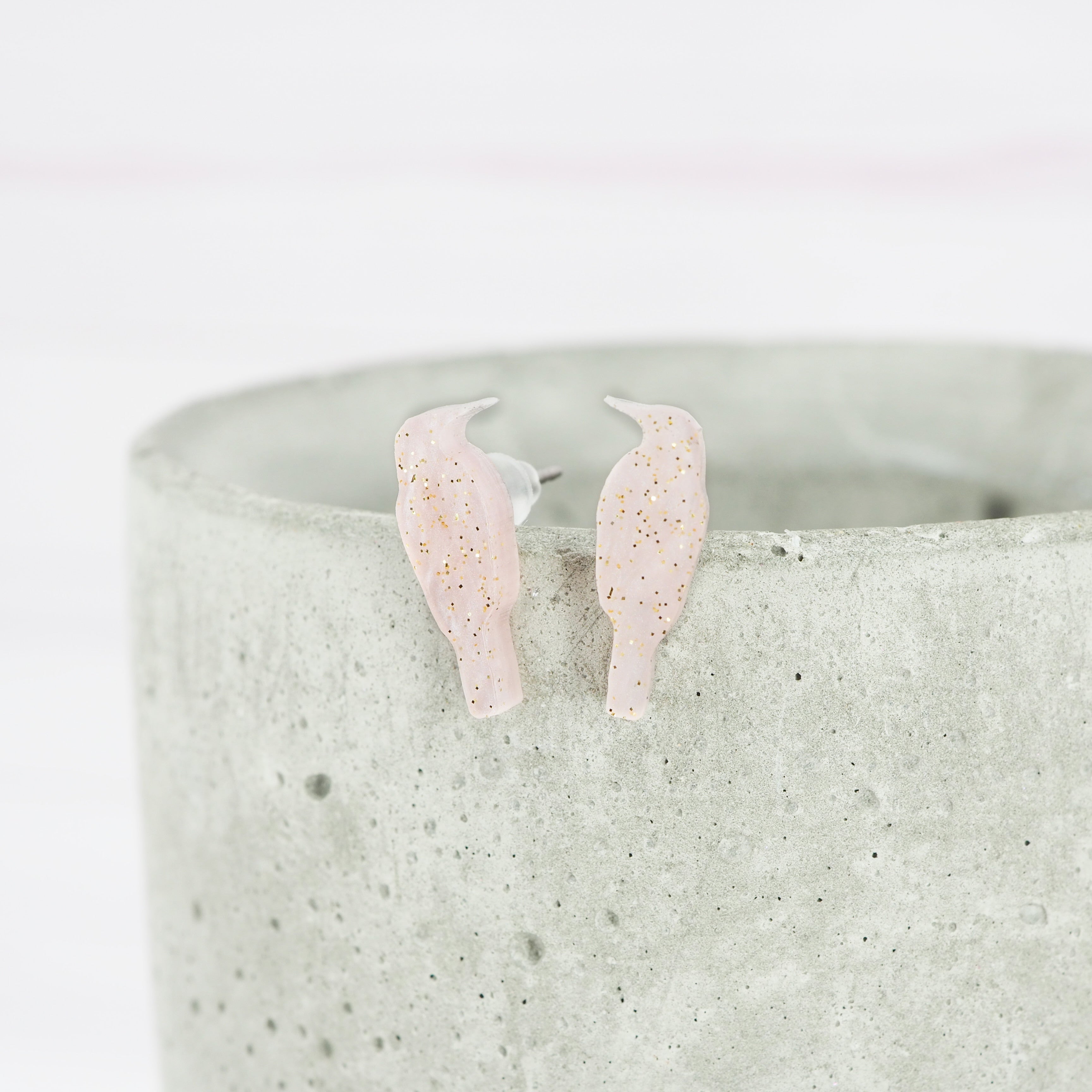 Mini Galaxy Pink lustre crow bird stud earrings.