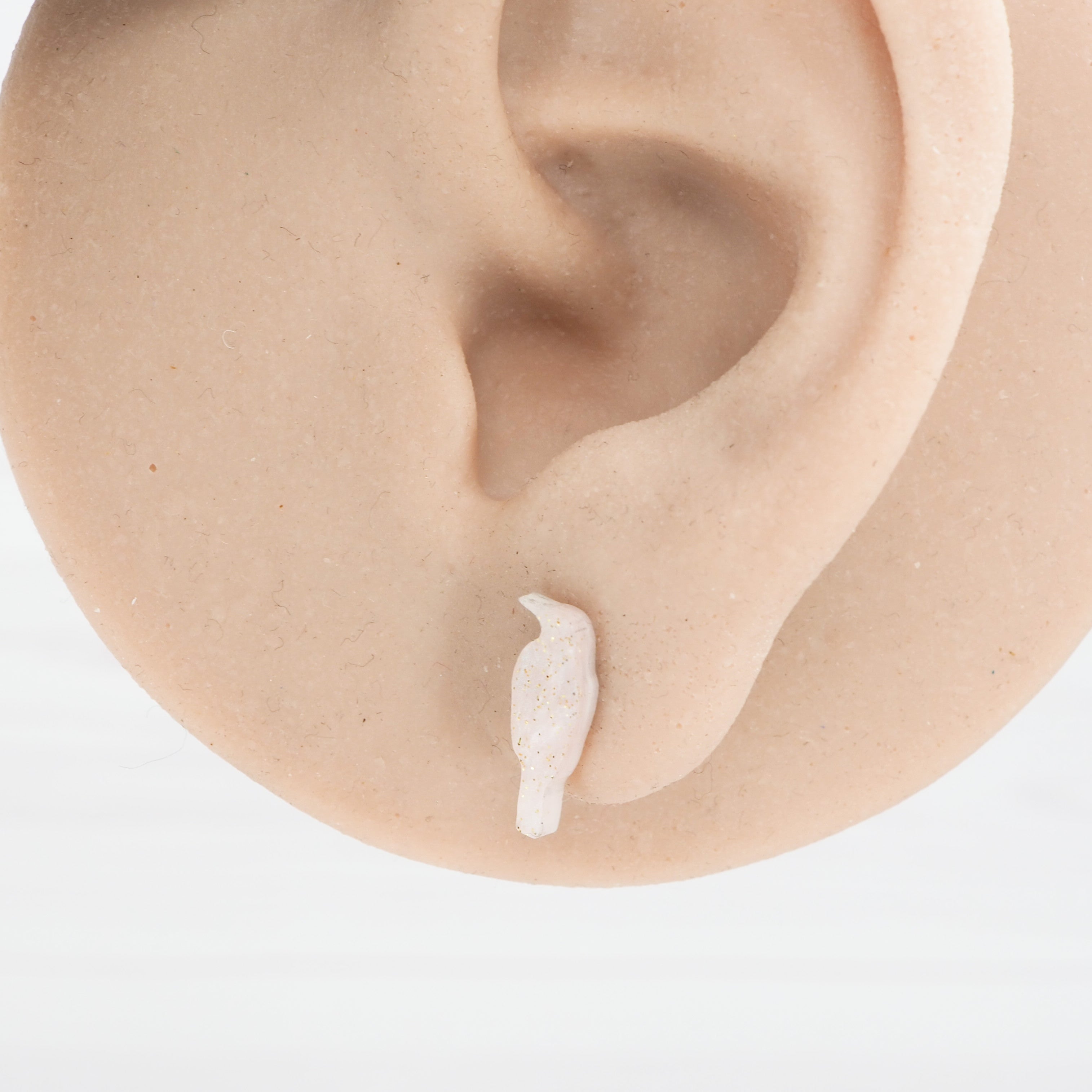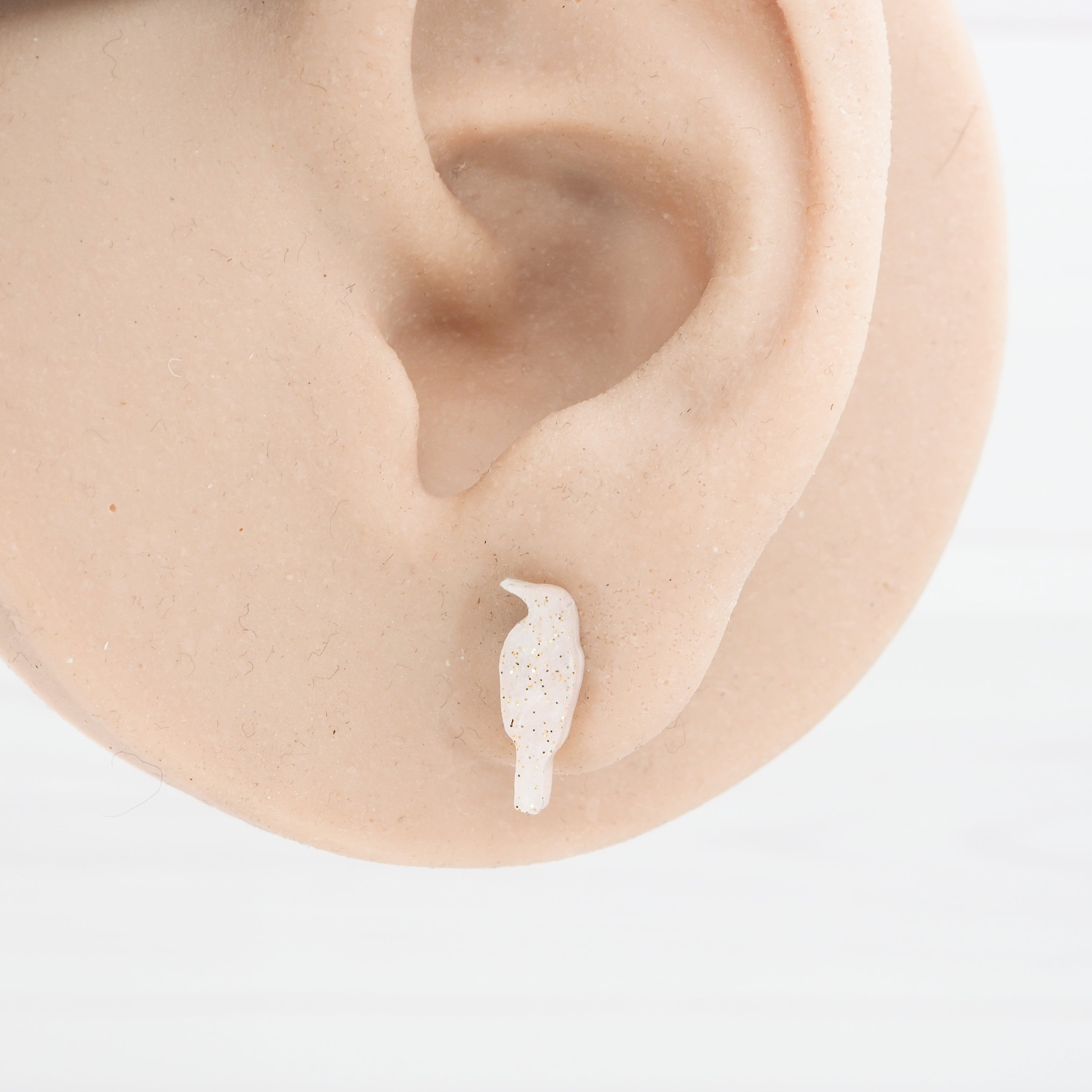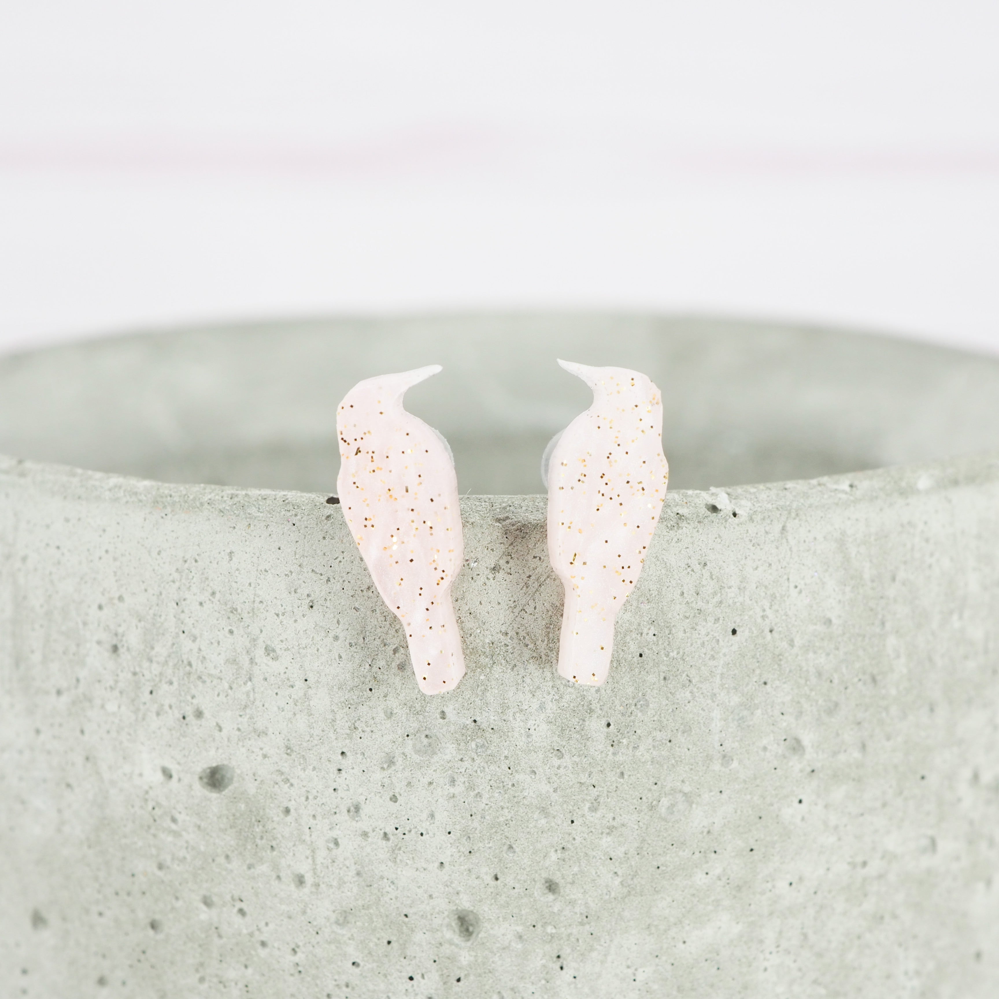 Mini Galaxy Pink lustre crow bird stud earrings.