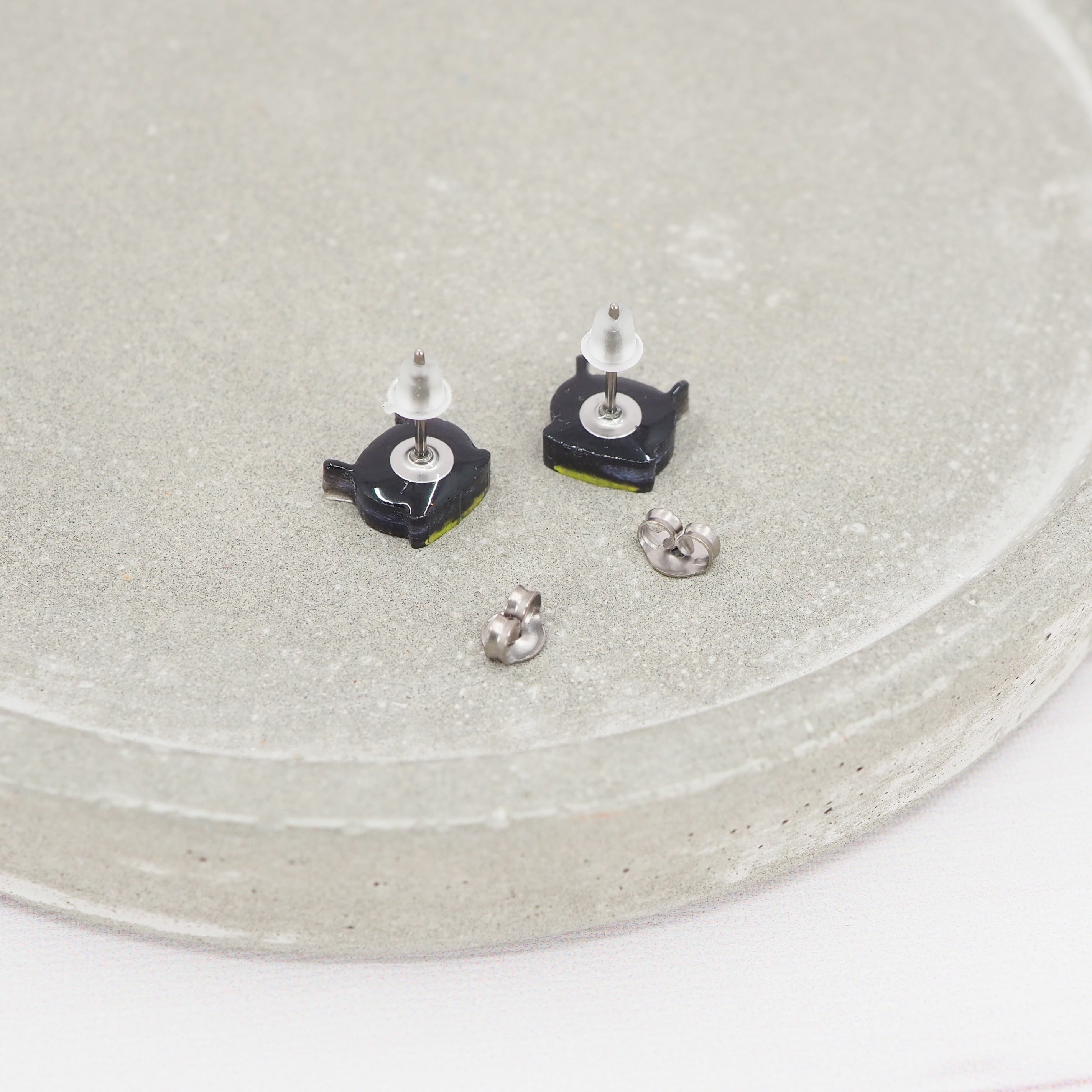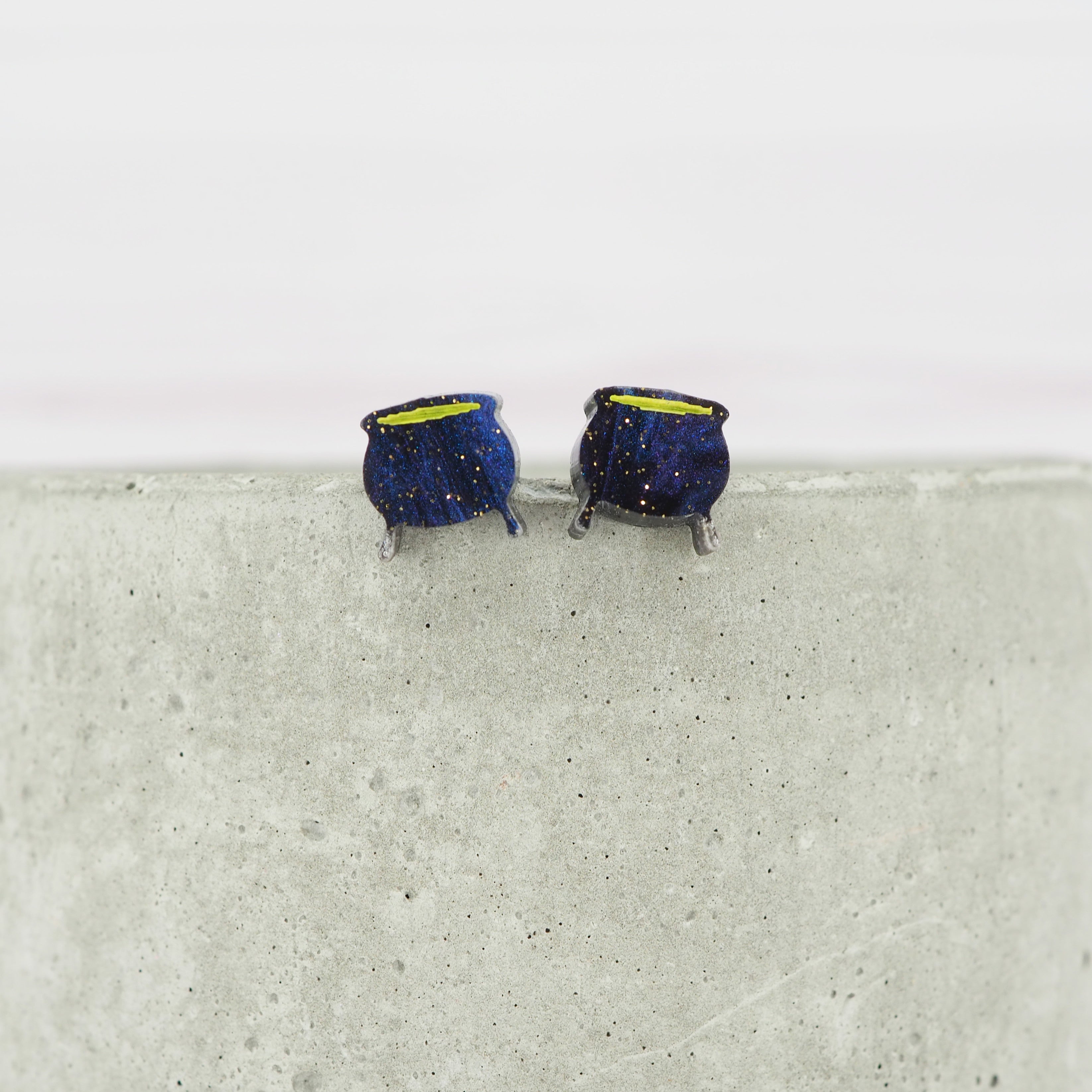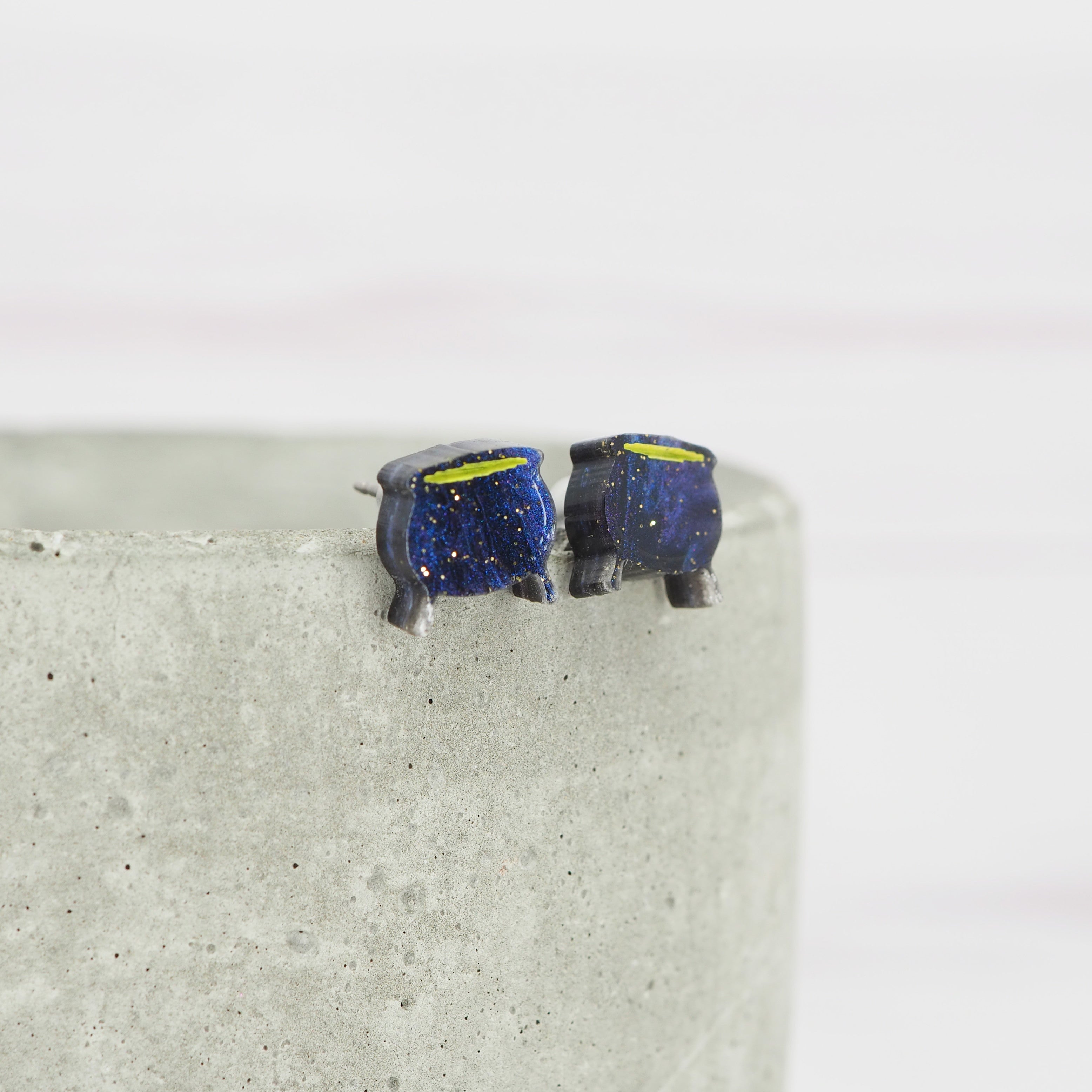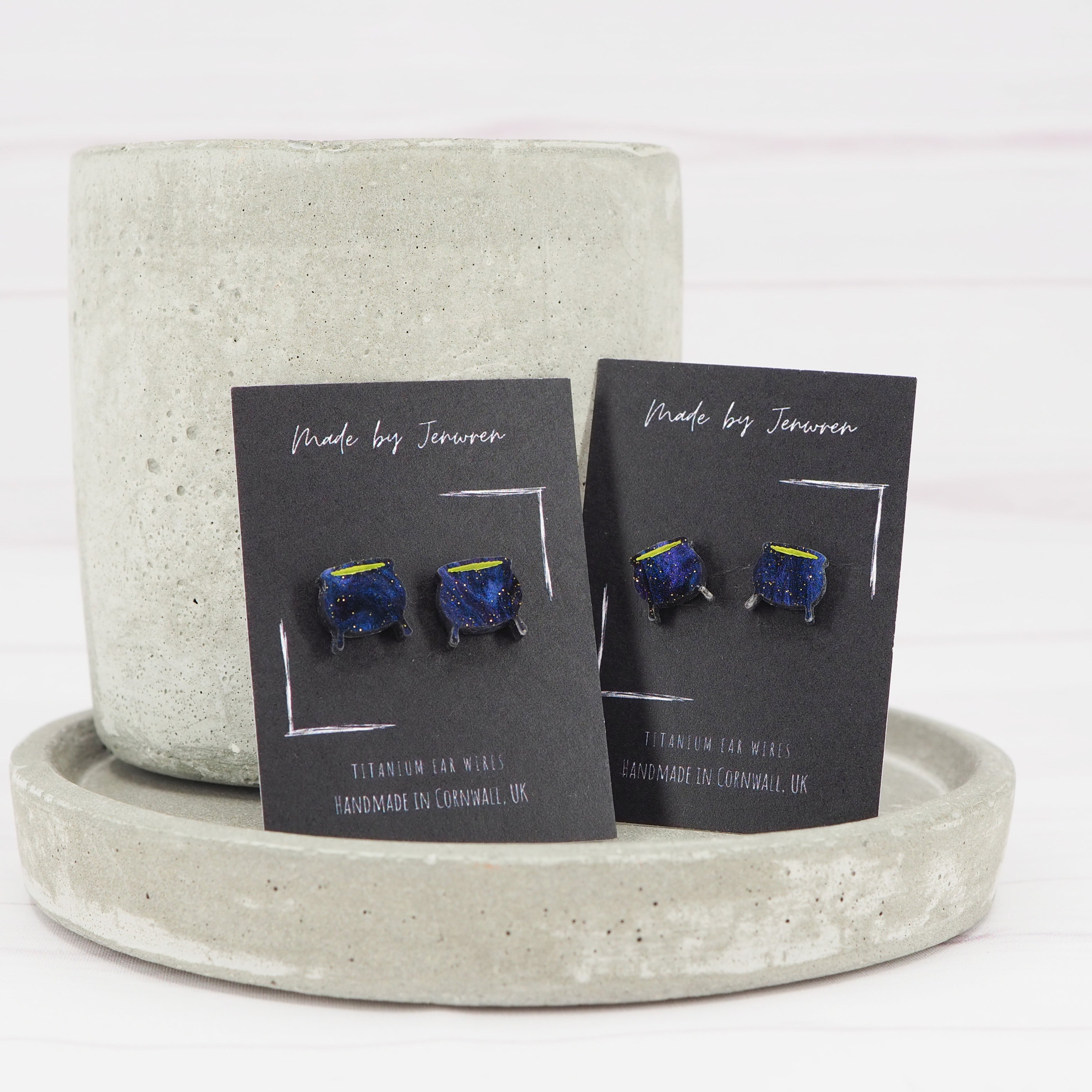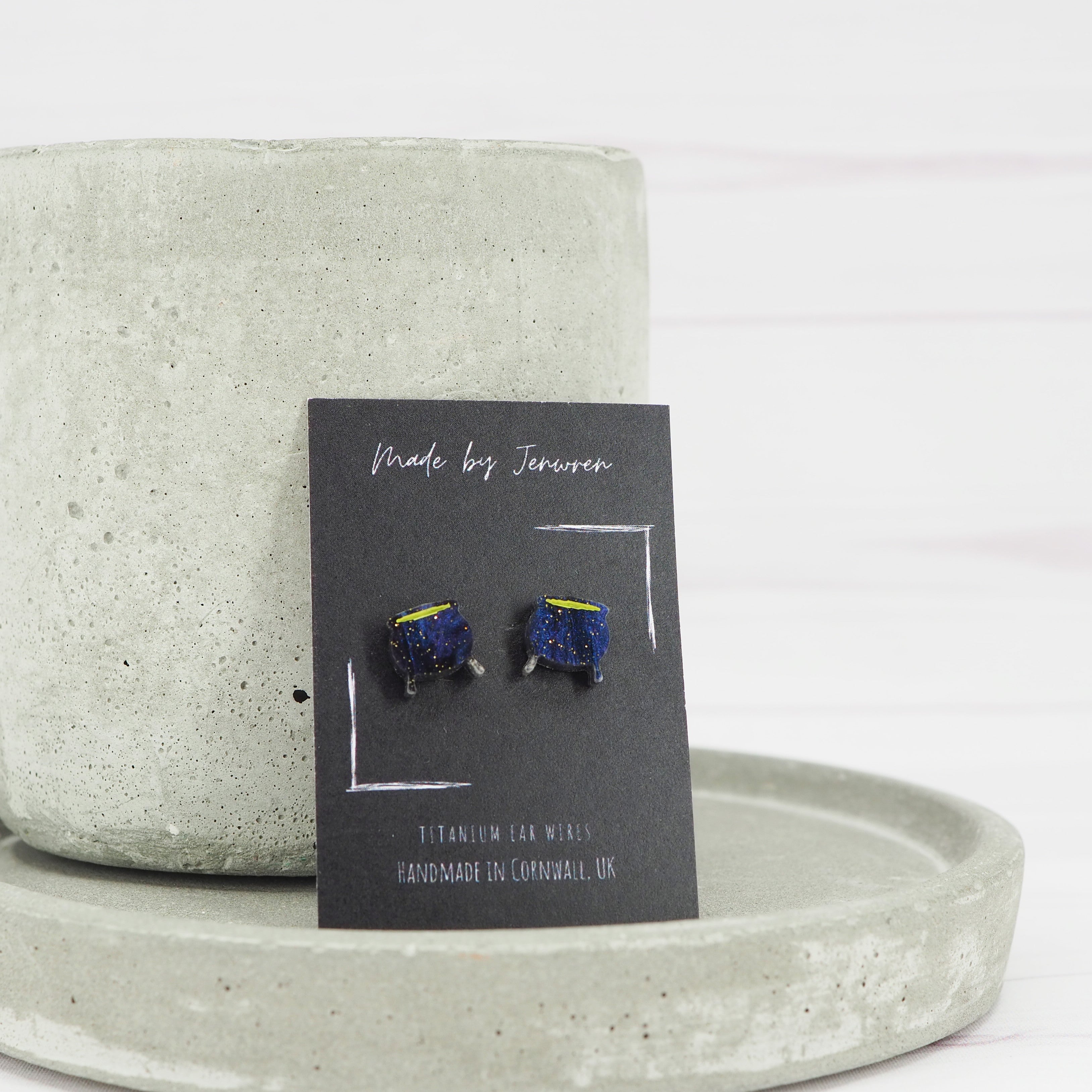 Mini Purple galaxy cauldron studs with 0.7mm Grade 1 titanium ear stems.