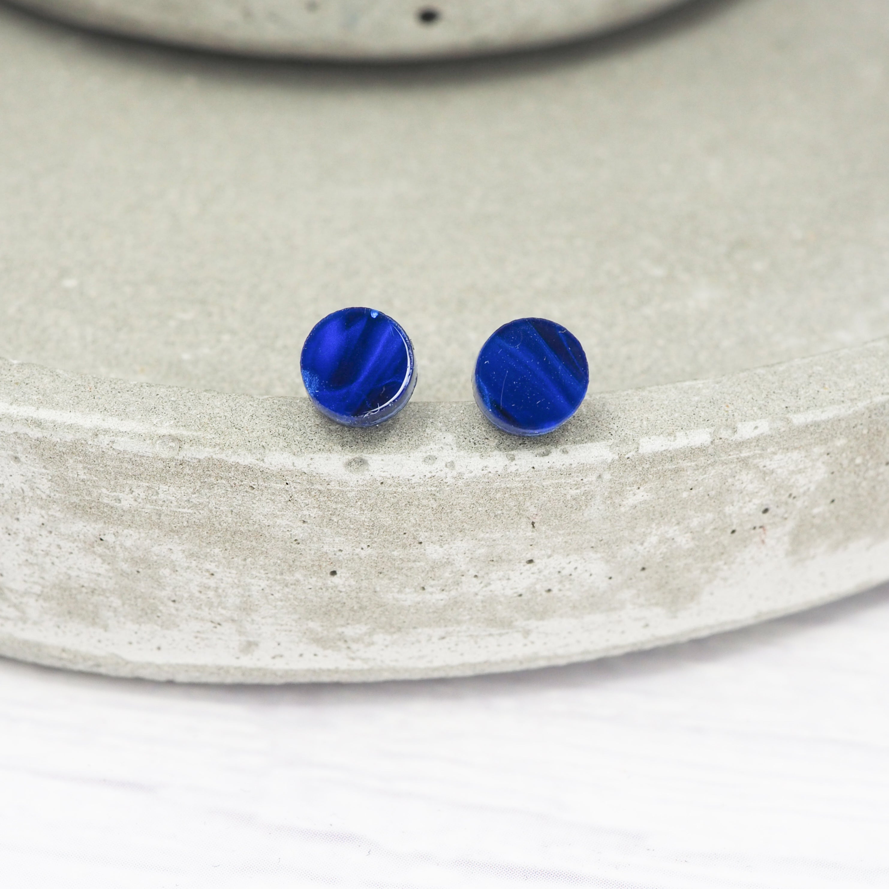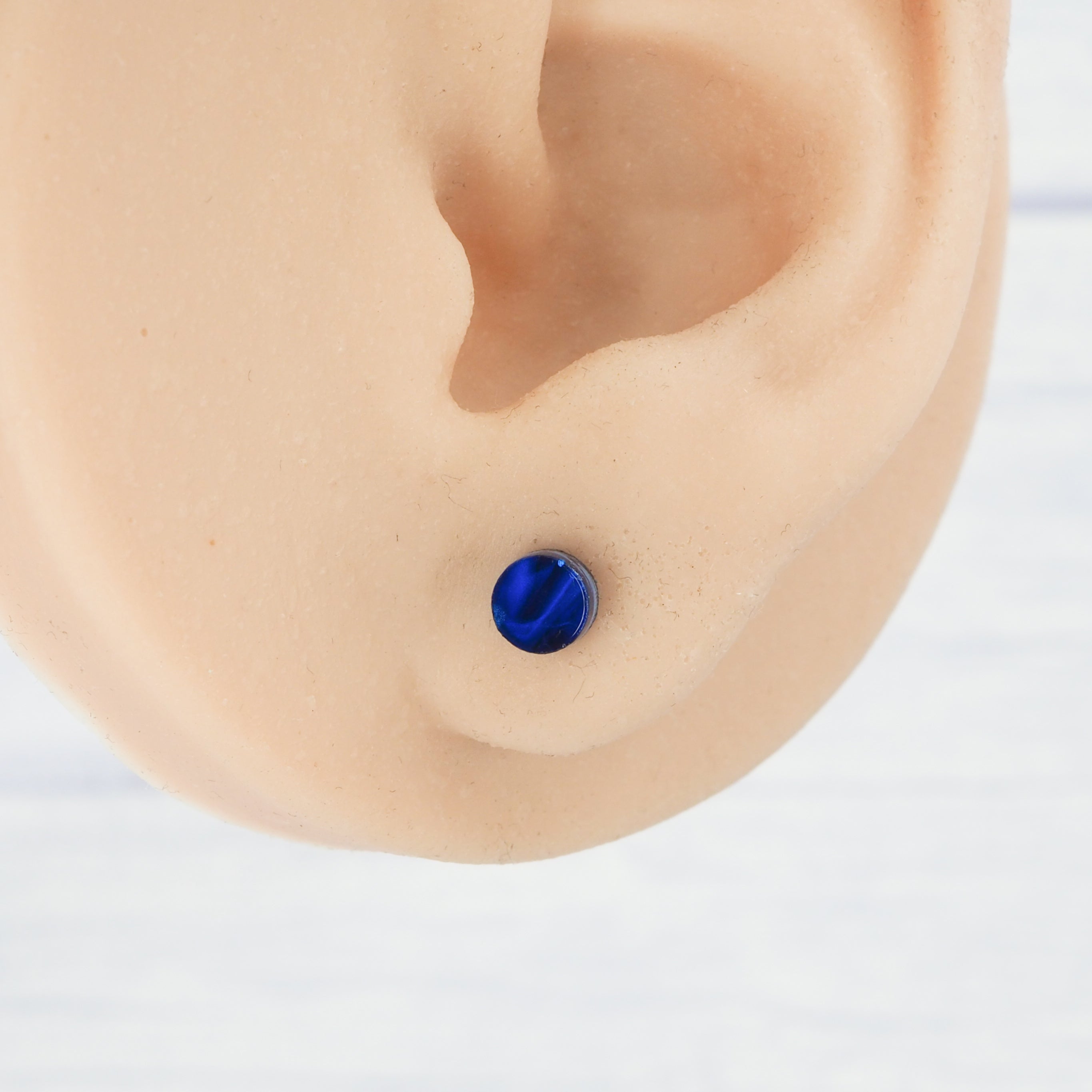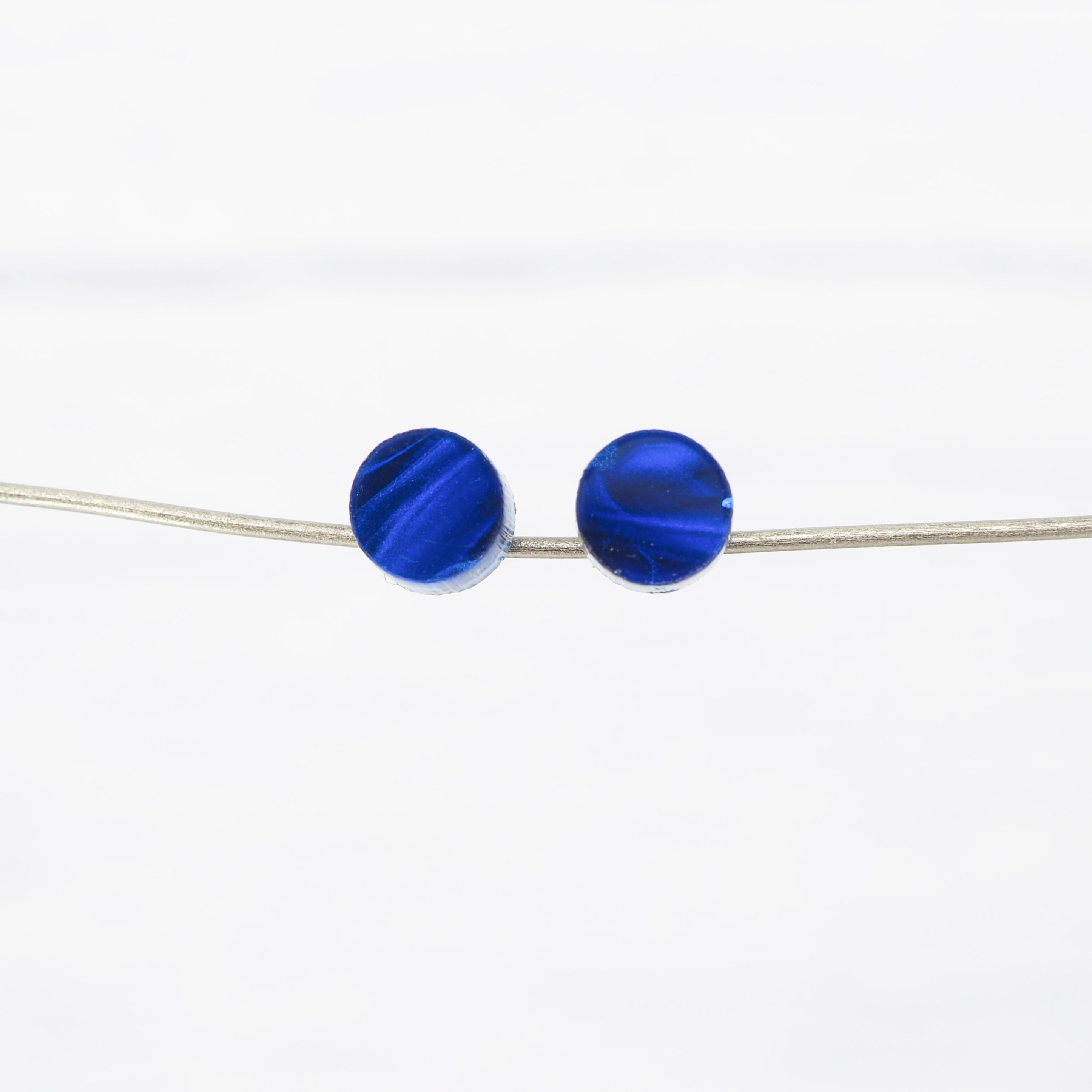 Pearly dark blue acrylic dot studs with 0.7mm ear stems.