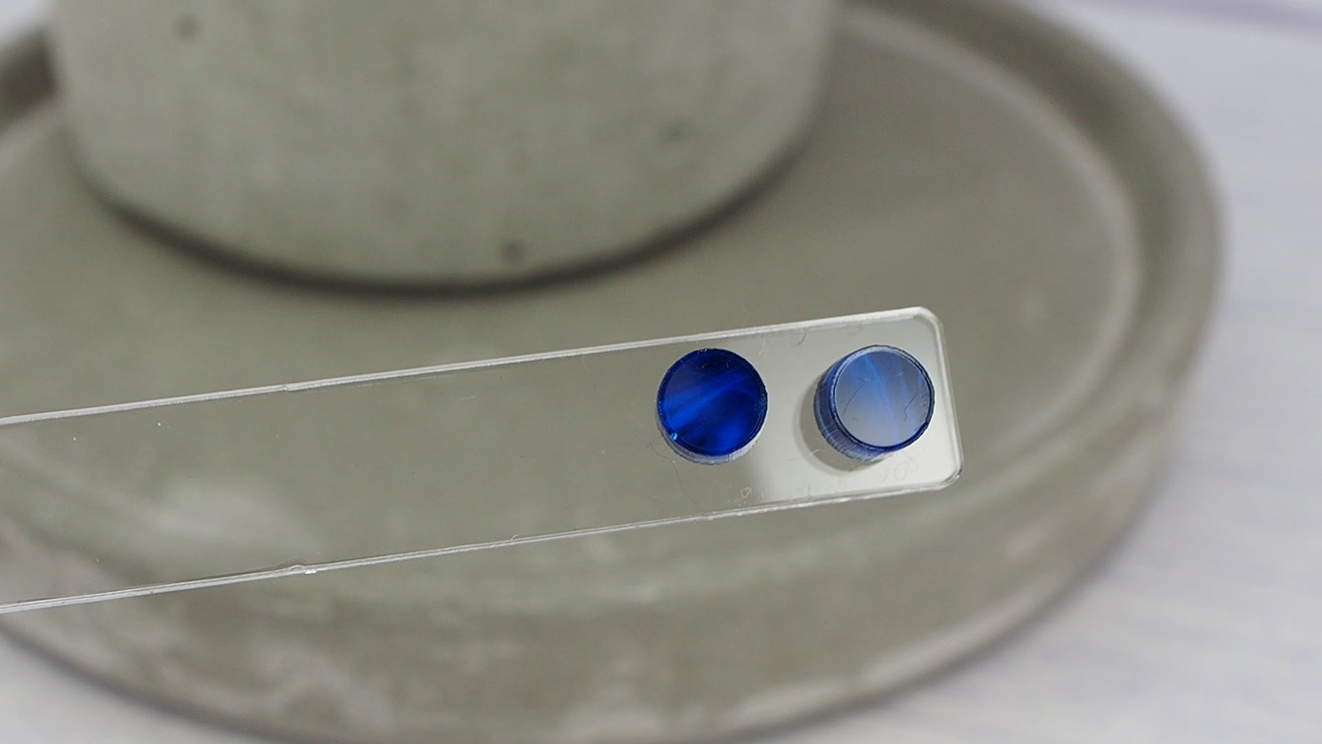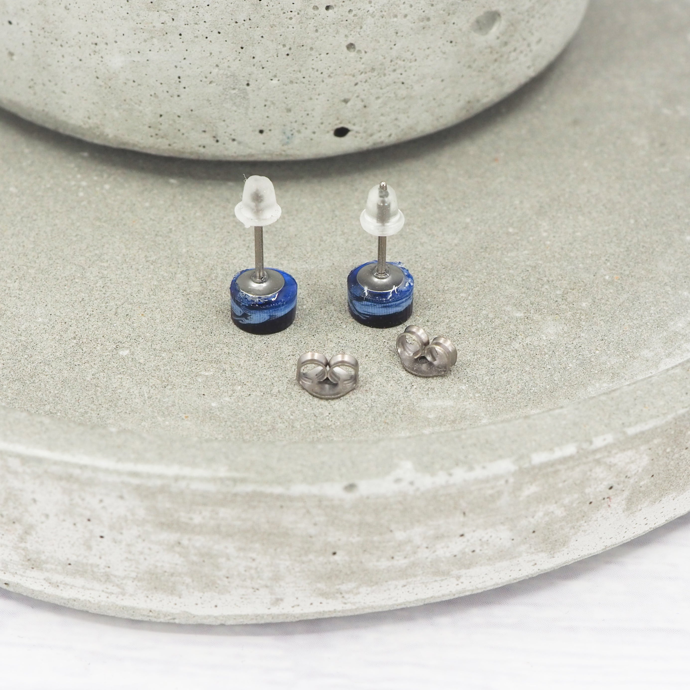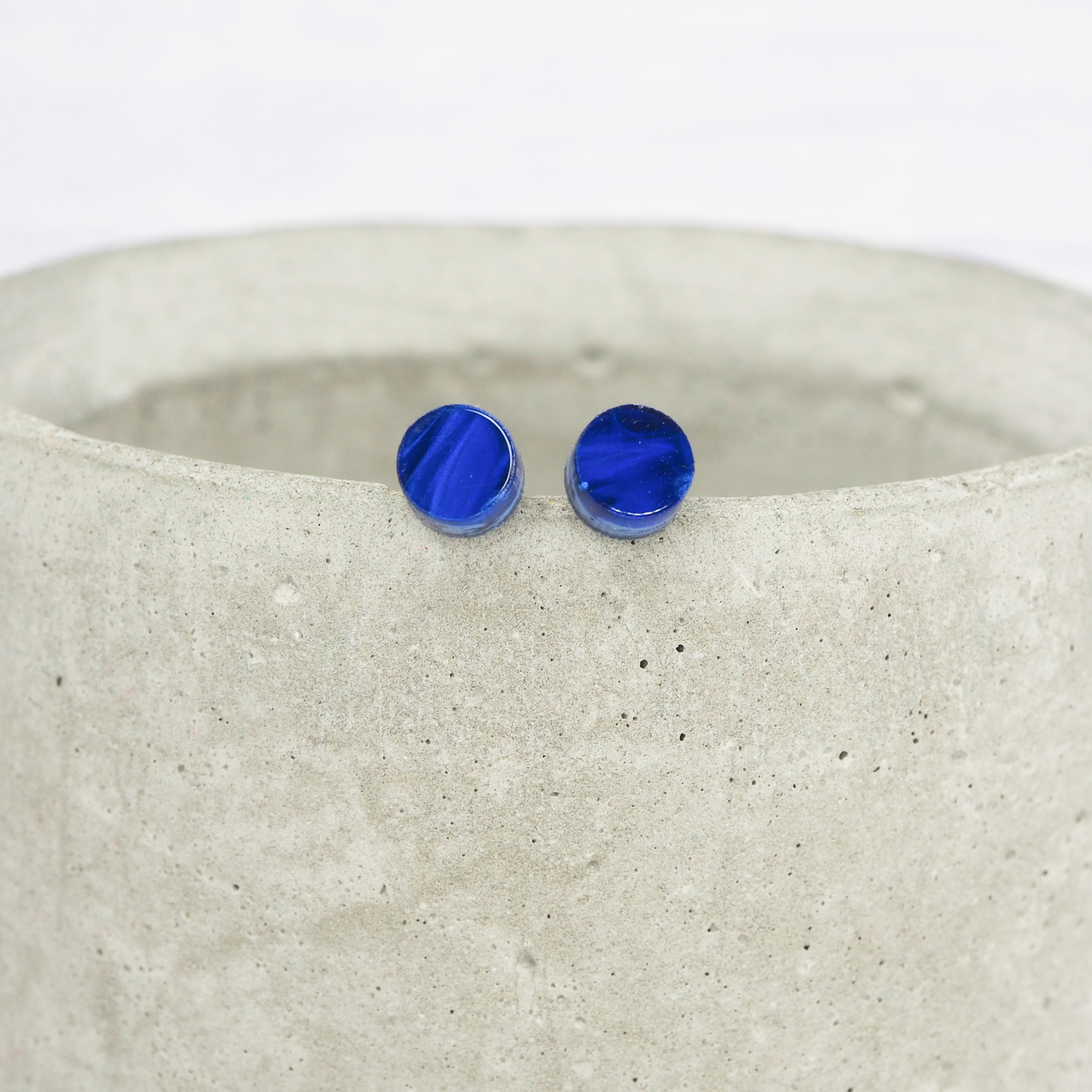 Pearly dark blue acrylic dot studs with 0.7mm ear stems.